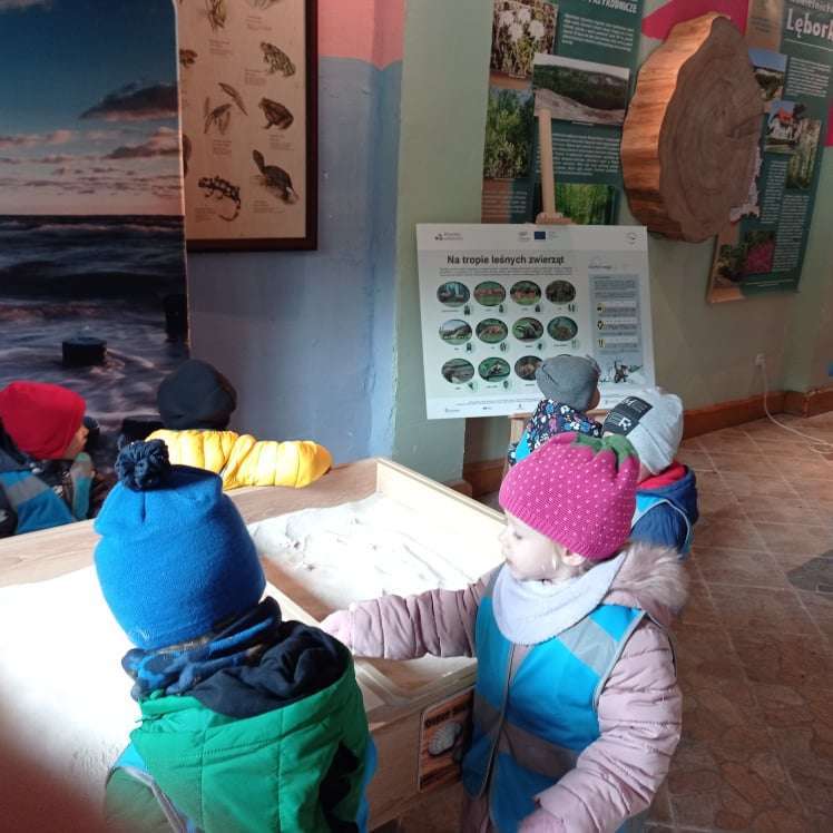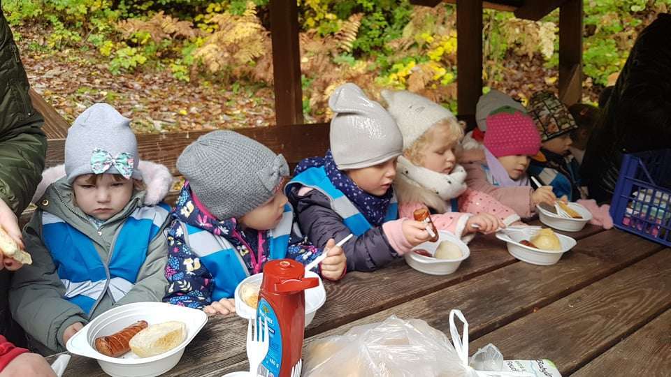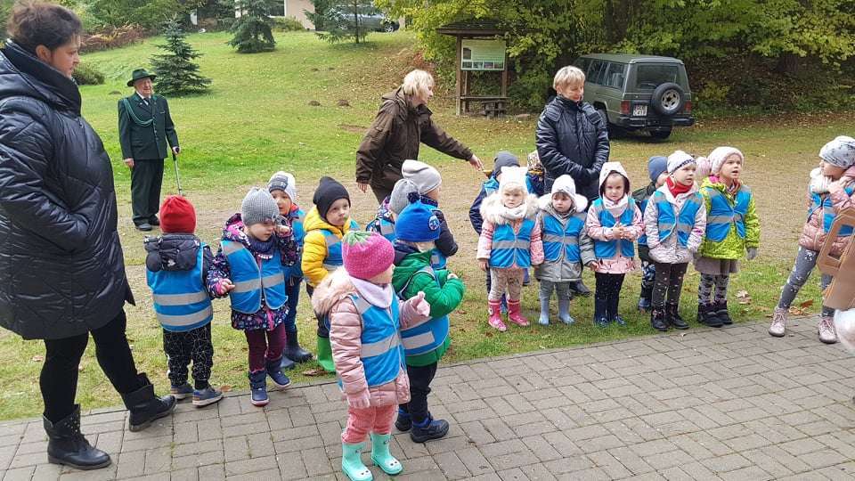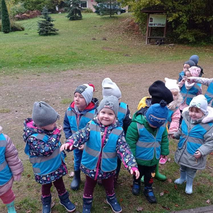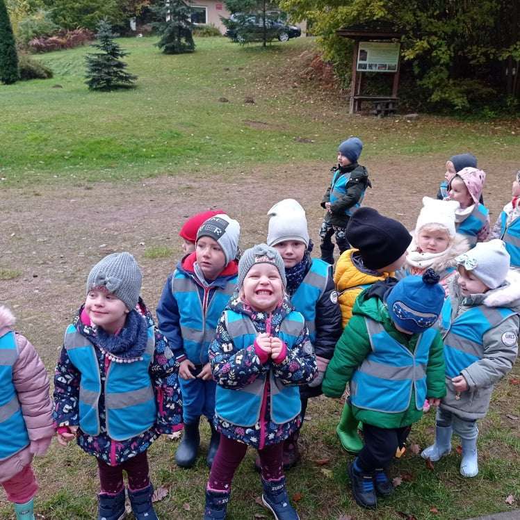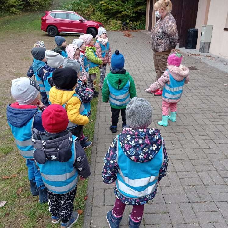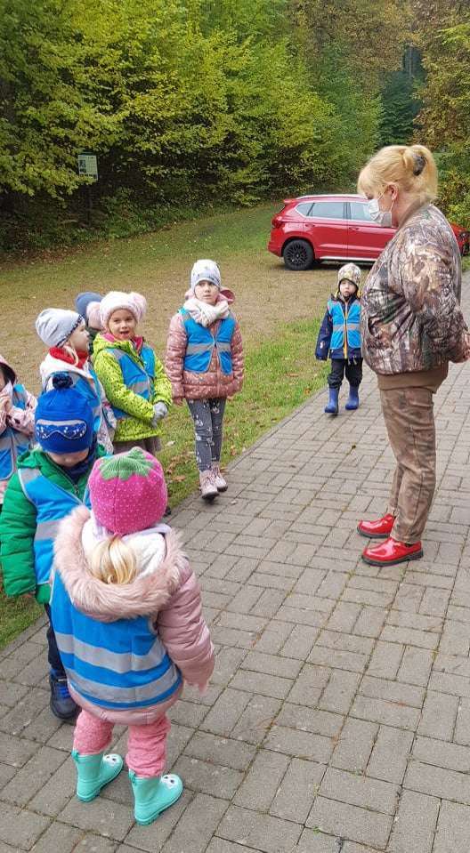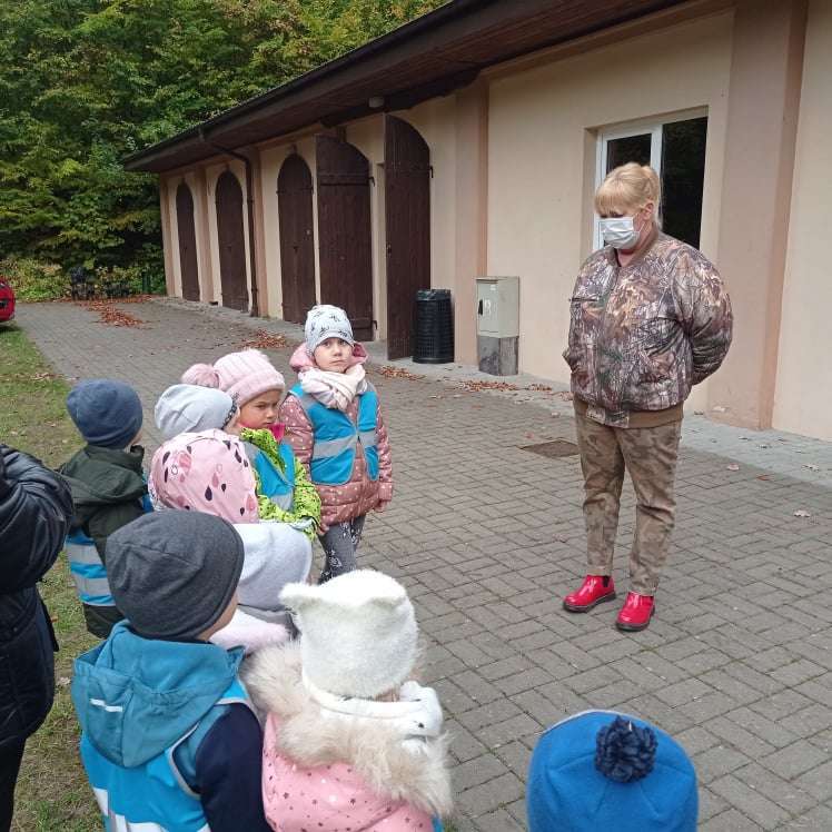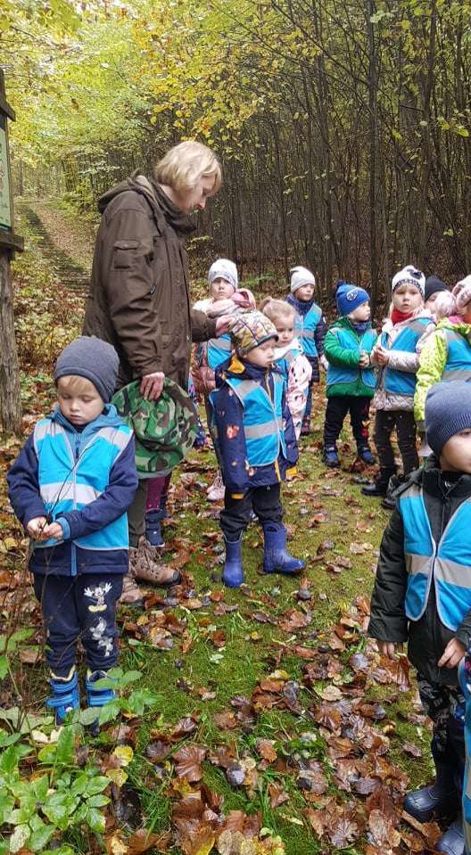 19 października 2021 r. dzieci z wszystkich grup przedszkolnych uczestniczyły w wycieczce do Drętowa. Uroczysko Drętowo to centrum edukacji przyrodniczo - leśnej Nadleśnictwa Lębork. Podczas wycieczki dzieci zwiedziły salę edukacyjną wyposażoną w materiały i eksponaty przyrodnicze. W czasie spaceru na ścieżkach przyrodniczych zdobyły informacje o gatunkach drzew, martwym drewnie, znaczeniu pszczół oraz roli psów myśliwskich. Wszystkich tych informacji udzielili dzieciom myśliwi oraz pracownicy Nadleśnictwa Lębork.
