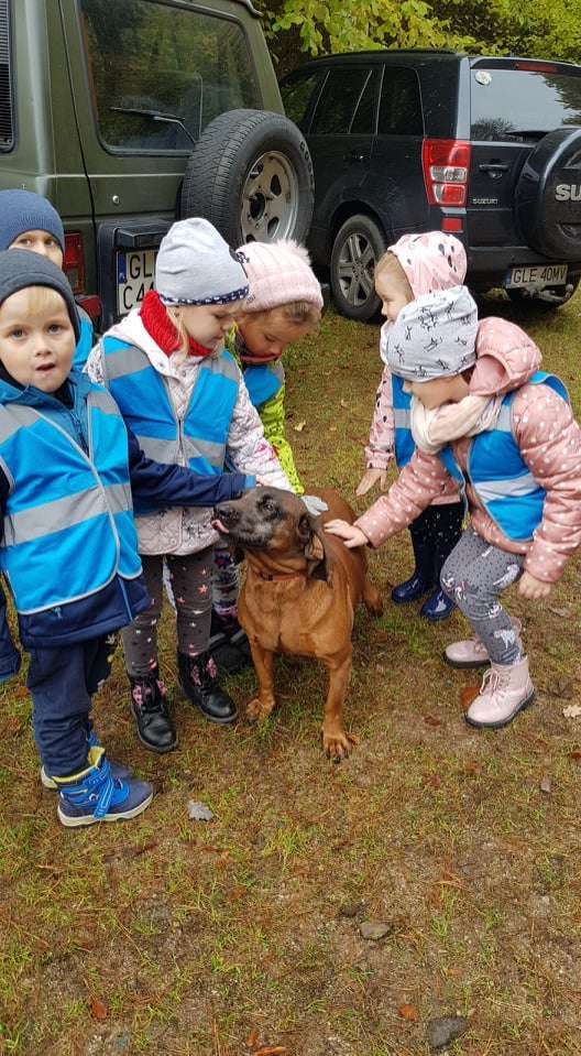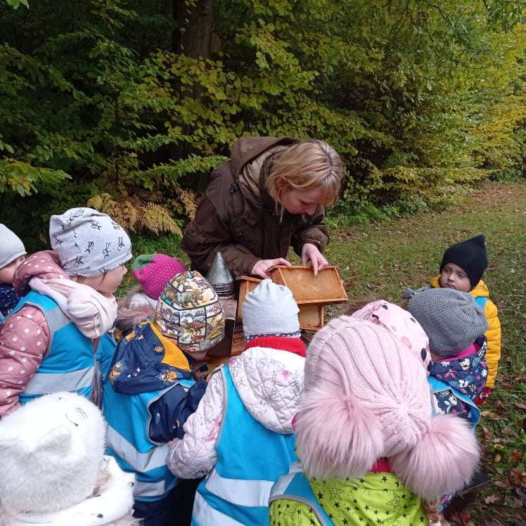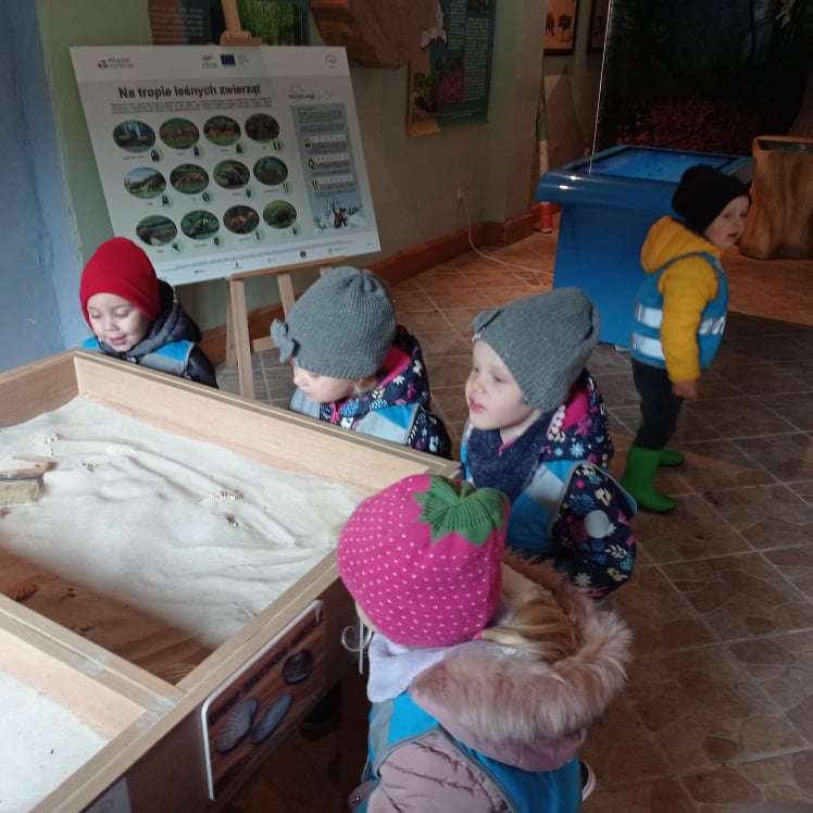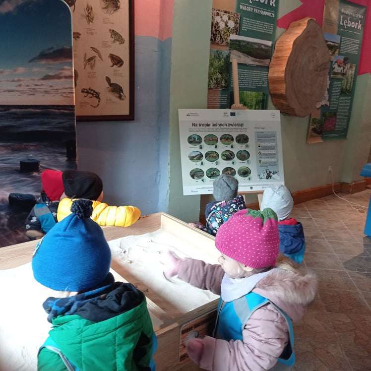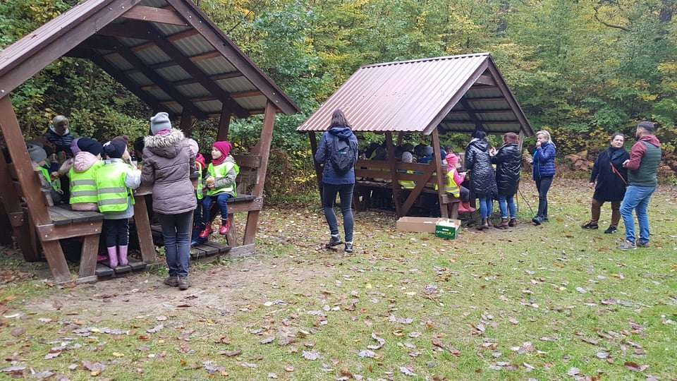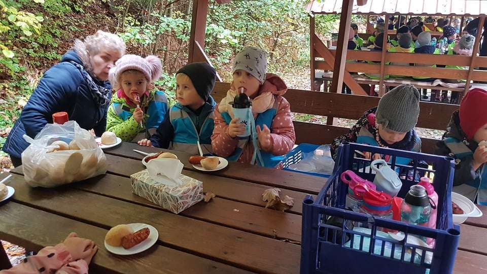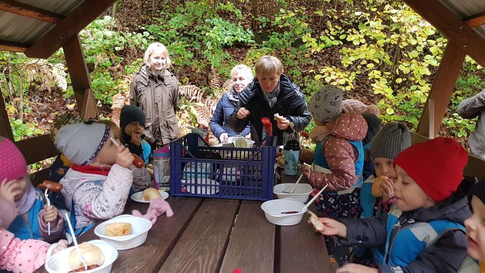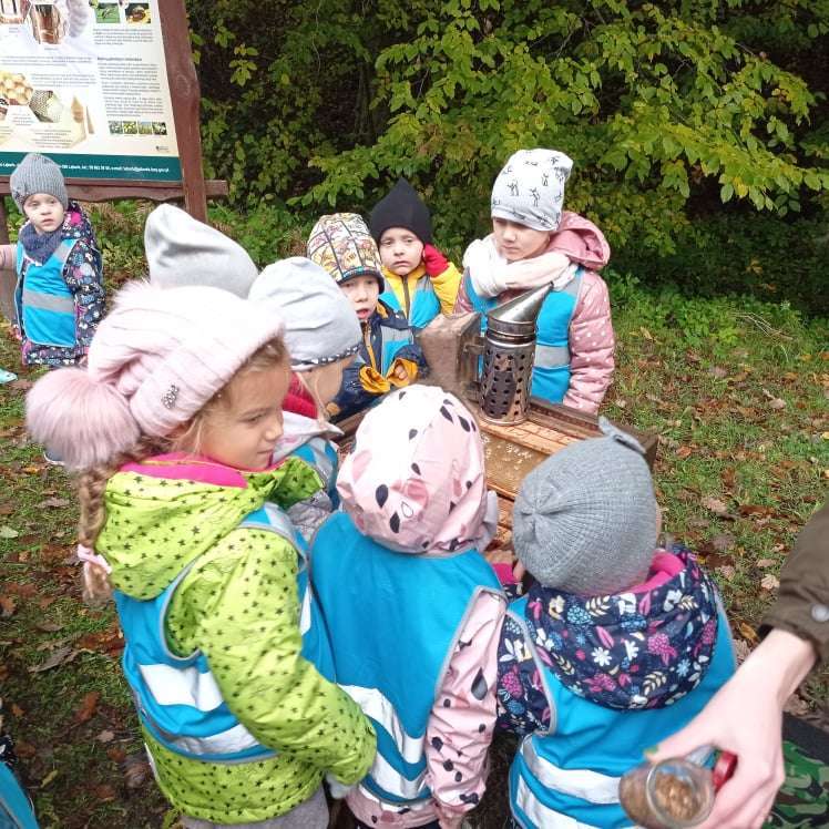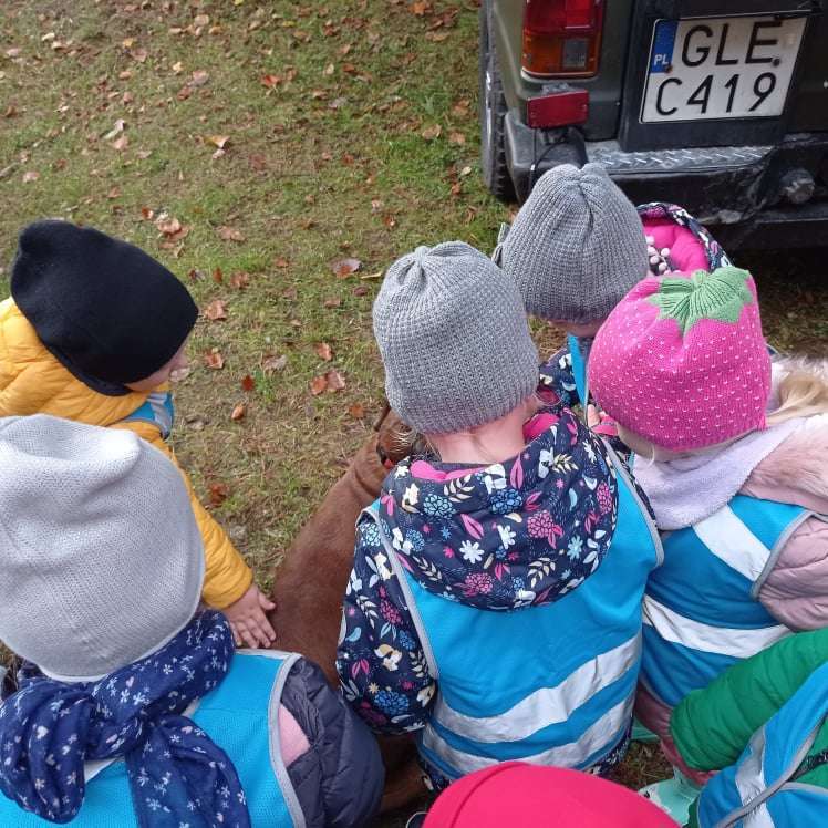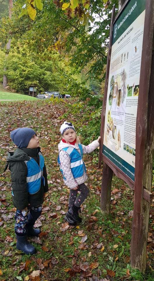 19 października 2021 r. dzieci z wszystkich grup przedszkolnych uczestniczyły w wycieczce do Drętowa. Uroczysko Drętowo to centrum edukacji przyrodniczo - leśnej Nadleśnictwa Lębork. Podczas wycieczki dzieci zwiedziły salę edukacyjną wyposażoną w materiały i eksponaty przyrodnicze. W czasie spaceru na ścieżkach przyrodniczych zdobyły informacje o gatunkach drzew, martwym drewnie, znaczeniu pszczół oraz roli psów myśliwskich. Wszystkich tych informacji udzielili dzieciom myśliwi oraz pracownicy Nadleśnictwa Lębork.