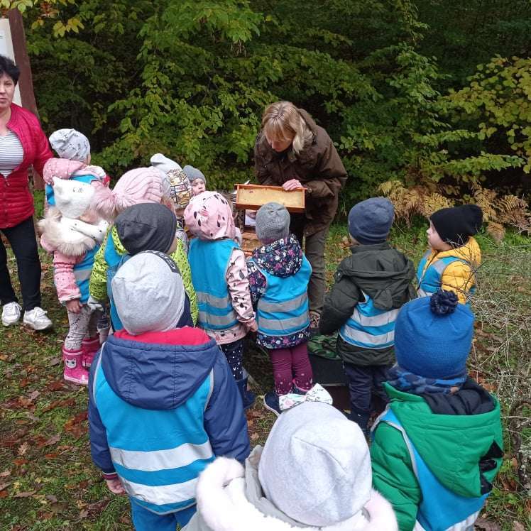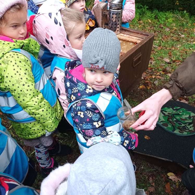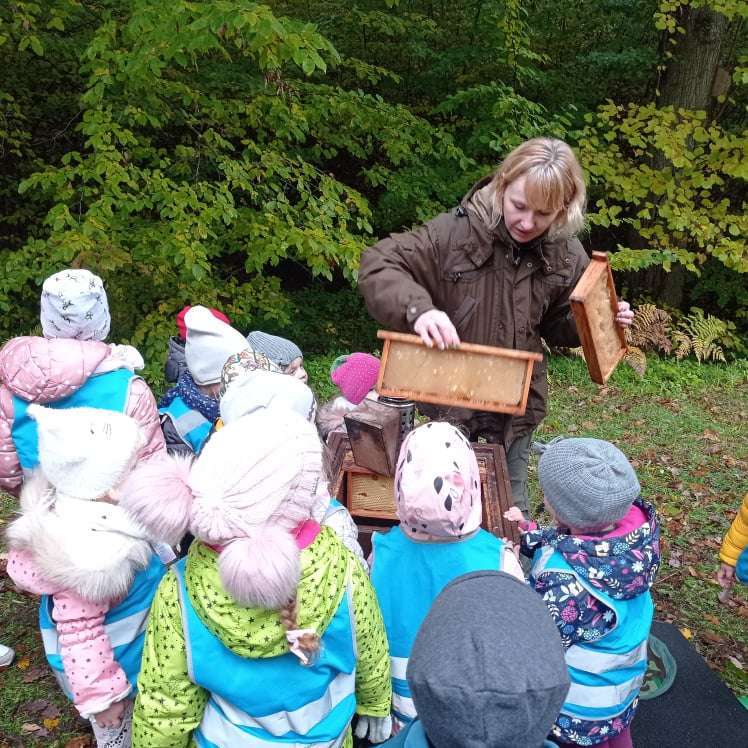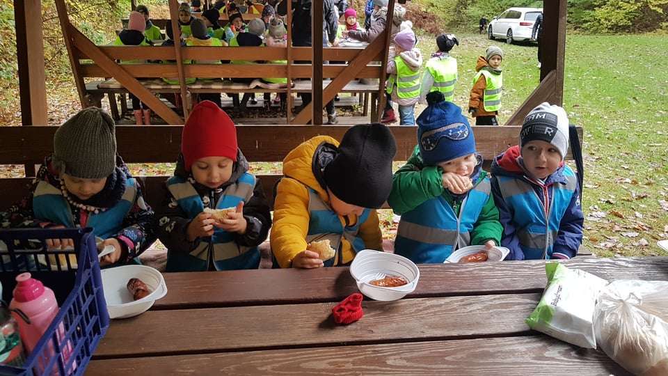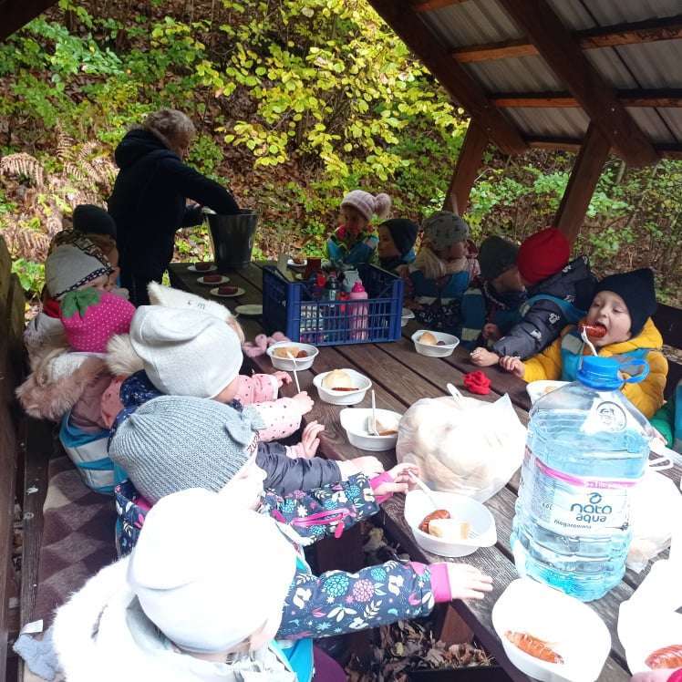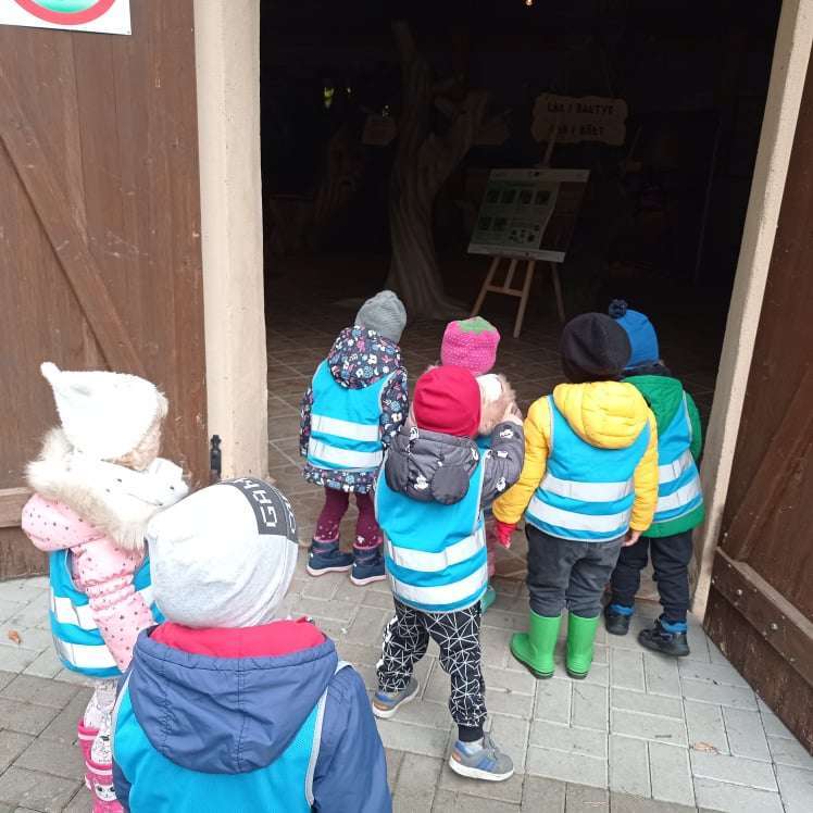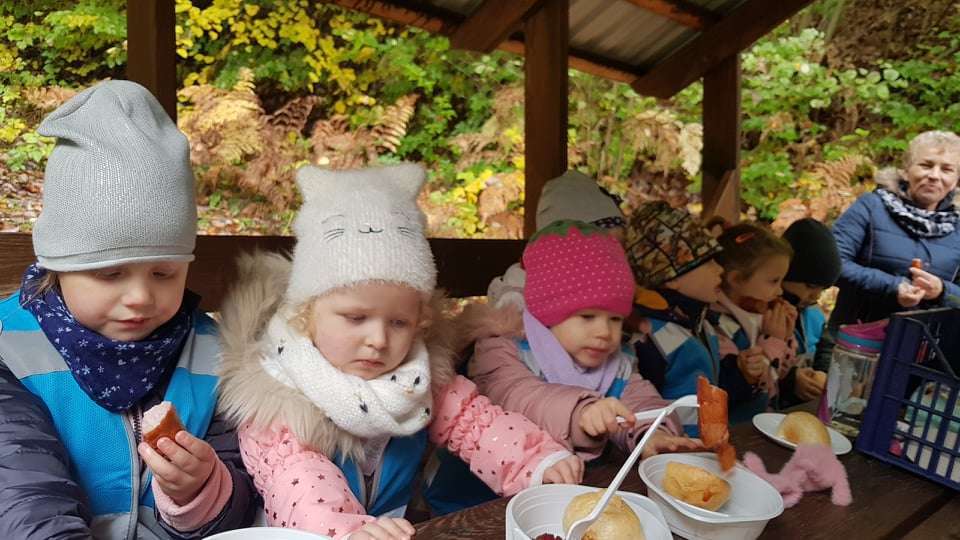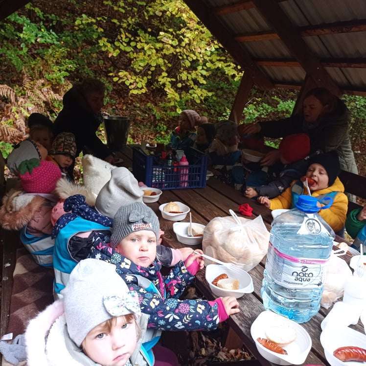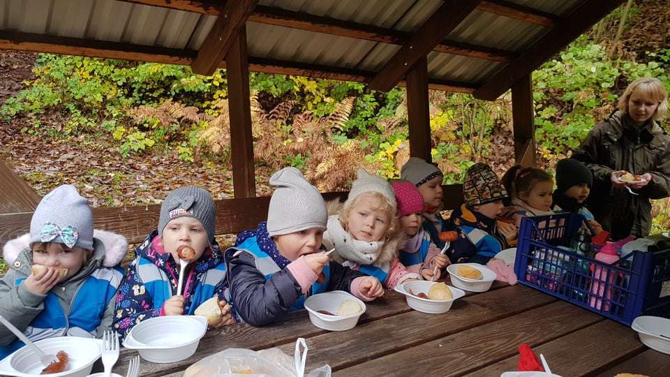 19 października 2021 r. dzieci z wszystkich grup przedszkolnych uczestniczyły w wycieczce do Drętowa. Uroczysko Drętowo to centrum edukacji przyrodniczo - leśnej Nadleśnictwa Lębork. Podczas wycieczki dzieci zwiedziły salę edukacyjną wyposażoną w materiały i eksponaty przyrodnicze. W czasie spaceru na ścieżkach przyrodniczych zdobyły informacje o gatunkach drzew, martwym drewnie, znaczeniu pszczół oraz roli psów myśliwskich. Wszystkich tych informacji udzielili dzieciom myśliwi oraz pracownicy Nadleśnictwa Lębork.