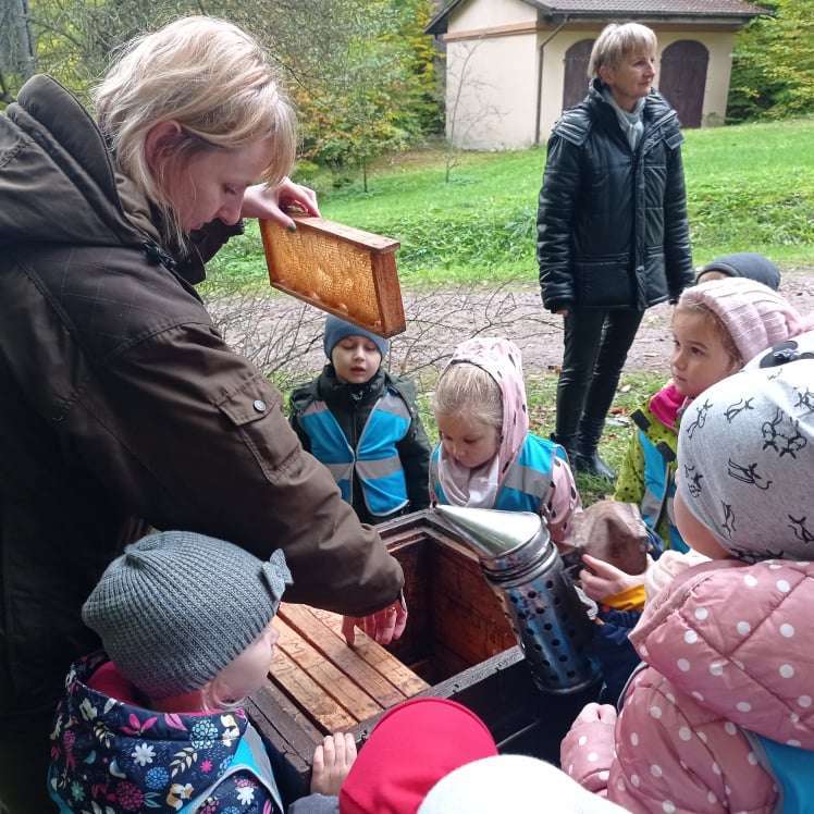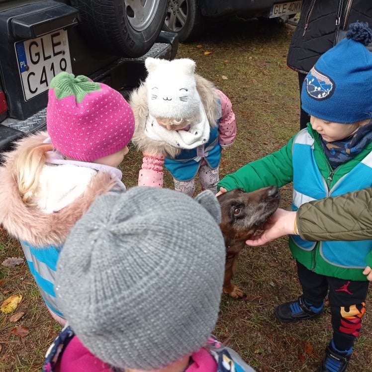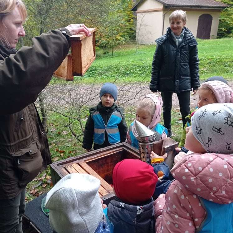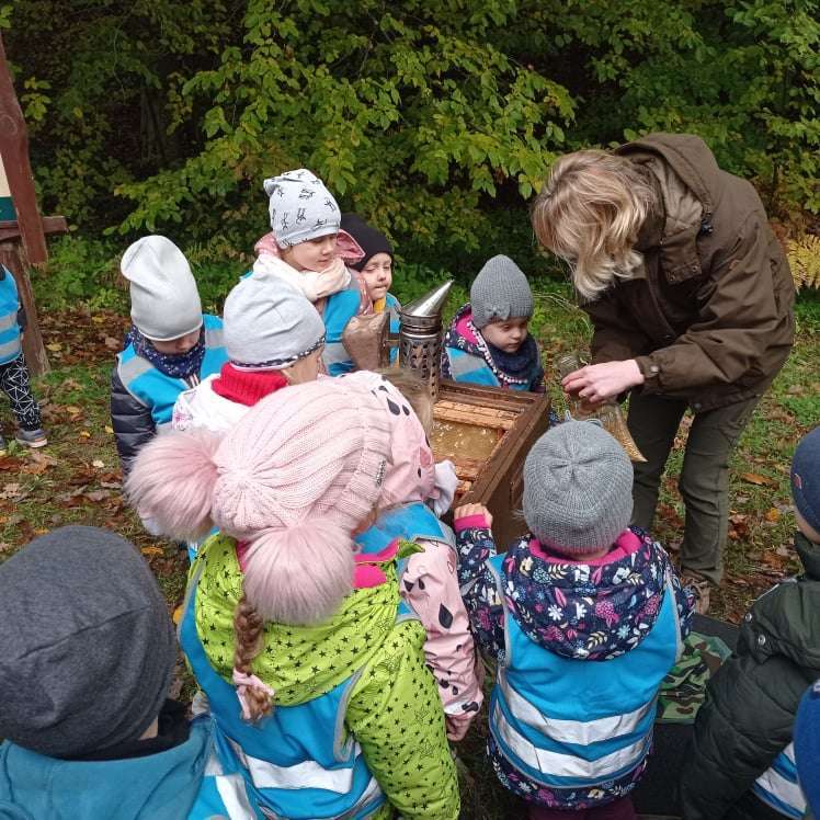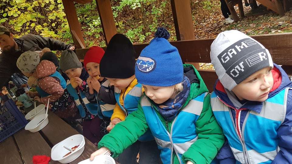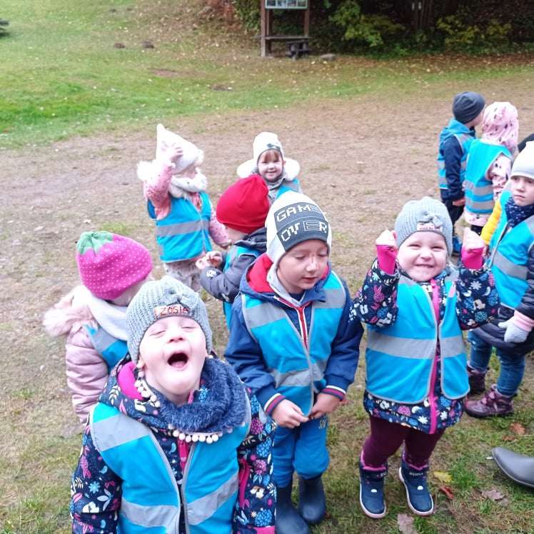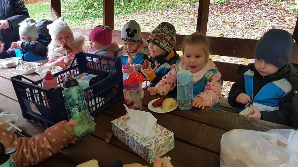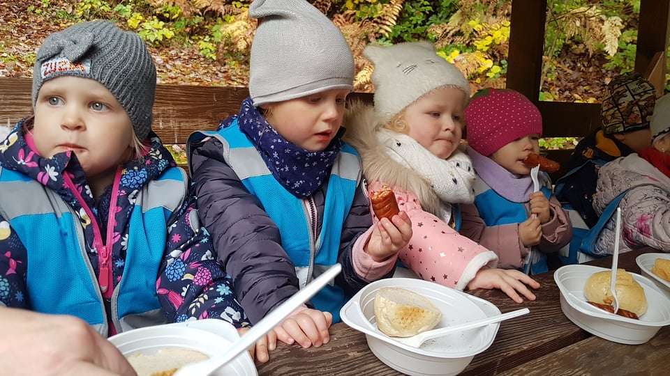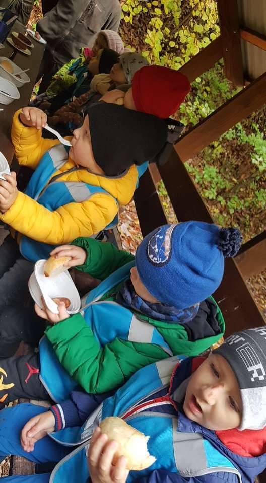 19 października 2021 r. dzieci z wszystkich grup przedszkolnych uczestniczyły w wycieczce do Drętowa. Uroczysko Drętowo to centrum edukacji przyrodniczo - leśnej Nadleśnictwa Lębork. Podczas wycieczki dzieci zwiedziły salę edukacyjną wyposażoną w materiały i eksponaty przyrodnicze. W czasie spaceru na ścieżkach przyrodniczych zdobyły informacje o gatunkach drzew, martwym drewnie, znaczeniu pszczół oraz roli psów myśliwskich. Wszystkich tych informacji udzielili dzieciom myśliwi oraz pracownicy Nadleśnictwa Lębork.