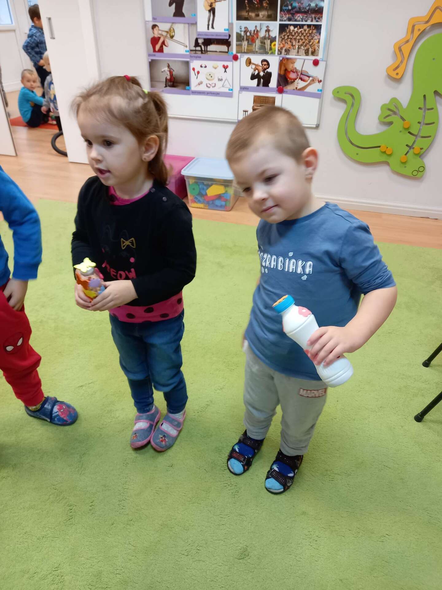 Dzieci pokazują swoje instrumenty muzyczne