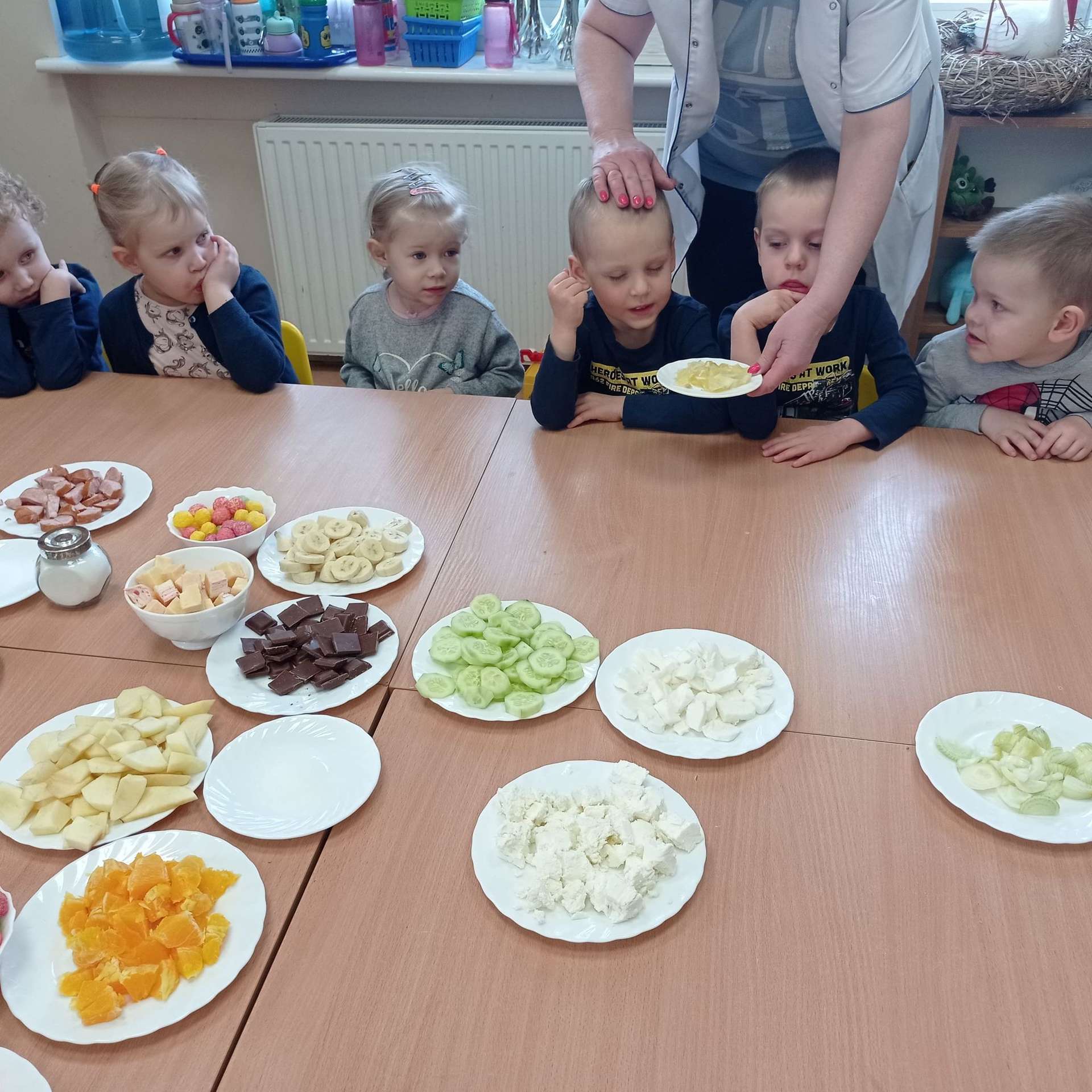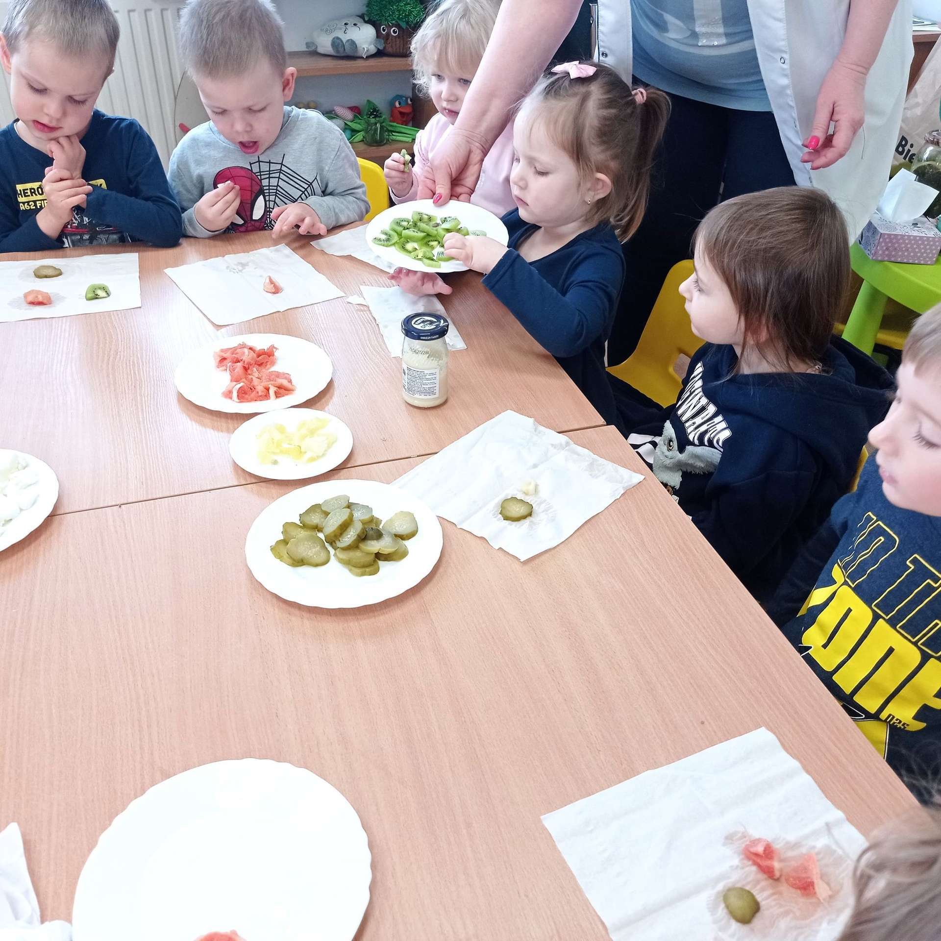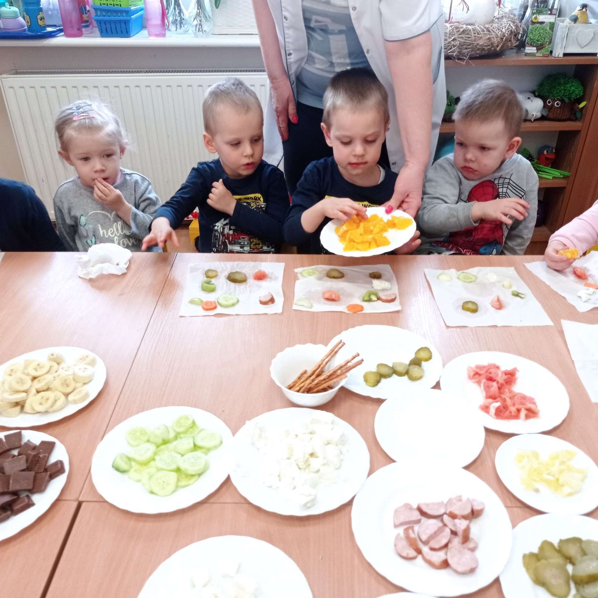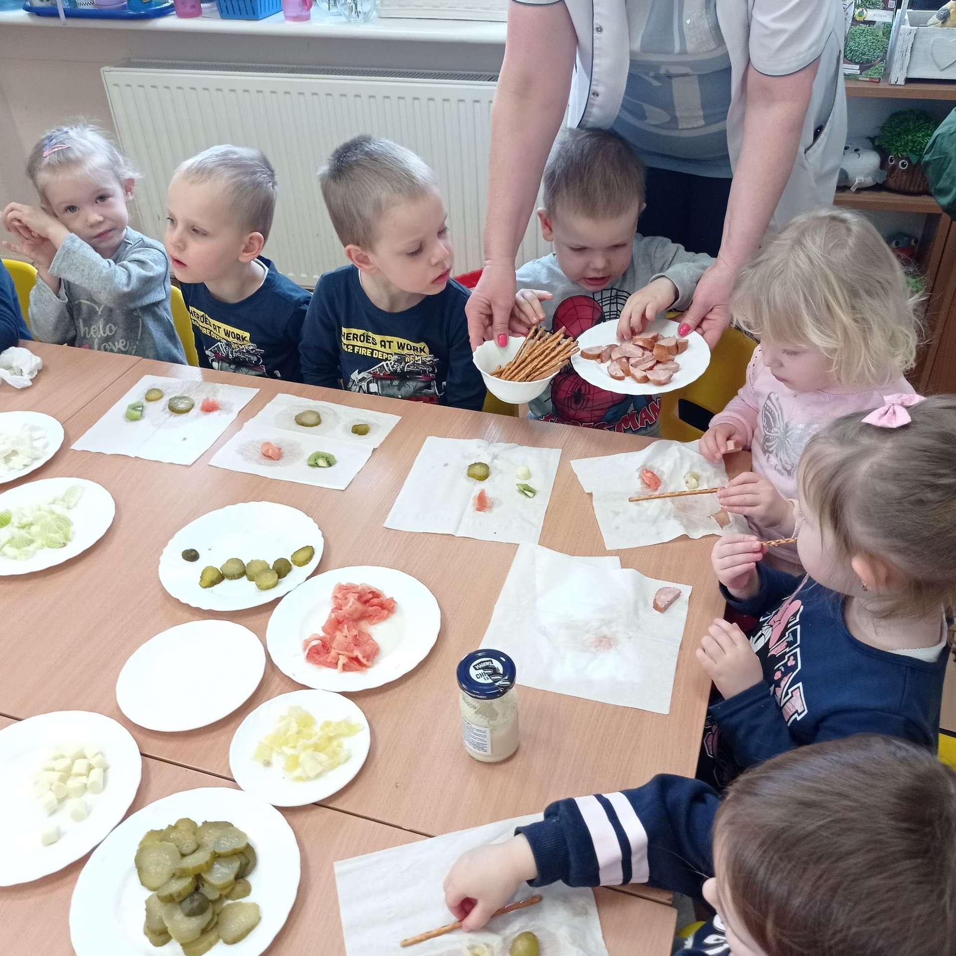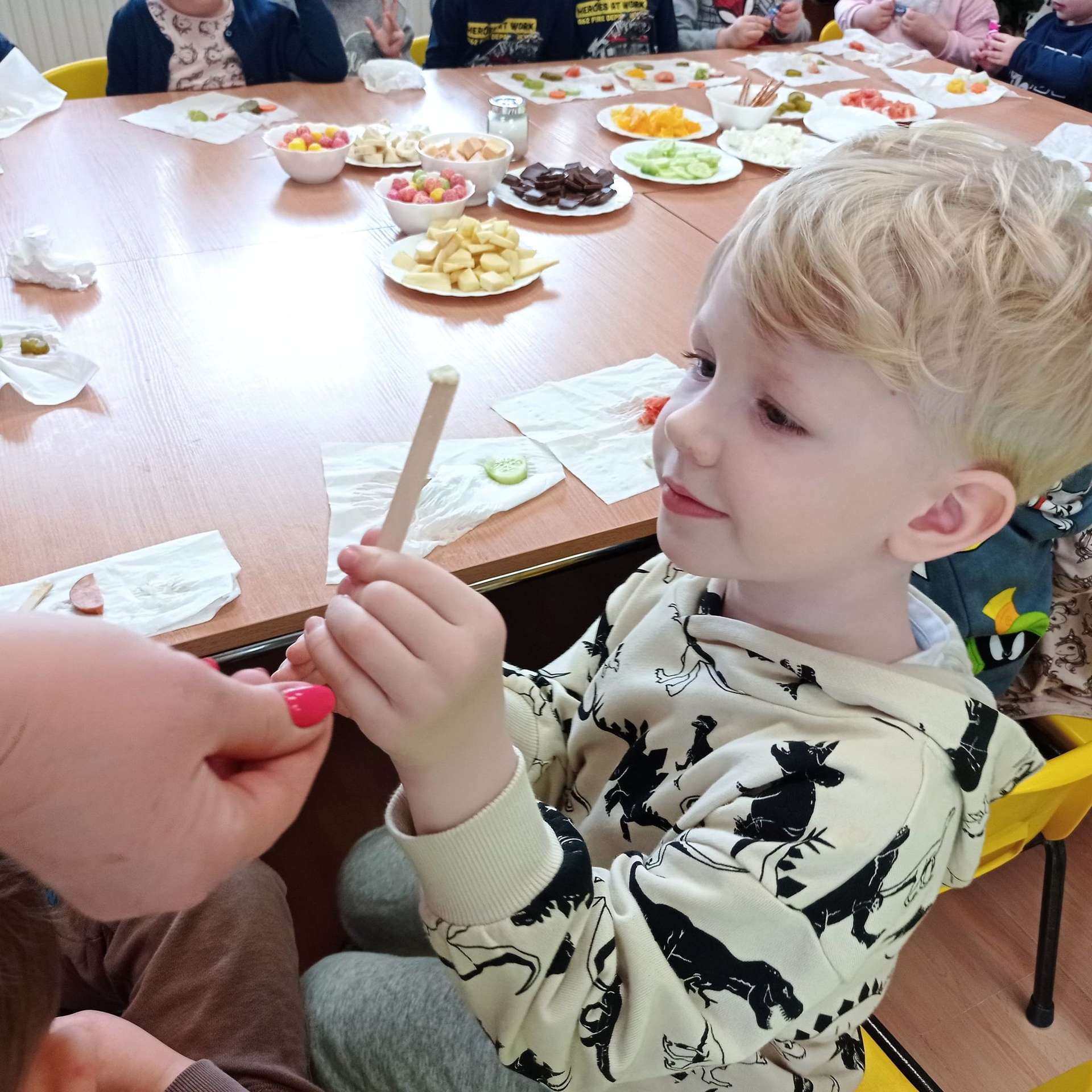 Przed kolejnym zadaniem stanęły "Żabki", w tym miesiącu poznały kolejny zmysł, tym razem był to smak. Dzieci na początku dowiedziały się jak to się dzieje, że czujemy smaki. Przedszkolaki obejrzały krótki film oraz patrząc w lusterka poznawały swój język, towarzyszyły tym zajęciom również zabawy ruchowe. Na koniec "Żabki" próbowały wielu przysmaków. Było kilkoro dzieci które wykazały się odwagą próbując chrzan oraz cebulę. Miny dzisiaj były różne :-) takie po cytrynie i po czekoladzie.