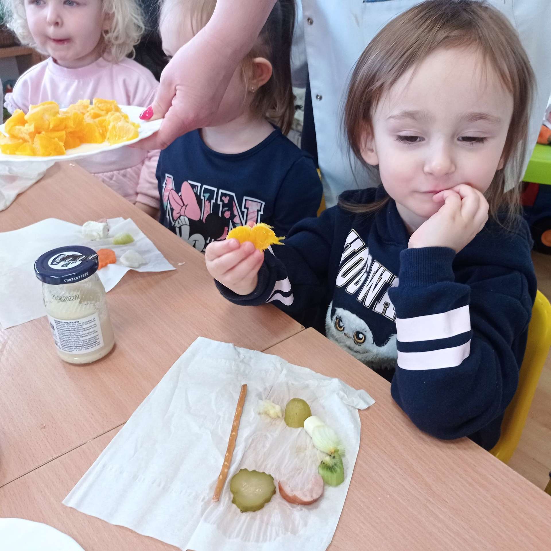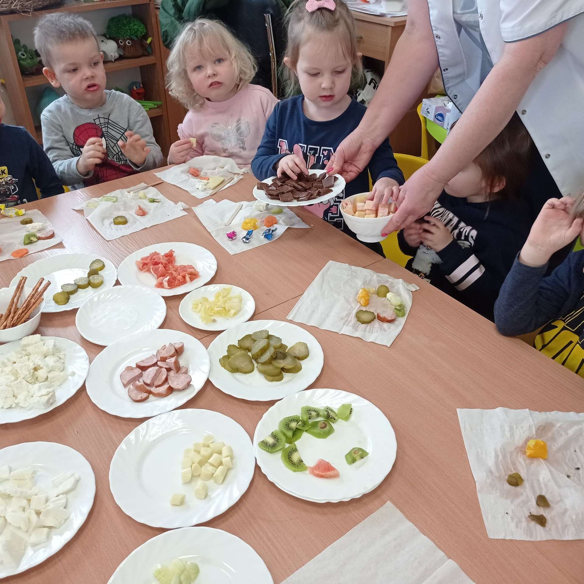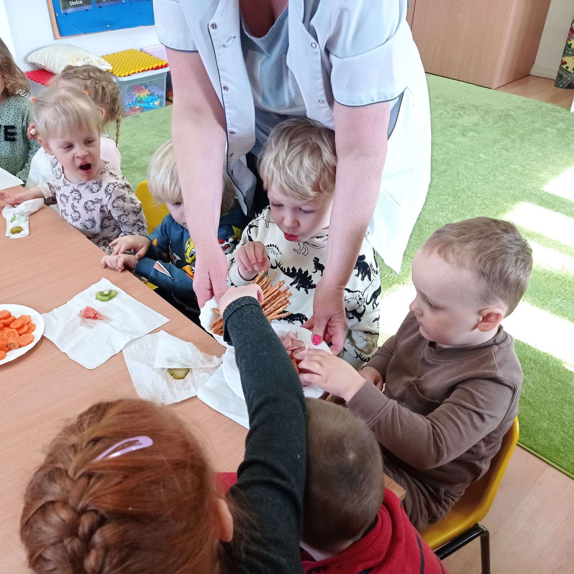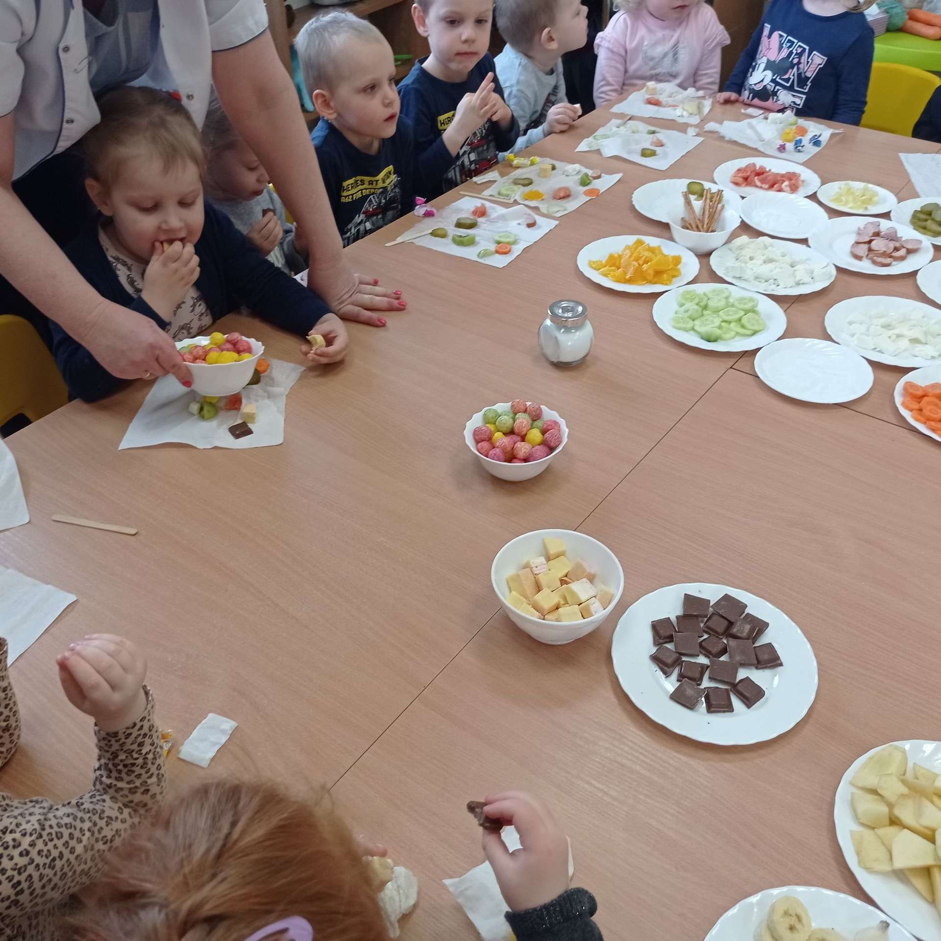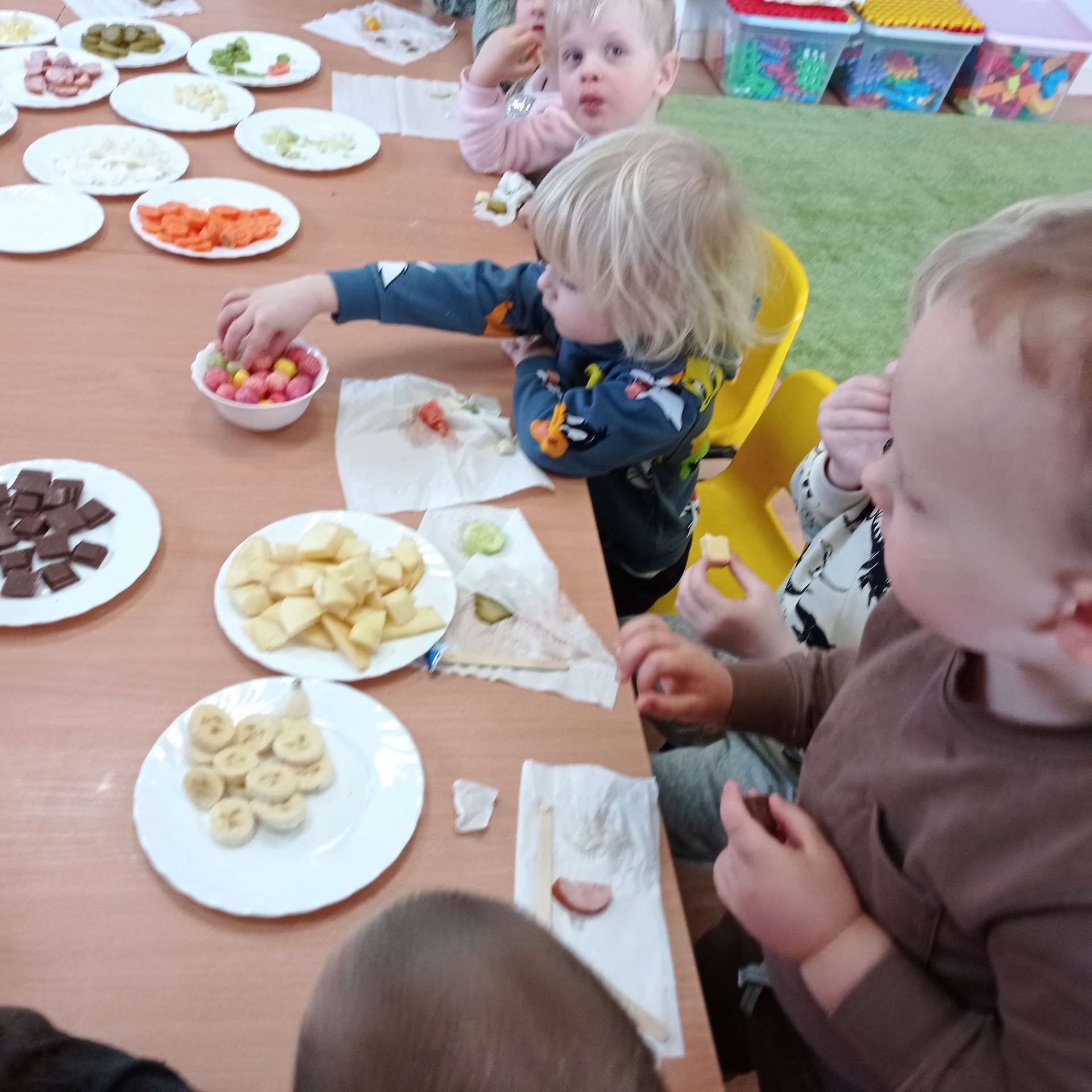 Przed kolejnym zadaniem stanęły "Żabki", w tym miesiącu poznały kolejny zmysł, tym razem był to smak. Dzieci na początku dowiedziały się jak to się dzieje, że czujemy smaki. Przedszkolaki obejrzały krótki film oraz patrząc w lusterka poznawały swój język, towarzyszyły tym zajęciom również zabawy ruchowe. Na koniec "Żabki" próbowały wielu przysmaków. Było kilkoro dzieci które wykazały się odwagą próbując chrzan oraz cebulę. Miny dzisiaj były różne :-) takie po cytrynie i po czekoladzie.