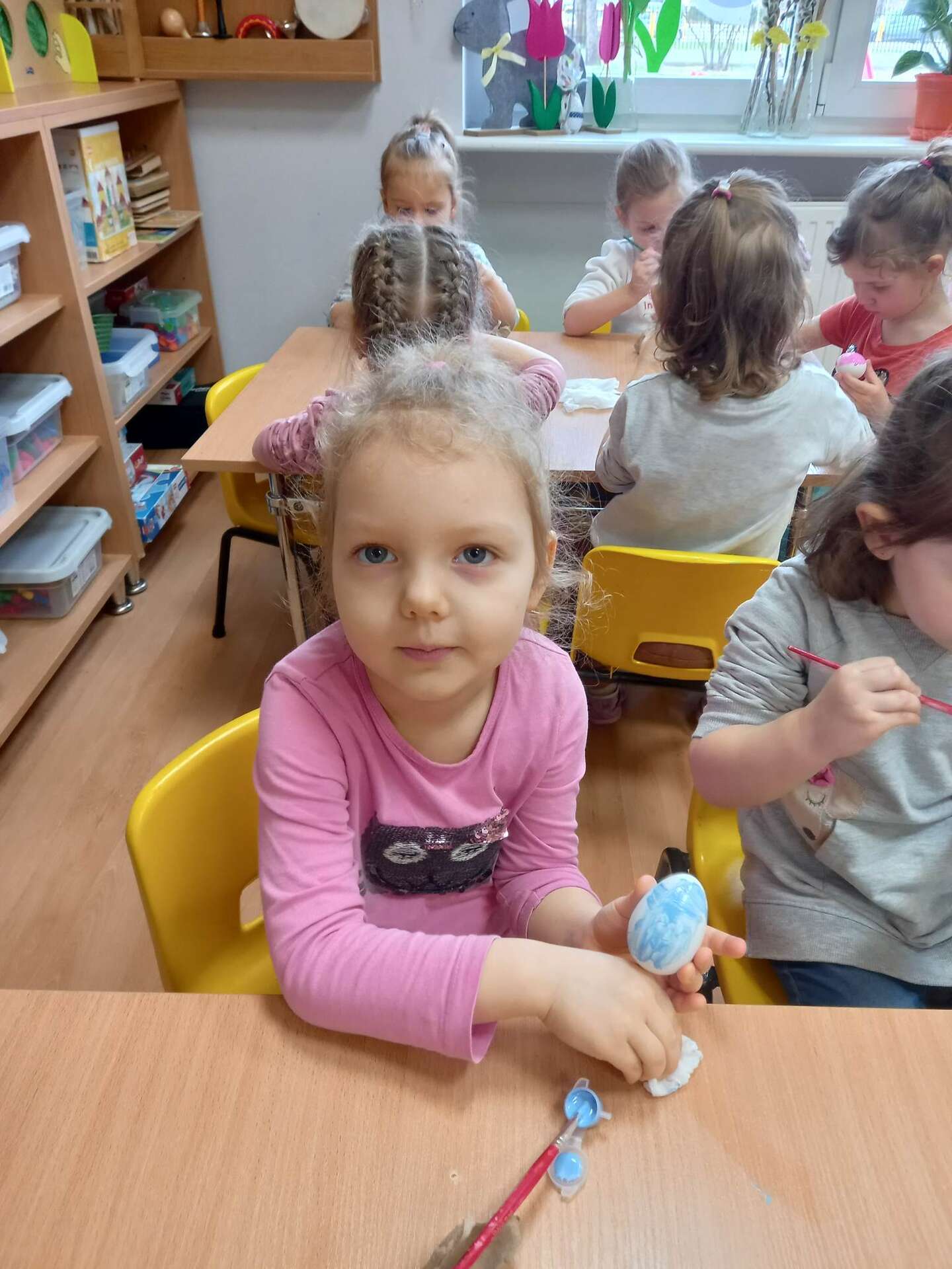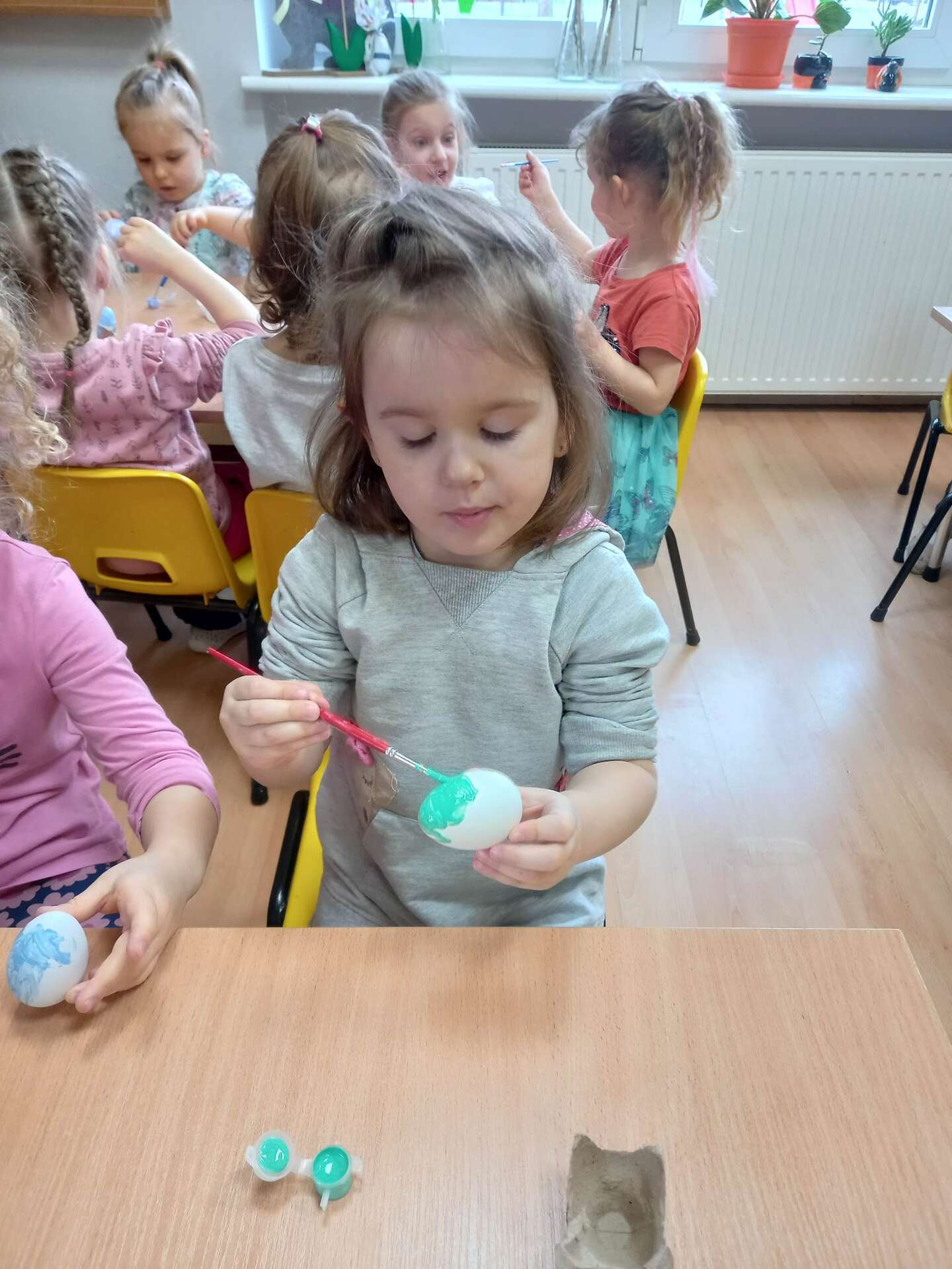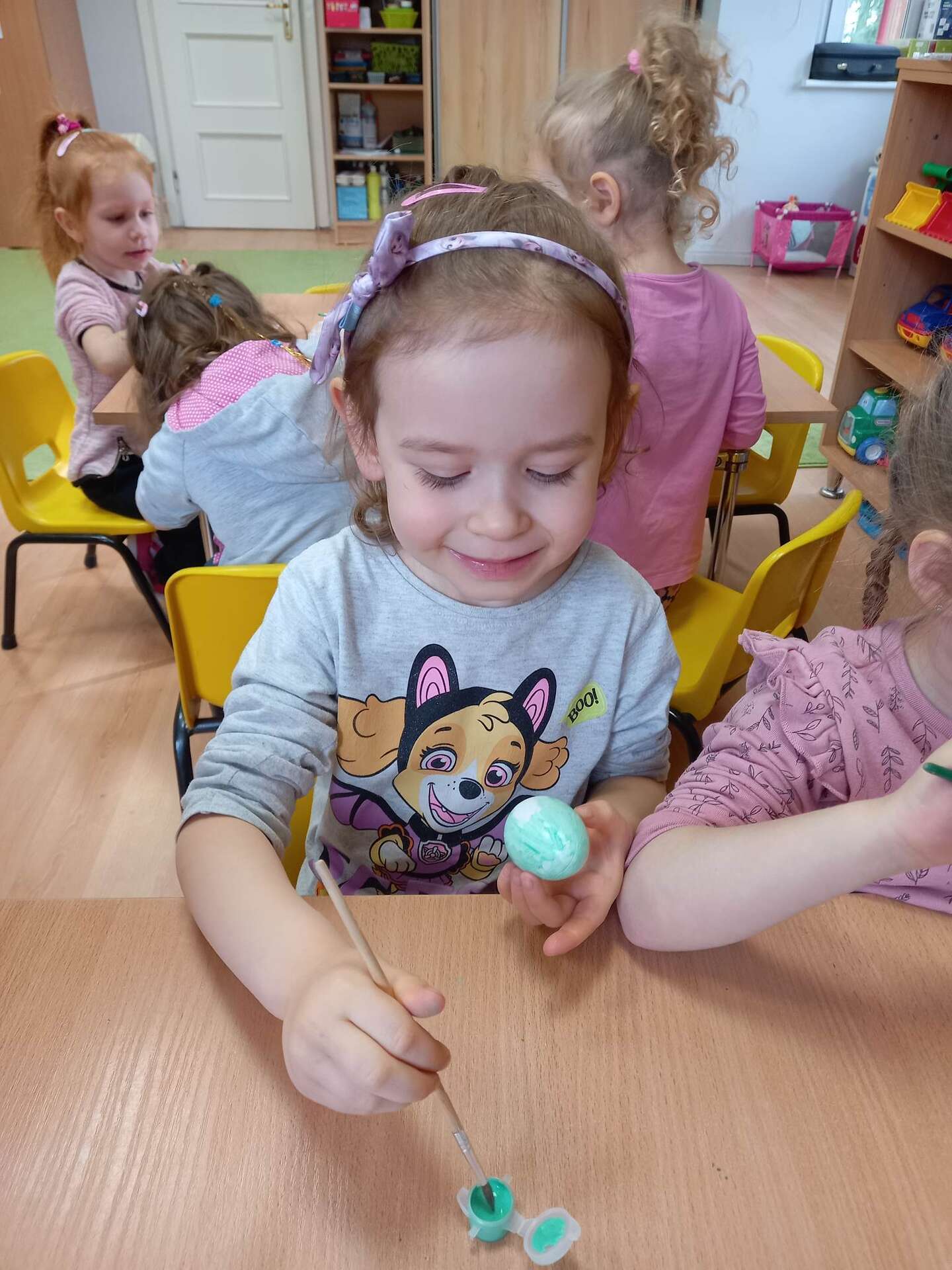 Dzieci malują styropianowe jajka
