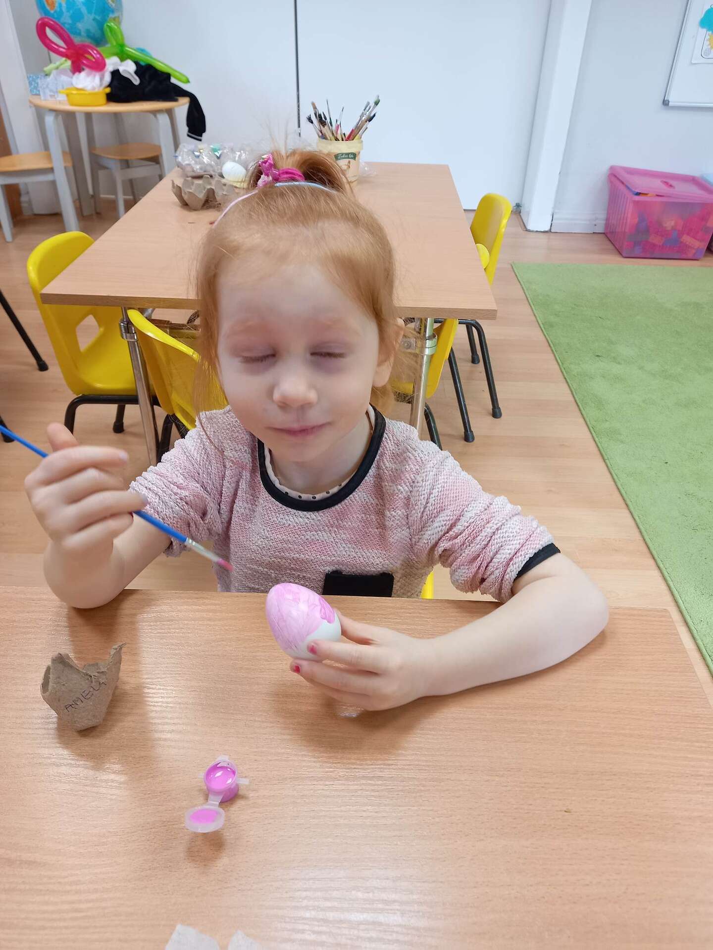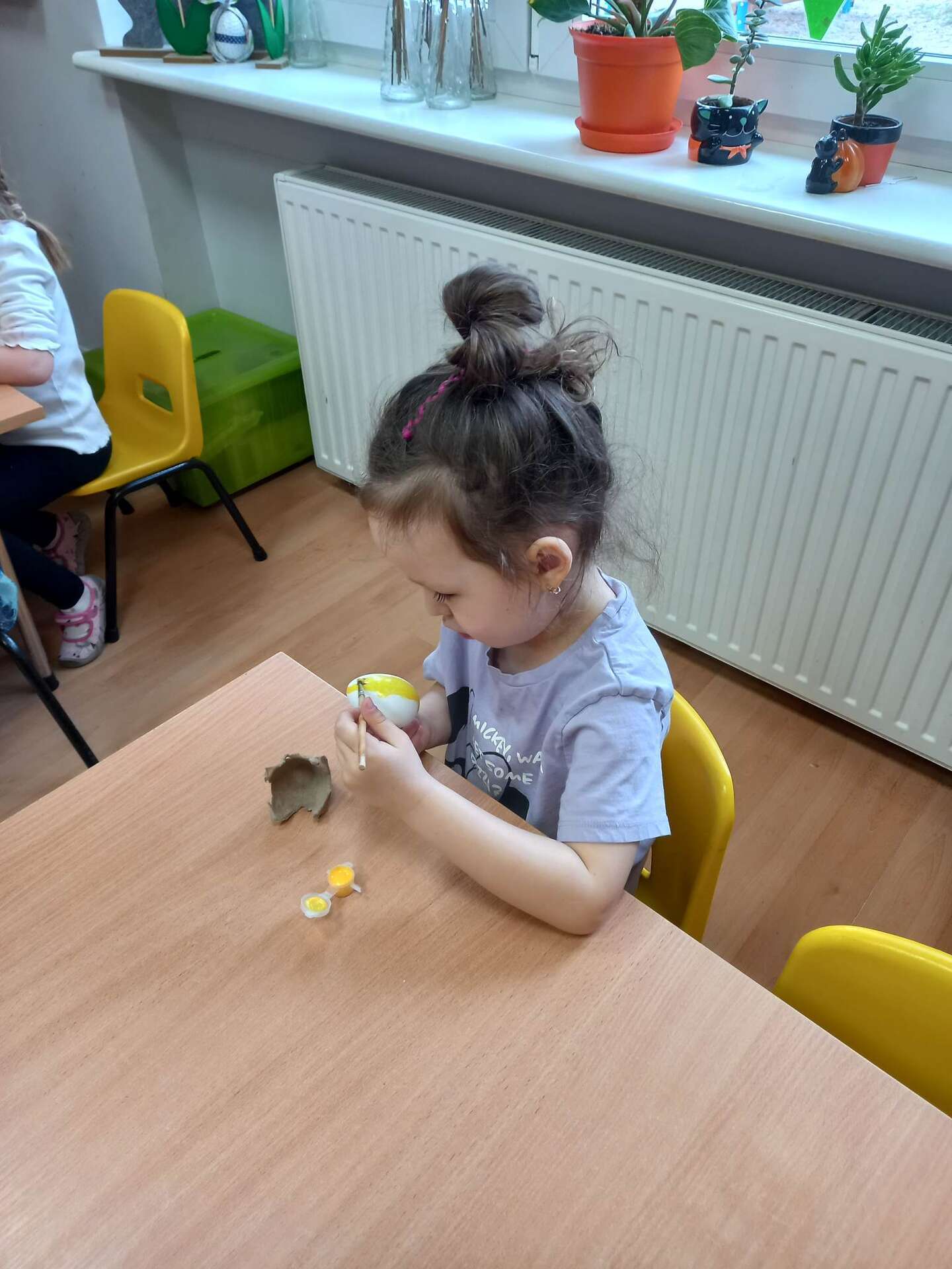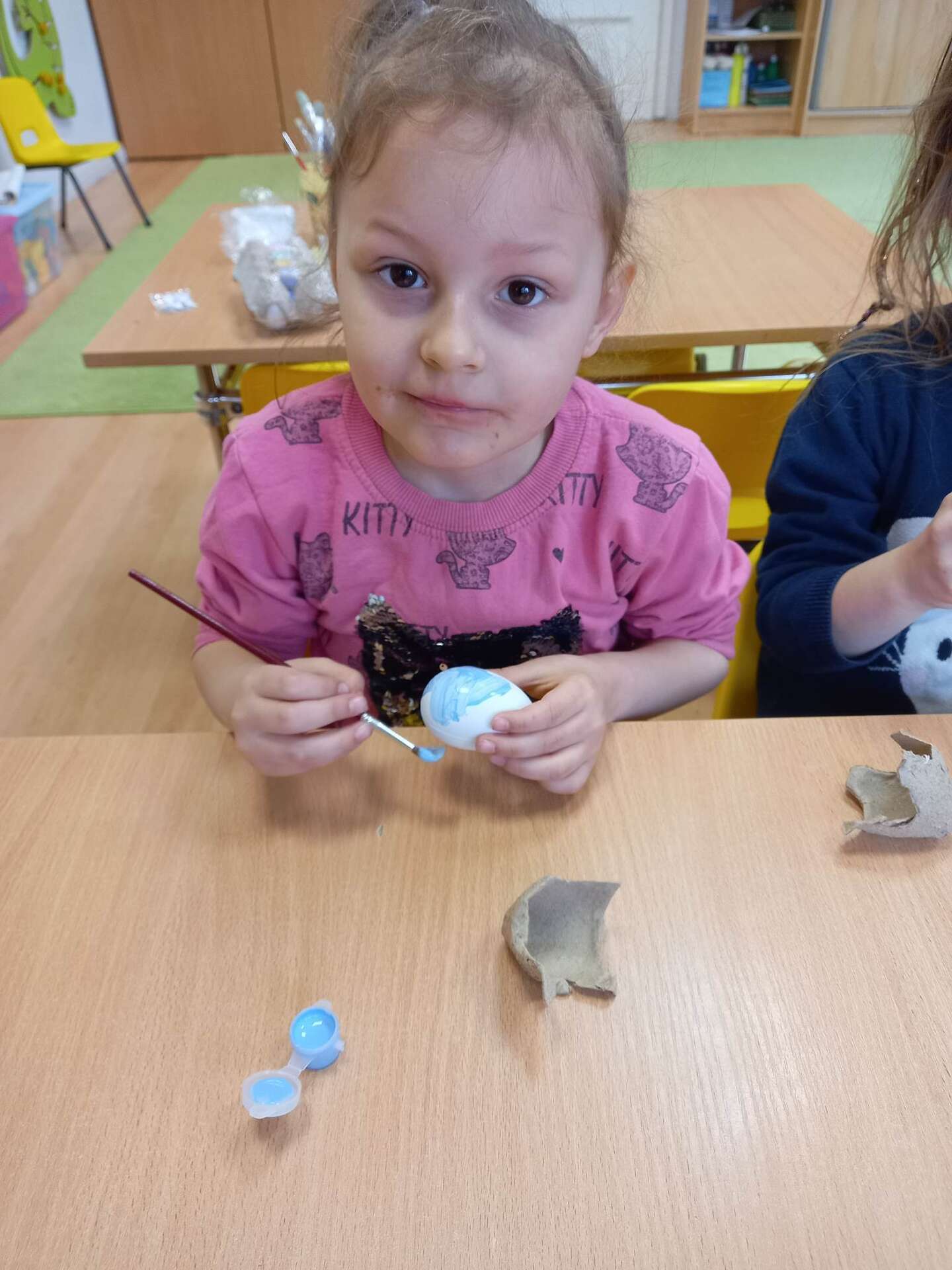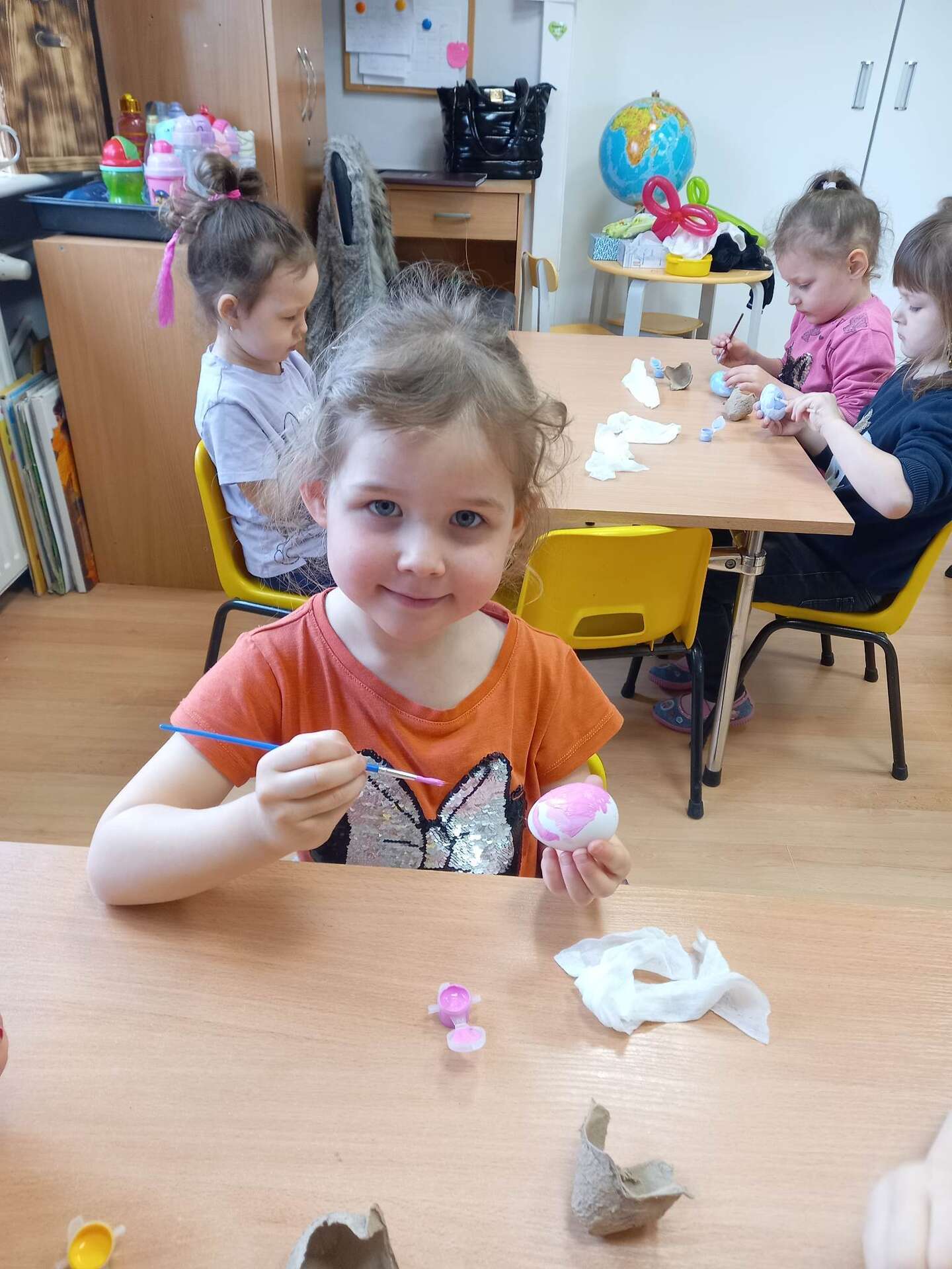 Dzieci malują styropianowe jajka