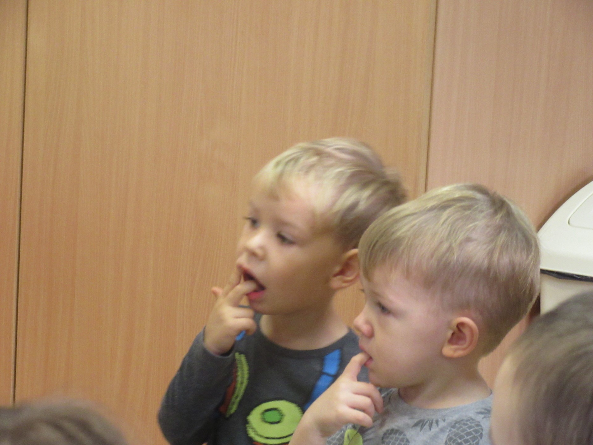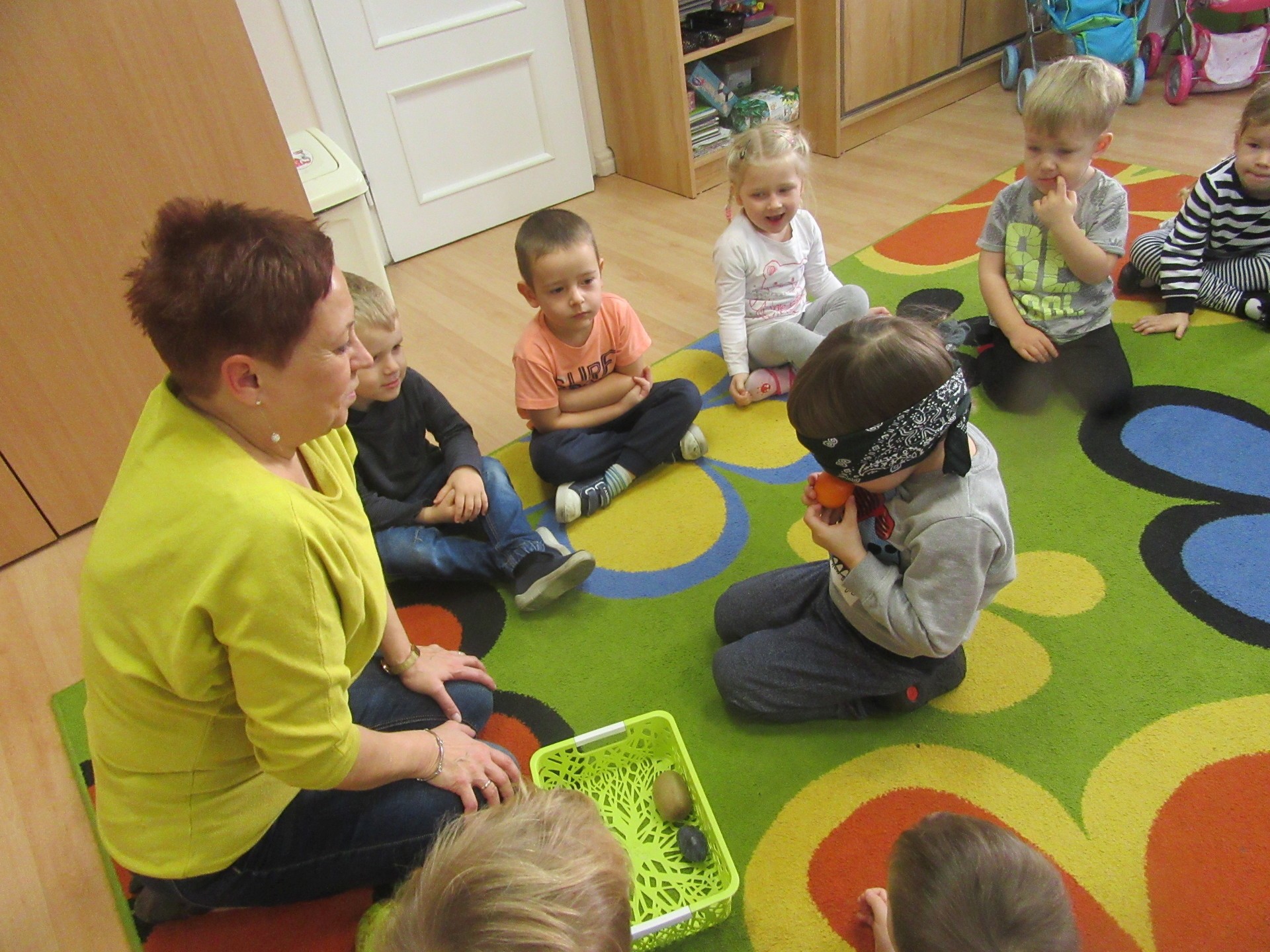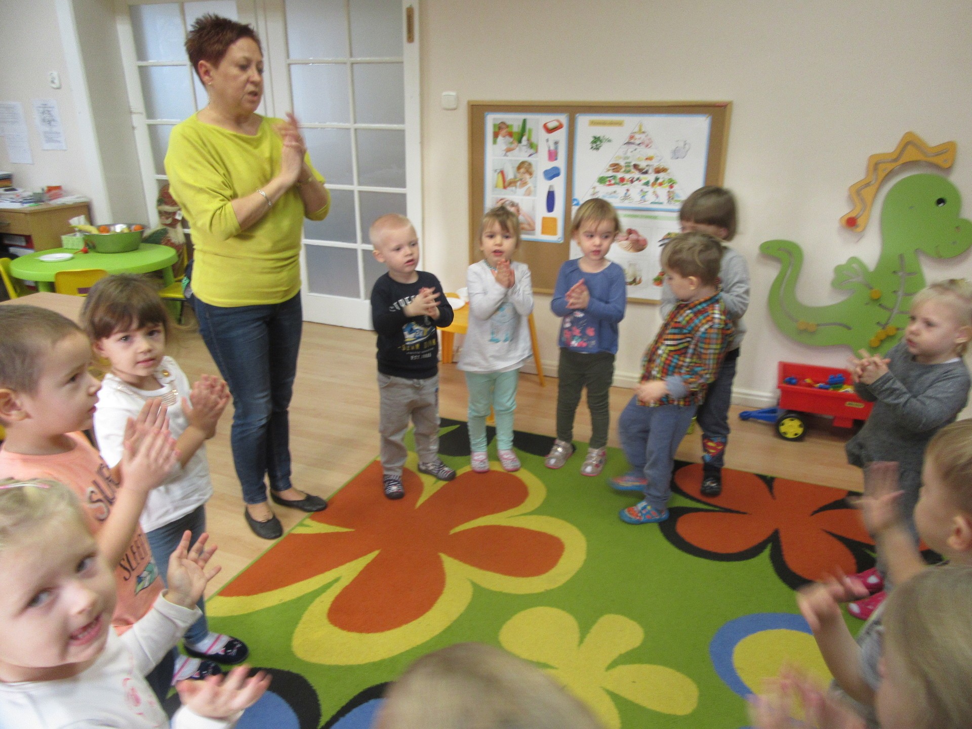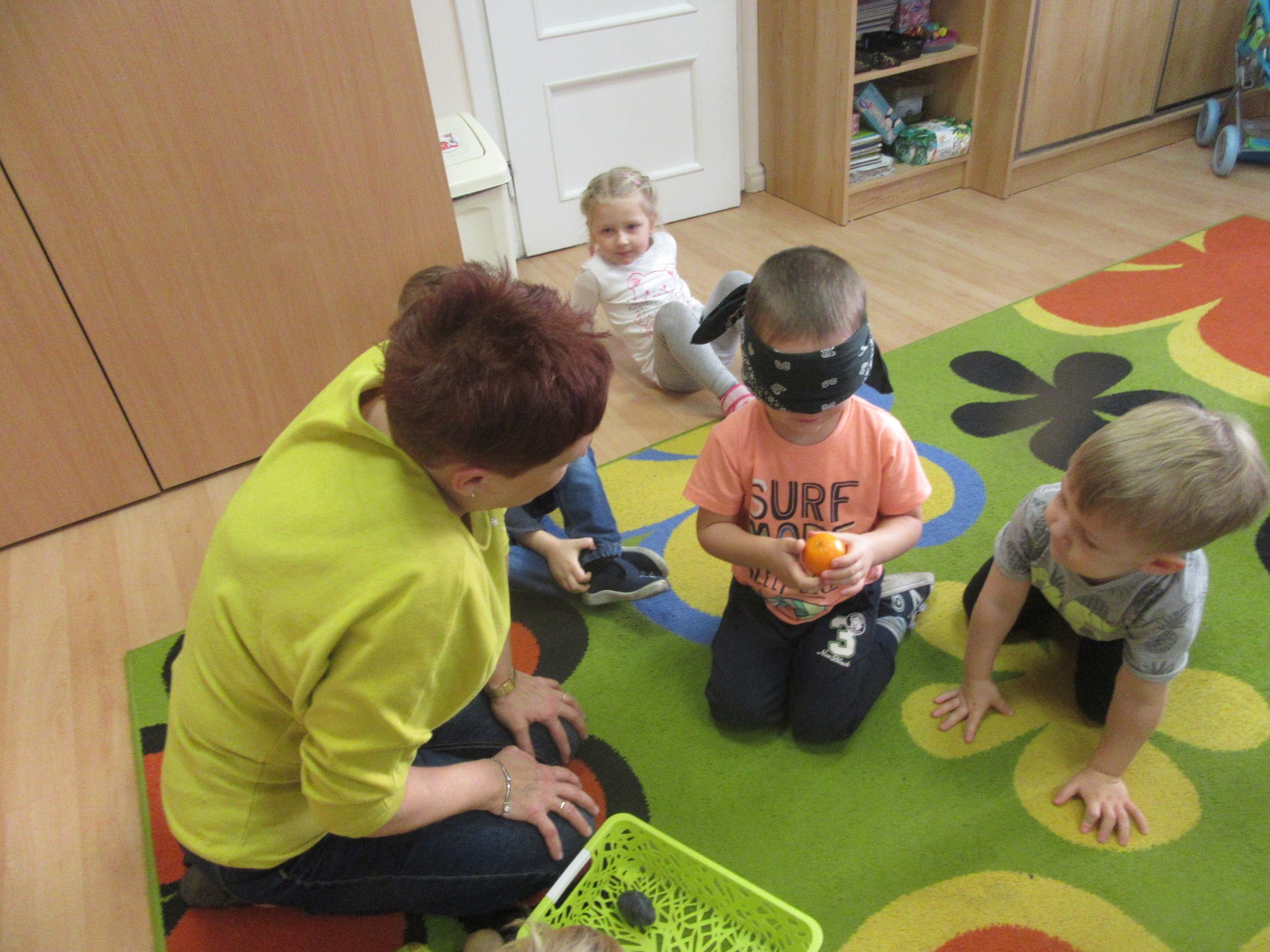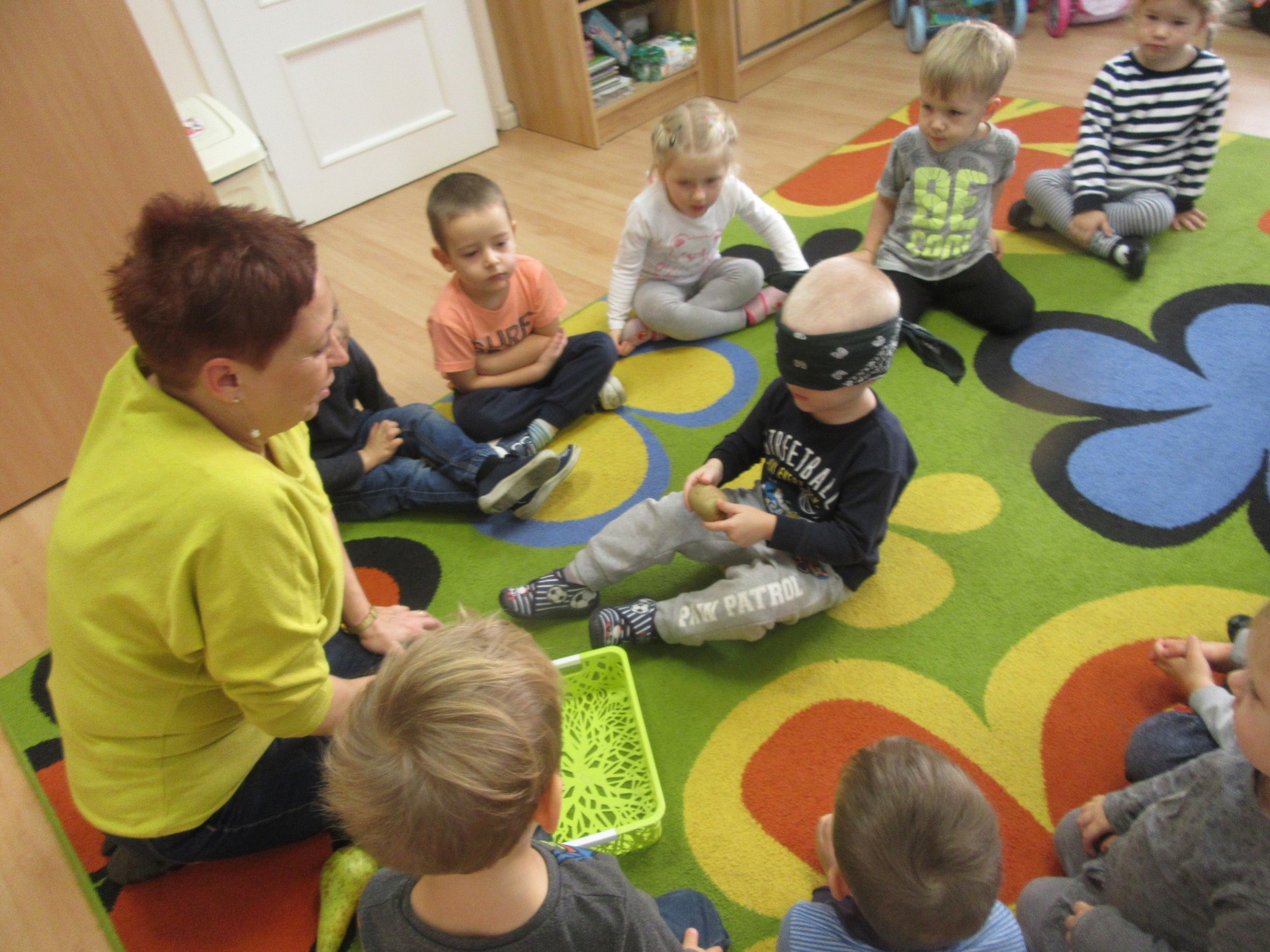 Smaczna, zdrowa, kolorowa – to sałatka owocowa. Kierując się tą myślą, a także tematyką kompleksową „Zdrowo się odżywiam” postanowiliśmy samodzielnie przygotować zdrową, witaminową przekąskę. Przedszkolaki odpowiednio przygotowane do pracy, z wielkim zaangażowaniem dzielnie kroiły przyniesione do przedszkola owoce: jabłka, gruszki, banany, winogrona, kiwi, mandarynki. Po ich pokrojeniu nastąpiło wymieszanie wszystkich witaminowych słodkości, z których powstała sałatka.