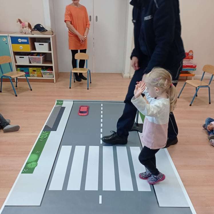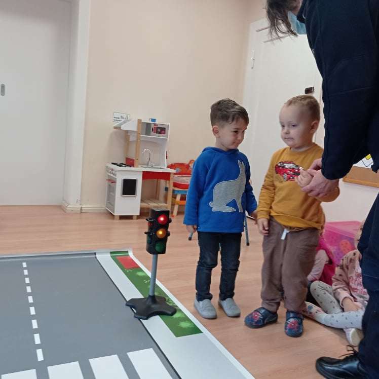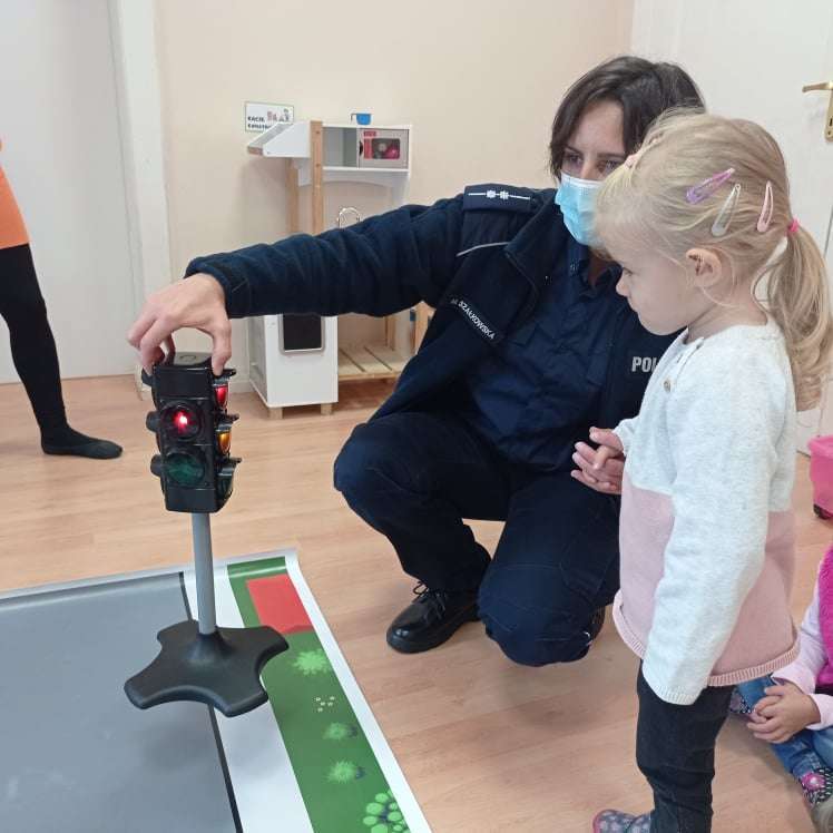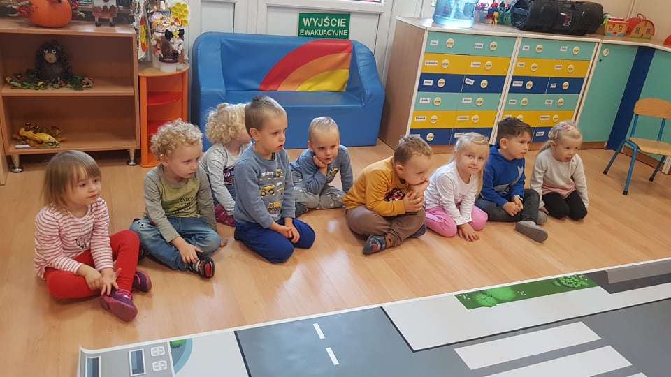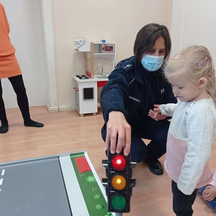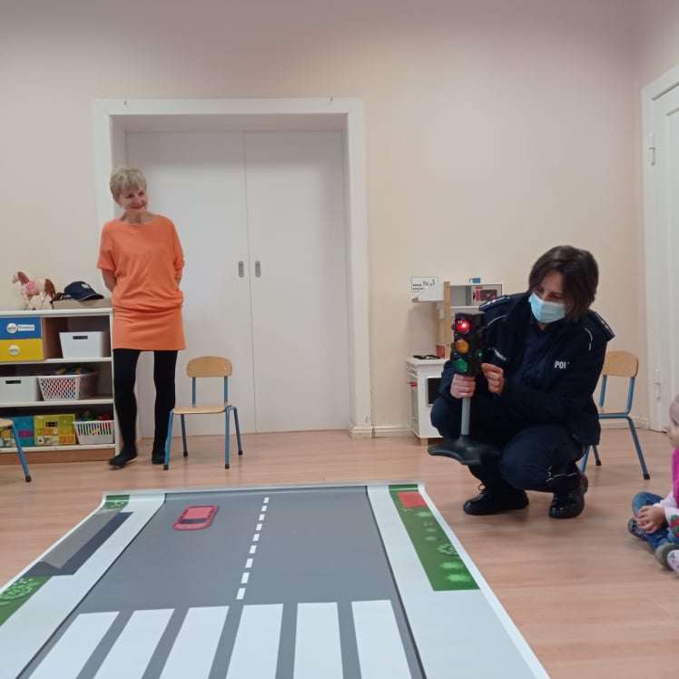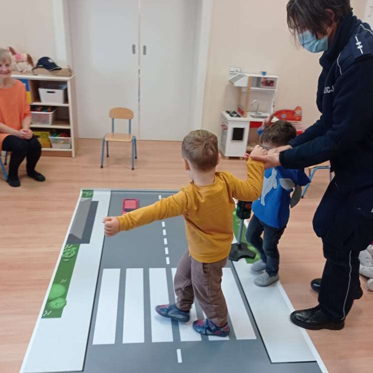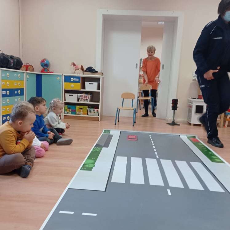 15.10.2021 r. gościliśmy w przedszkolu p. policjantkę, która przybliżyła dzieciom zasady bezpieczeństwa ruchu drogowego. Spotkania odbyły się oddzielnie w każdej grupie wiekowej.