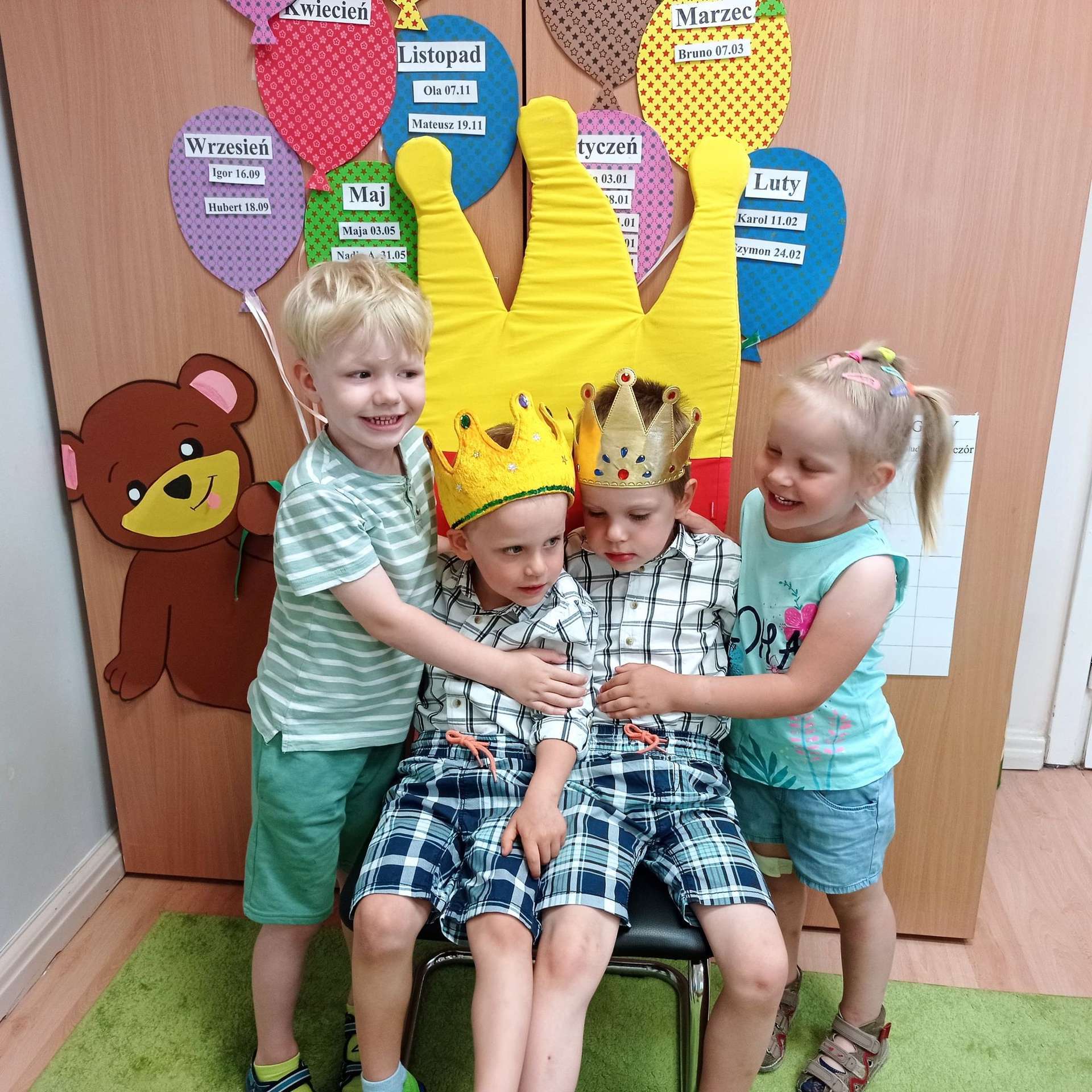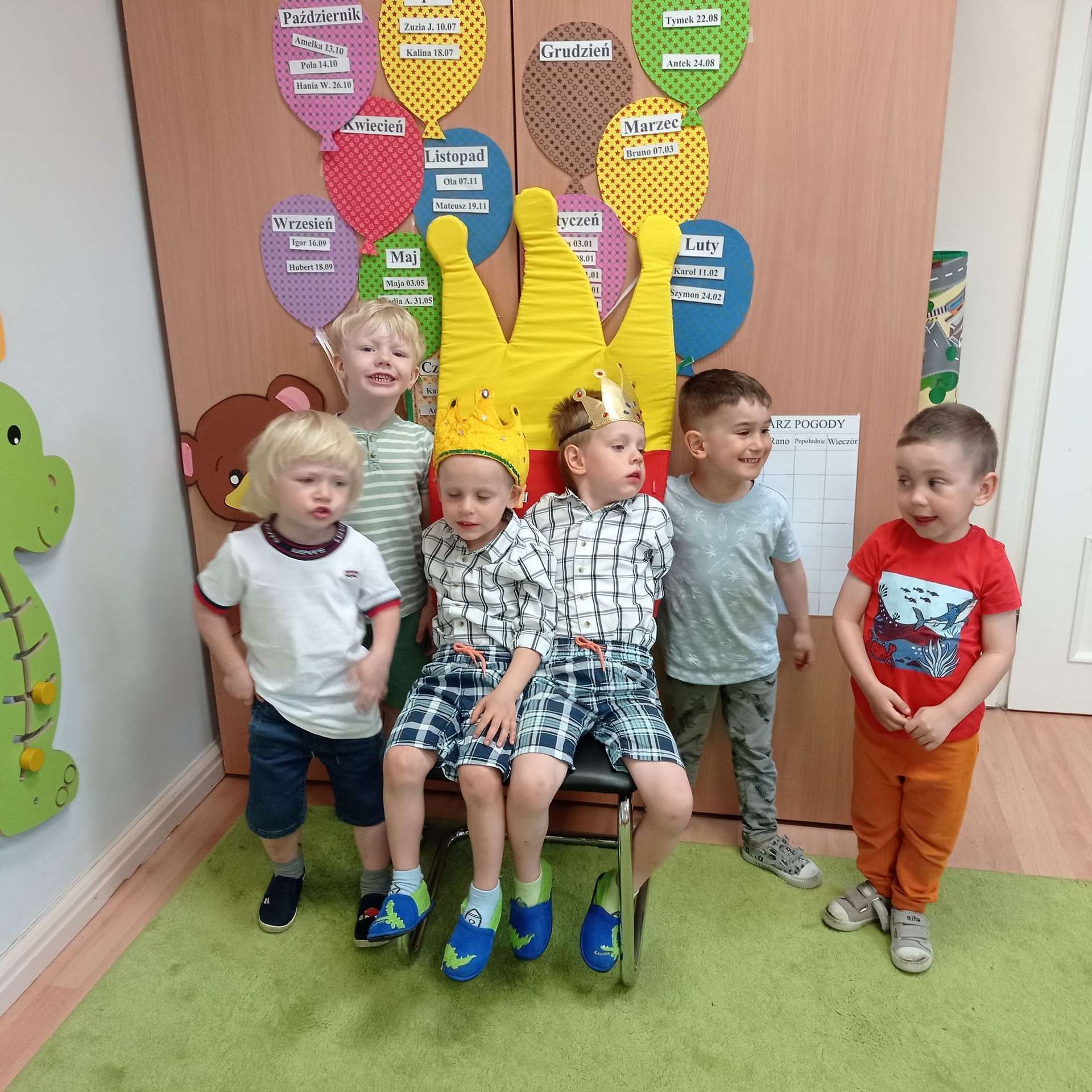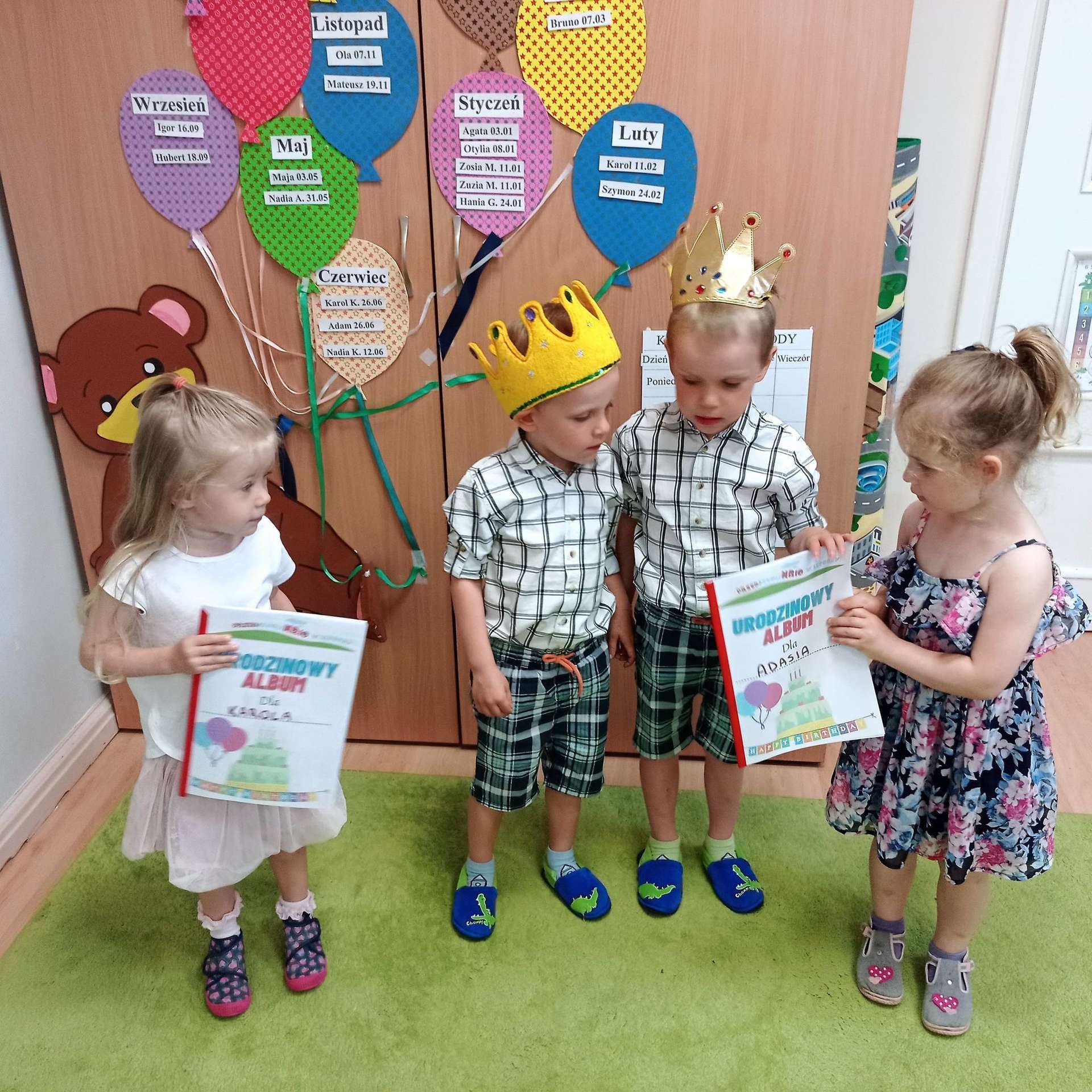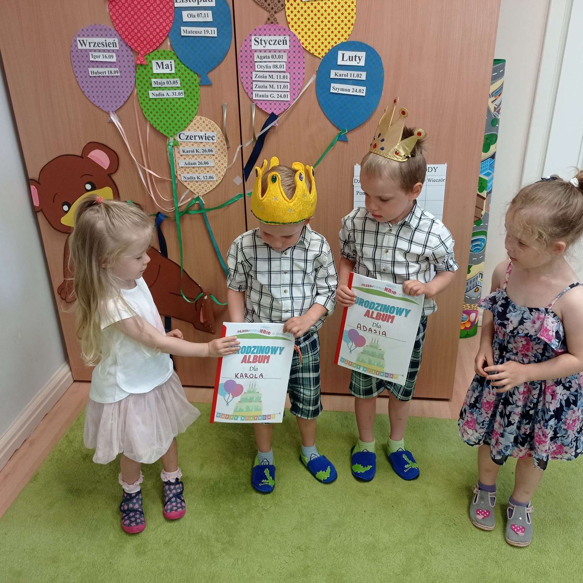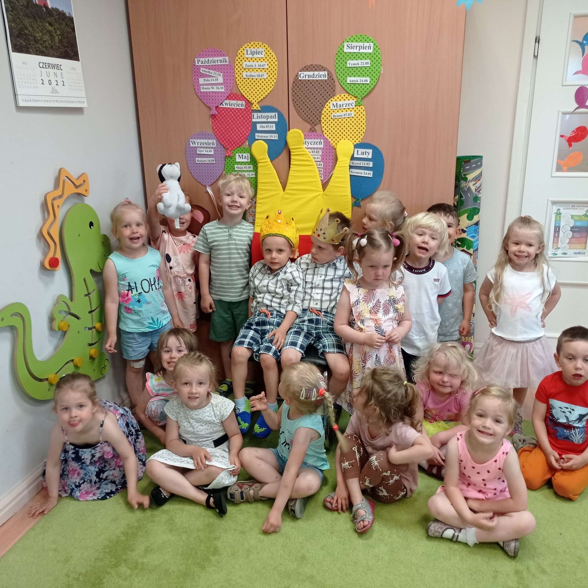 Idzie misio, idzie konik, małpka, piesek no i słonik. Wszyscy razem z balonami, z najlepszymi życzeniami. Bo to dzień radosny wielce -masz już jeden roczek więcej!