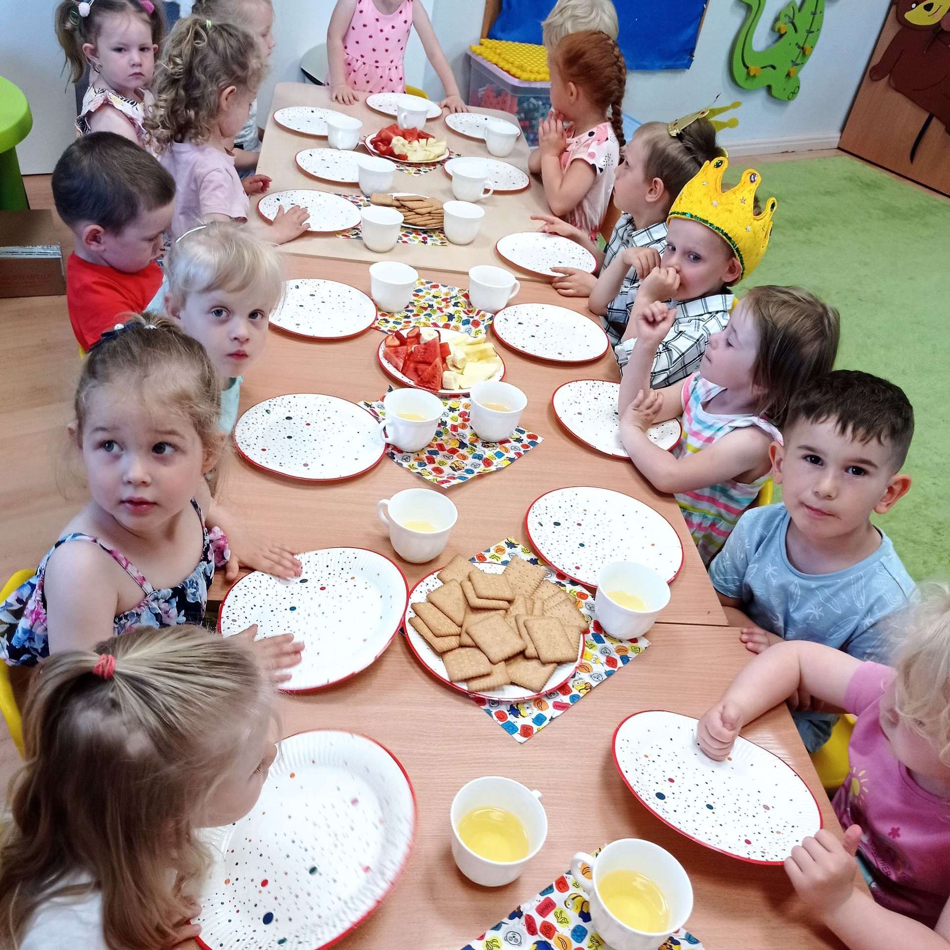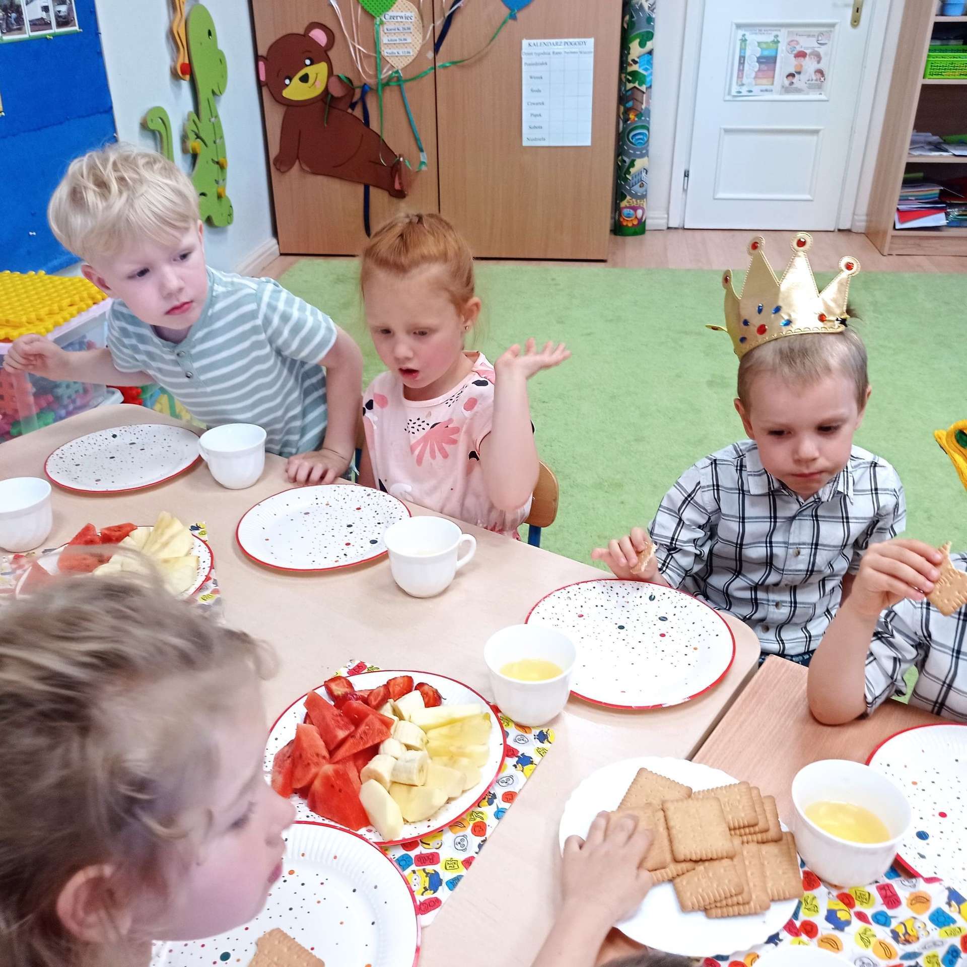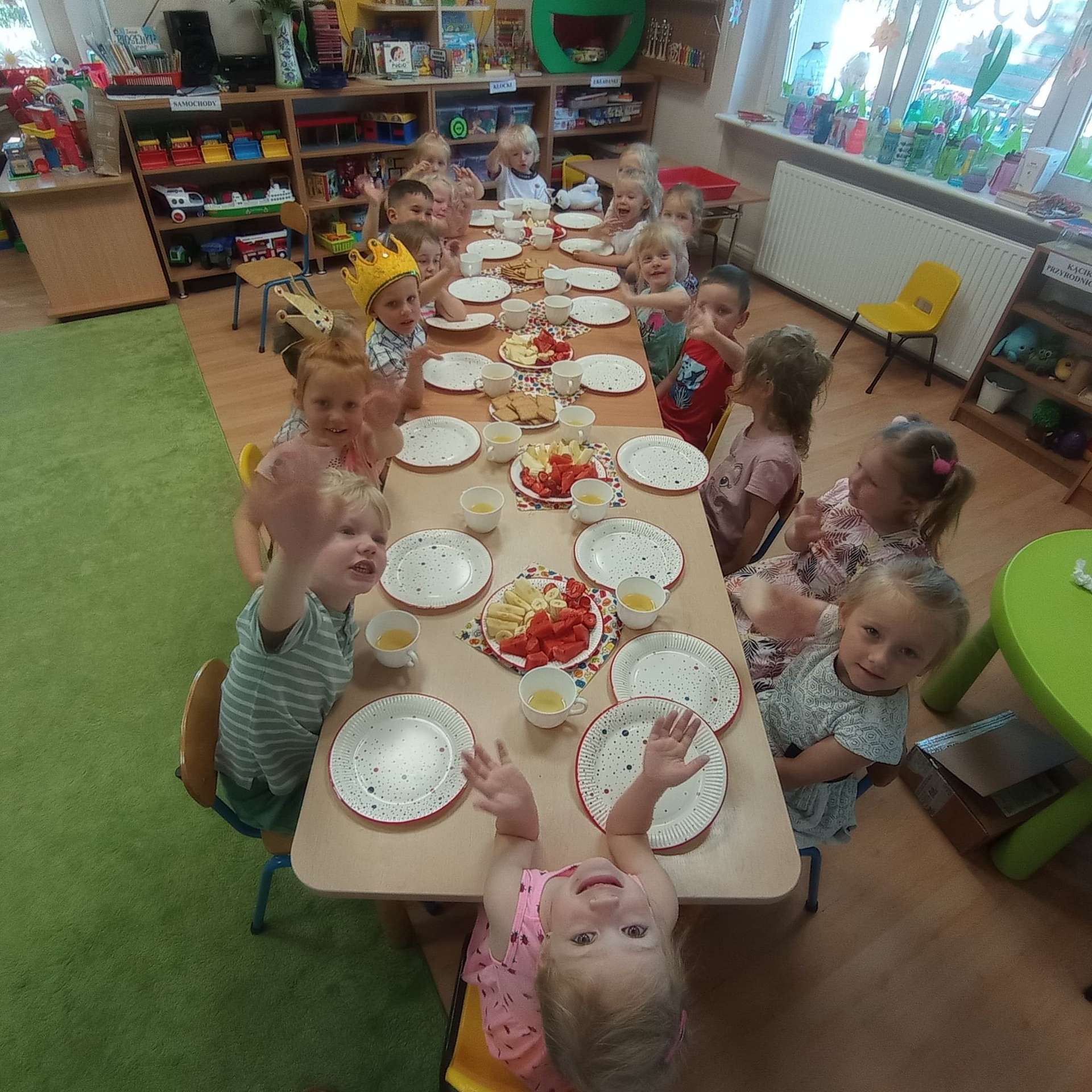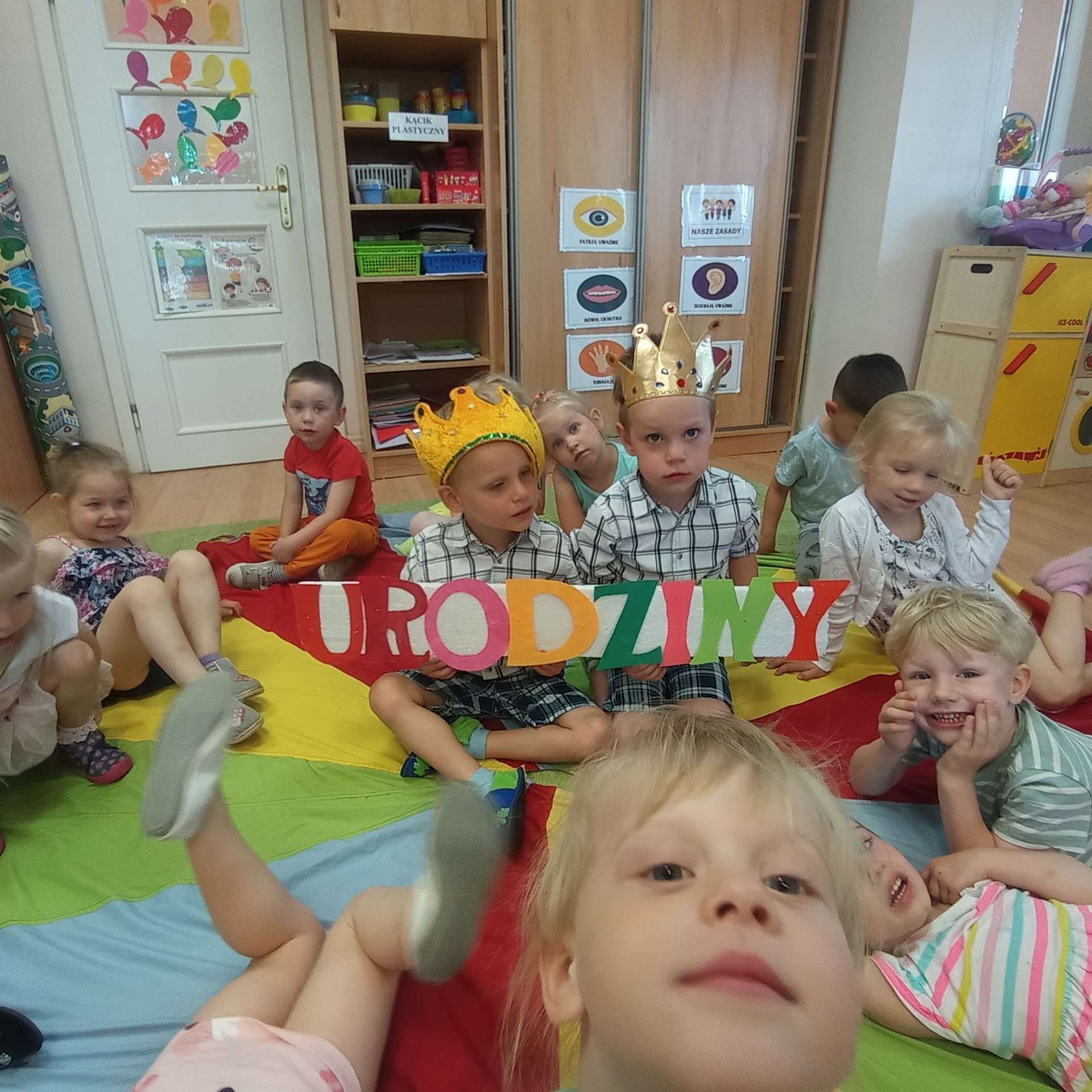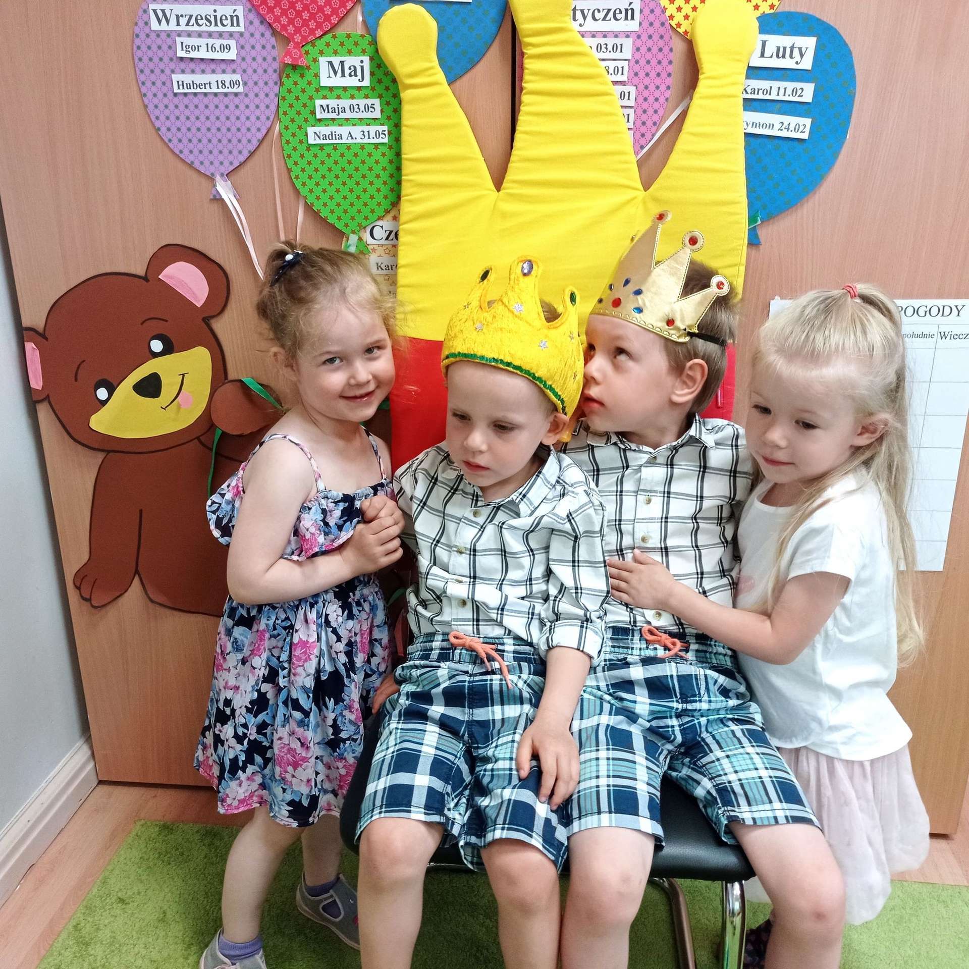 Idzie misio, idzie konik, małpka, piesek no i słonik. Wszyscy razem z balonami, z najlepszymi życzeniami. Bo to dzień radosny wielce -masz już jeden roczek więcej!