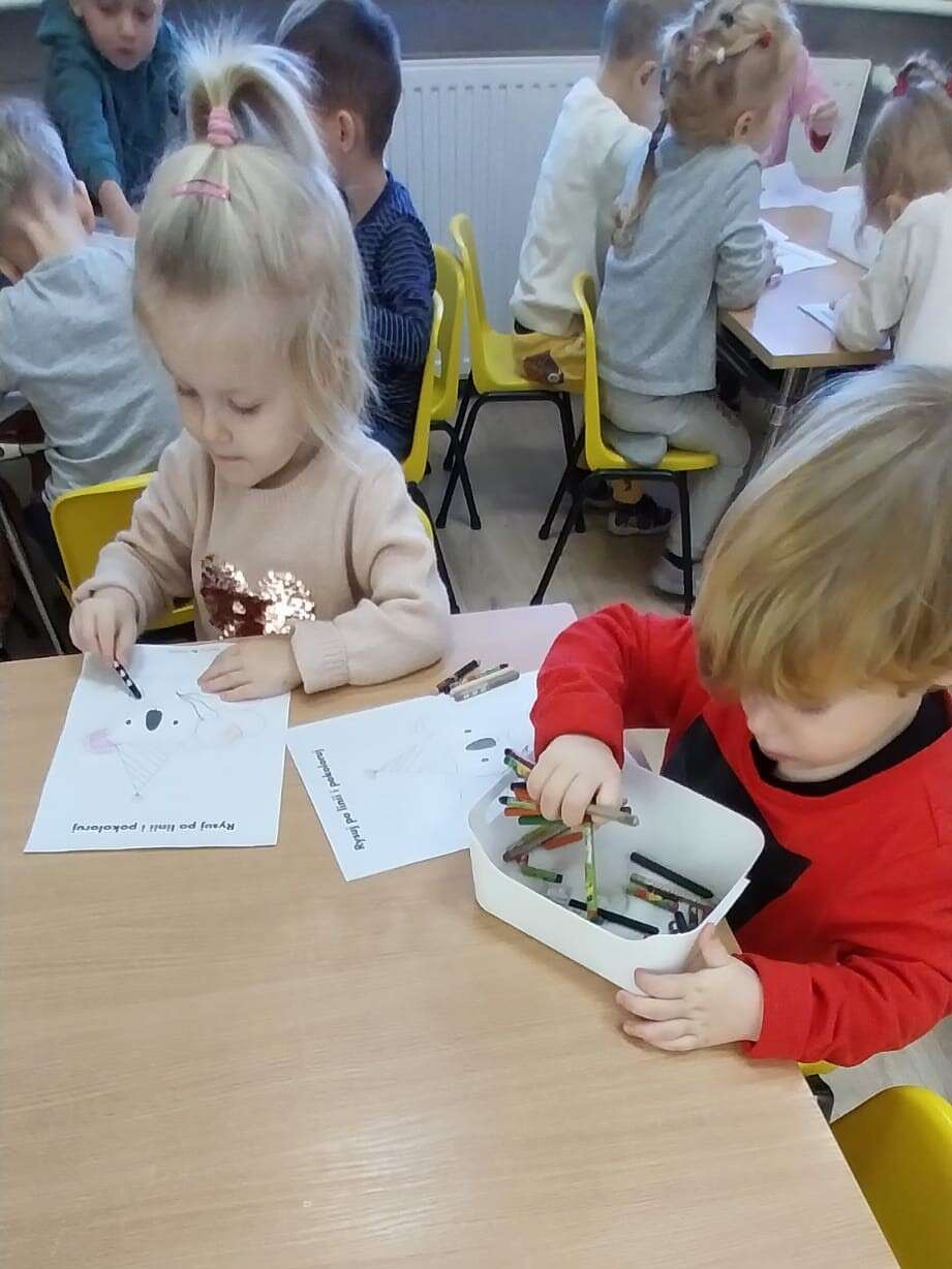 Dzieci kolorują obrazki