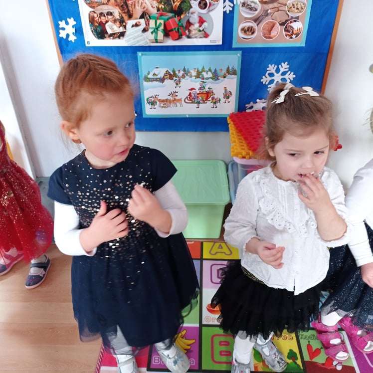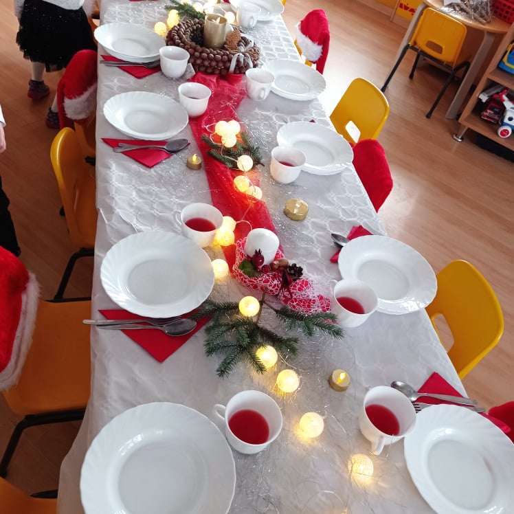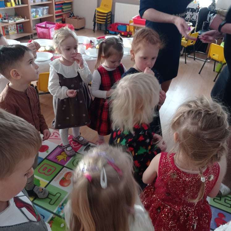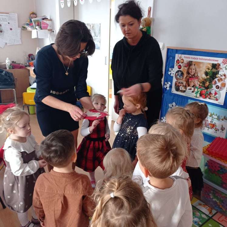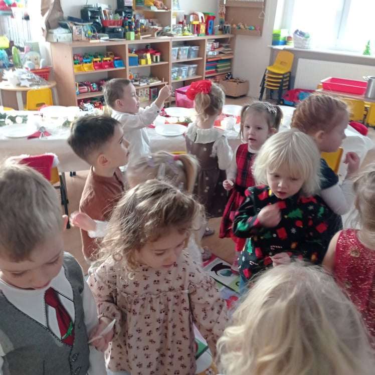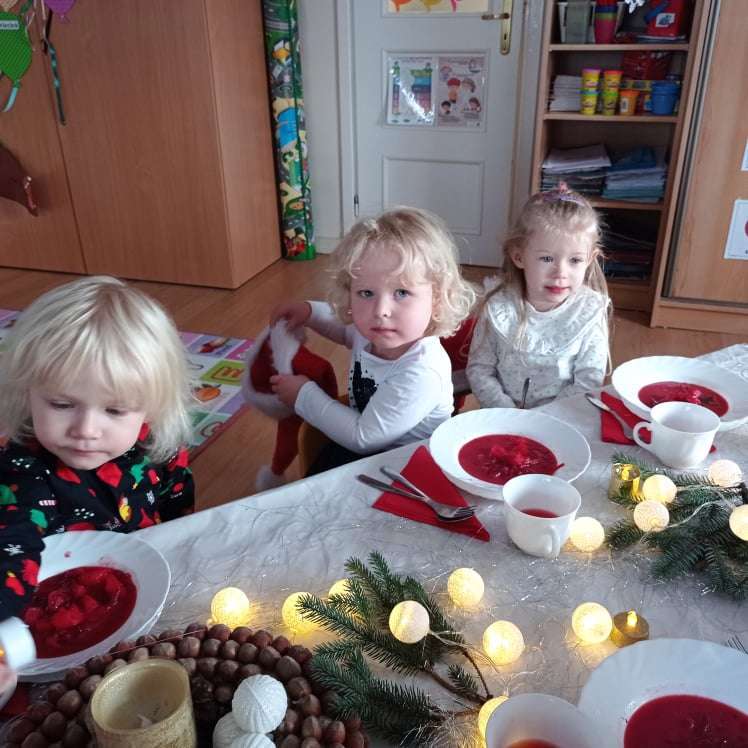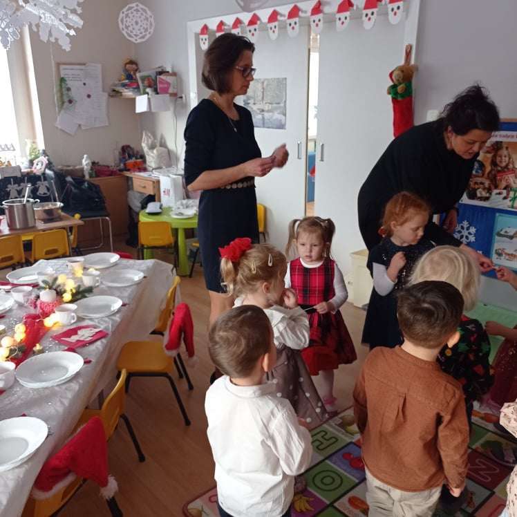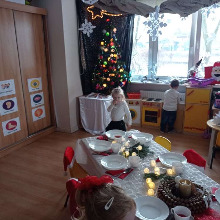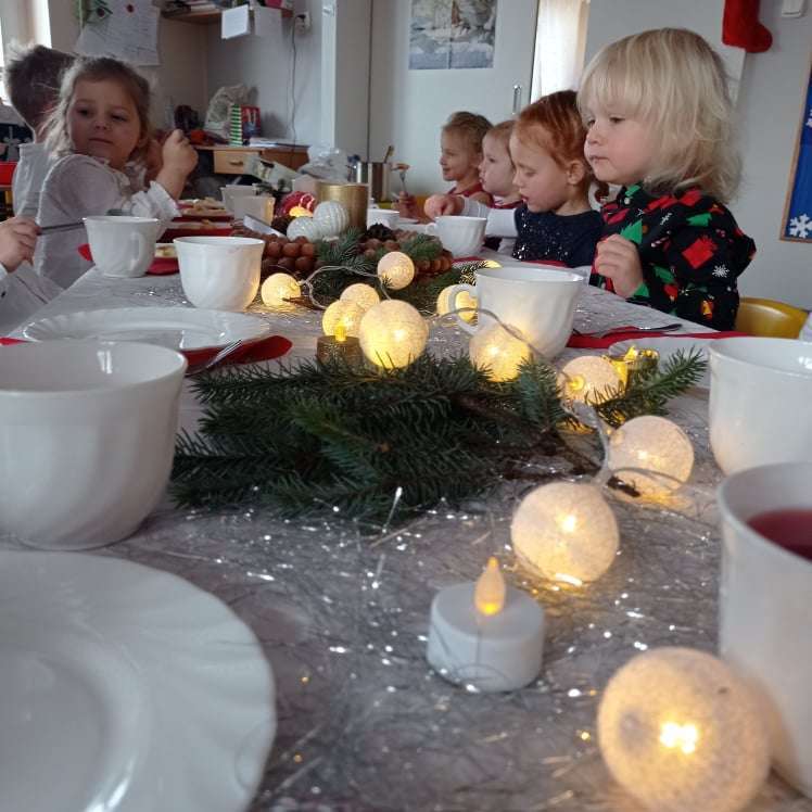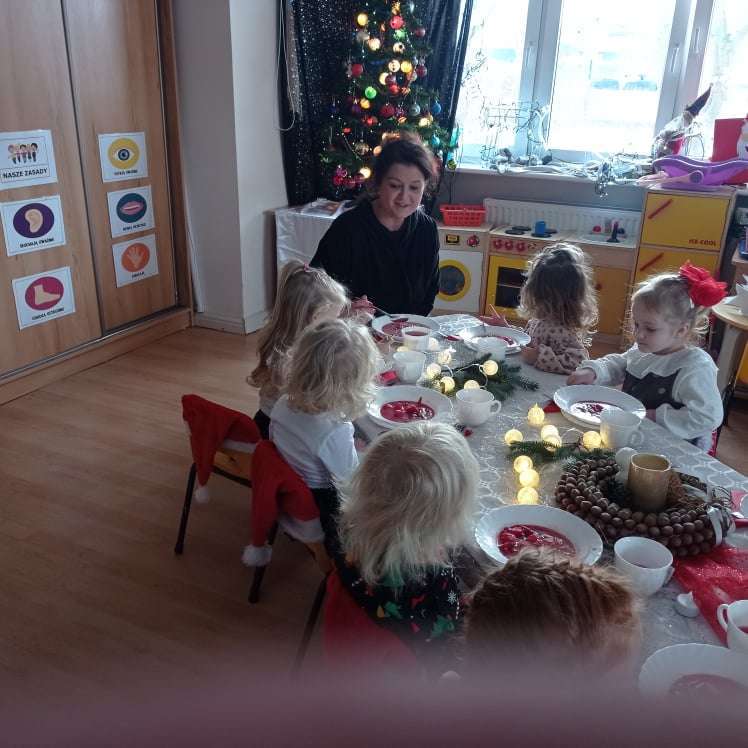22 grudnia w naszym przedszkolu odbyła się uroczysta Wigilia. Zgodnie z tradycją połamaliśmy się opłatkiem i złożyliśmy sobie życzenia po czym zasiedliśmy do wspólnej wigilijnej wieczerzy.