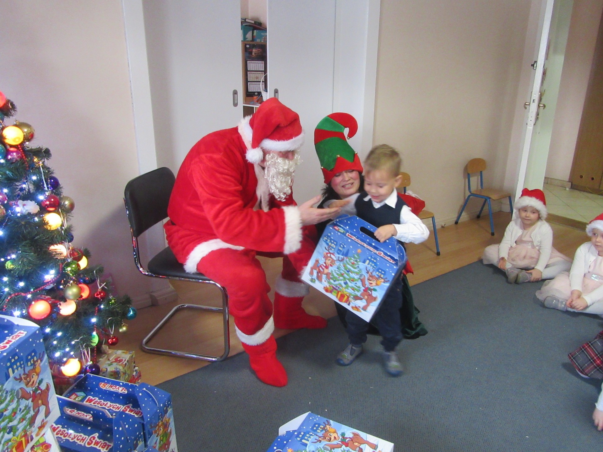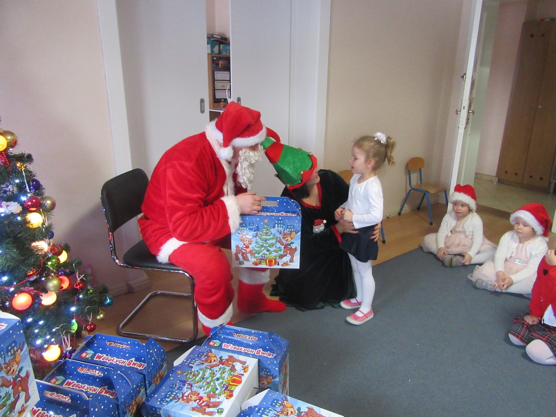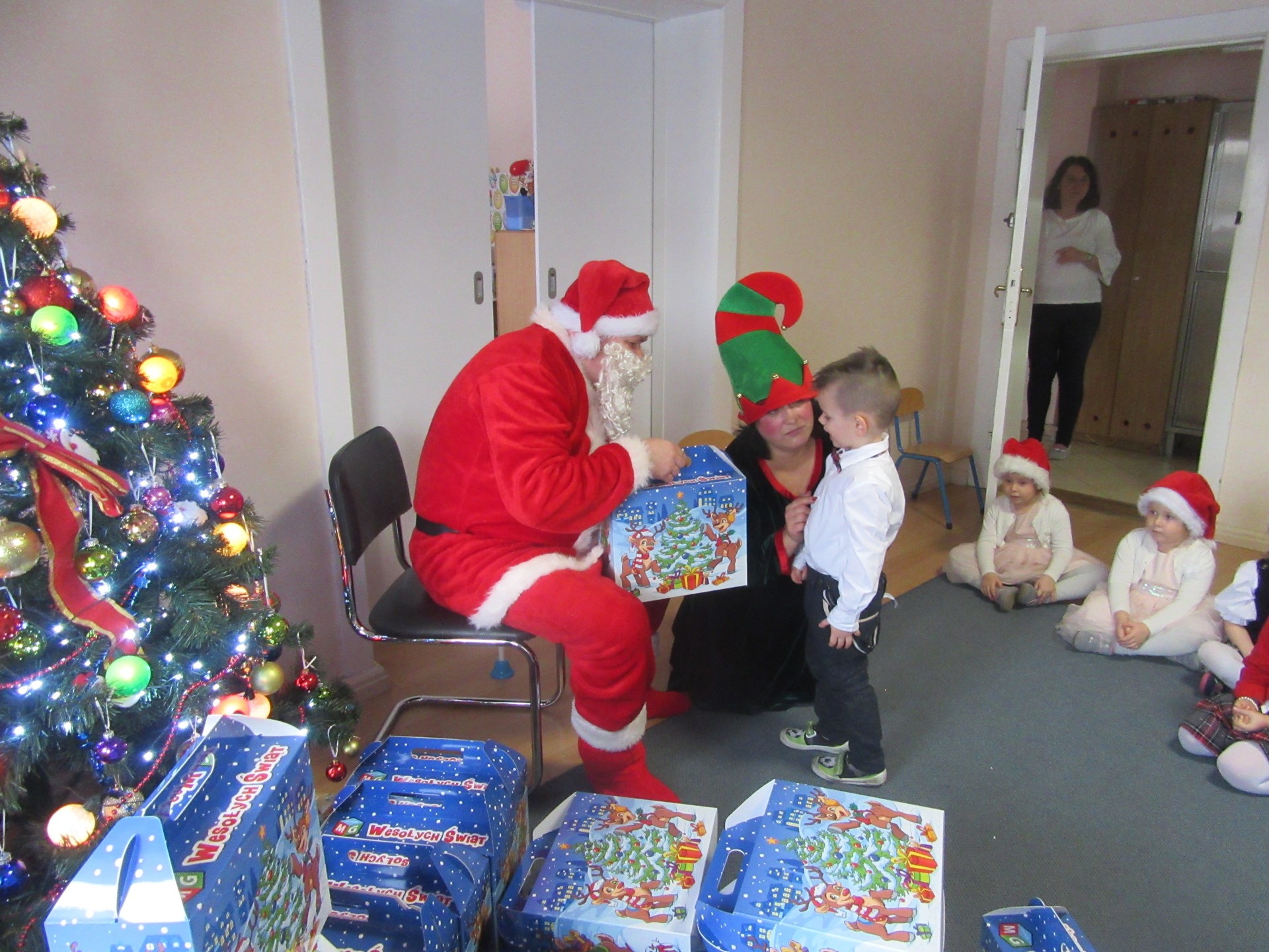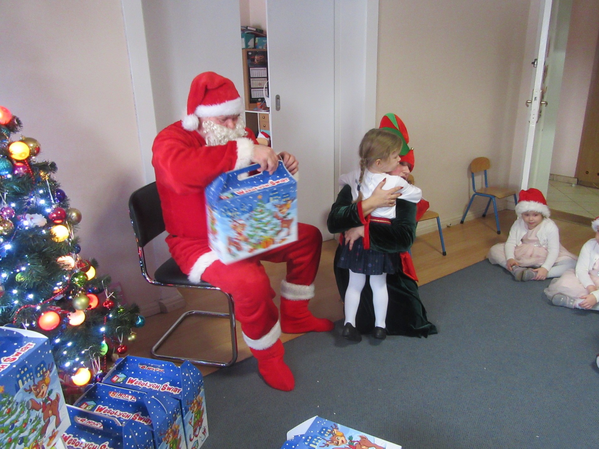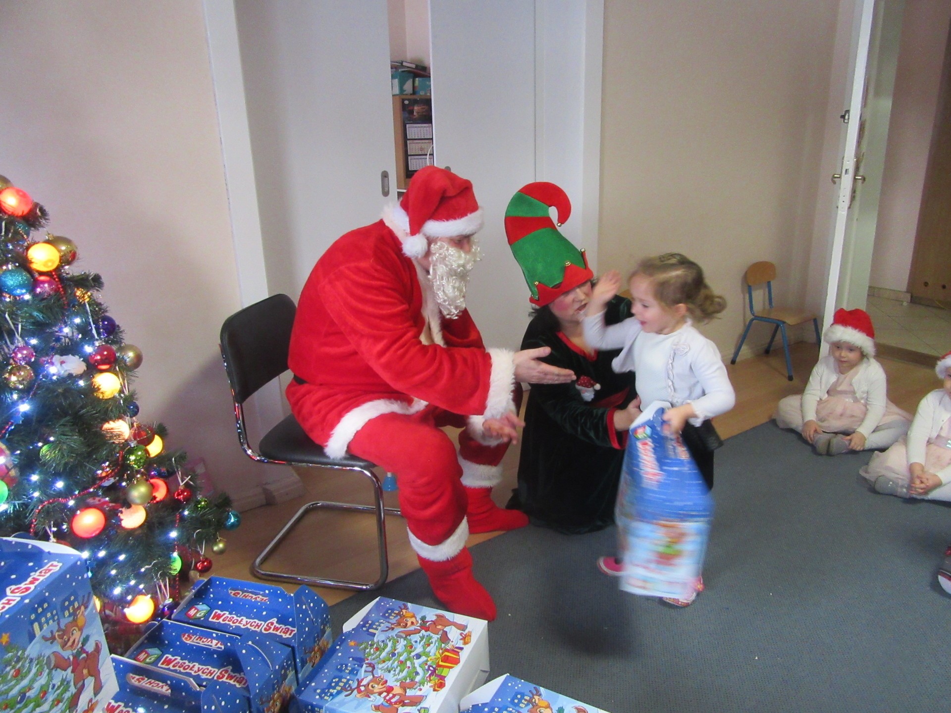 Wigilia Bożego Narodzenia to jeden z najpiękniejszych dni w roku, dlatego w naszej przedszkolnej rodzinie przeżywamy go bardzo uroczyście. Nasza przedszkolna wigilia odbyła się w piątek. Na początku dzieci zjadły wspólny posiłek. W dalszej części uroczystości dzieci odwiedził Mikołaj wraz z Elfem.Dzieliliśmy się również opłatkiem życząc sobie nawzajem wszelkiej pomyślności i Wesołych Świąt. Nasze spotkanie zakończyło się wspólnym kolędowaniem przy wigilijnym stole.