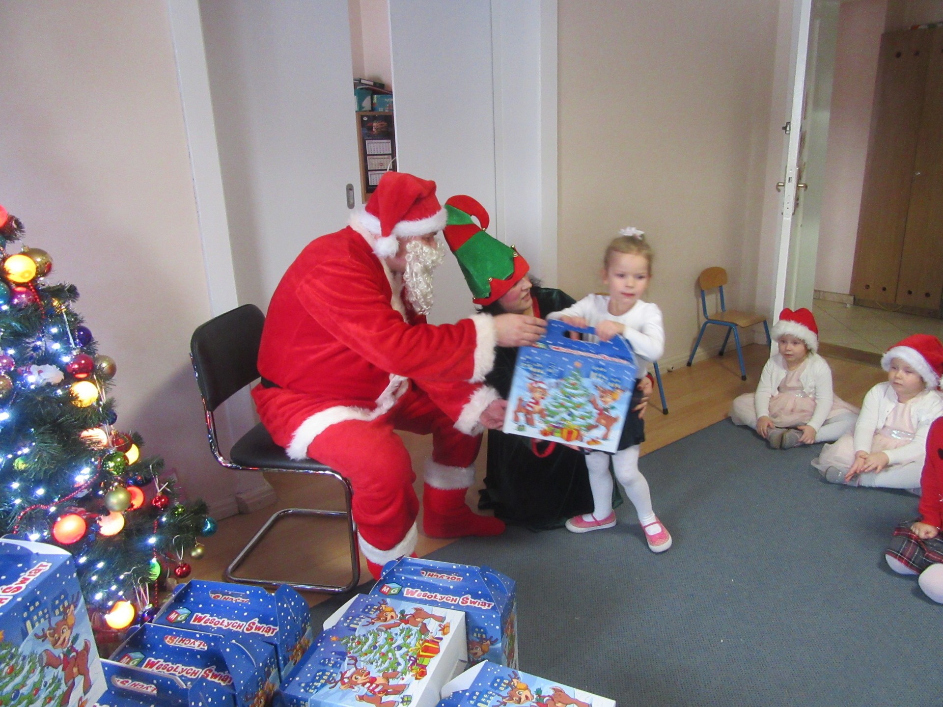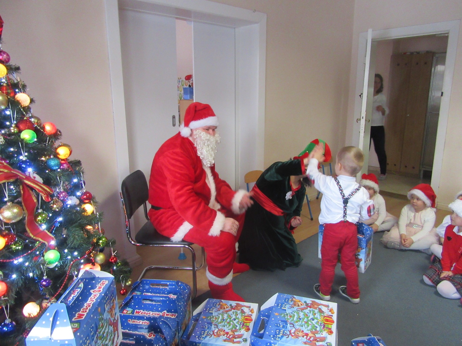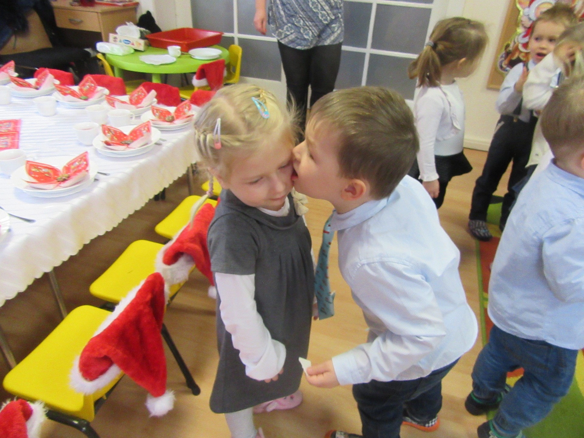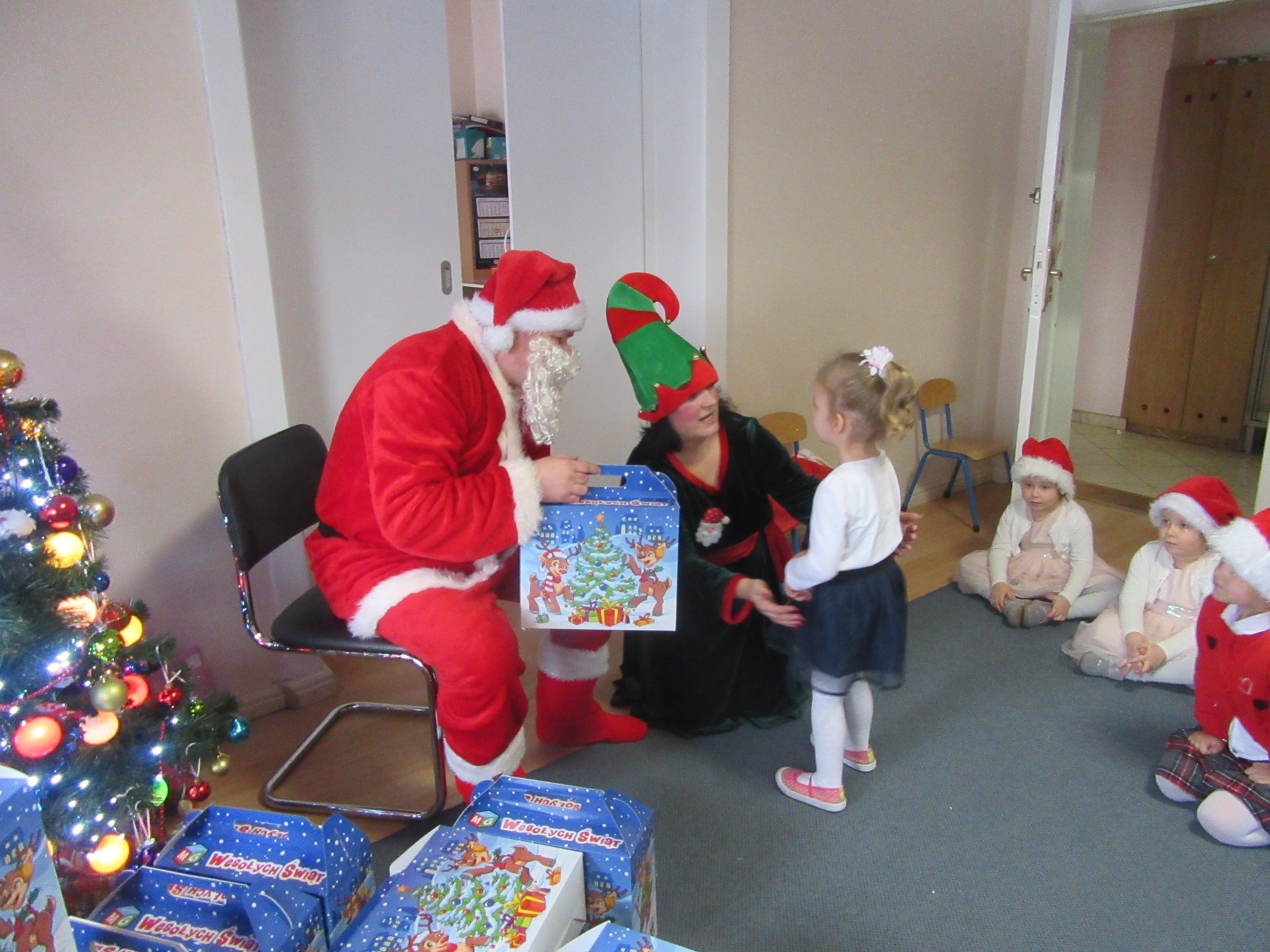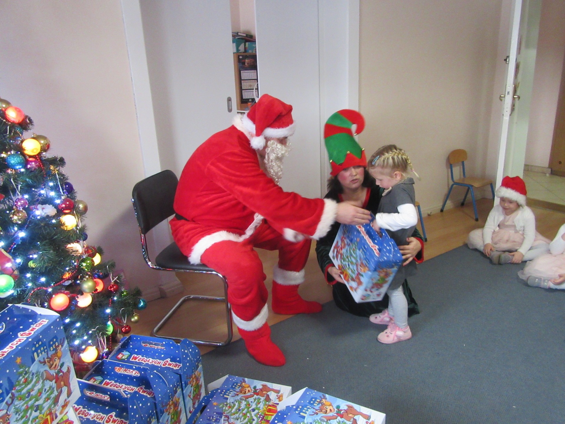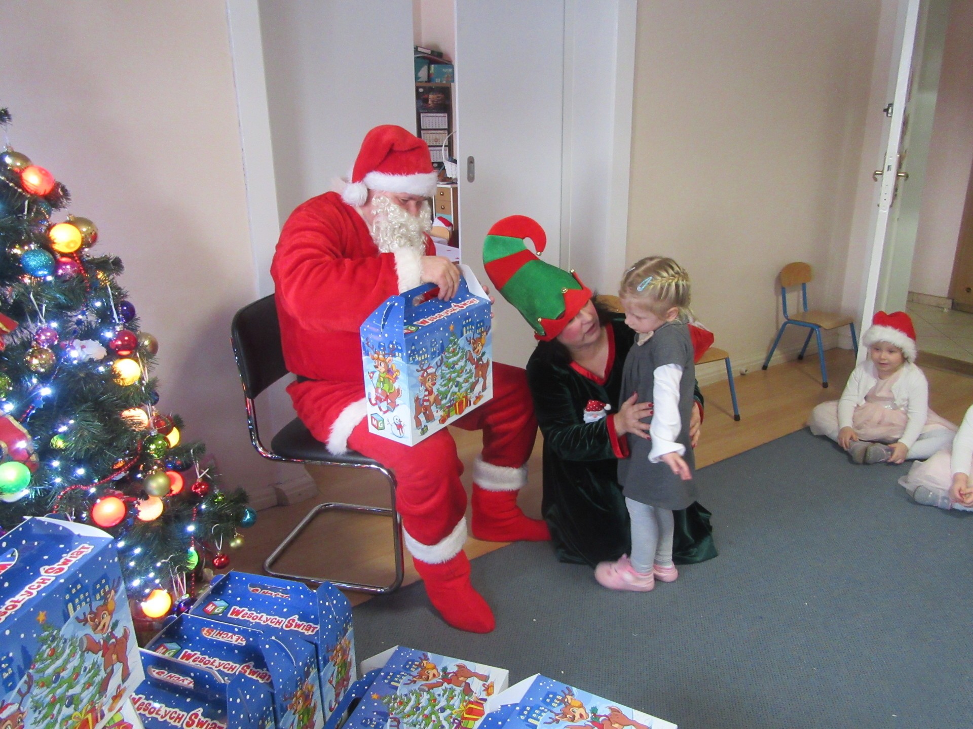 Wigilia Bożego Narodzenia to jeden z najpiękniejszych dni w roku, dlatego w naszej przedszkolnej rodzinie przeżywamy go bardzo uroczyście. Nasza przedszkolna wigilia odbyła się w piątek. Na początku dzieci zjadły wspólny posiłek. W dalszej części uroczystości dzieci odwiedził Mikołaj wraz z Elfem.Dzieliliśmy się również opłatkiem życząc sobie nawzajem wszelkiej pomyślności i Wesołych Świąt. Nasze spotkanie zakończyło się wspólnym kolędowaniem przy wigilijnym stole.