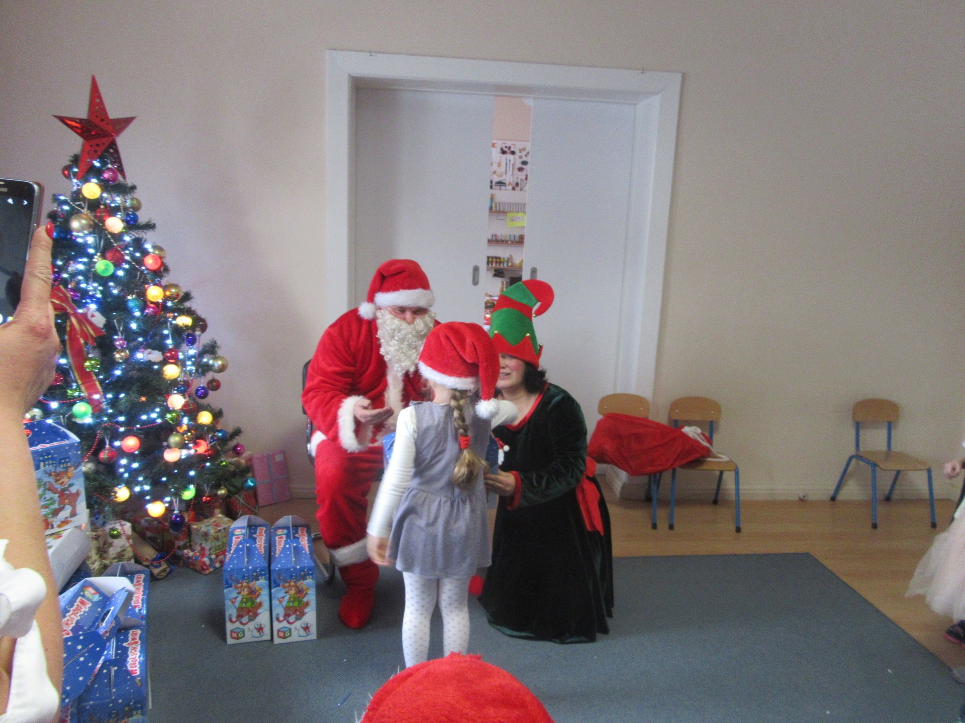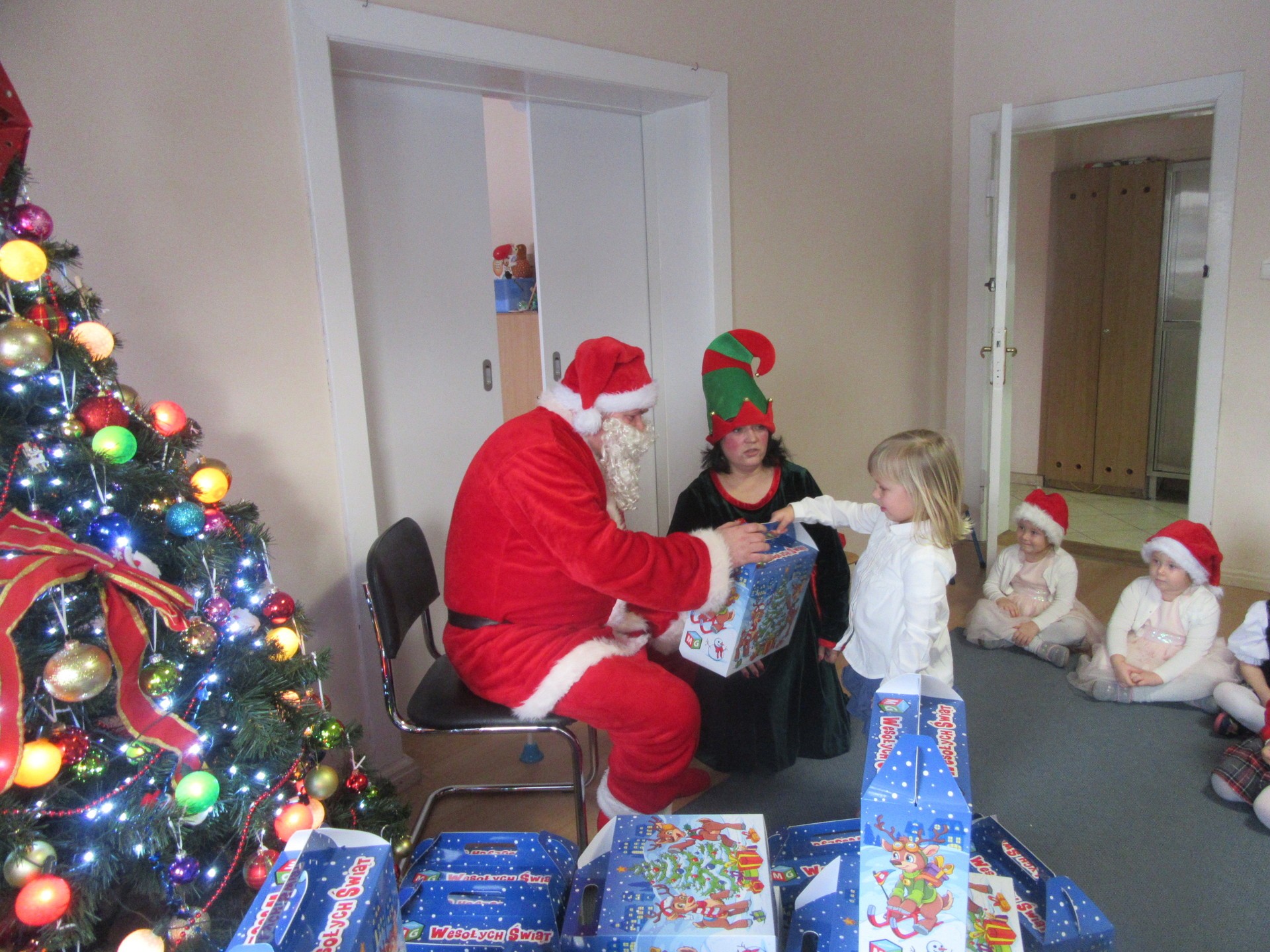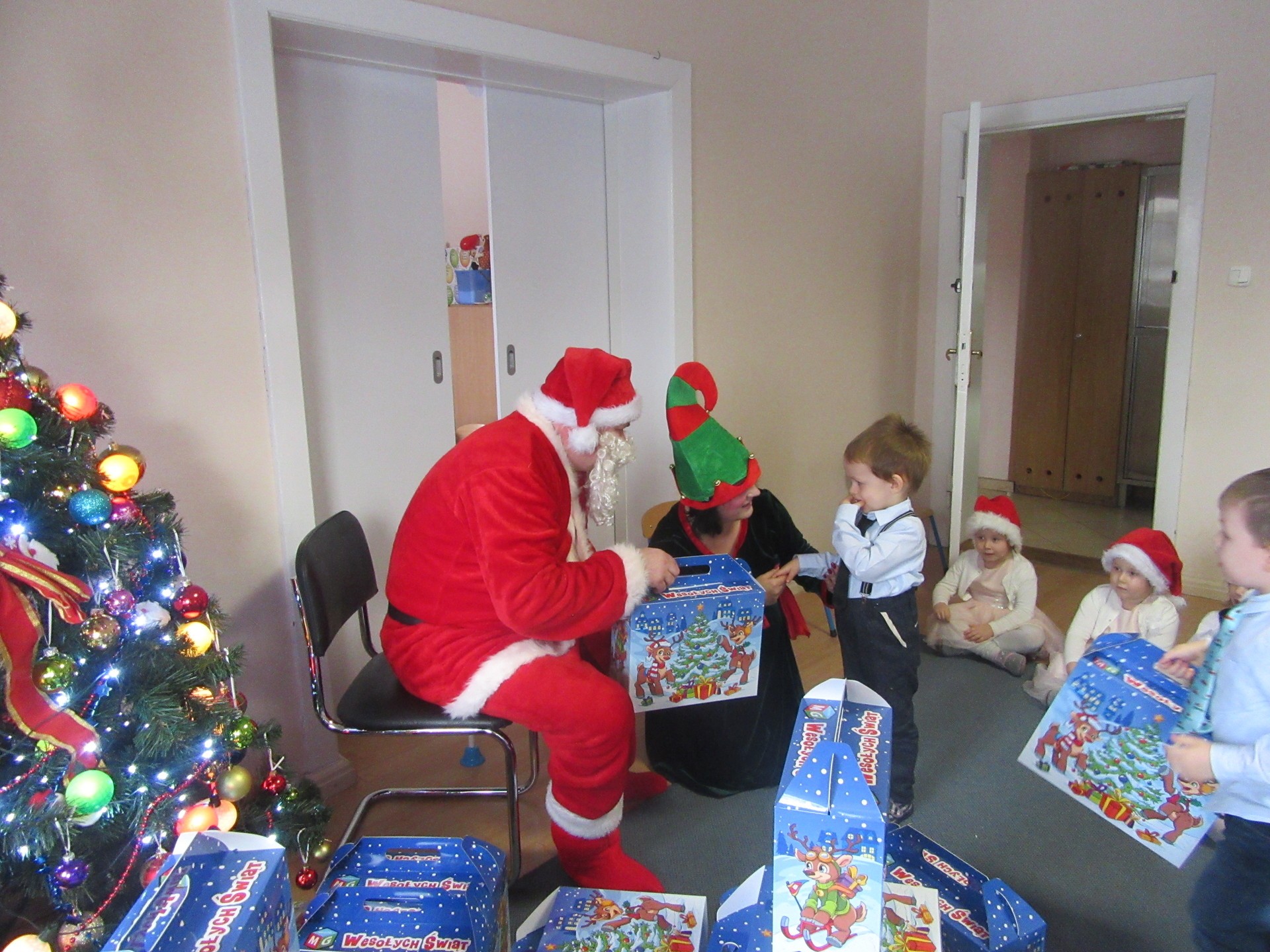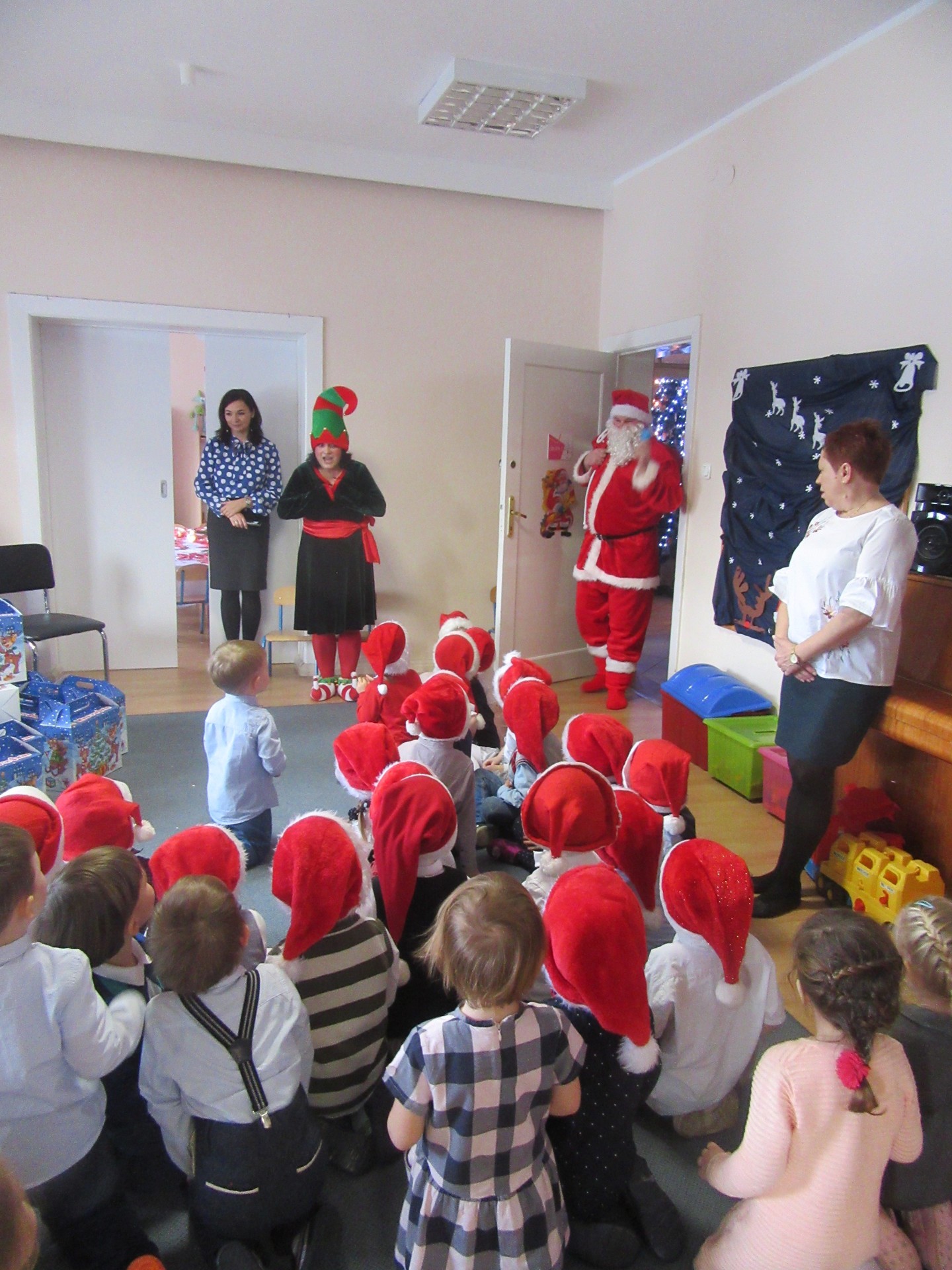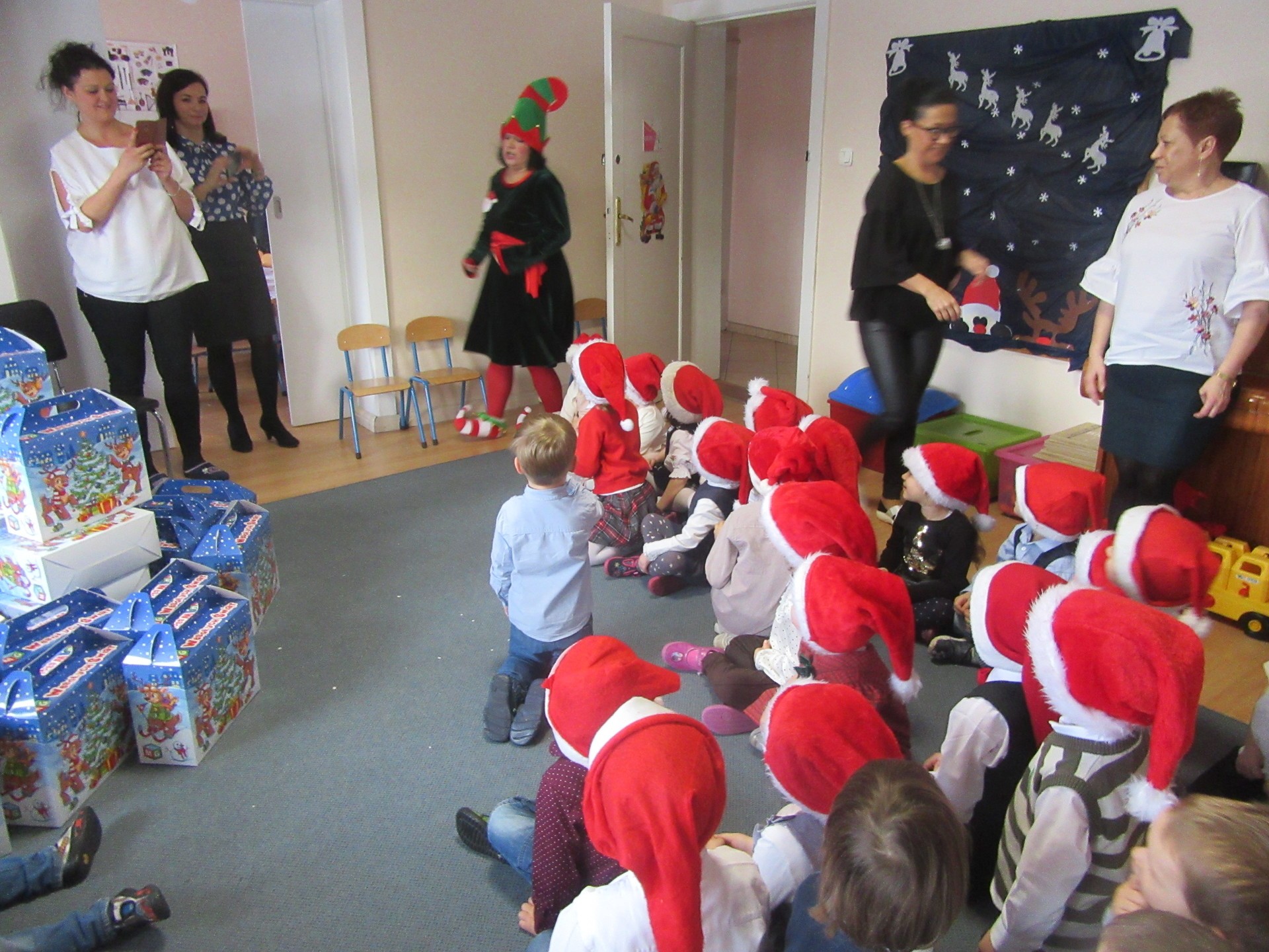 Wigilia Bożego Narodzenia to jeden z najpiękniejszych dni w roku, dlatego w naszej przedszkolnej rodzinie przeżywamy go bardzo uroczyście. Nasza przedszkolna wigilia odbyła się w piątek. Na początku dzieci zjadły wspólny posiłek. W dalszej części uroczystości dzieci odwiedził Mikołaj wraz z Elfem.Dzieliliśmy się również opłatkiem życząc sobie nawzajem wszelkiej pomyślności i Wesołych Świąt. Nasze spotkanie zakończyło się wspólnym kolędowaniem przy wigilijnym stole.