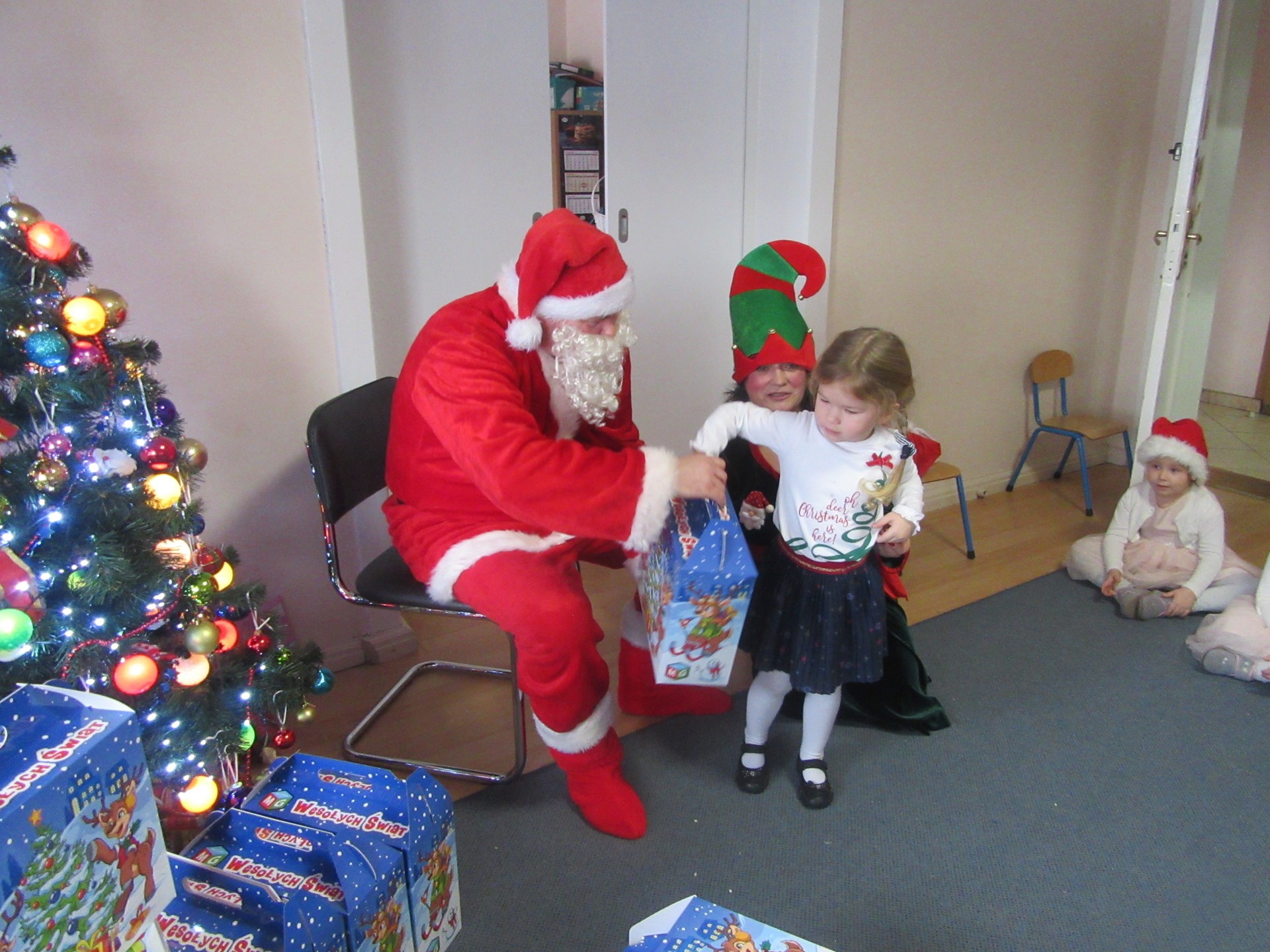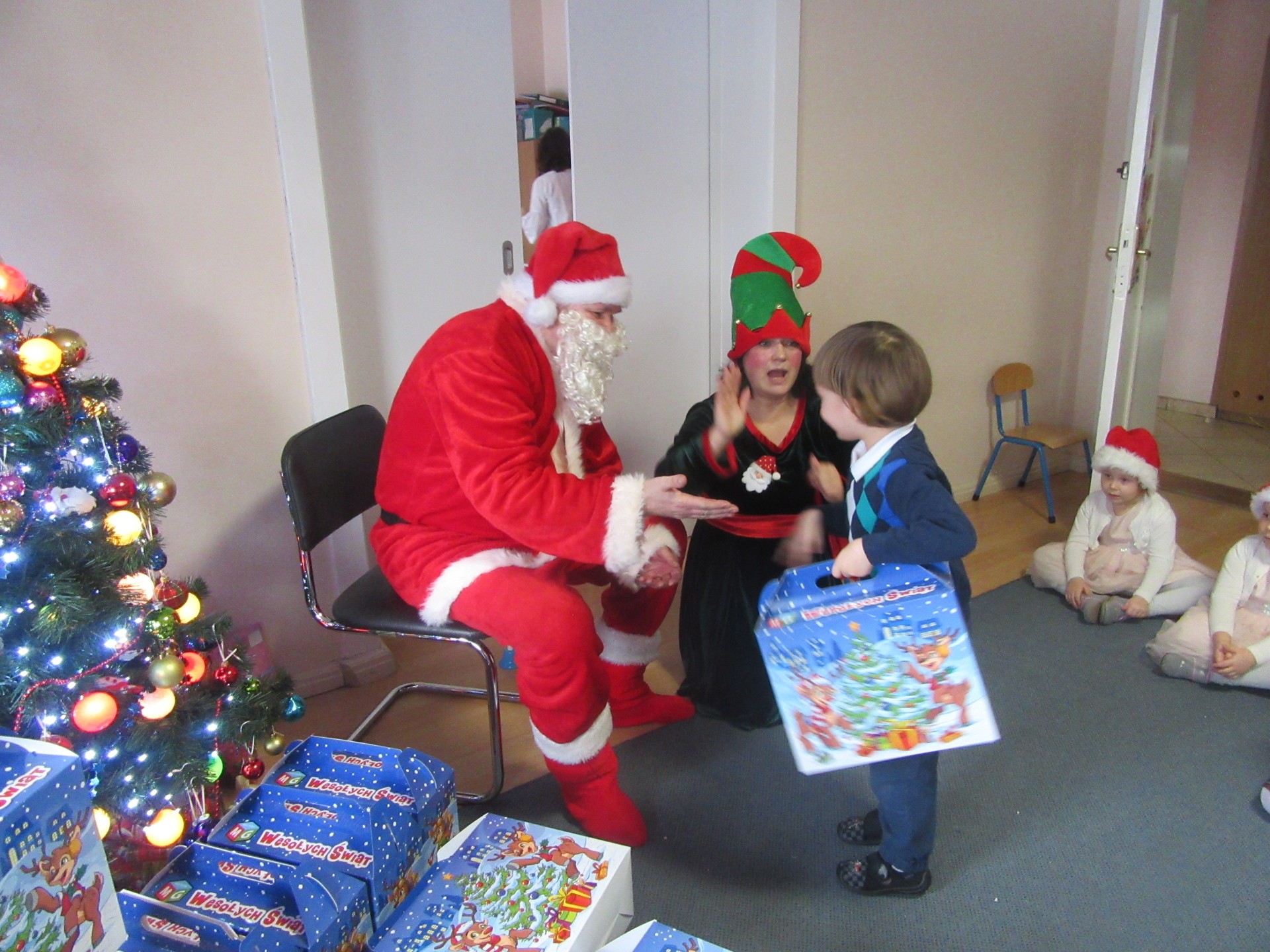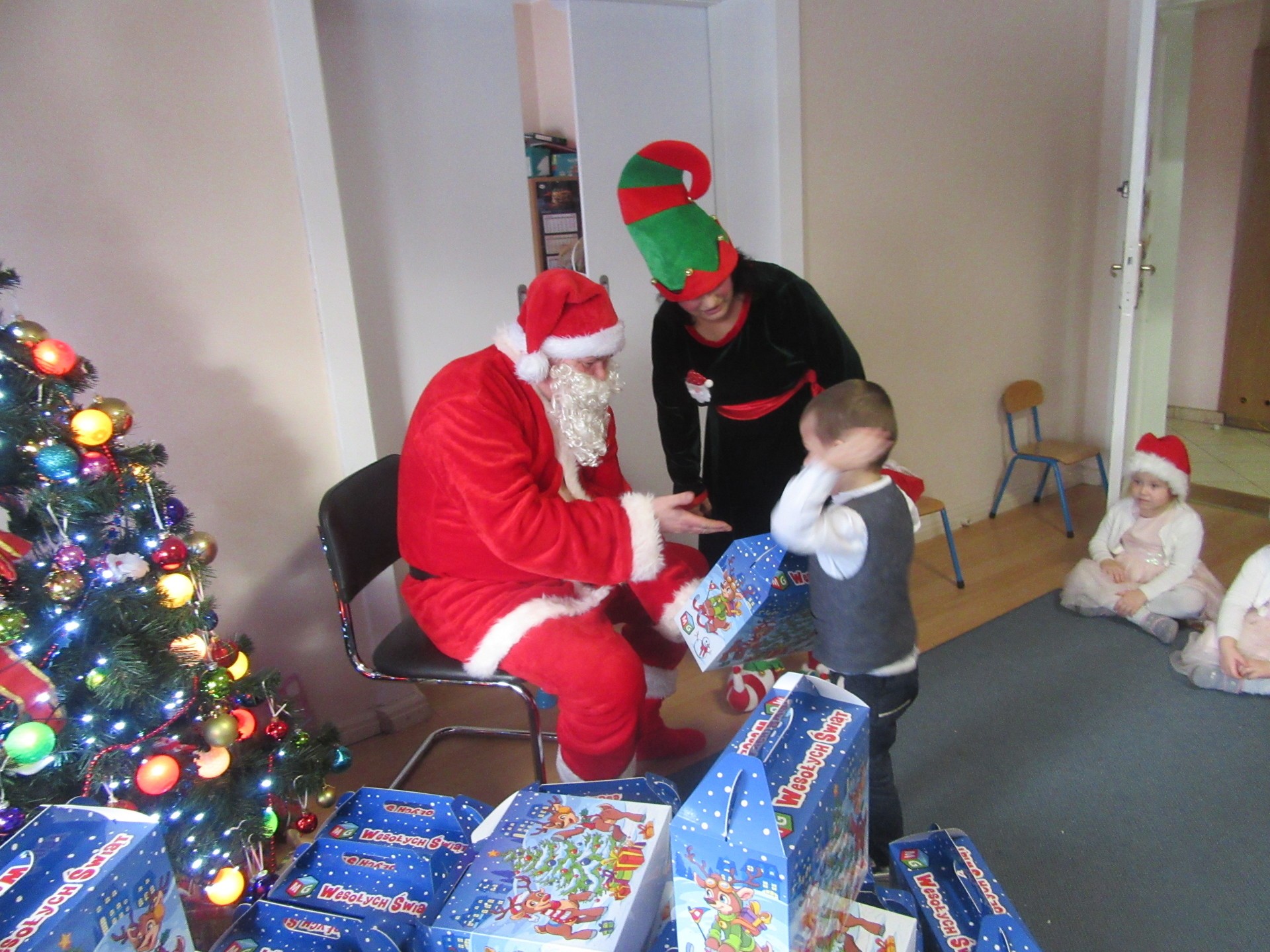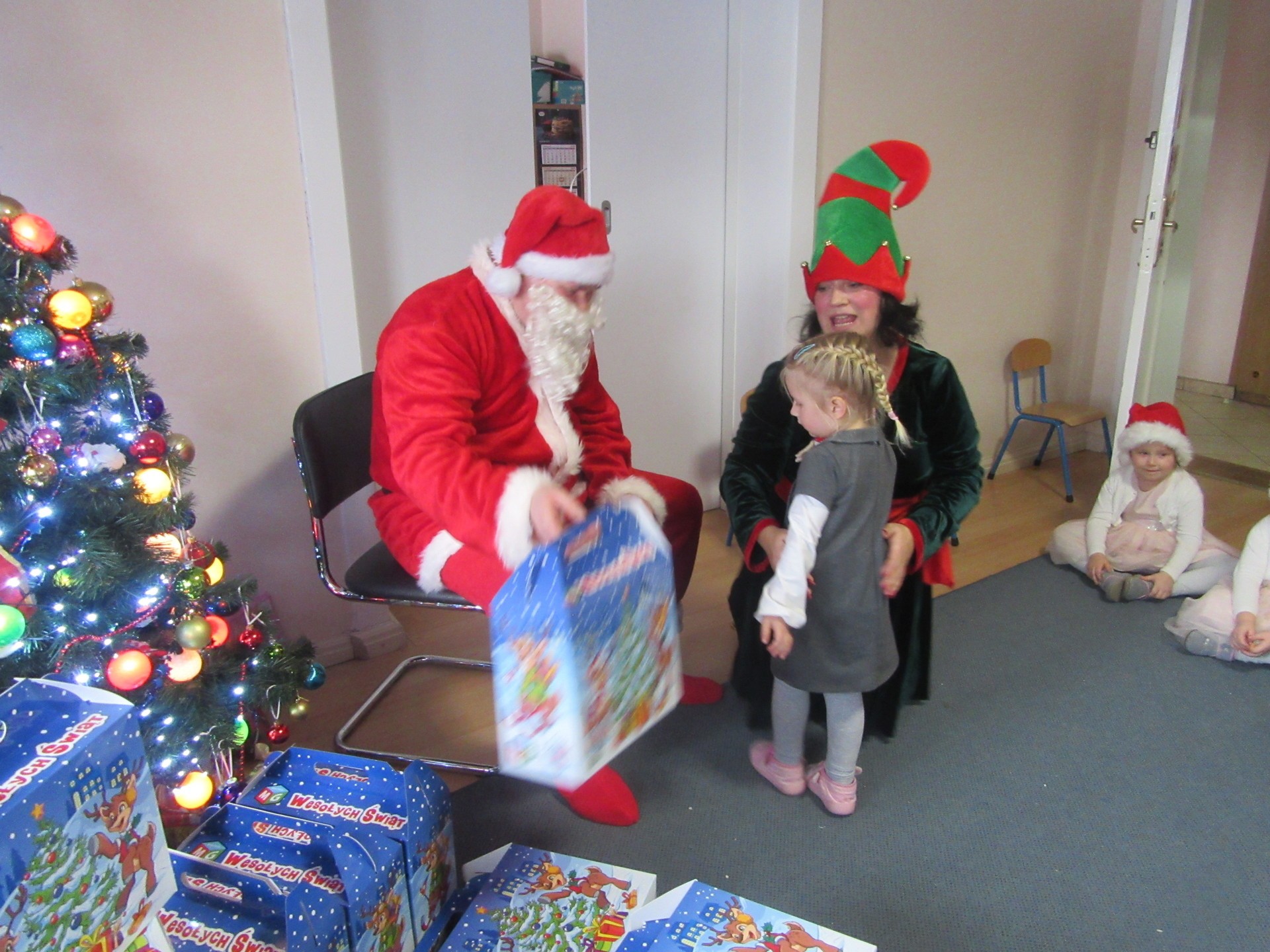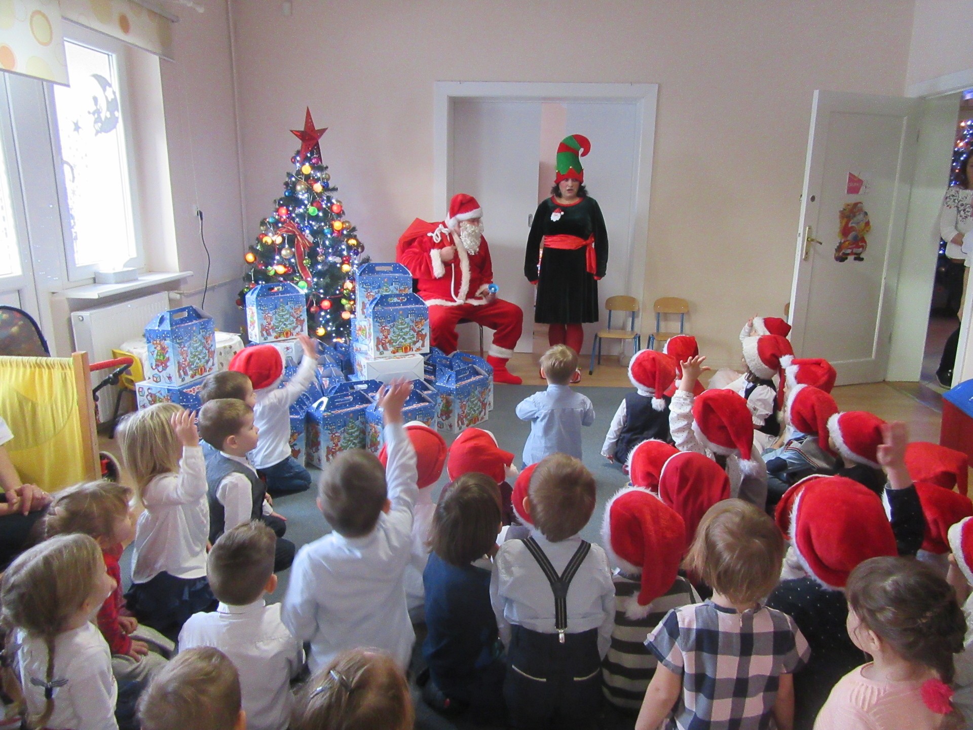Wigilia Bożego Narodzenia to jeden z najpiękniejszych dni w roku, dlatego w naszej przedszkolnej rodzinie przeżywamy go bardzo uroczyście. Nasza przedszkolna wigilia odbyła się w piątek. Na początku dzieci zjadły wspólny posiłek. W dalszej części uroczystości dzieci odwiedził Mikołaj wraz z Elfem.Dzieliliśmy się również opłatkiem życząc sobie nawzajem wszelkiej pomyślności i Wesołych Świąt. Nasze spotkanie zakończyło się wspólnym kolędowaniem przy wigilijnym stole.