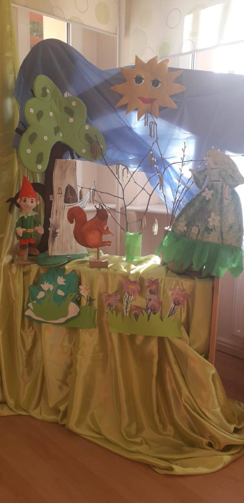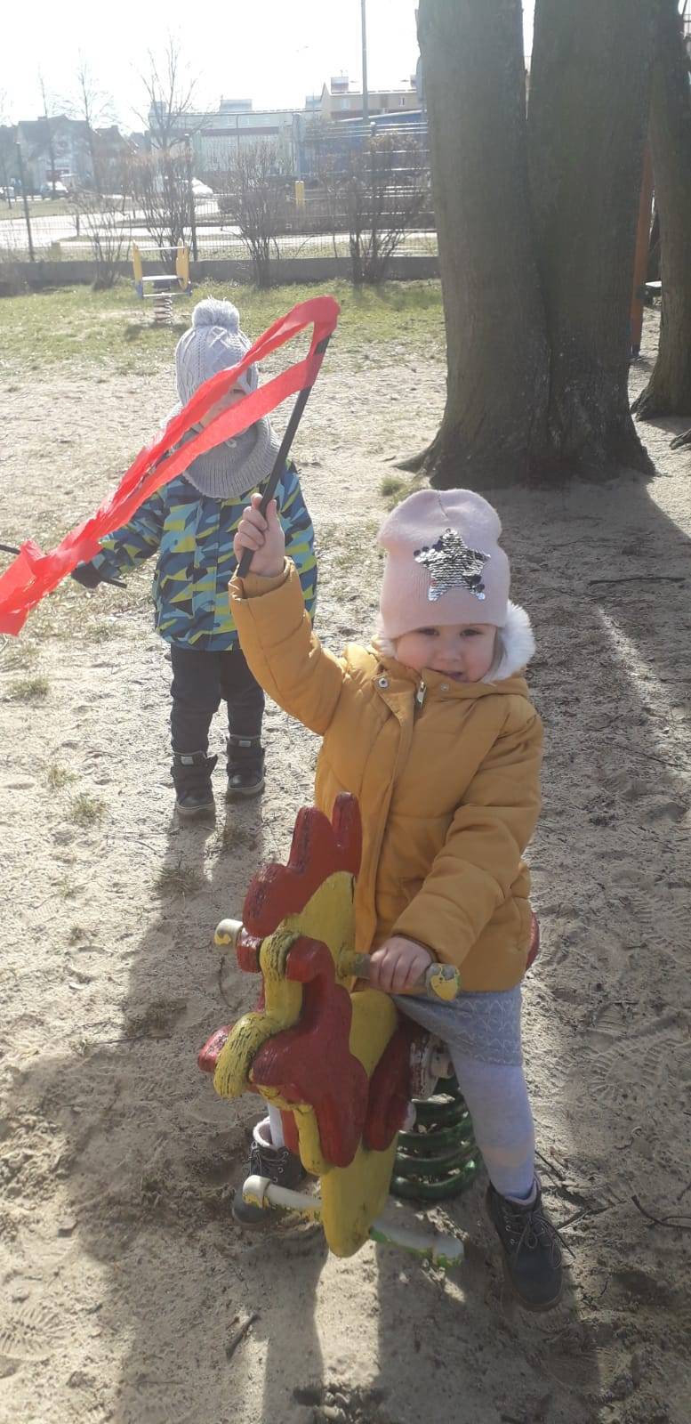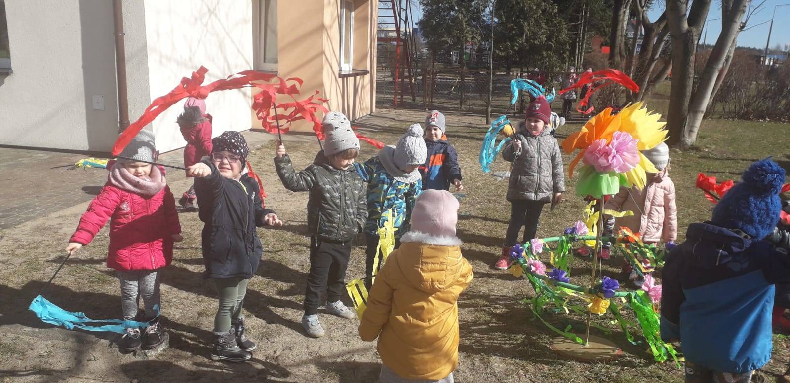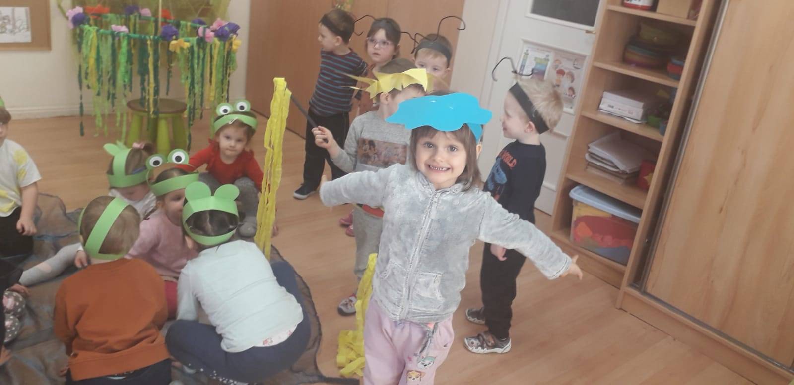 "Maluchy" powitały wiosnę Gaikiem - Maikiem .Oprócz zabaw ruchowych ,muzycznych ,manualnych przedszkolaki w tym dniu obejrzały teatrzyk kukiełkowy "O wiośnie w lesie i wiewiórki ważnym interesie".