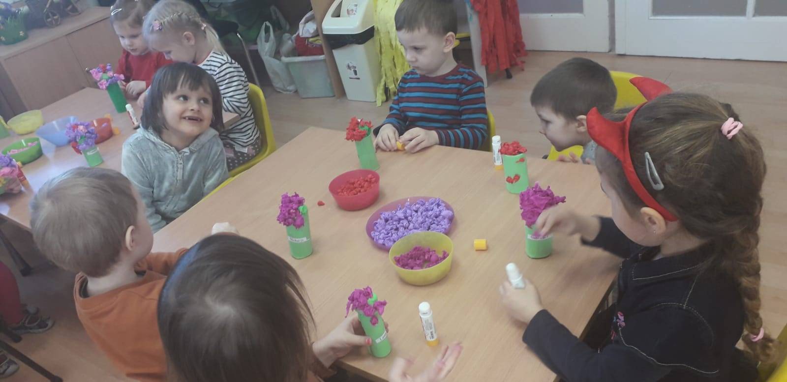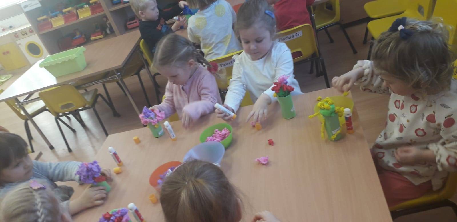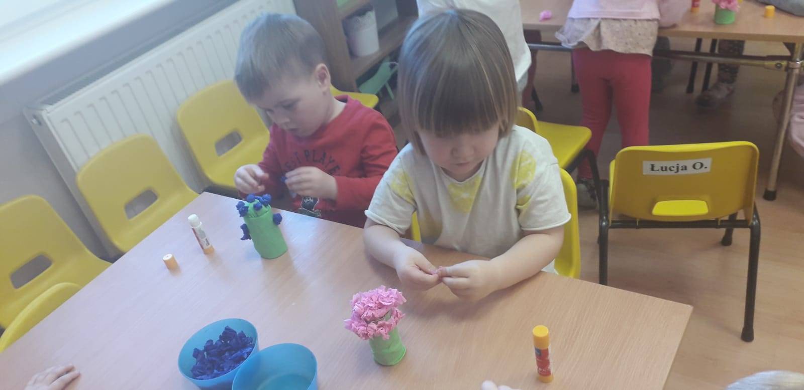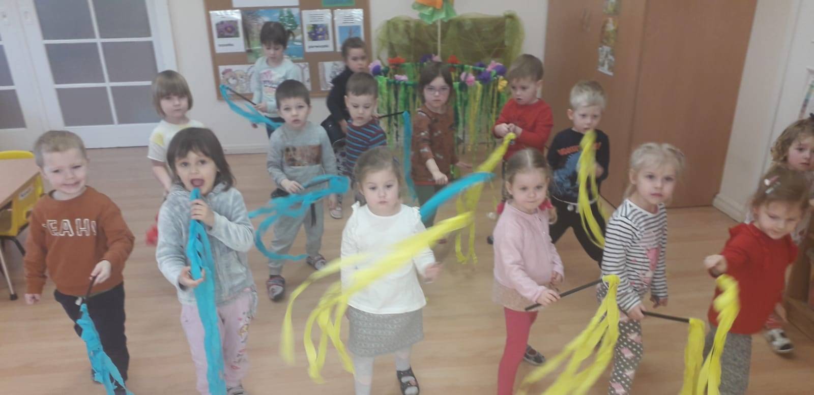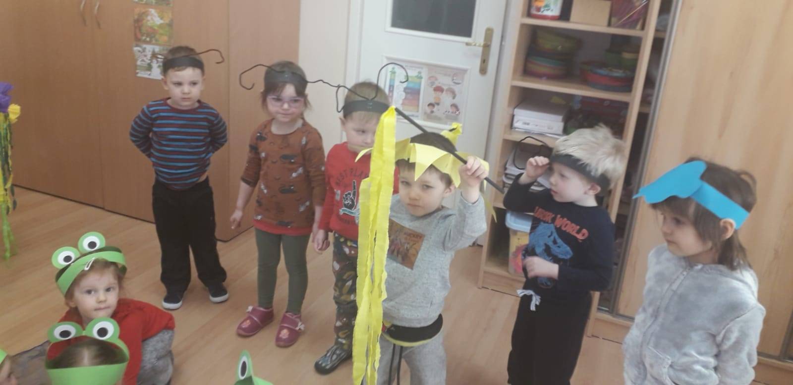"Maluchy" powitały wiosnę Gaikiem - Maikiem .Oprócz zabaw ruchowych ,muzycznych ,manualnych przedszkolaki w tym dniu obejrzały teatrzyk kukiełkowy "O wiośnie w lesie i wiewiórki ważnym interesie".