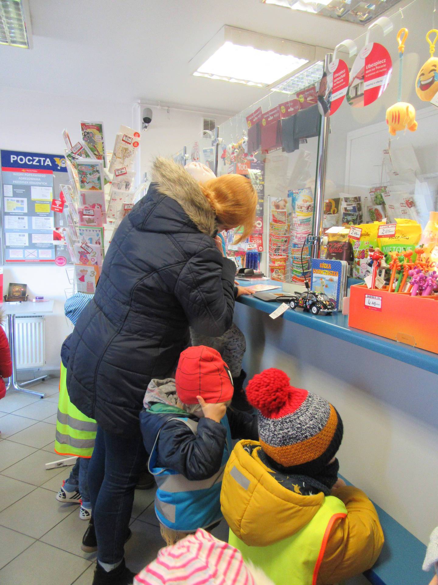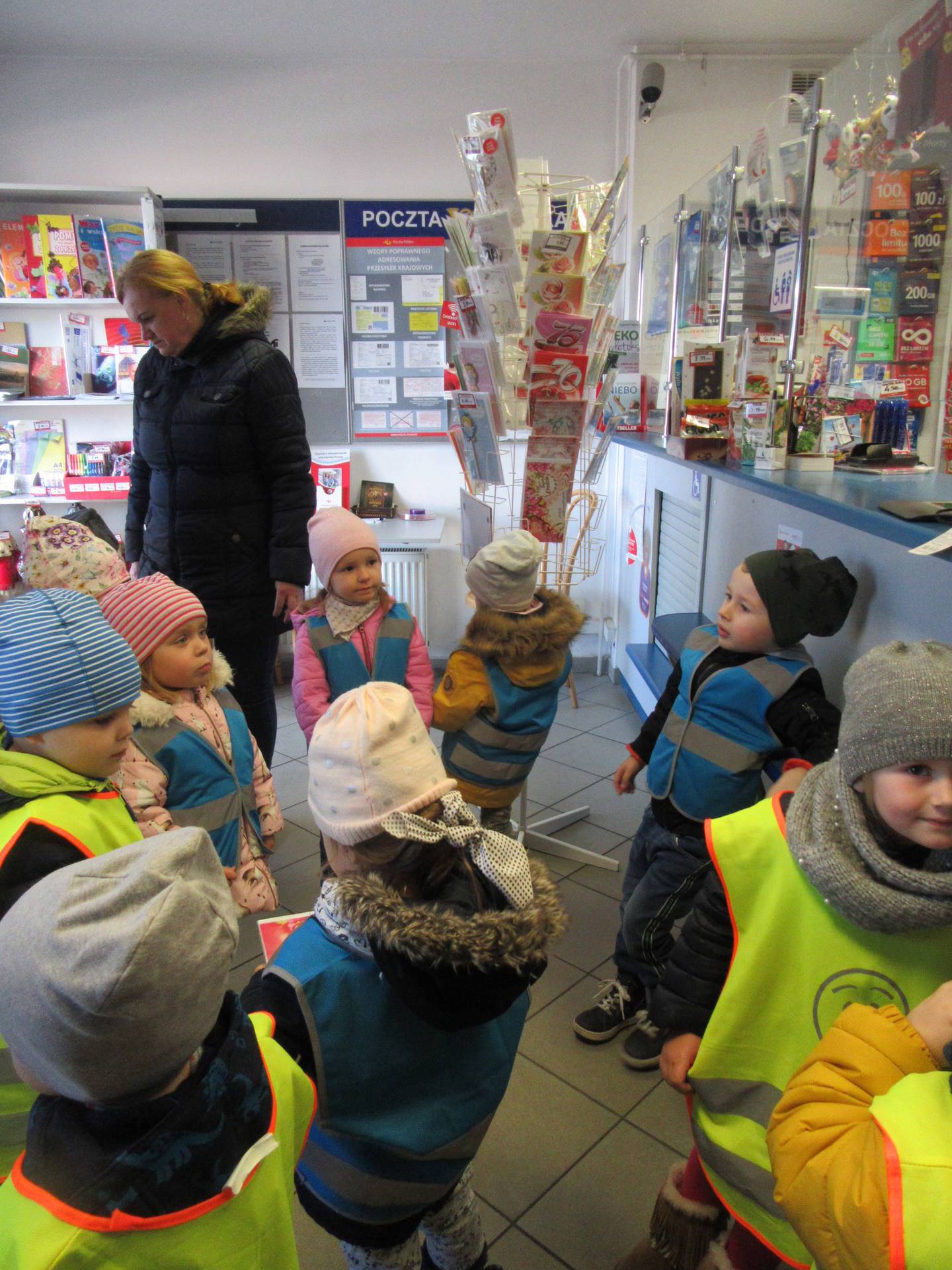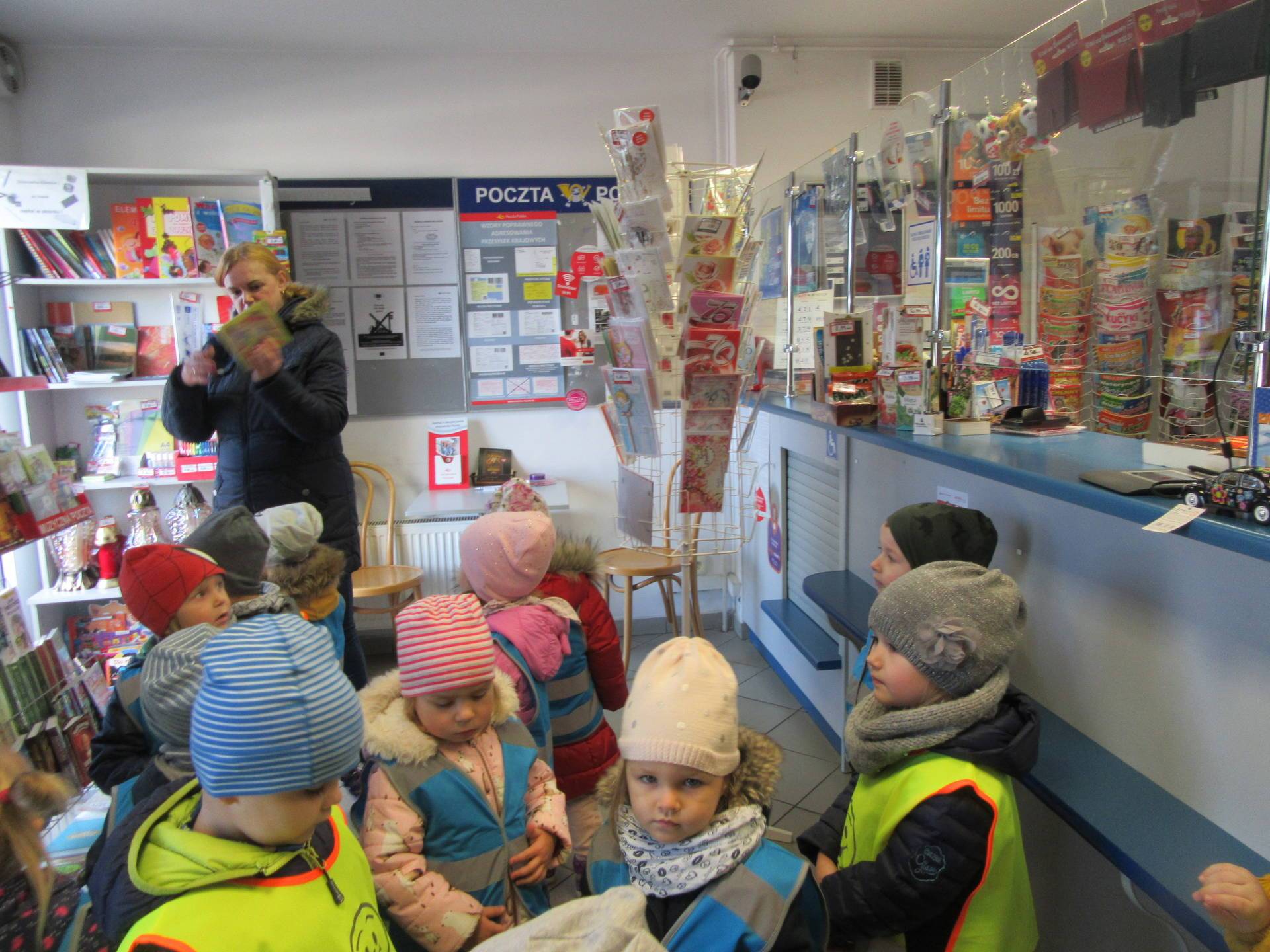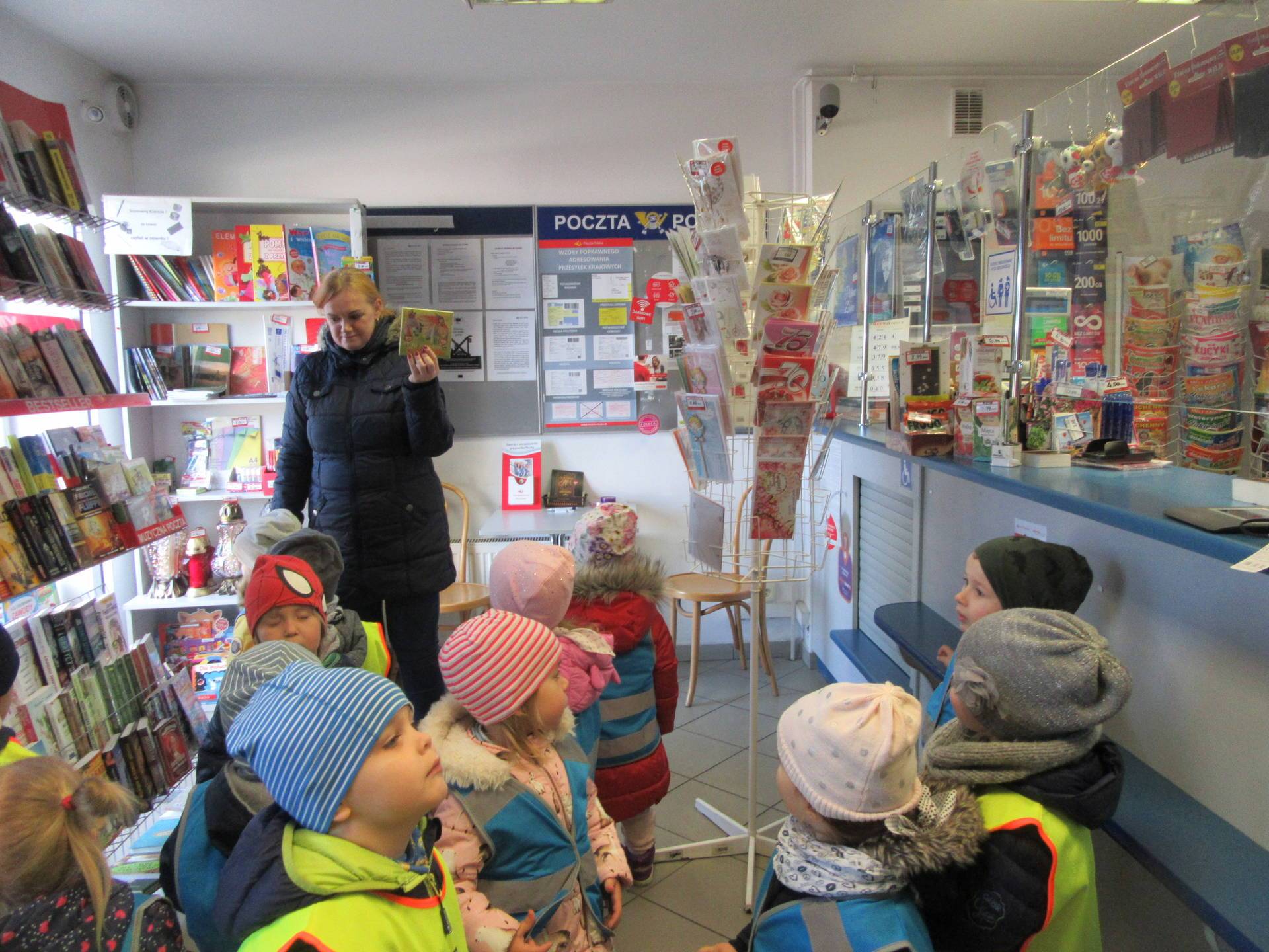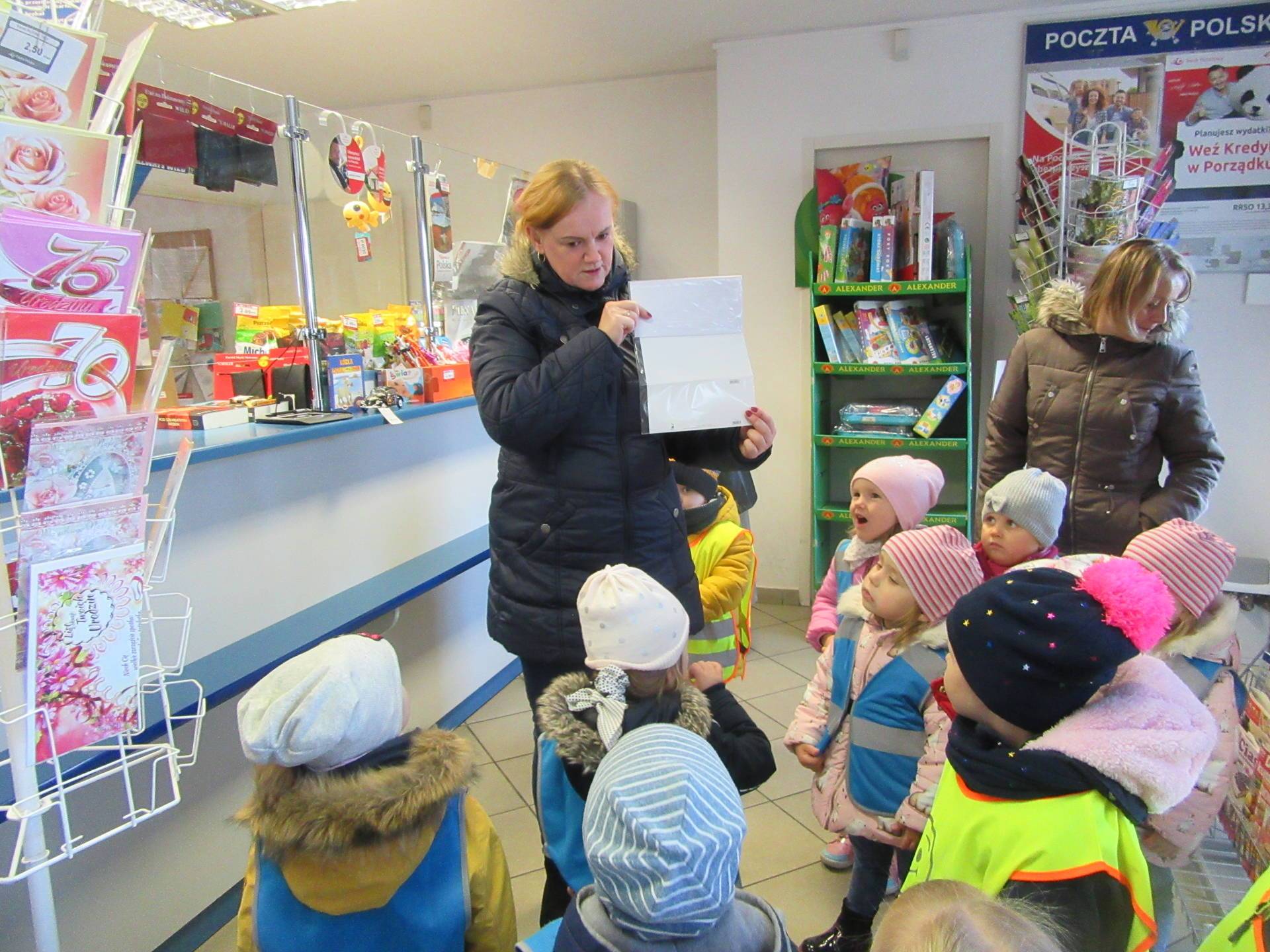 Idziemy na pocztę by poznać drogę listu.Skrzynka na listy,pani w okienku,kupimy kartkę, znaczek ,napiszemy list a potem zostawimy na poczcie nasz list.Ciekawe kiedy odwiedzi nas listonosz.