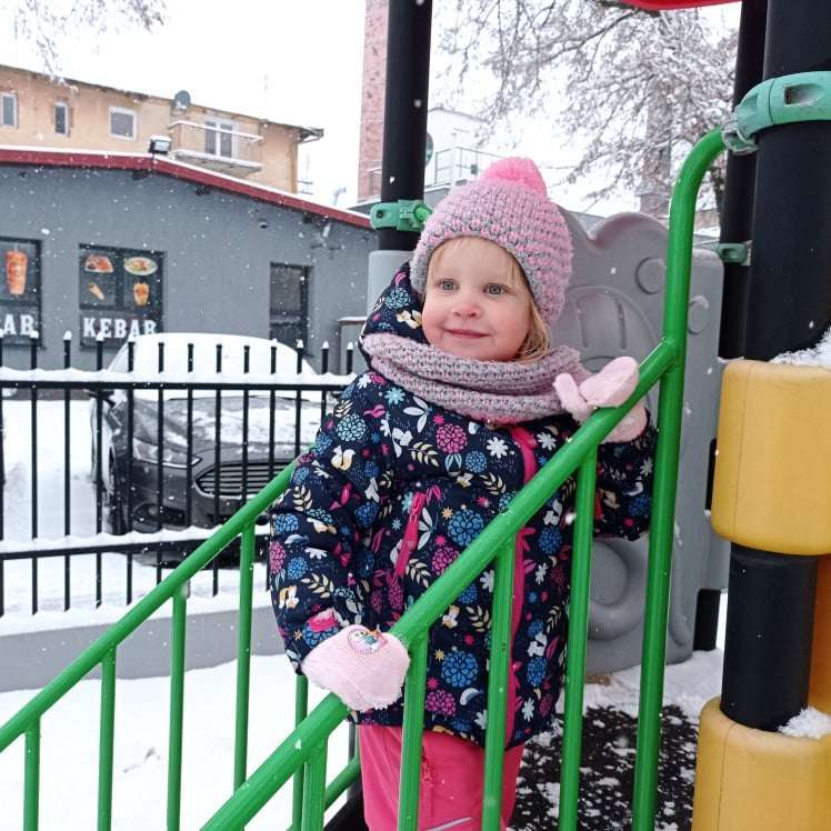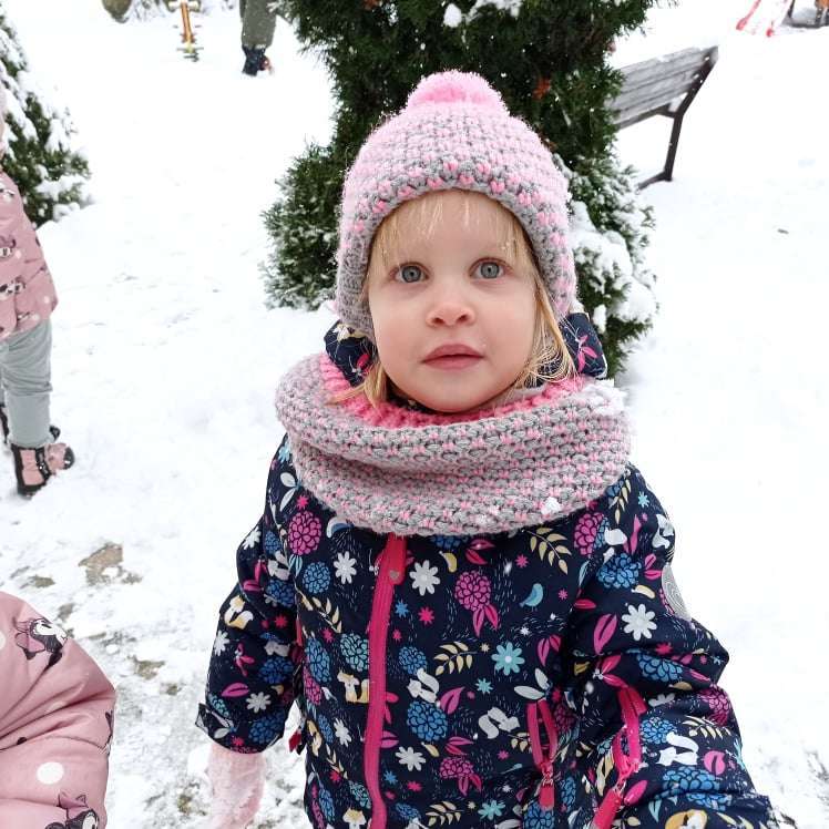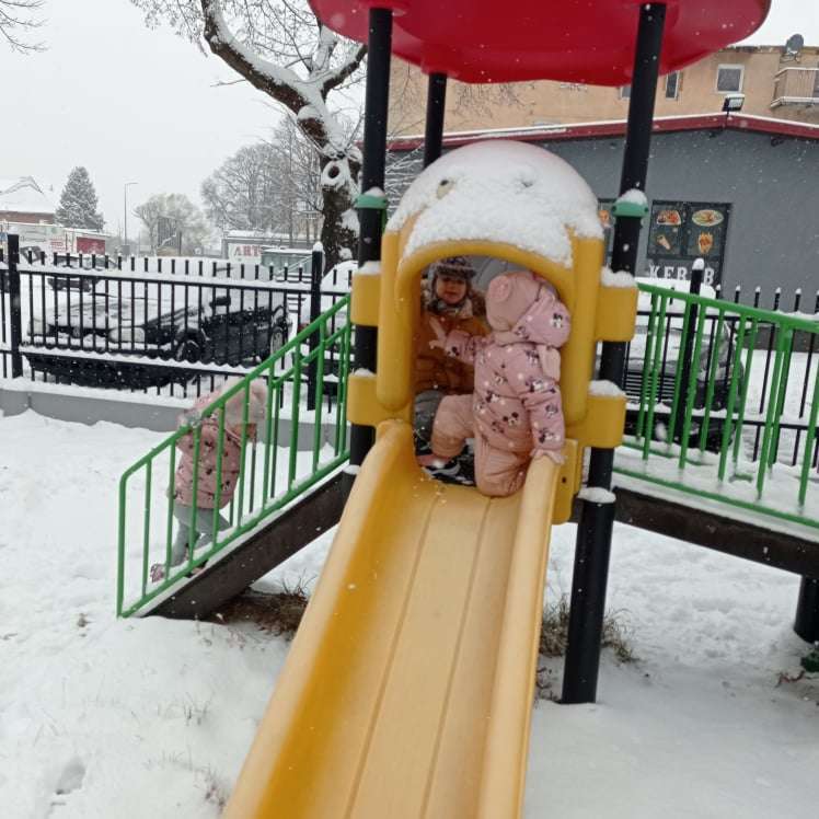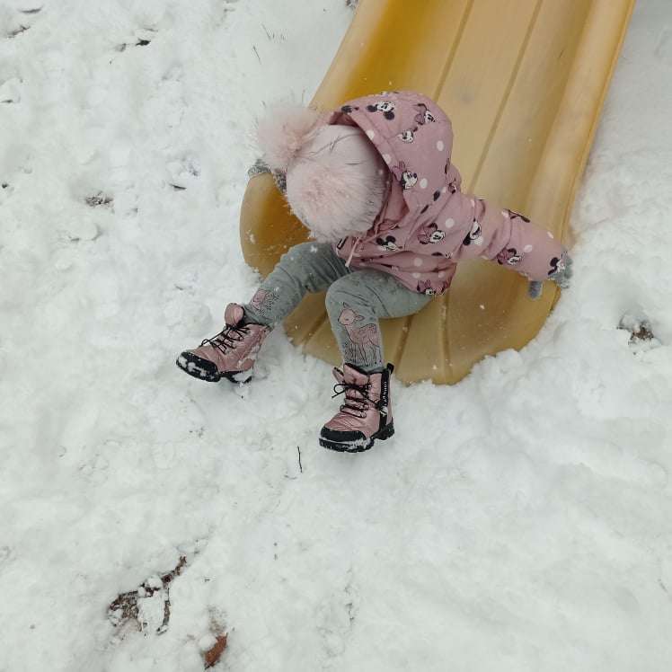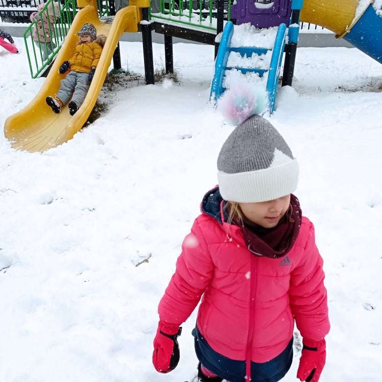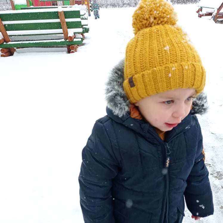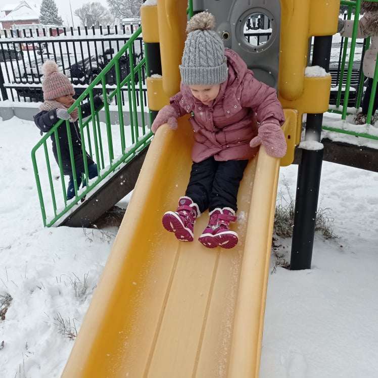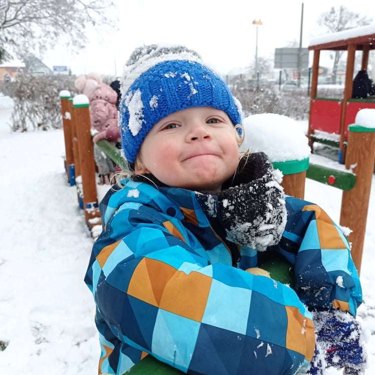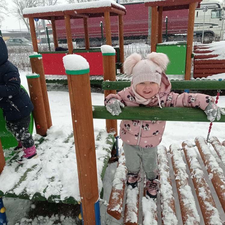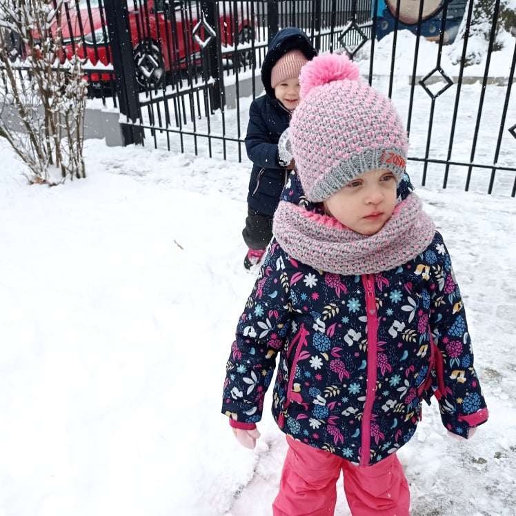 Pierwsze tej zimy opady śniegu sprawiły maluchom wiele radości. Grupa żabek doskonale bawiła się „białym puchem”. Dzieci nie mogły nacieszyć się śniegiem – biegały po ogrodzie przedszkolnym, rzucały śnieżkami, lepiły bałwana, chodziły „tropem”.
