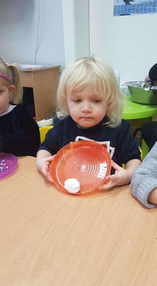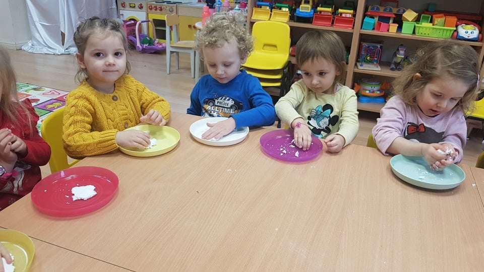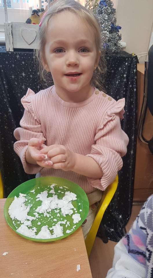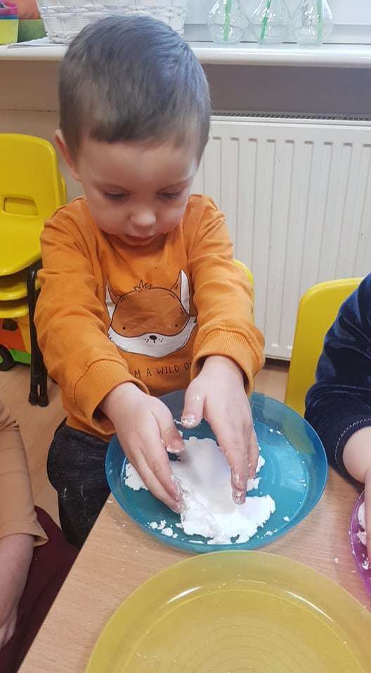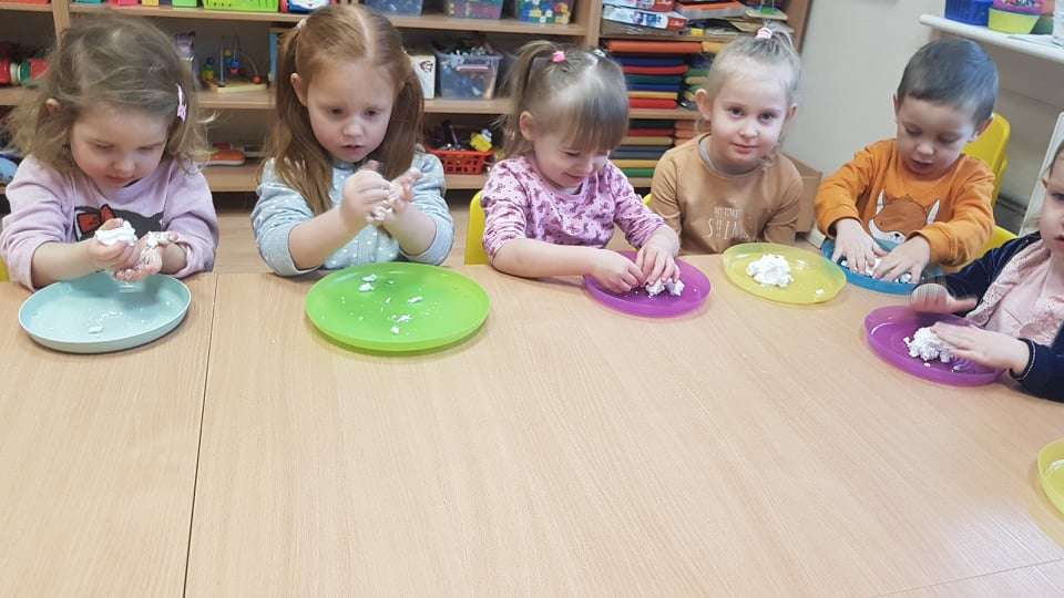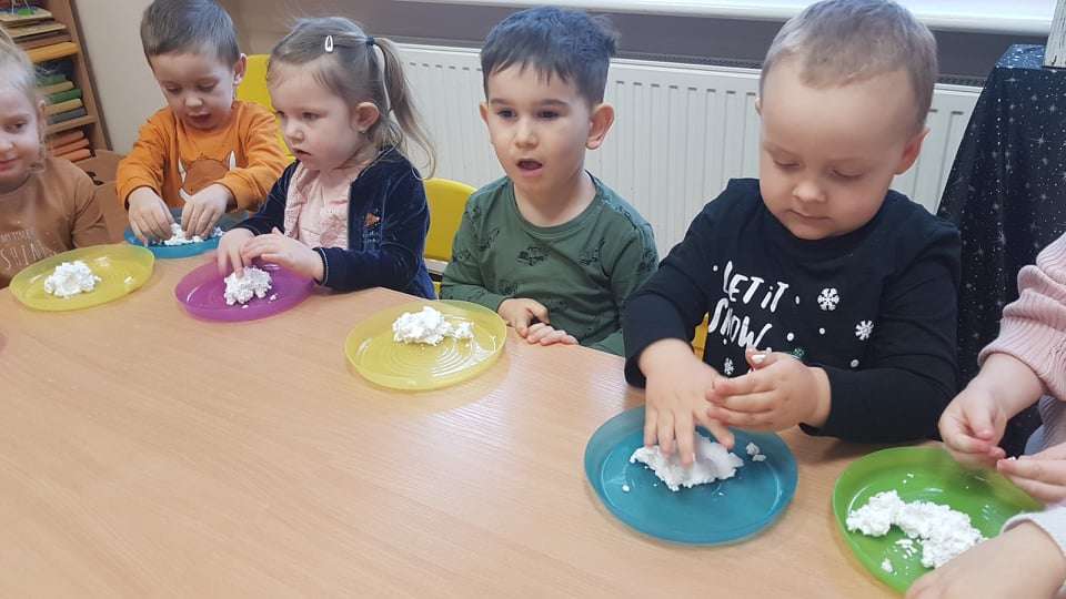 Gr. I Zadanie z projektu "Gramy Zmysłami" dotyk - sztuczny śnieg