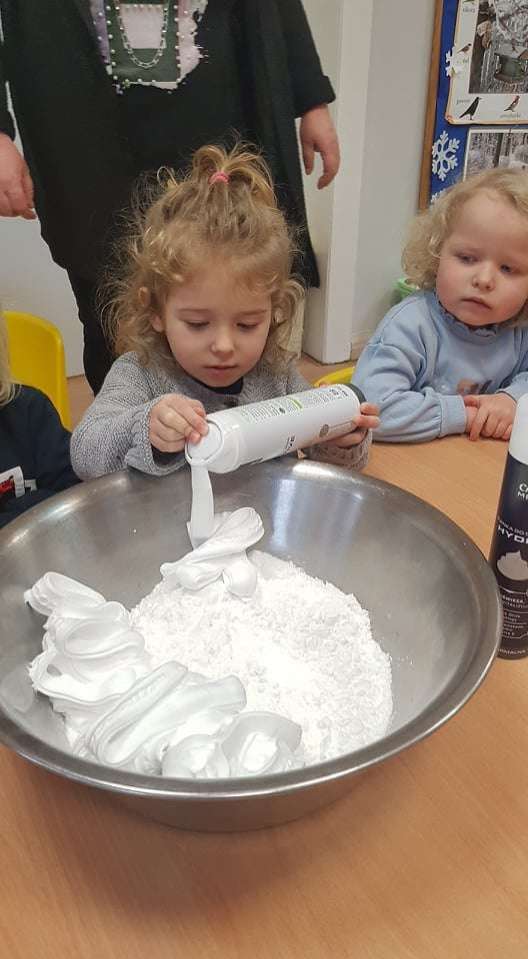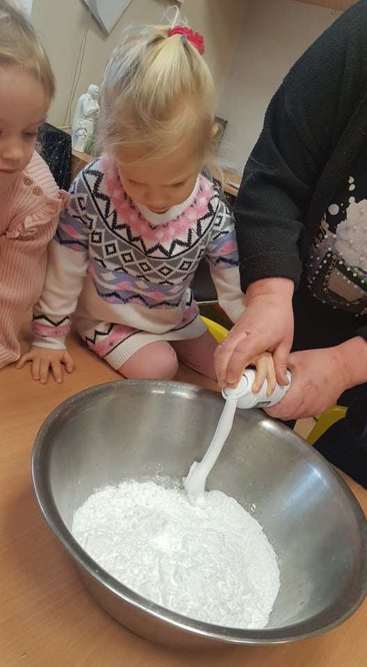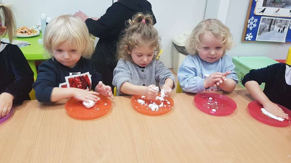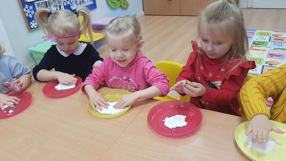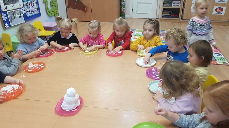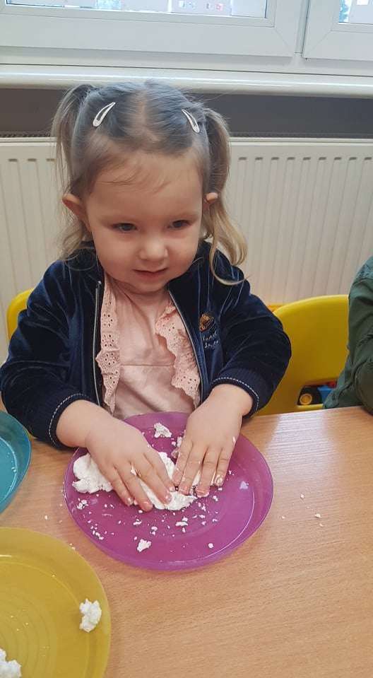 Gr. I Zadanie z projektu "Gramy Zmysłami" dotyk - sztuczny śnieg
