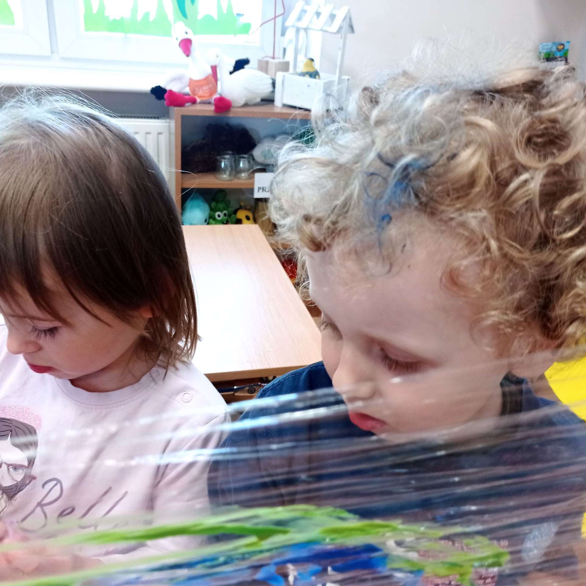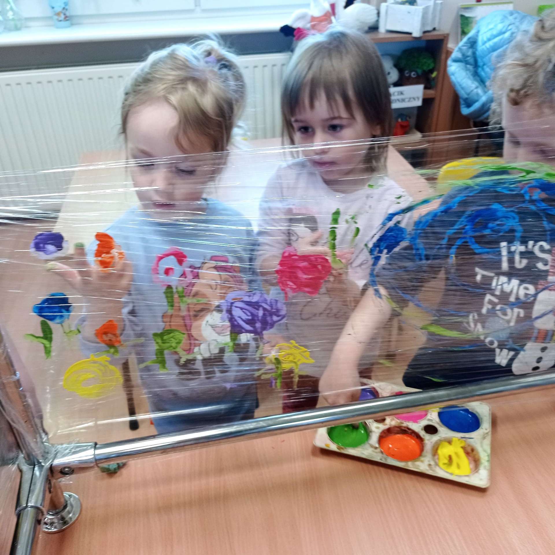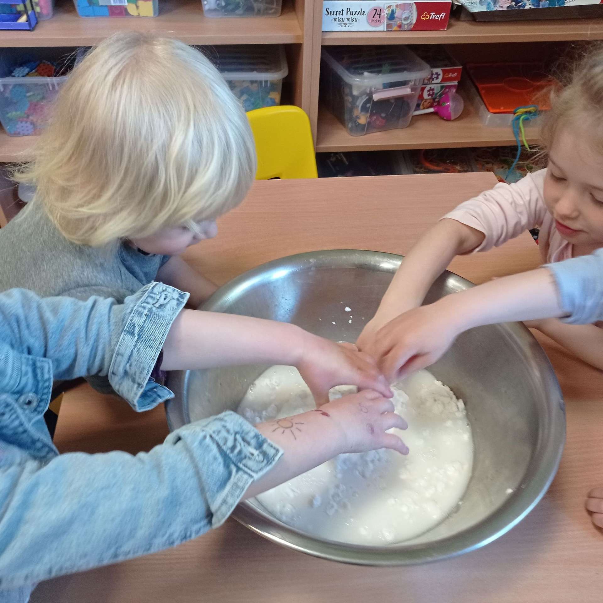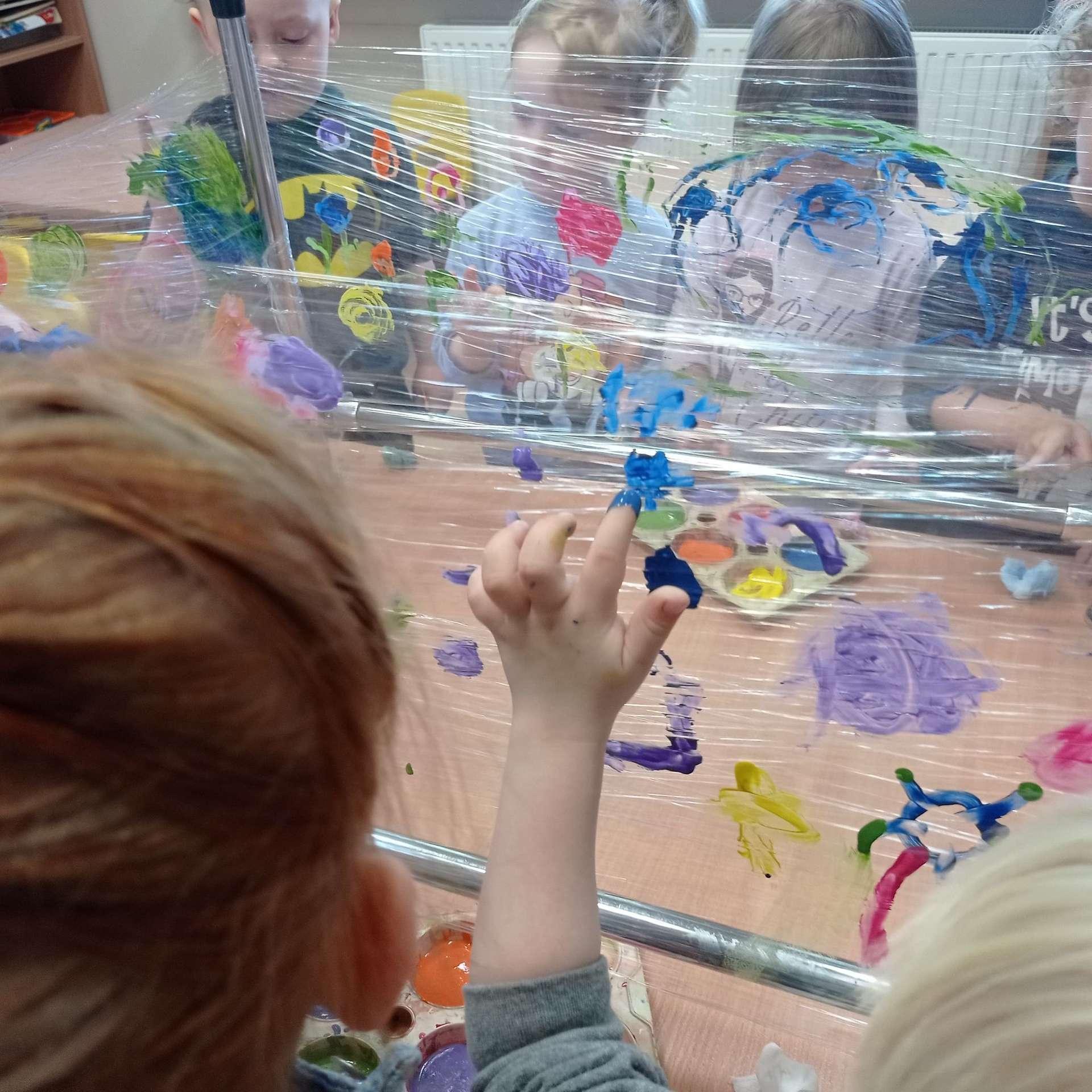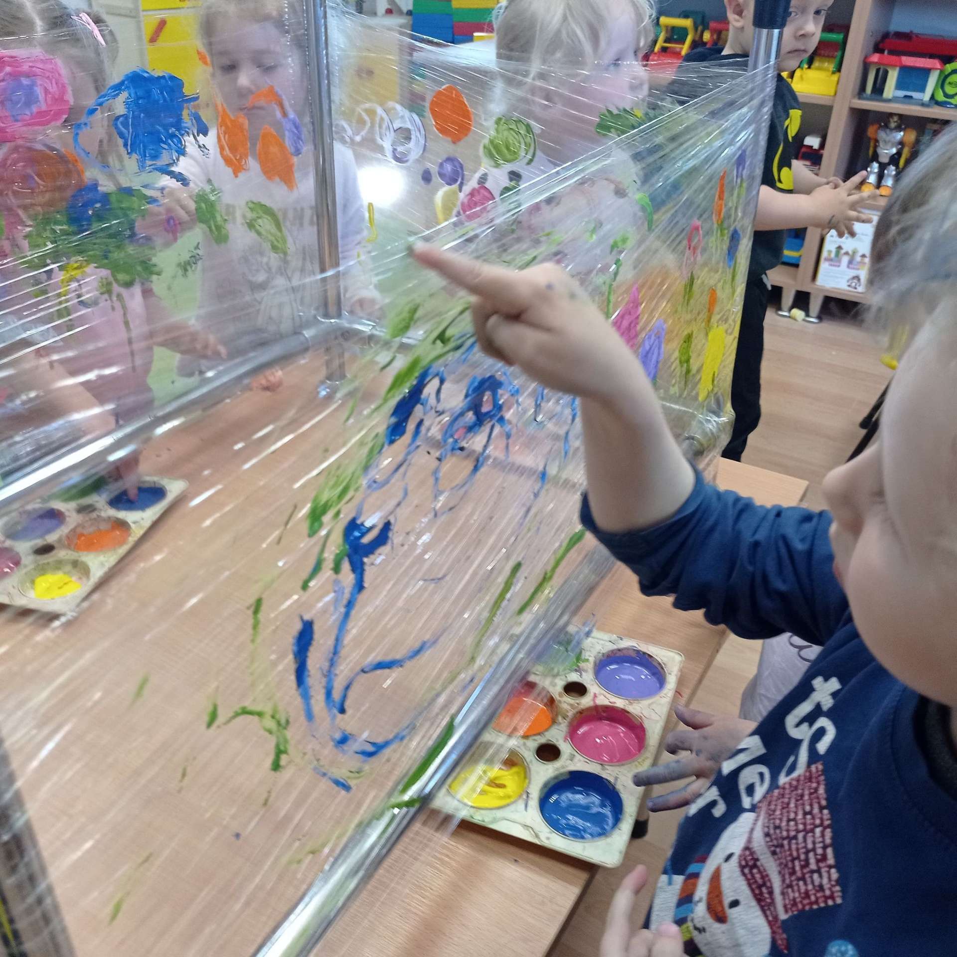 To już ostatnie zadanie z projektu "Gramy zmysłami". Tym razem dzieci poznały ciecz nienewtonowską oraz malowały palcami na folii spożywczej.