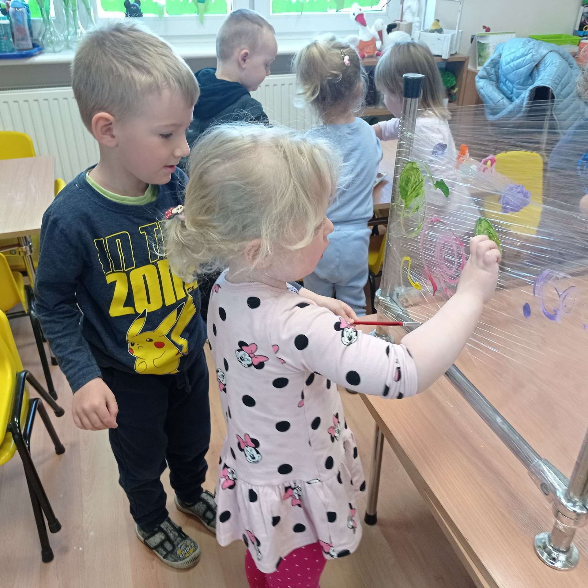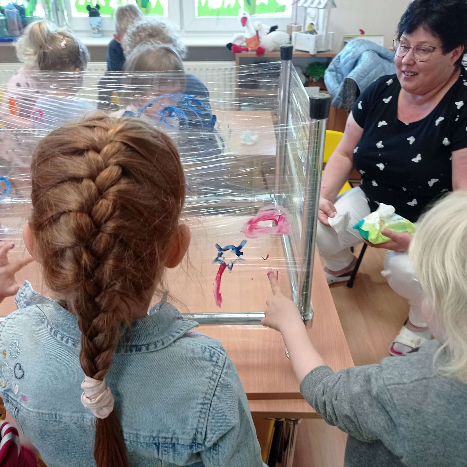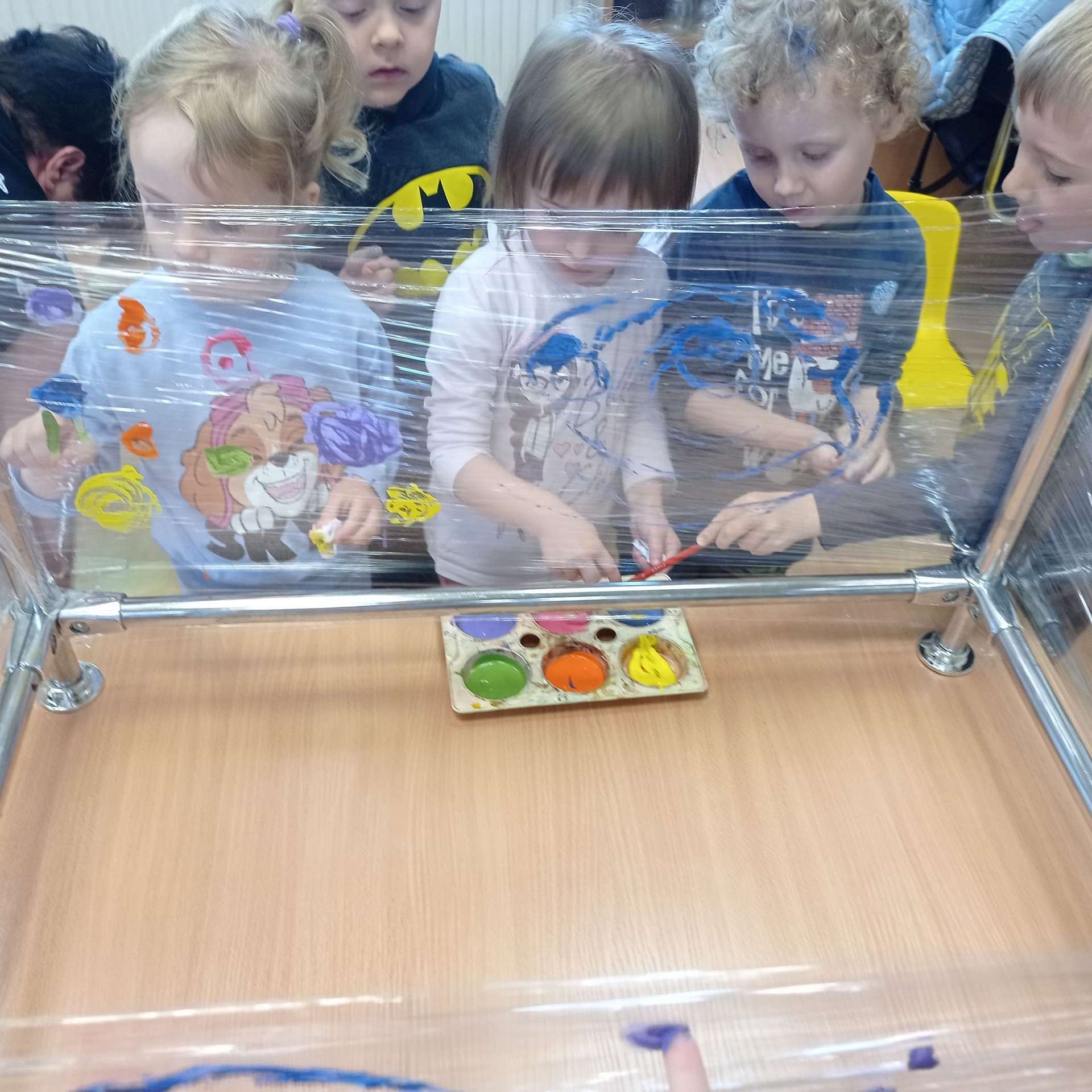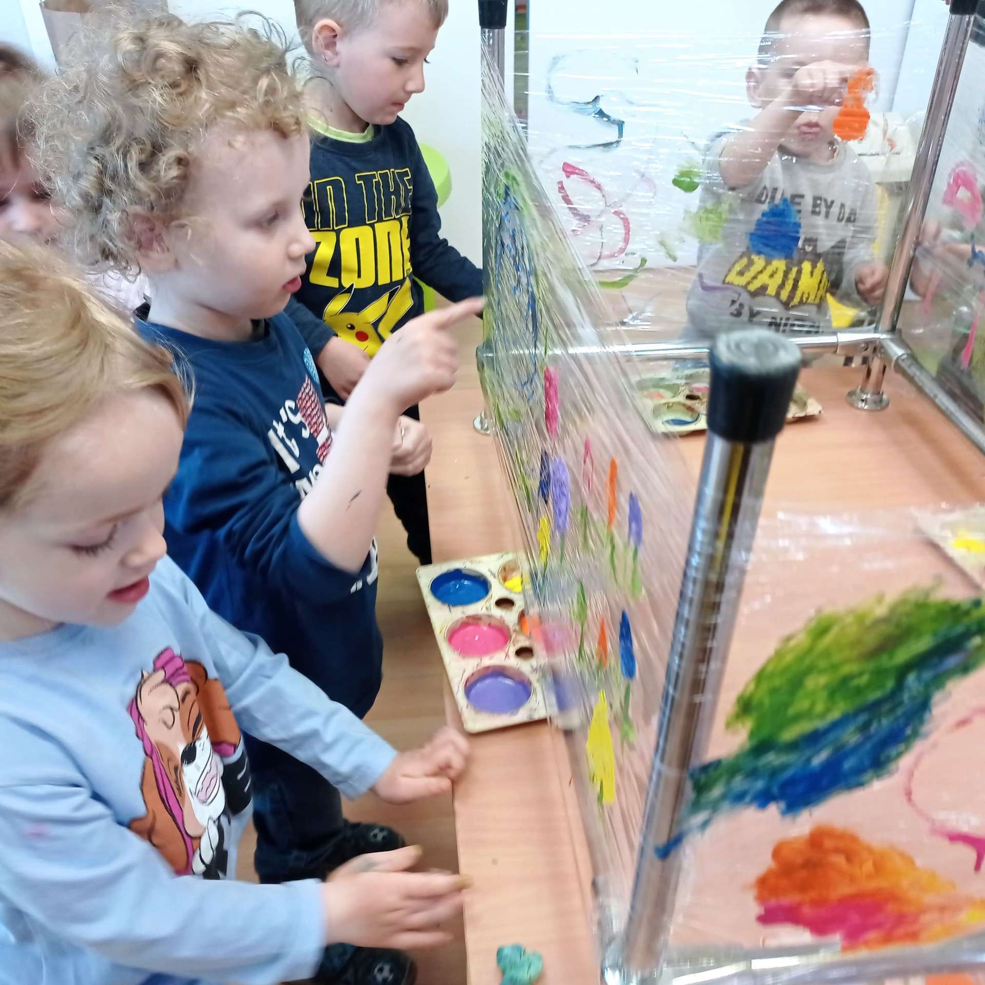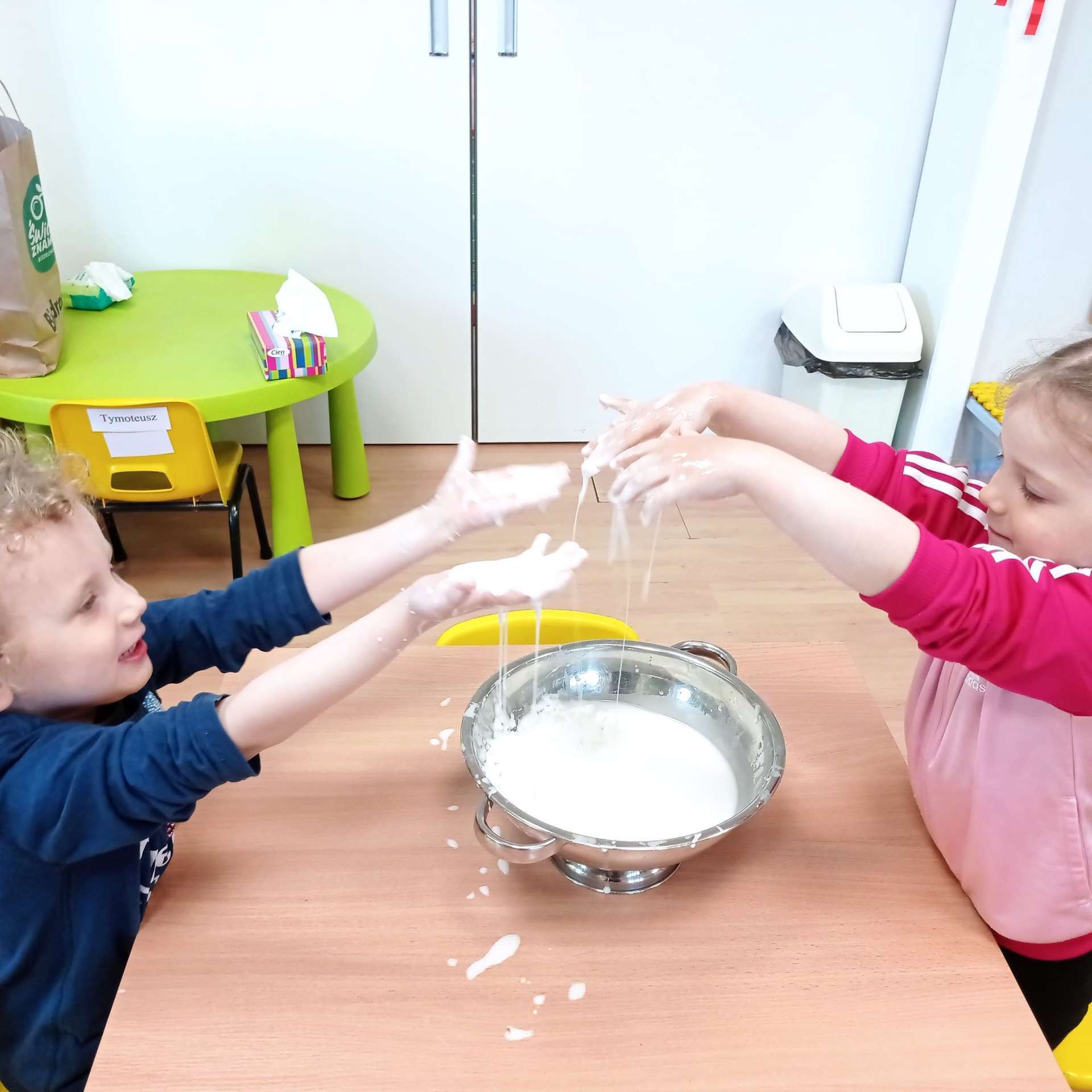 To już ostatnie zadanie z projektu "Gramy zmysłami". Tym razem dzieci poznały ciecz nienewtonowską oraz malowały palcami na folii spożywczej.