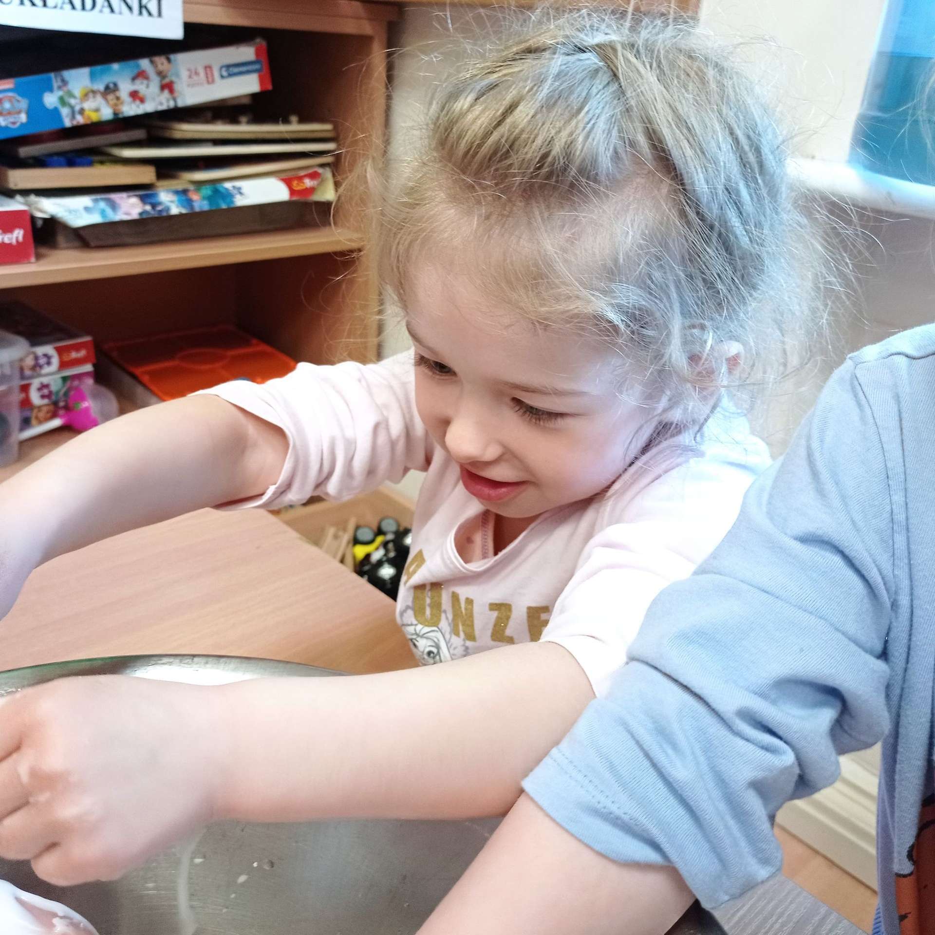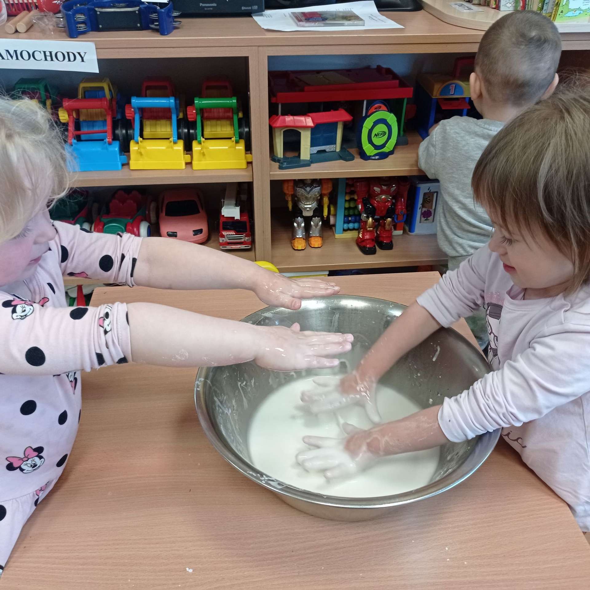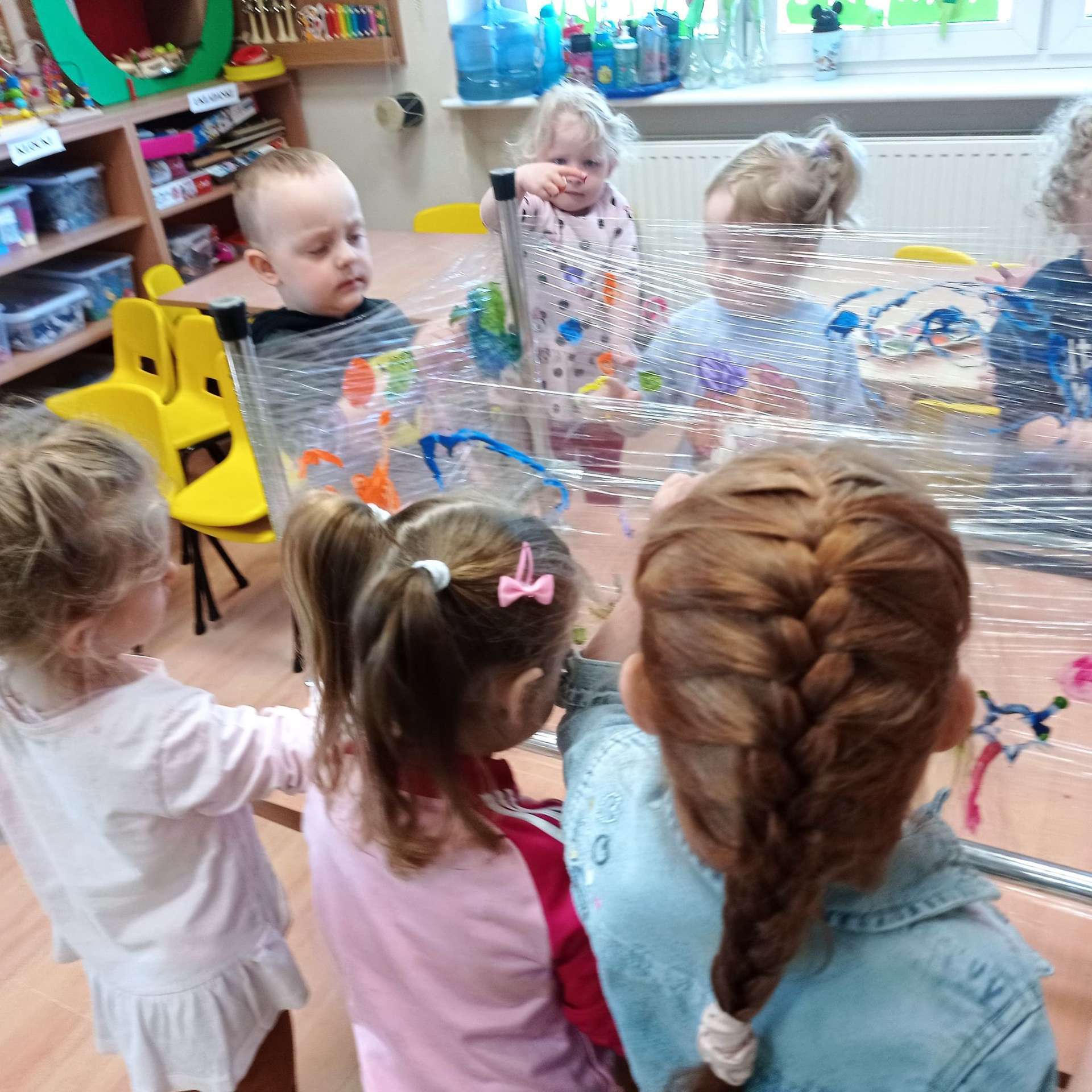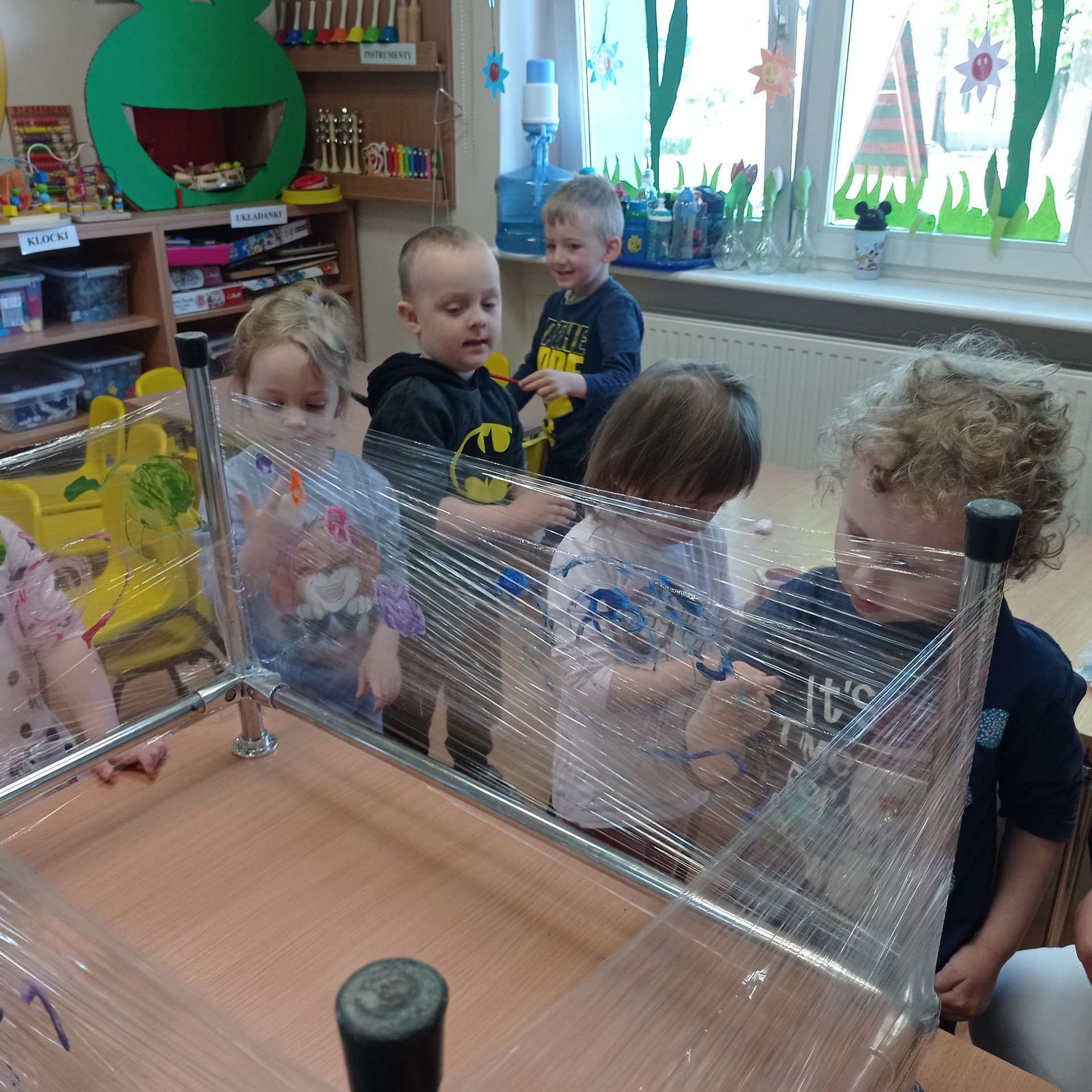 To już ostatnie zadanie z projektu "Gramy zmysłami". Tym razem dzieci poznały ciecz nienewtonowską oraz malowały palcami na folii spożywczej.