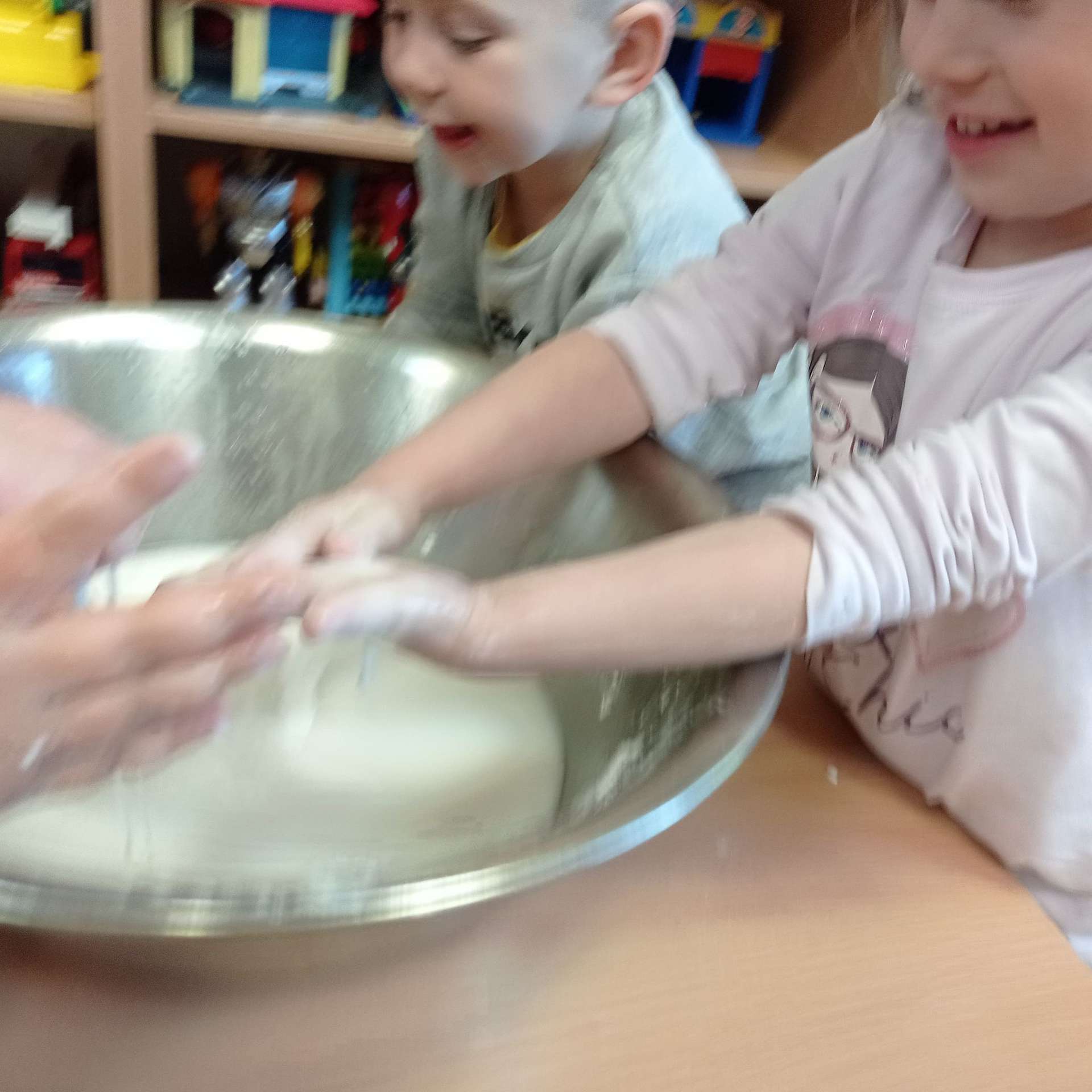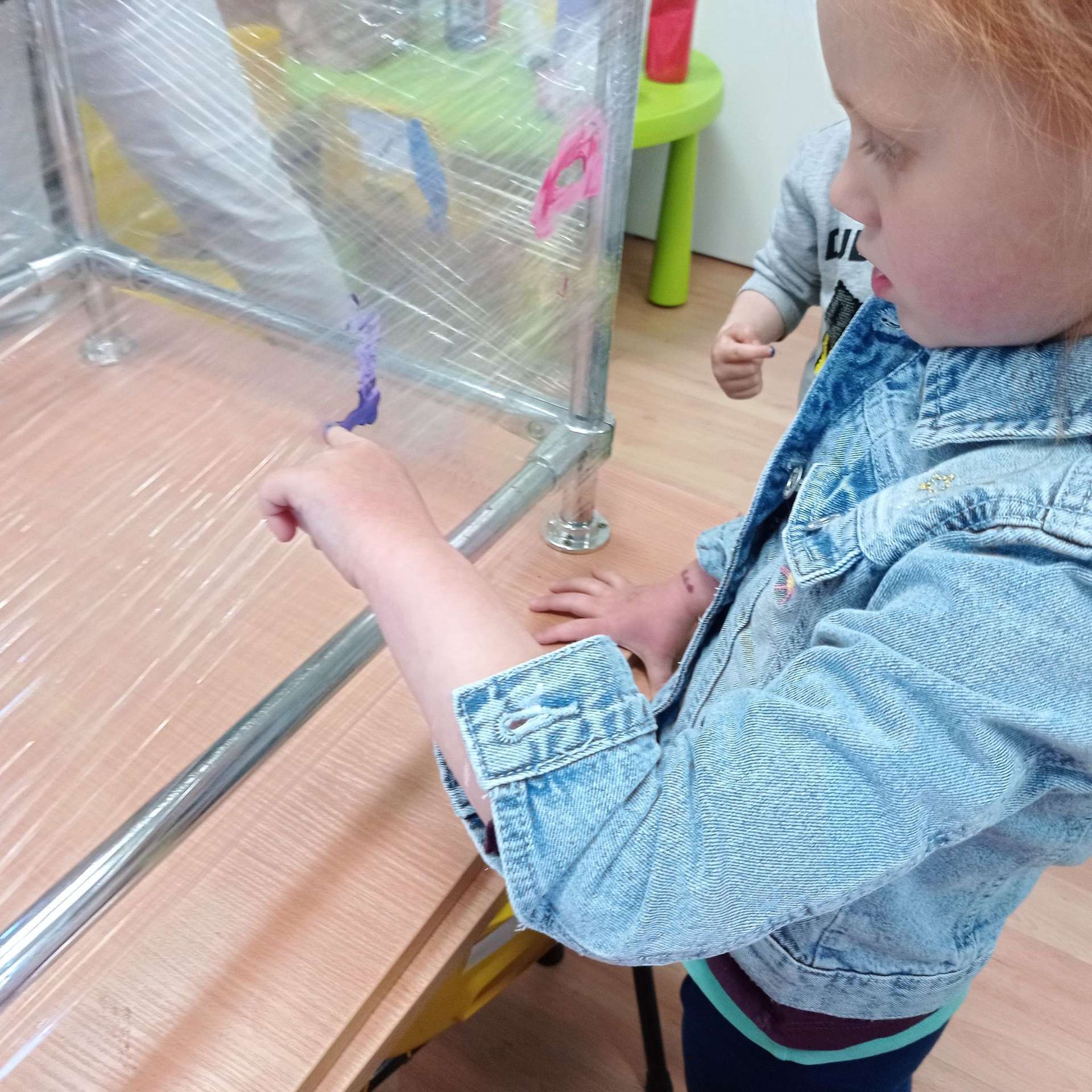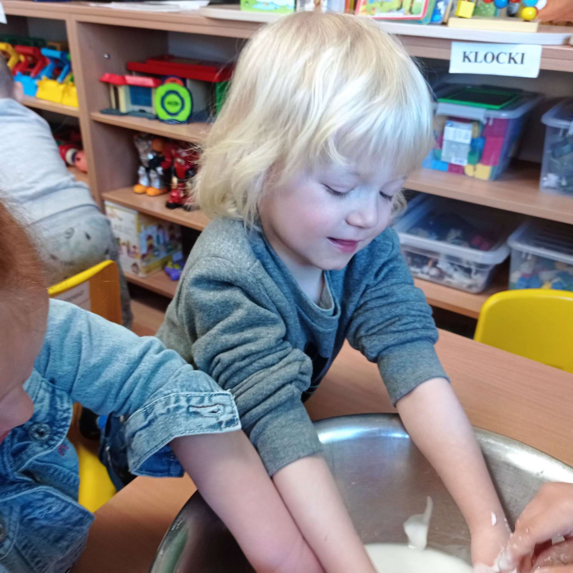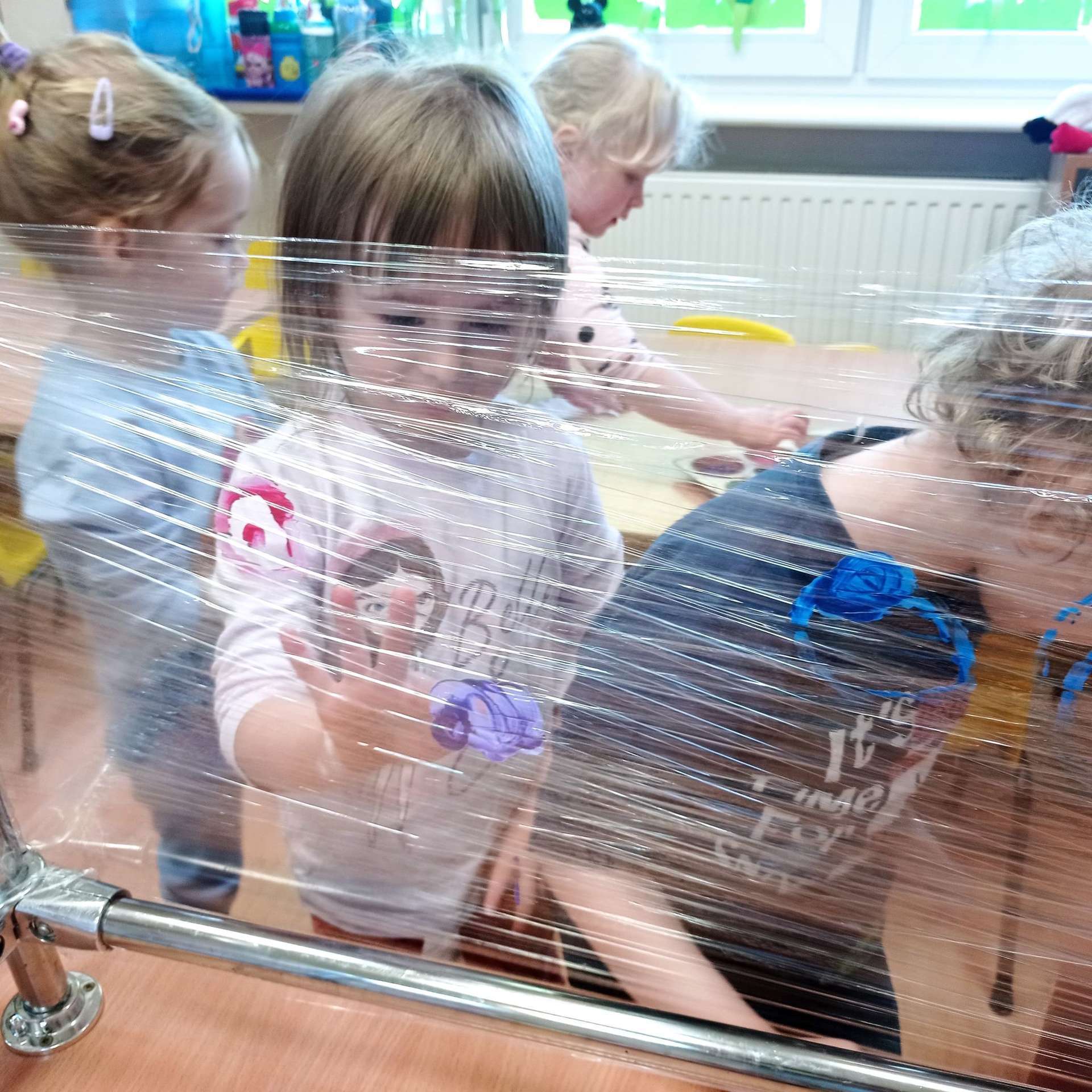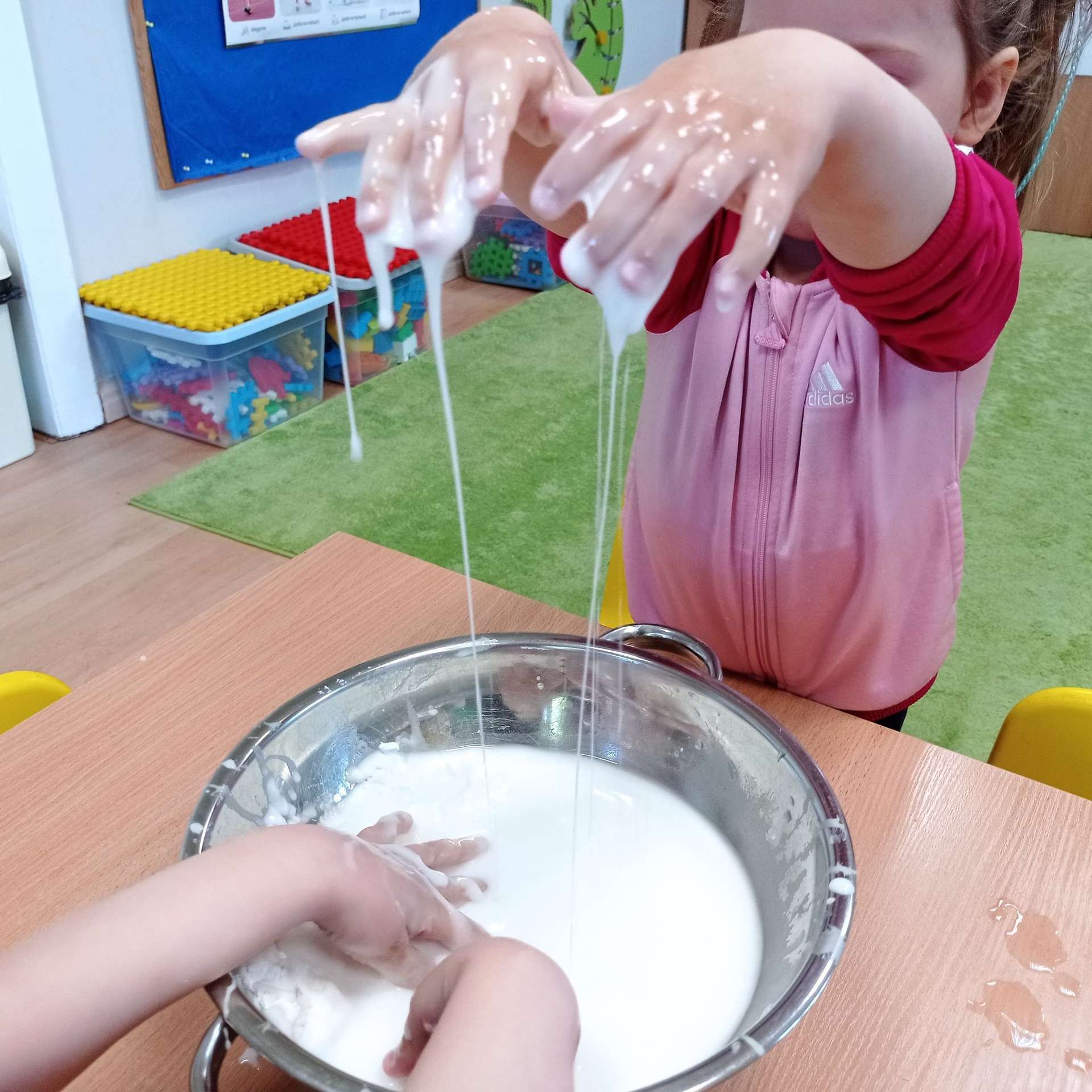To już ostatnie zadanie z projektu "Gramy zmysłami". Tym razem dzieci poznały ciecz nienewtonowską oraz malowały palcami na folii spożywczej.