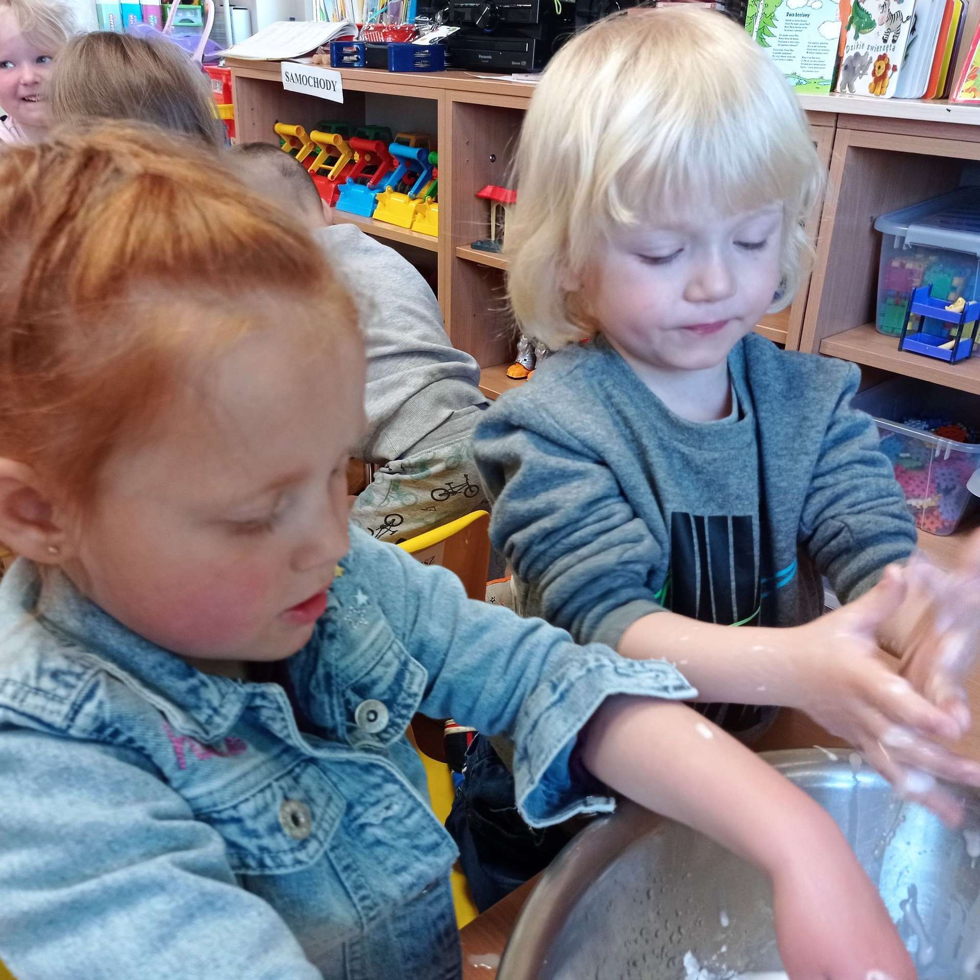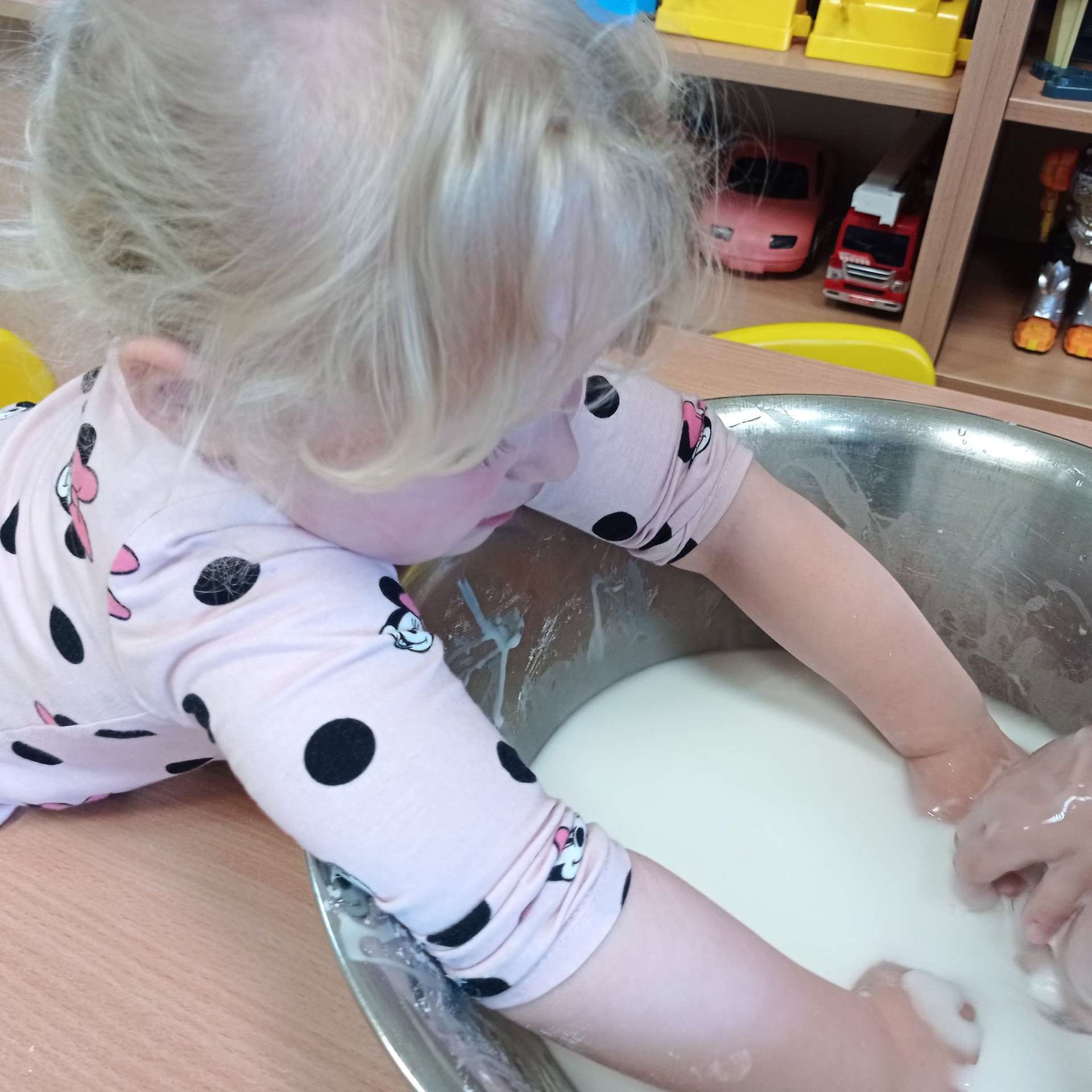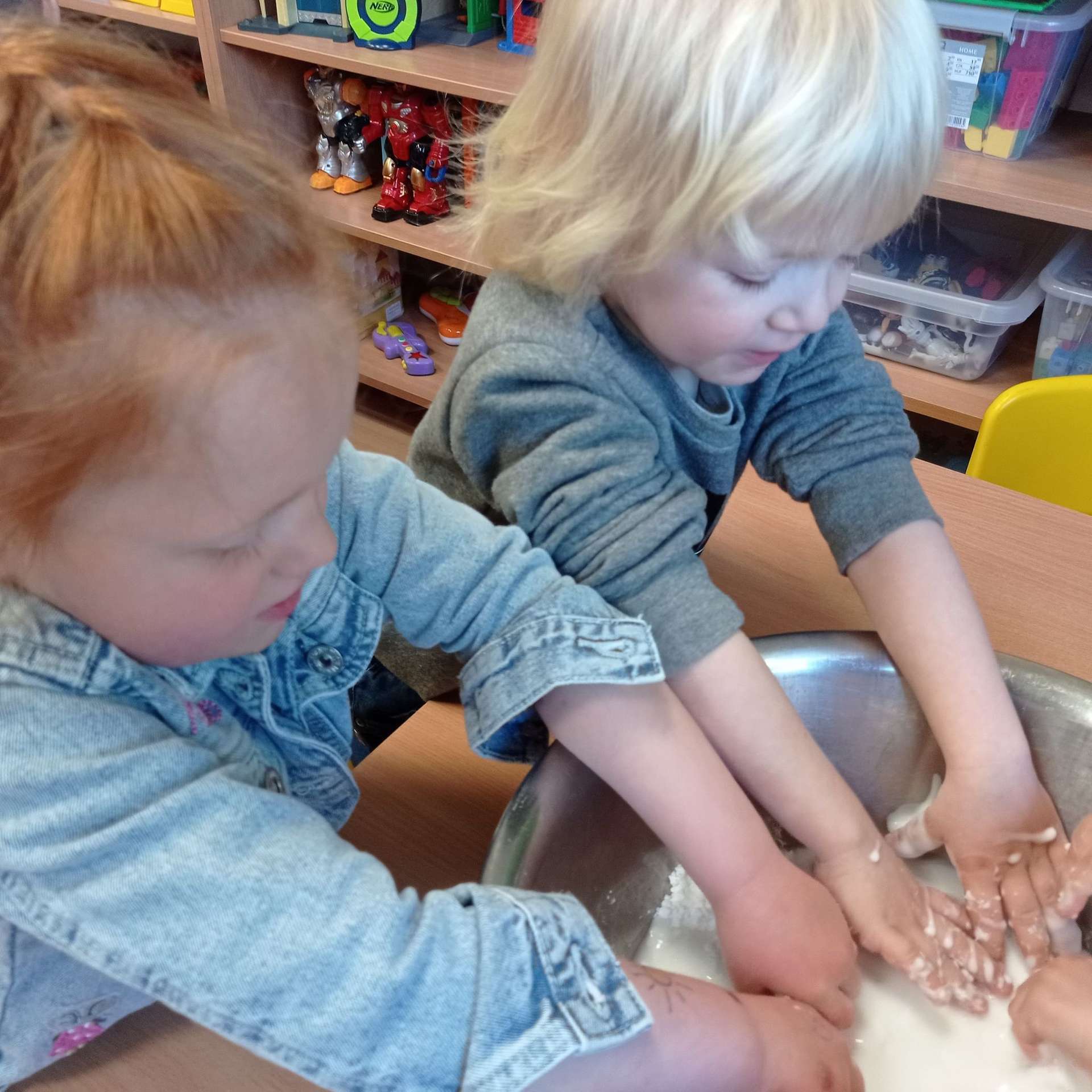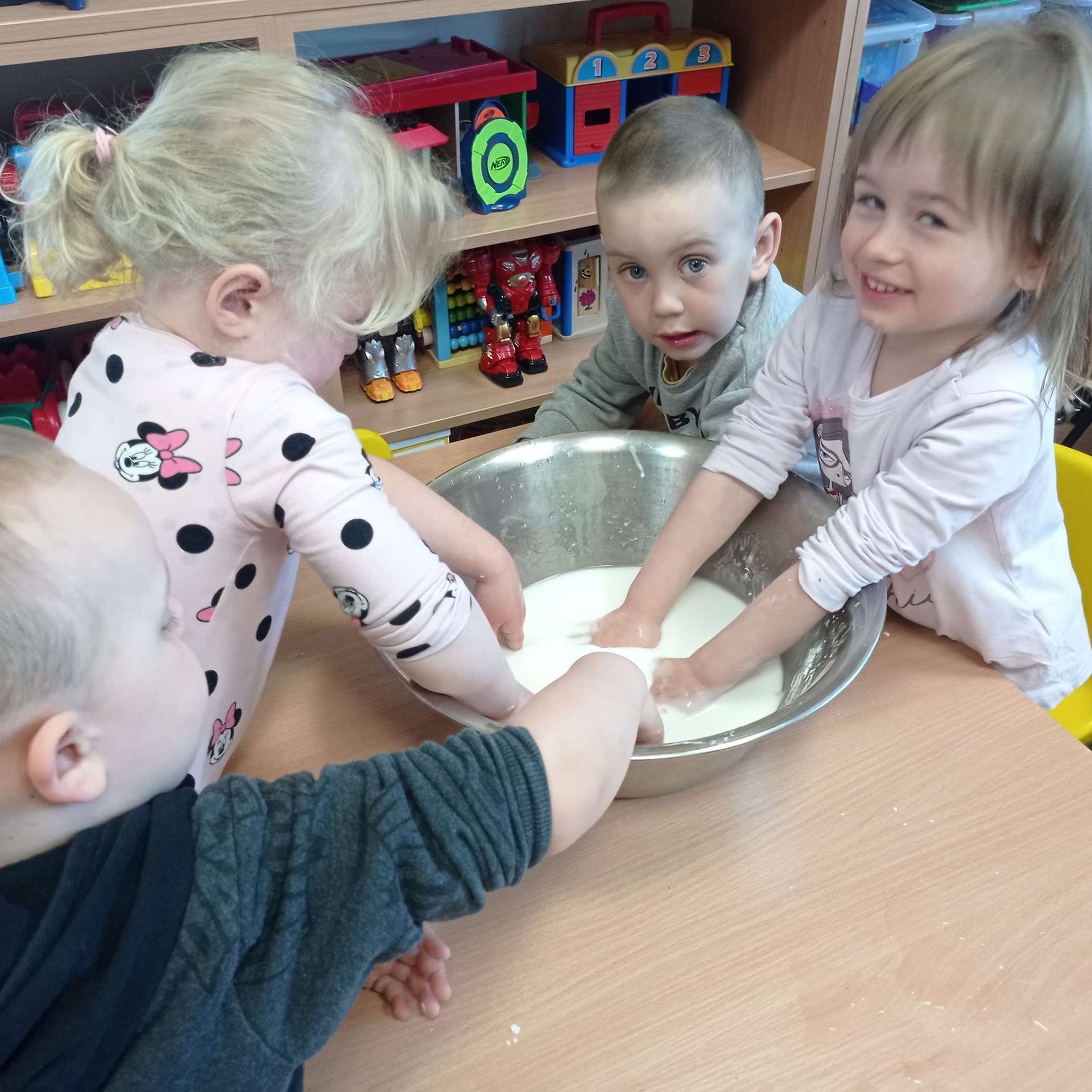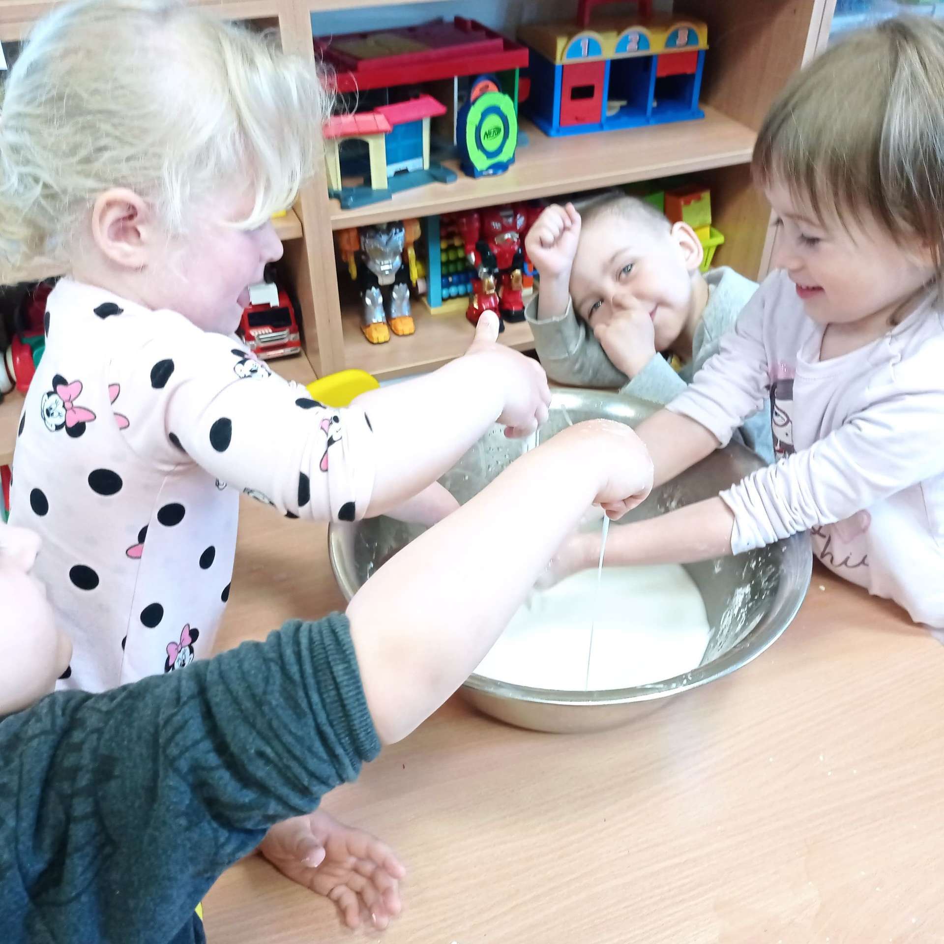 To już ostatnie zadanie z projektu "Gramy zmysłami". Tym razem dzieci poznały ciecz nienewtonowską oraz malowały palcami na folii spożywczej.