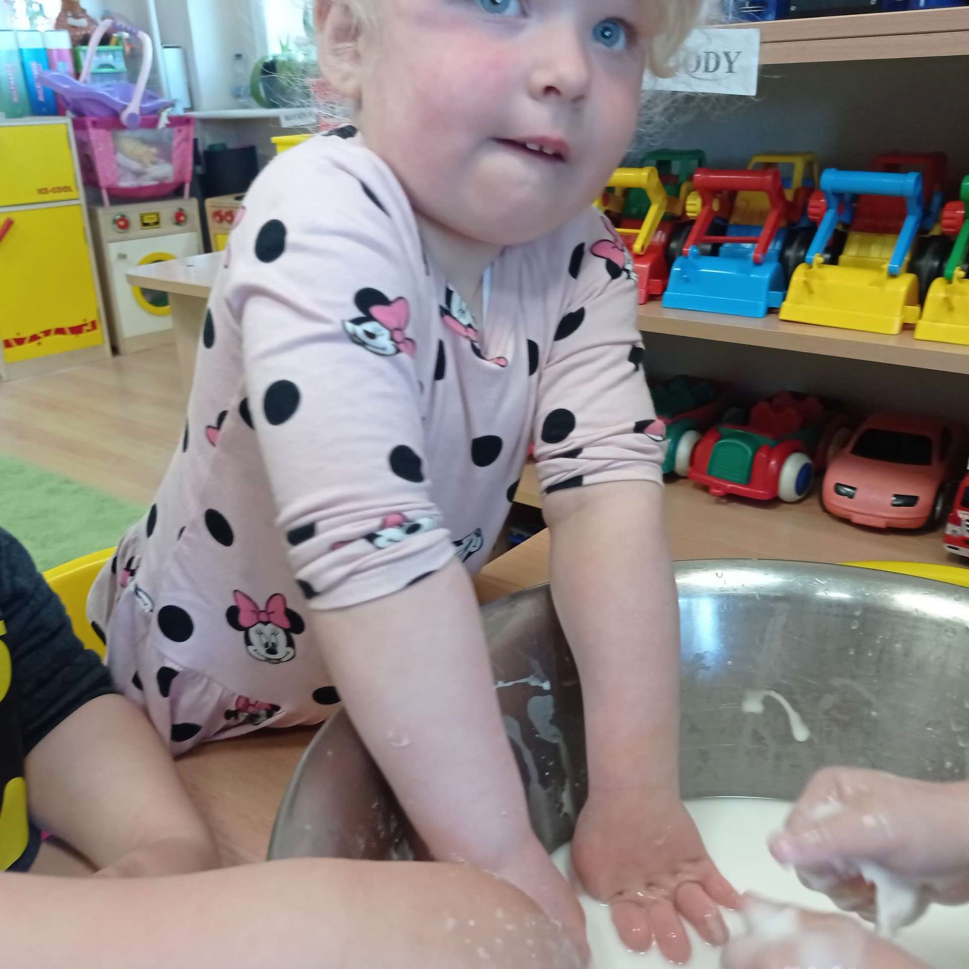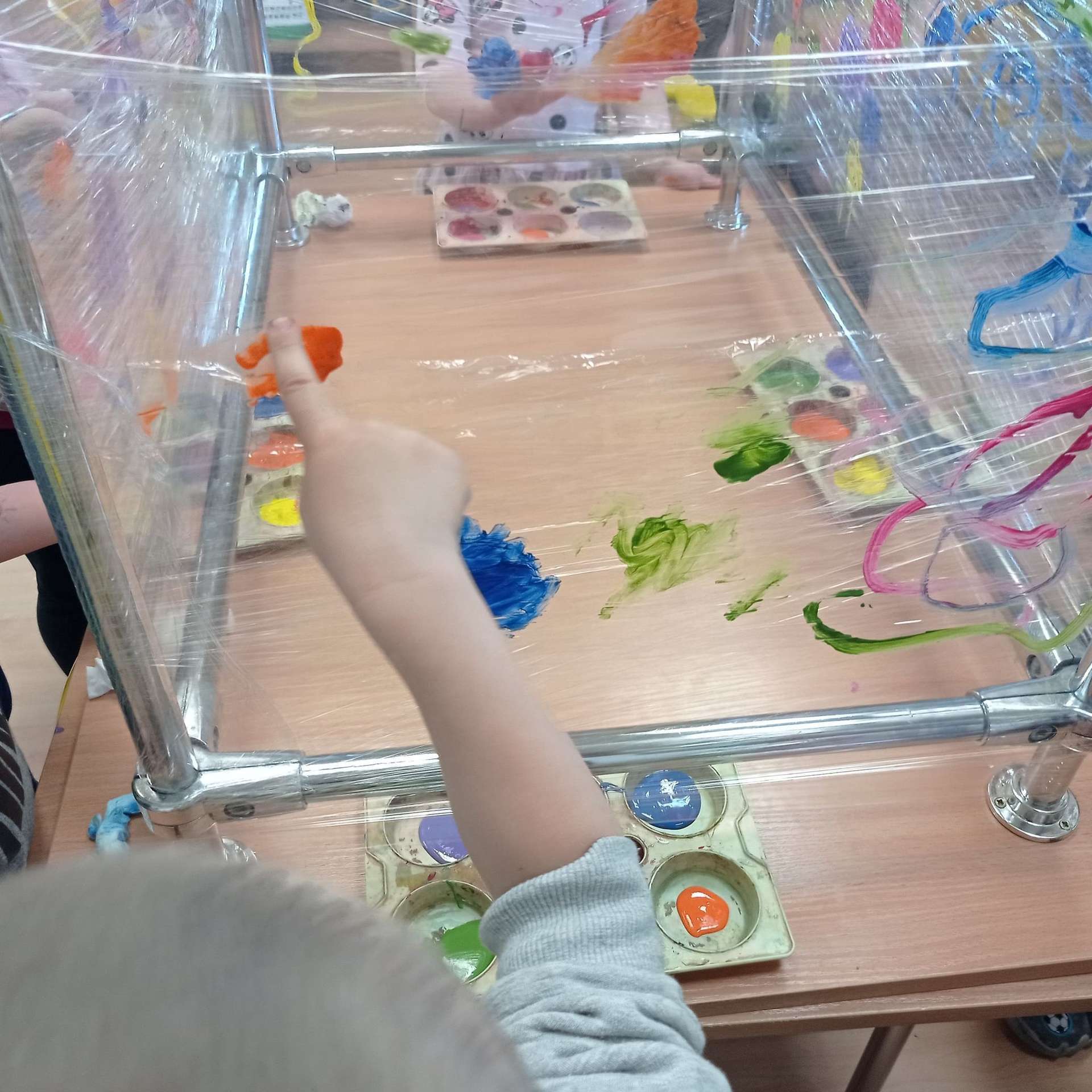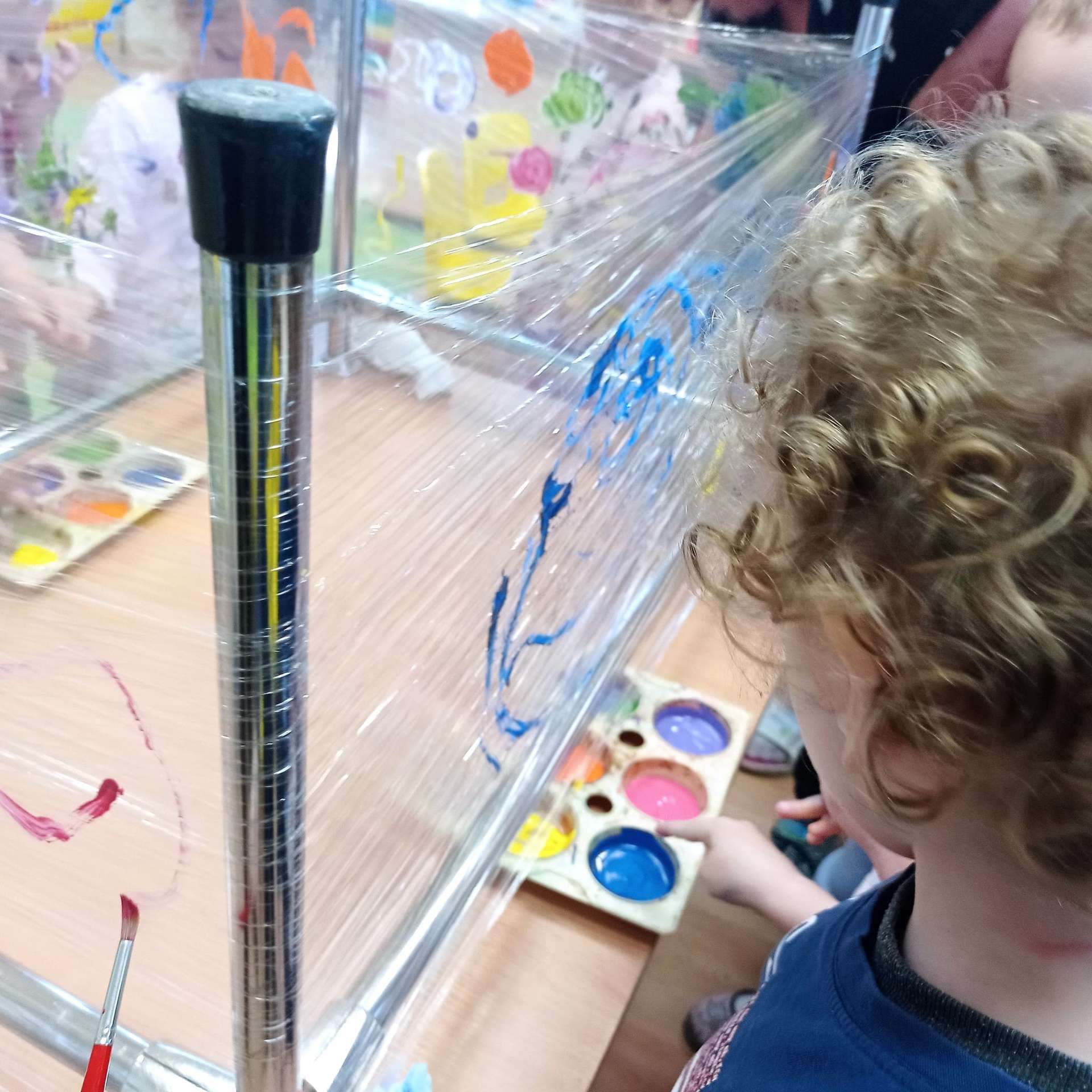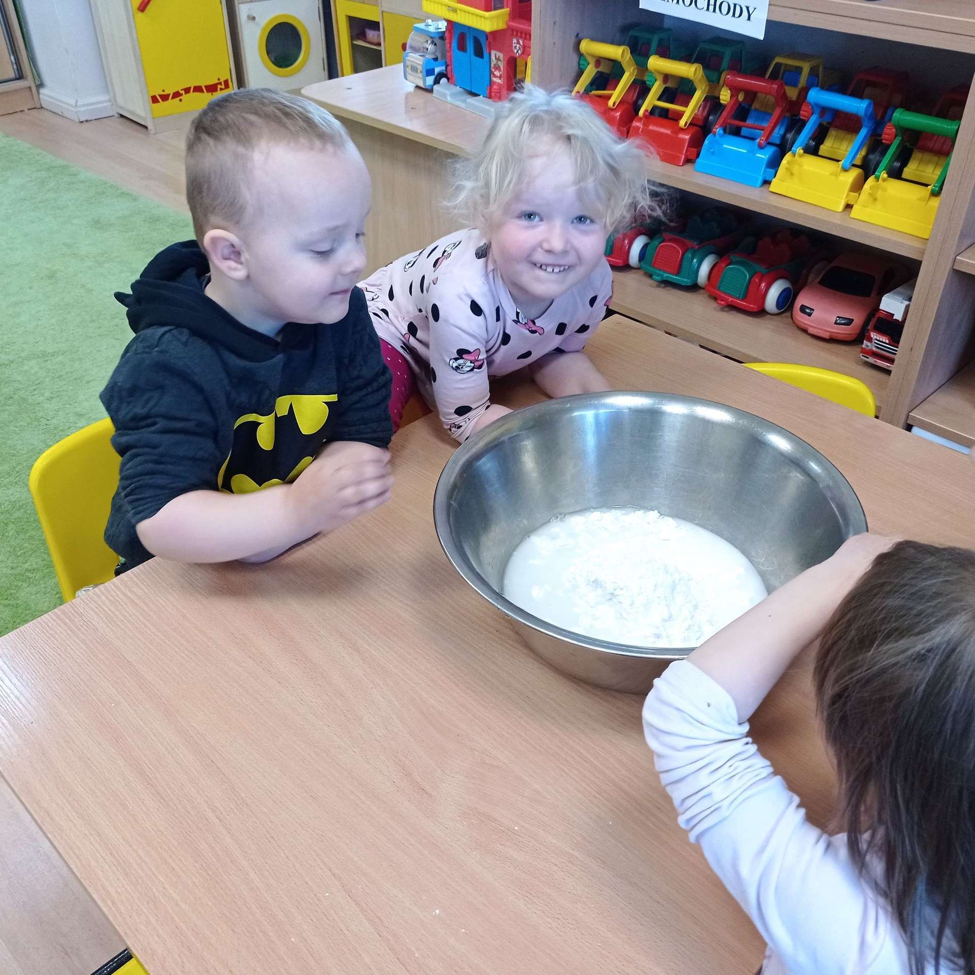 To już ostatnie zadanie z projektu "Gramy zmysłami". Tym razem dzieci poznały ciecz nienewtonowską oraz malowały palcami na folii spożywczej.