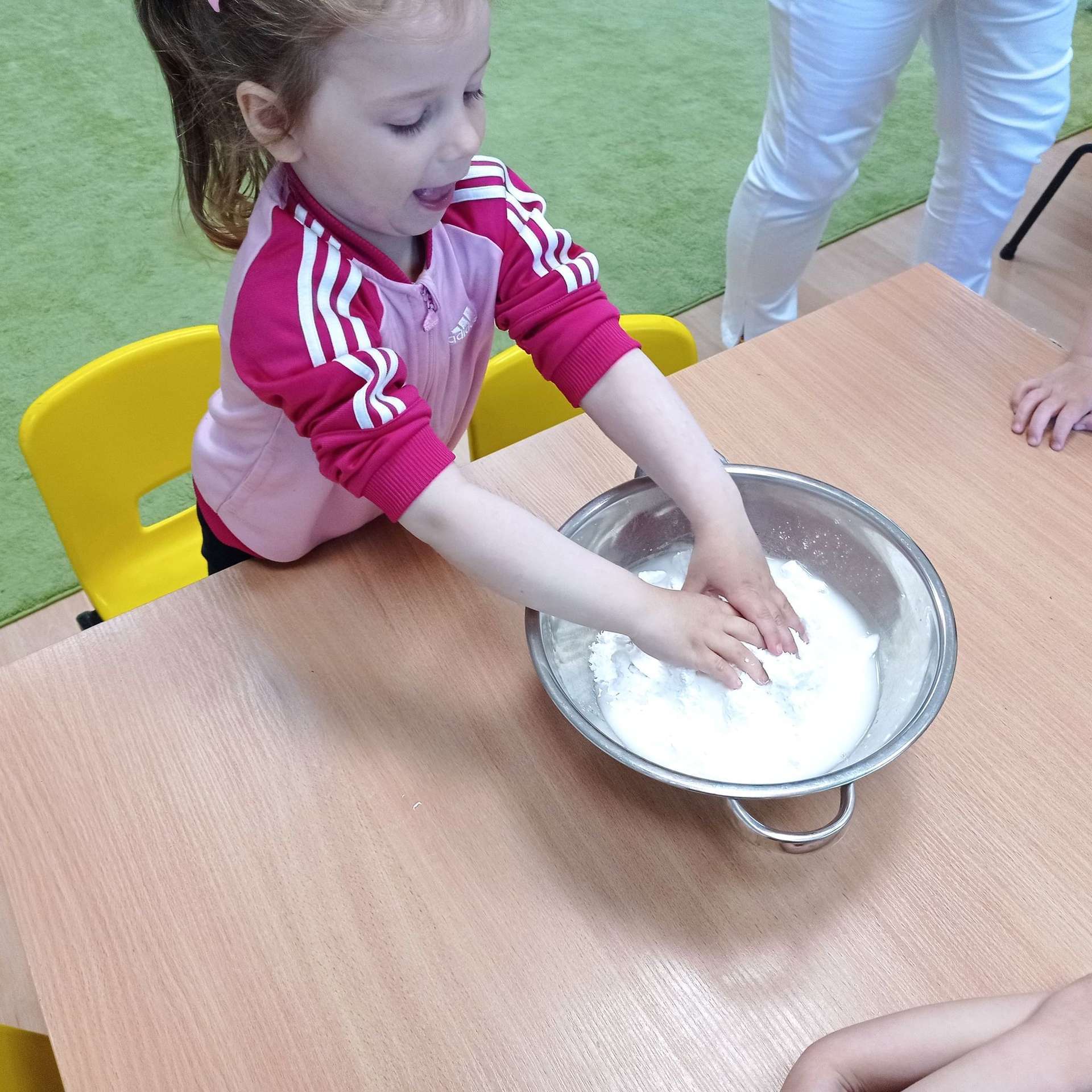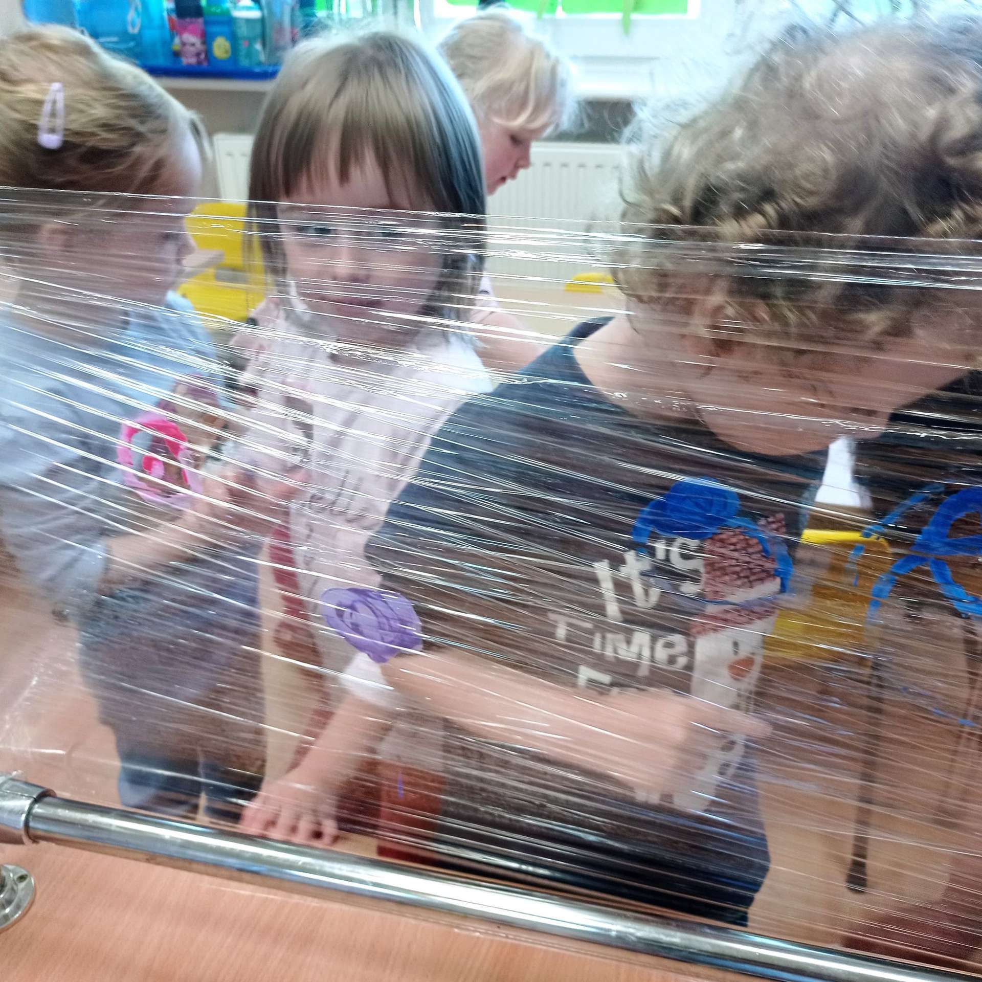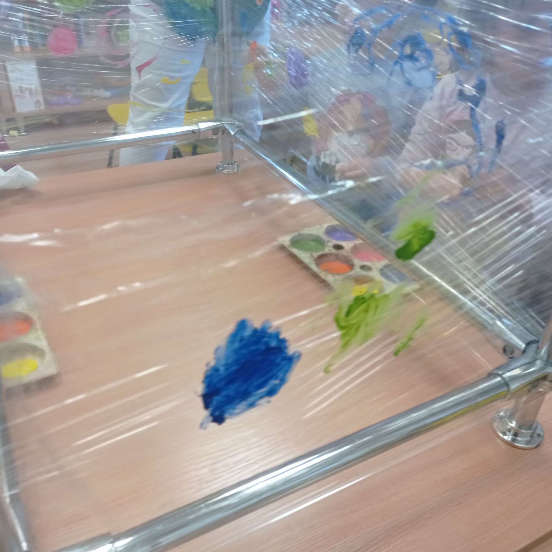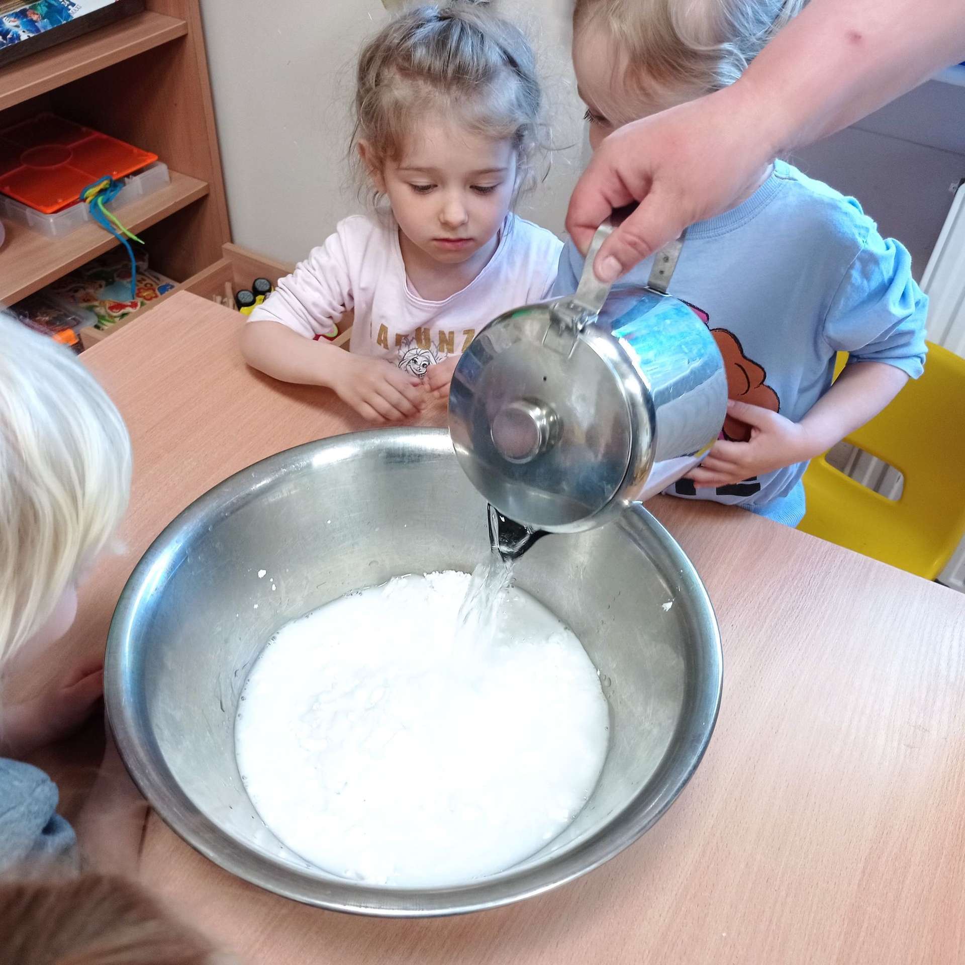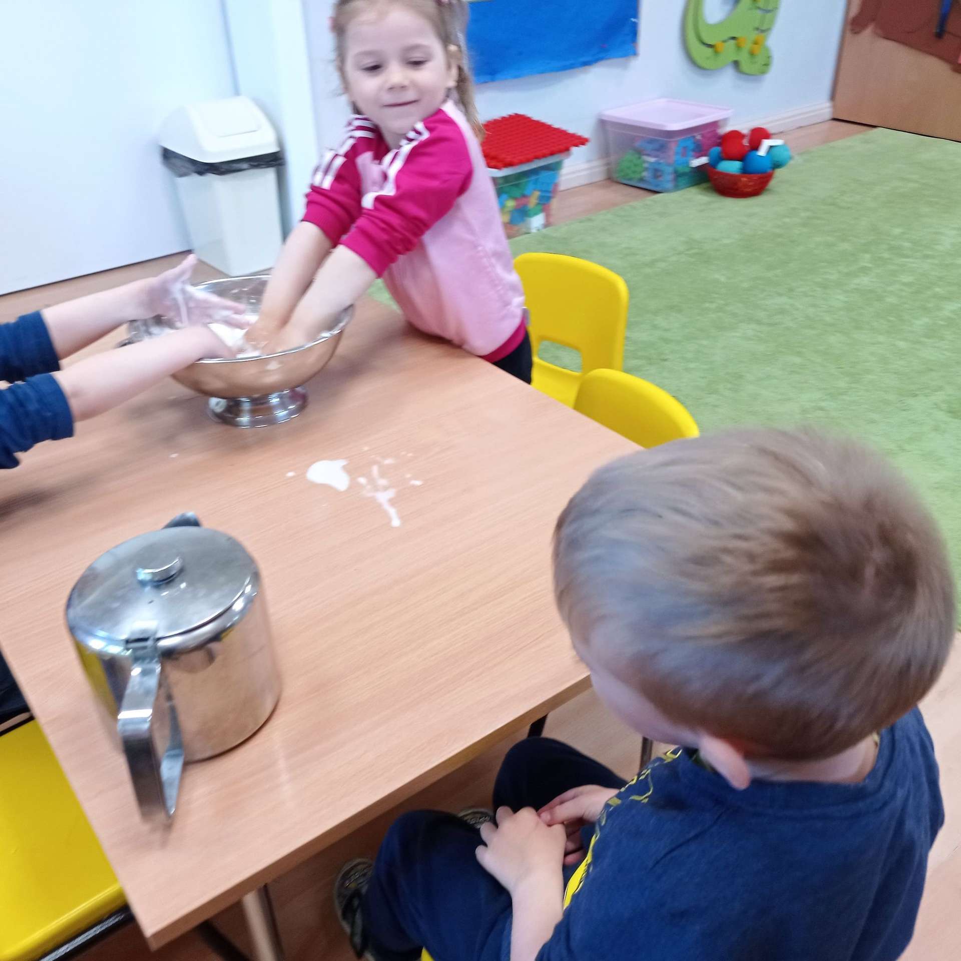 To już ostatnie zadanie z projektu "Gramy zmysłami". Tym razem dzieci poznały ciecz nienewtonowską oraz malowały palcami na folii spożywczej.