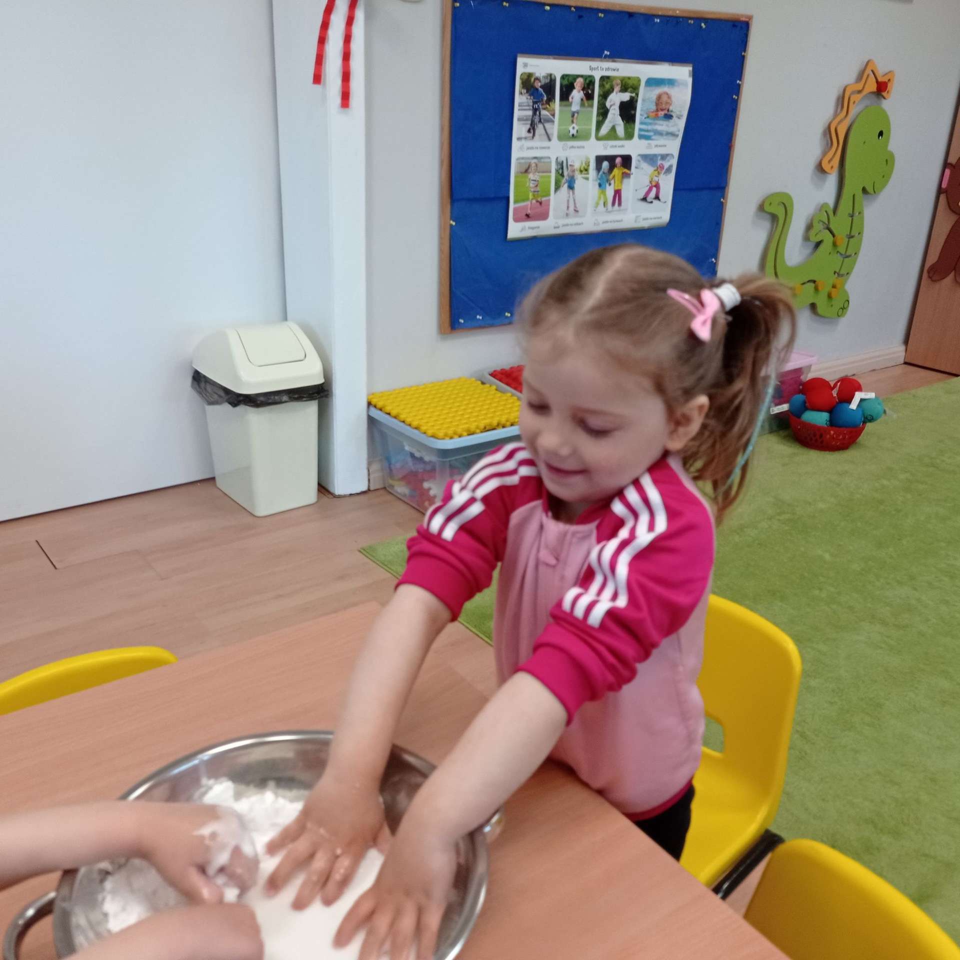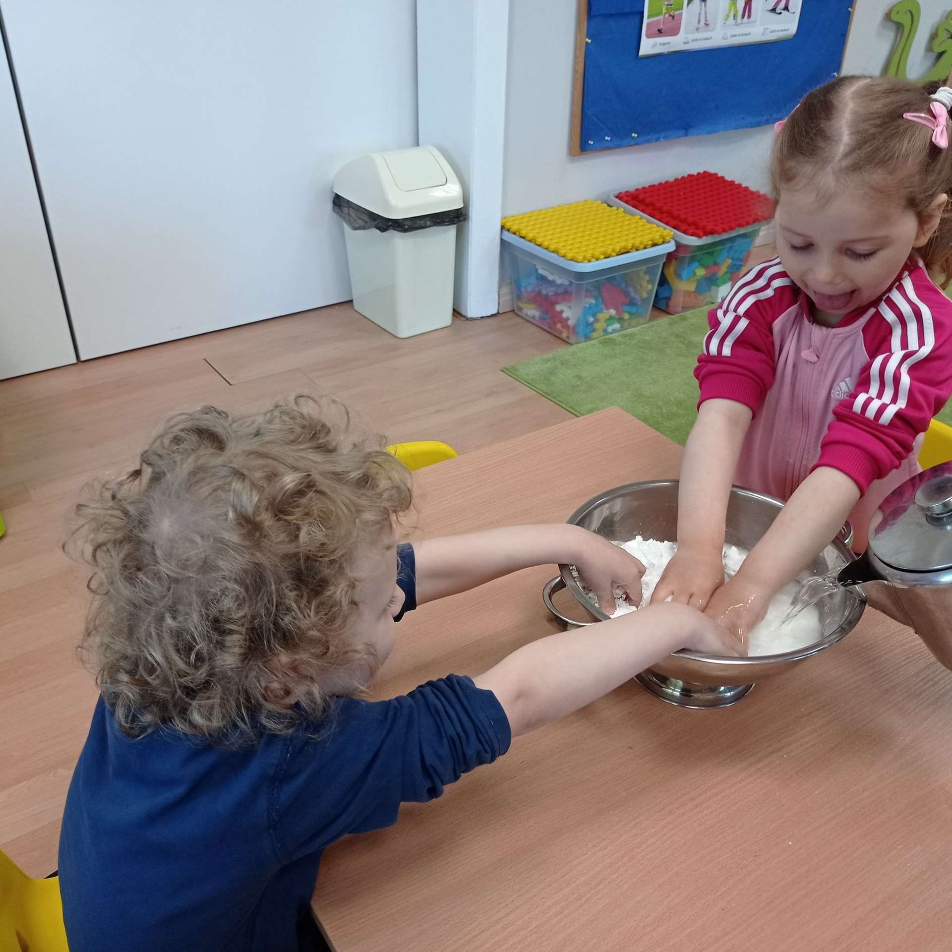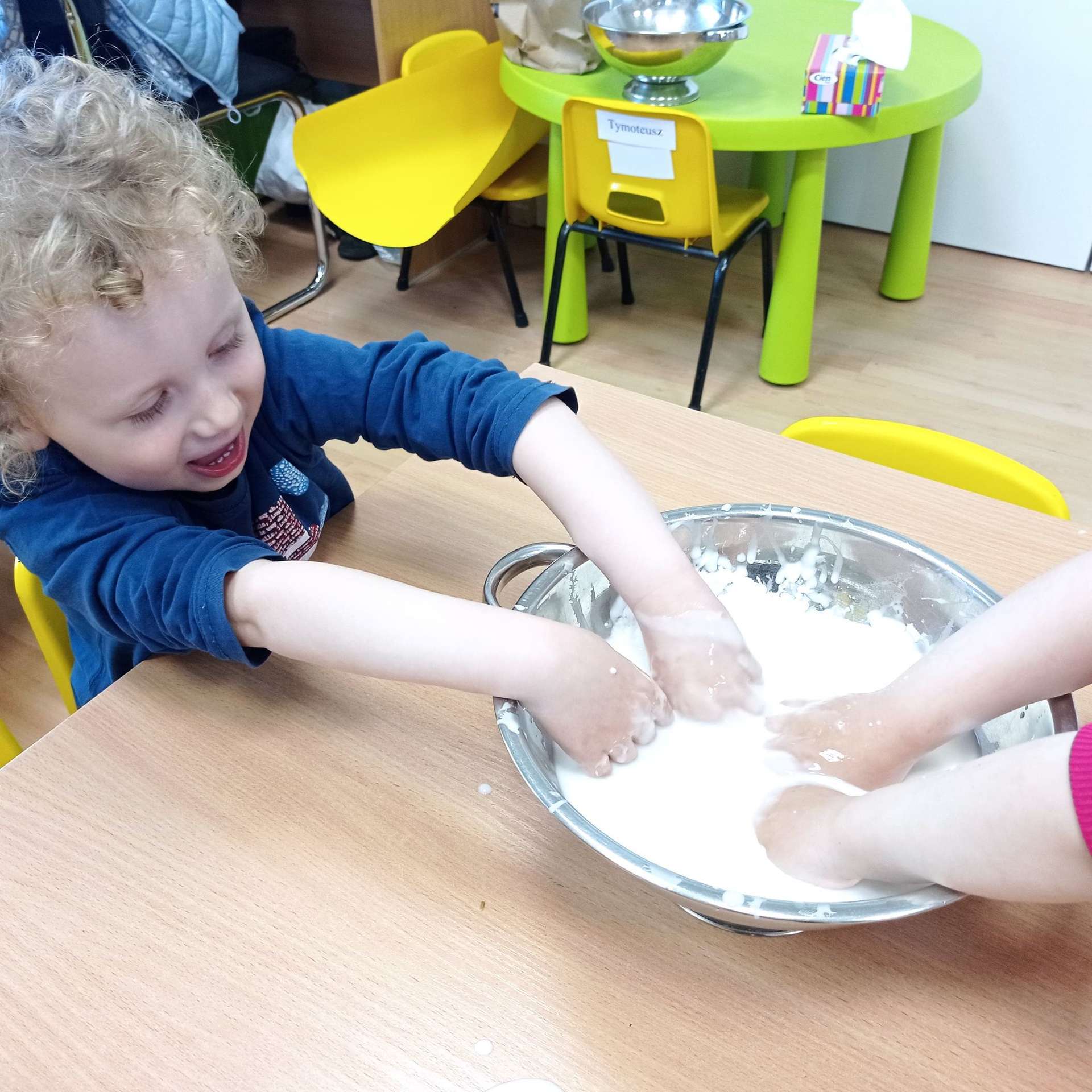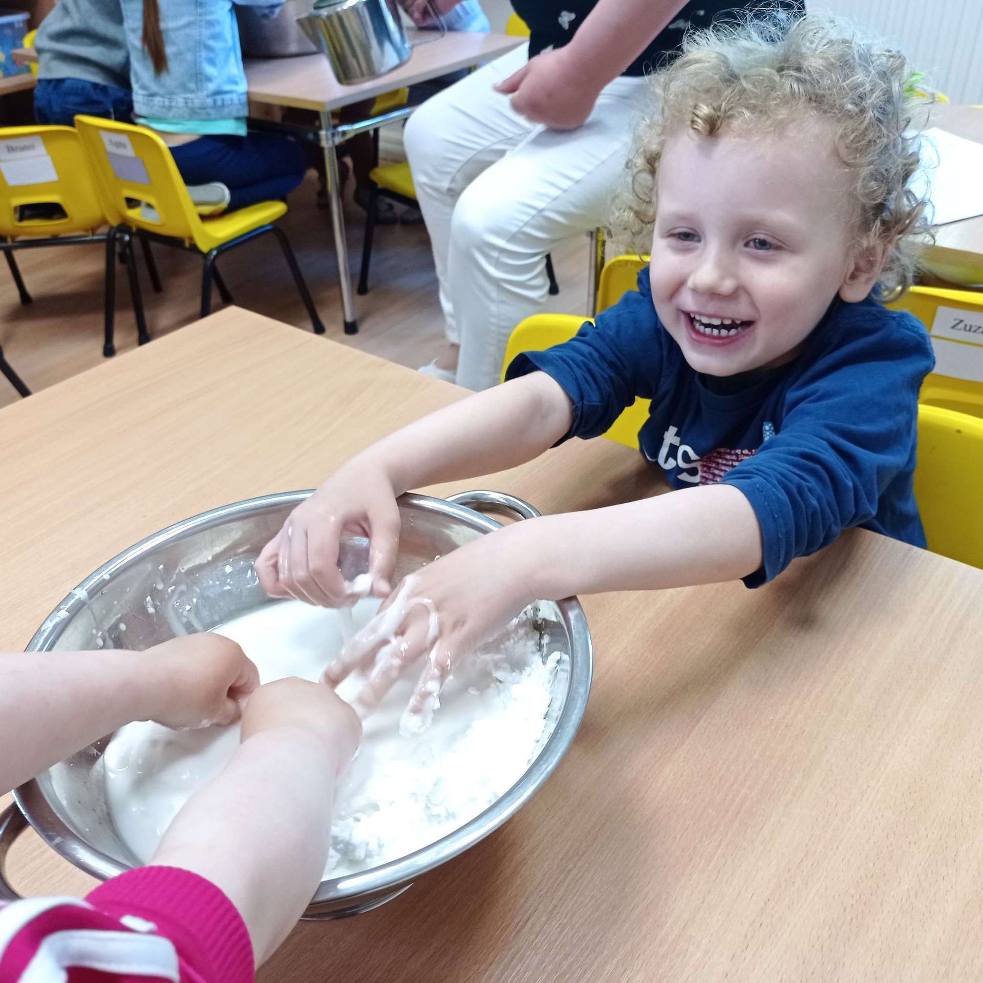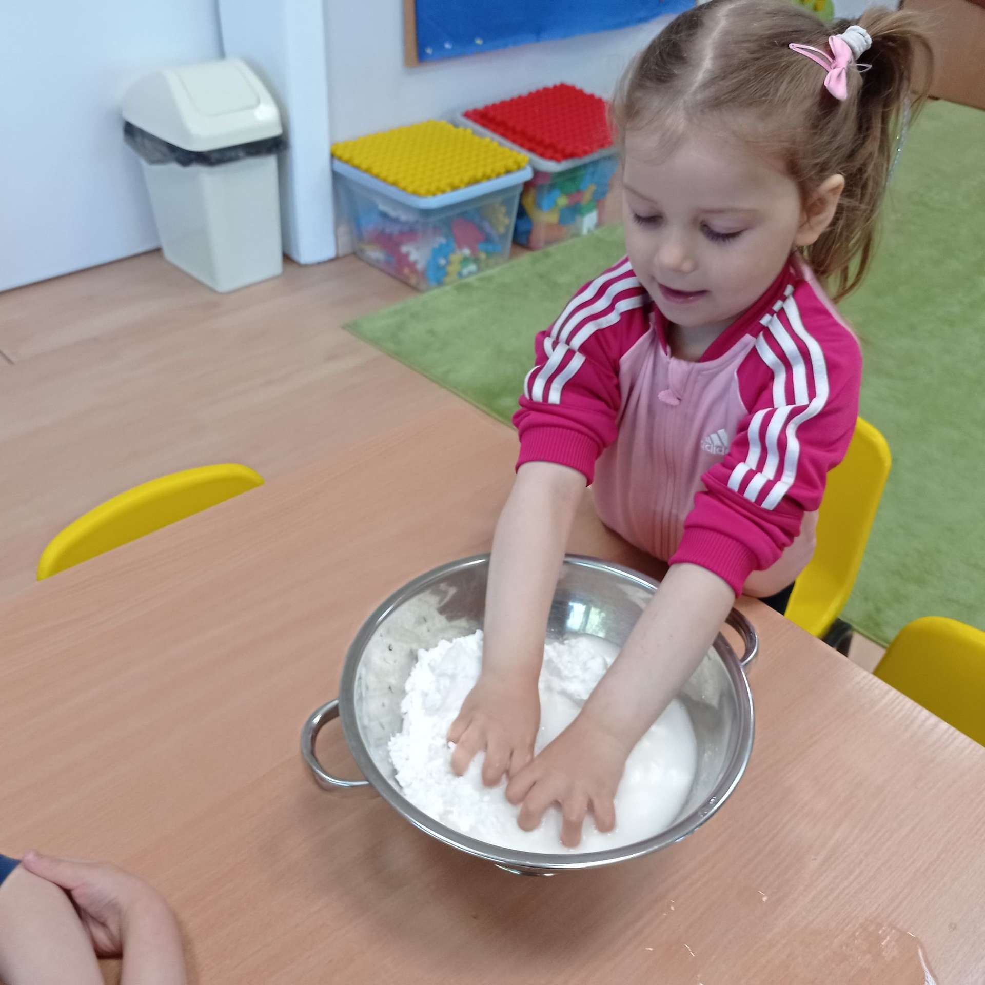 To już ostatnie zadanie z projektu "Gramy zmysłami". Tym razem dzieci poznały ciecz nienewtonowską oraz malowały palcami na folii spożywczej.