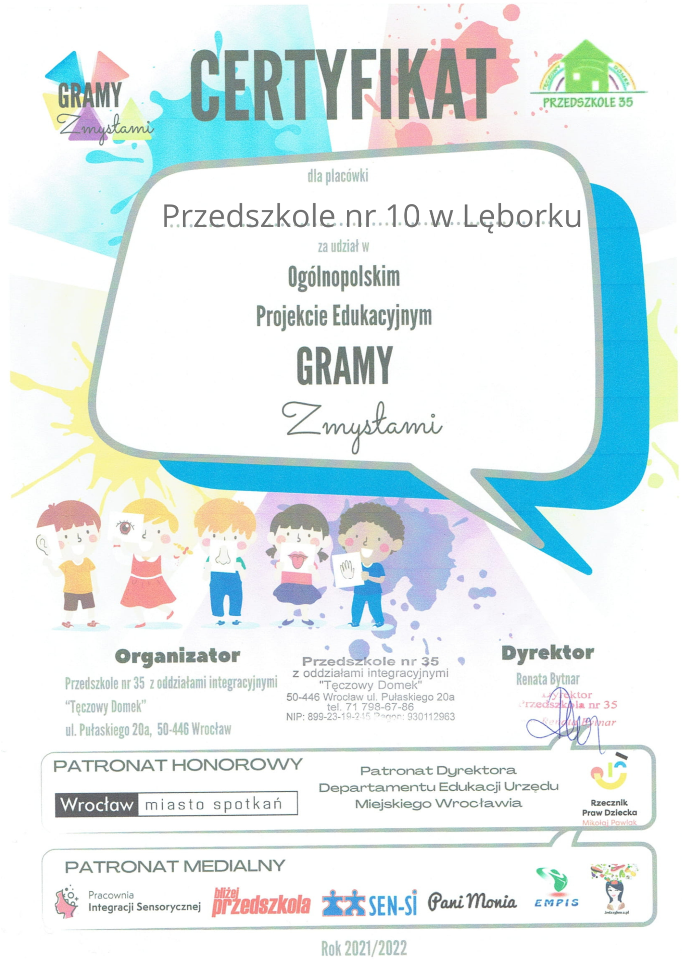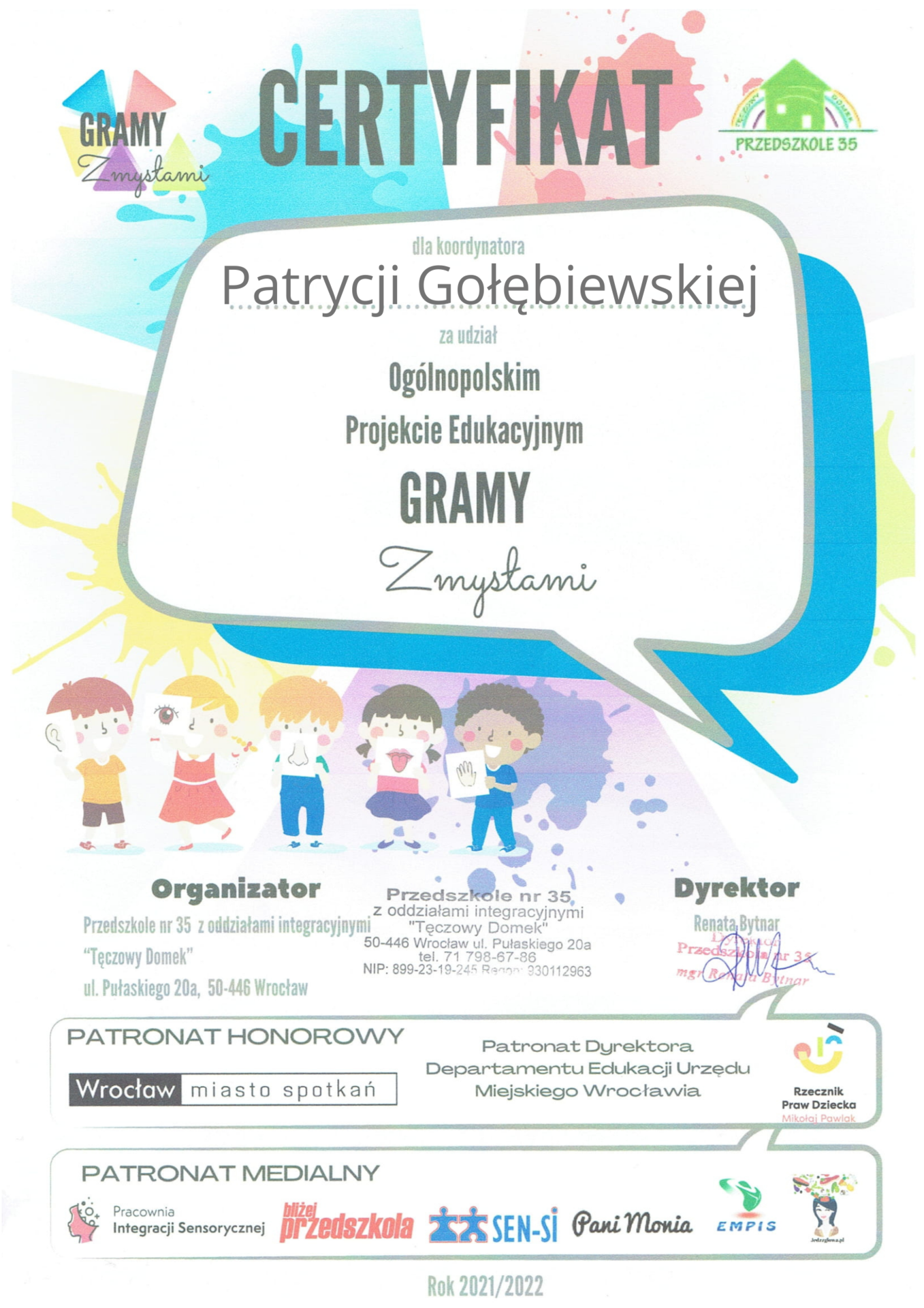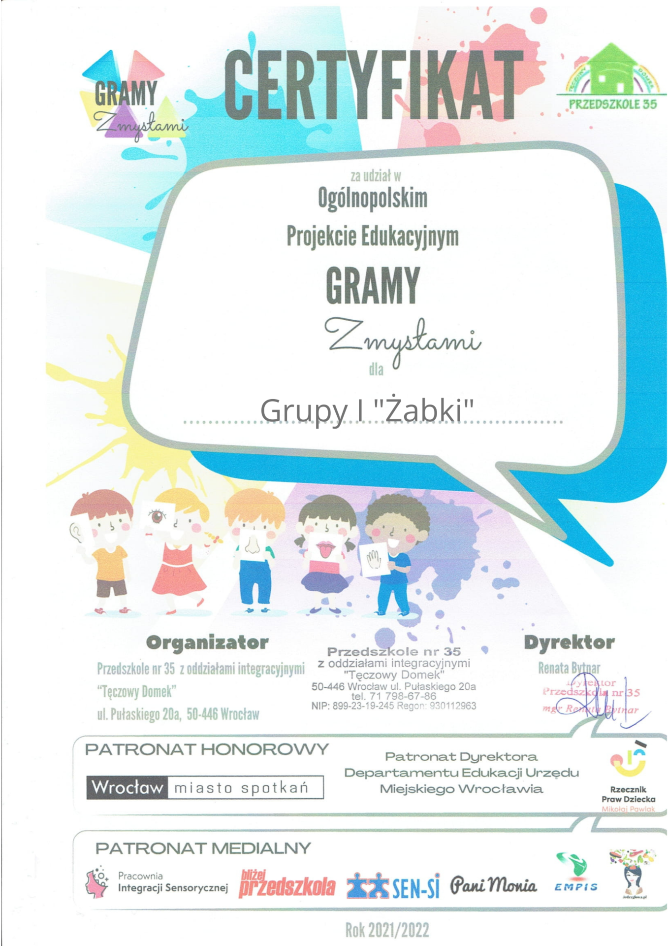 Gr. I Zakończyliśmy projekt "Gramy Zmysłami"
