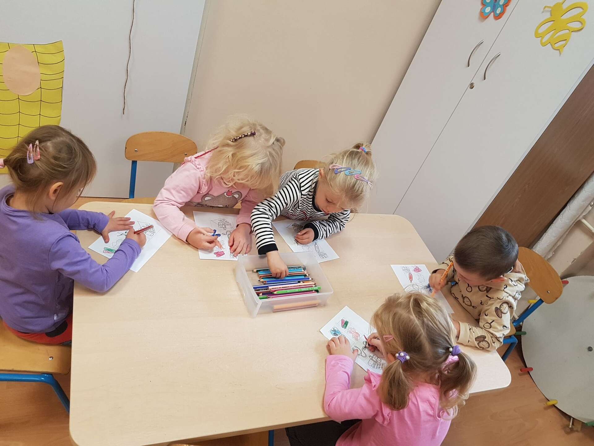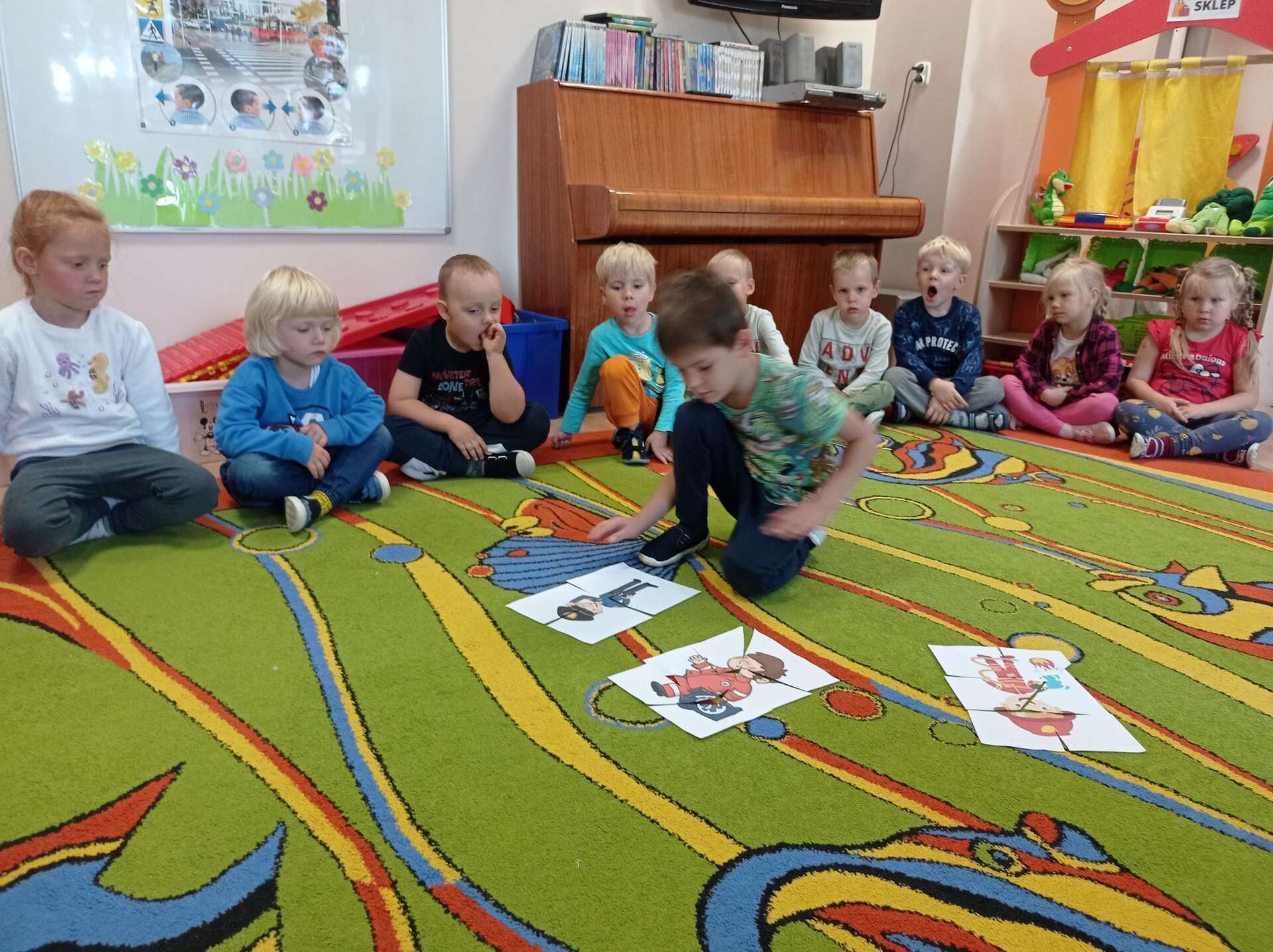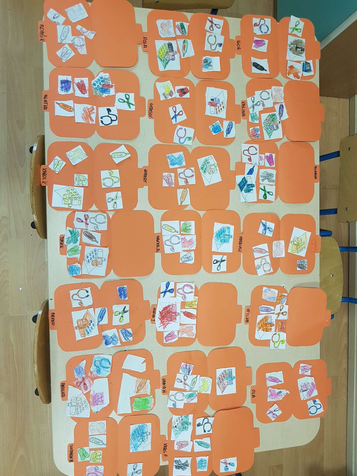 W tym tygodniu tematem zajęć było bezpieczeństwo. Dzieci miały okazję poznać tajemniczą teczkę zwaną "apteczką pierwszej pomocy"- zobaczyły, jak wygląda, co w niej się znajduję oraz dowiedziały się do czego służy. Następnie miały okazję wykonać swoją apteczkę. Przedszkolaki przypomniały sobie także o trzech bohaterach (strażak, policjant, ratownik medyczny)i nauczyły się jak dzwonić pod numer alarmowy 112. Zajęć było wiele. Mamy nadzieję, że przedszkolaki wszystko zapamiętały.