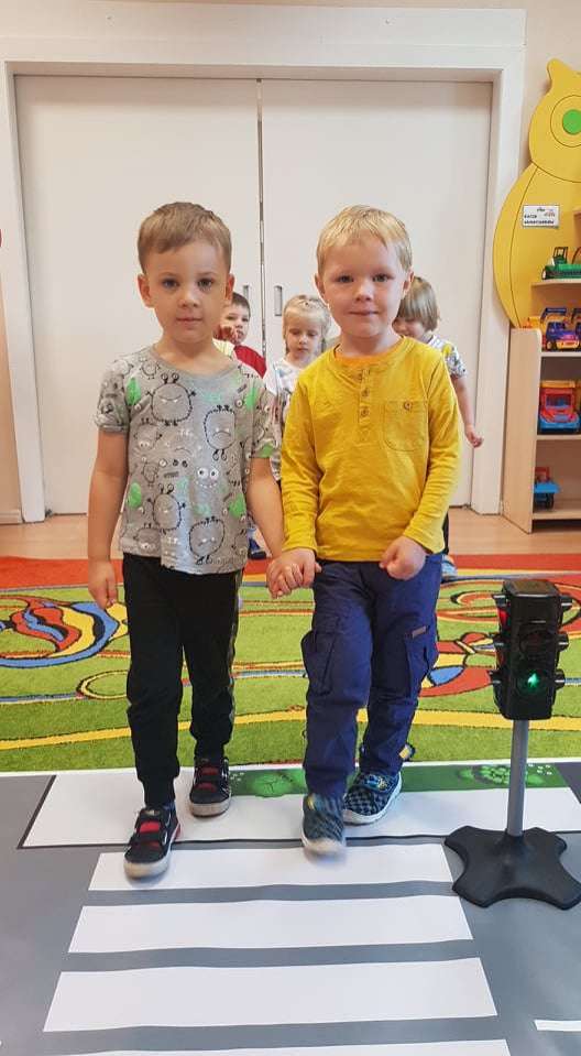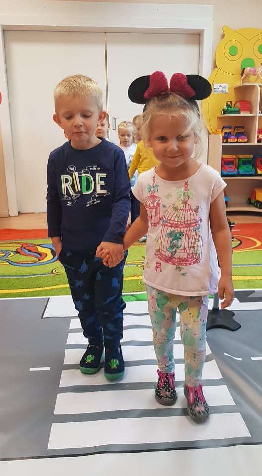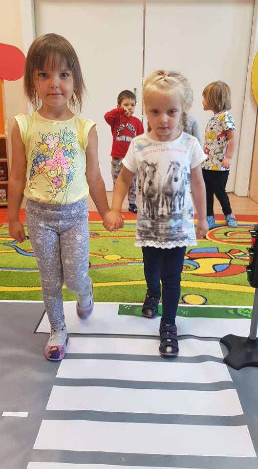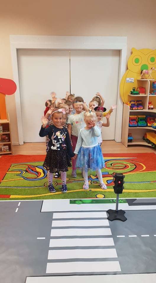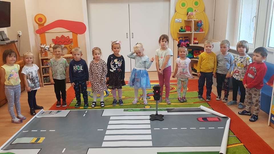 Przedszkolaki z gr. II uczyły się o bezpieczeństwie. Wychowawczynie przybliżyły dzieciom tematykę „ Bezpiecznej drogi do przedszkola”. Dzieciom przybliżono przepisy ruchu drogowego. Poznały niektóre znaki drogowe, ich kształty, kolory oraz symbole. Dowiedziały się, że przez jezdnię można przechodzić tylko w wyznaczonym miejscu – pasach dla pieszych – zebrze.