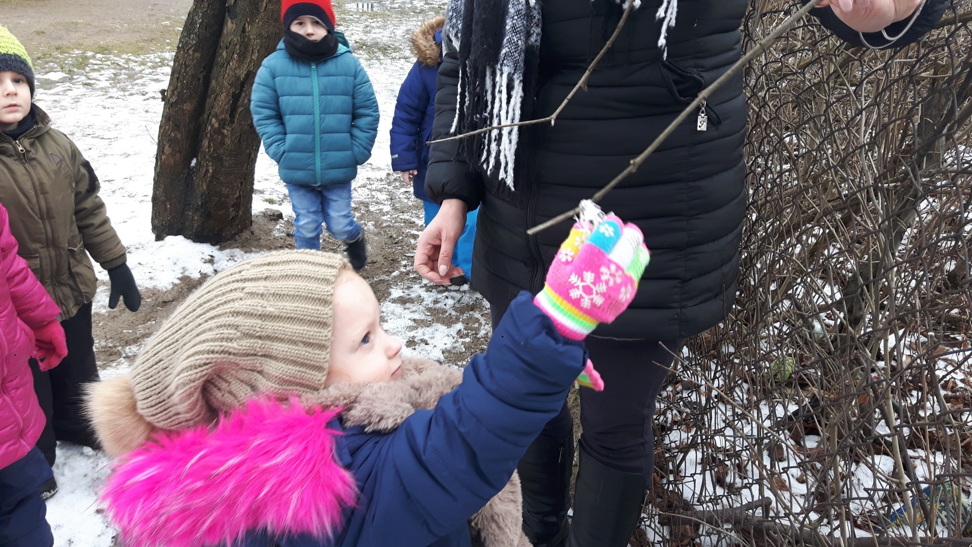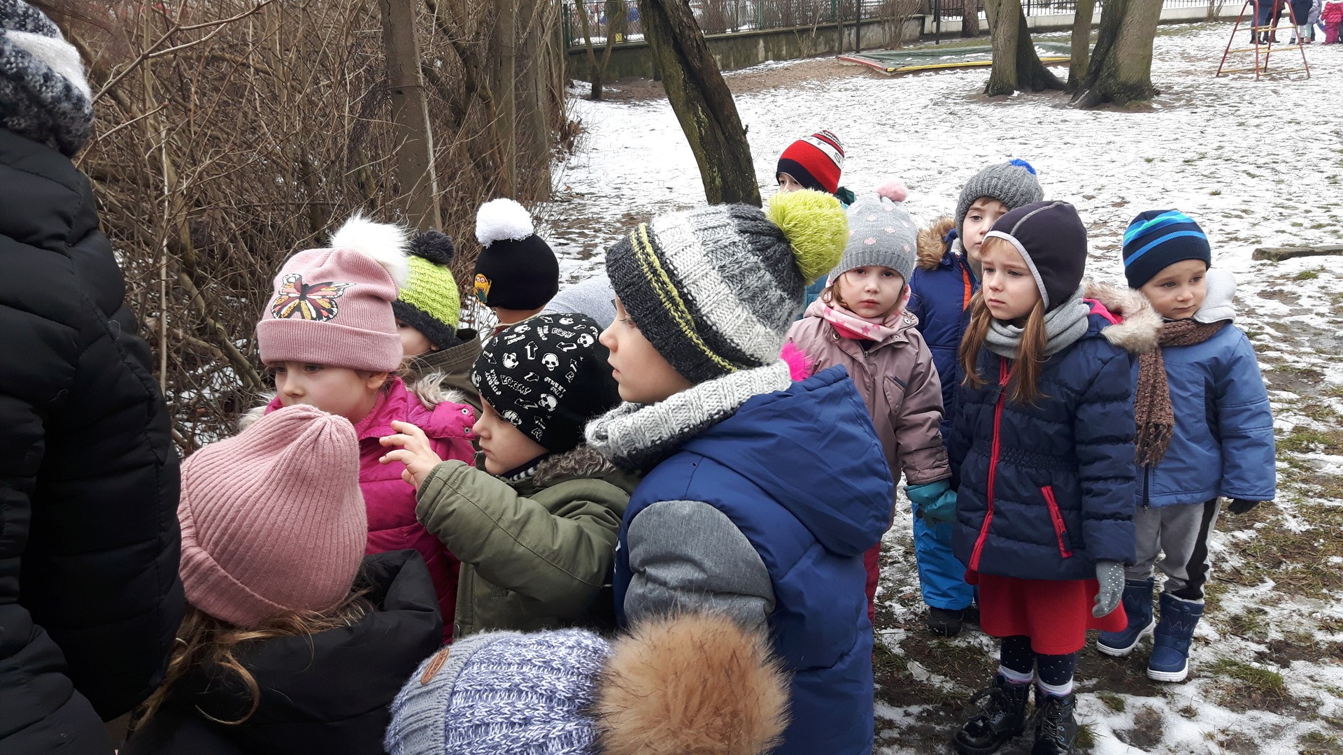 Zima jest dla ptaków bardzo ciężkim okresem, ze względu na niską temperaturę i trudne warunki pogodowe. W związku z tym ptaki mogą mieć problemy ze znalezieniem odpowiedniej ilości pokarmu. Dlatego też przedszkolaki dbają o to, żeby w karmniku nie zabrakło dla nich pożywienia.