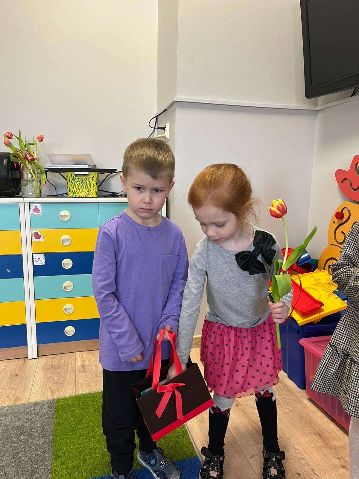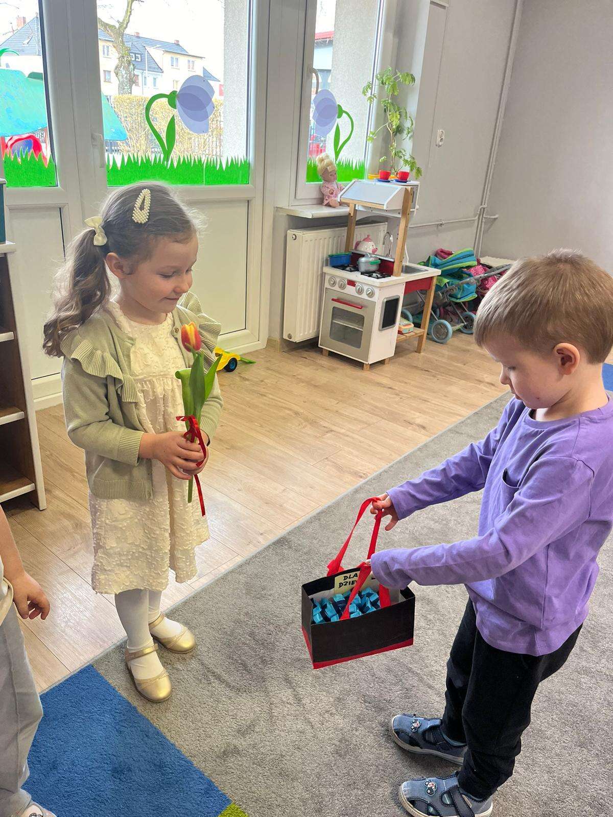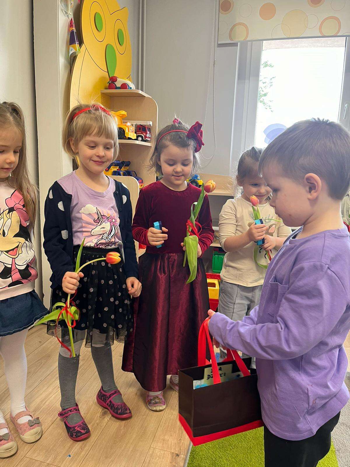 Chłopiec wręcza upominki