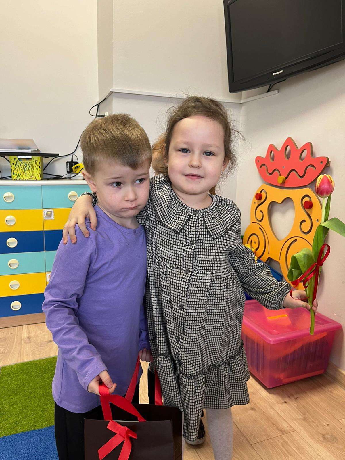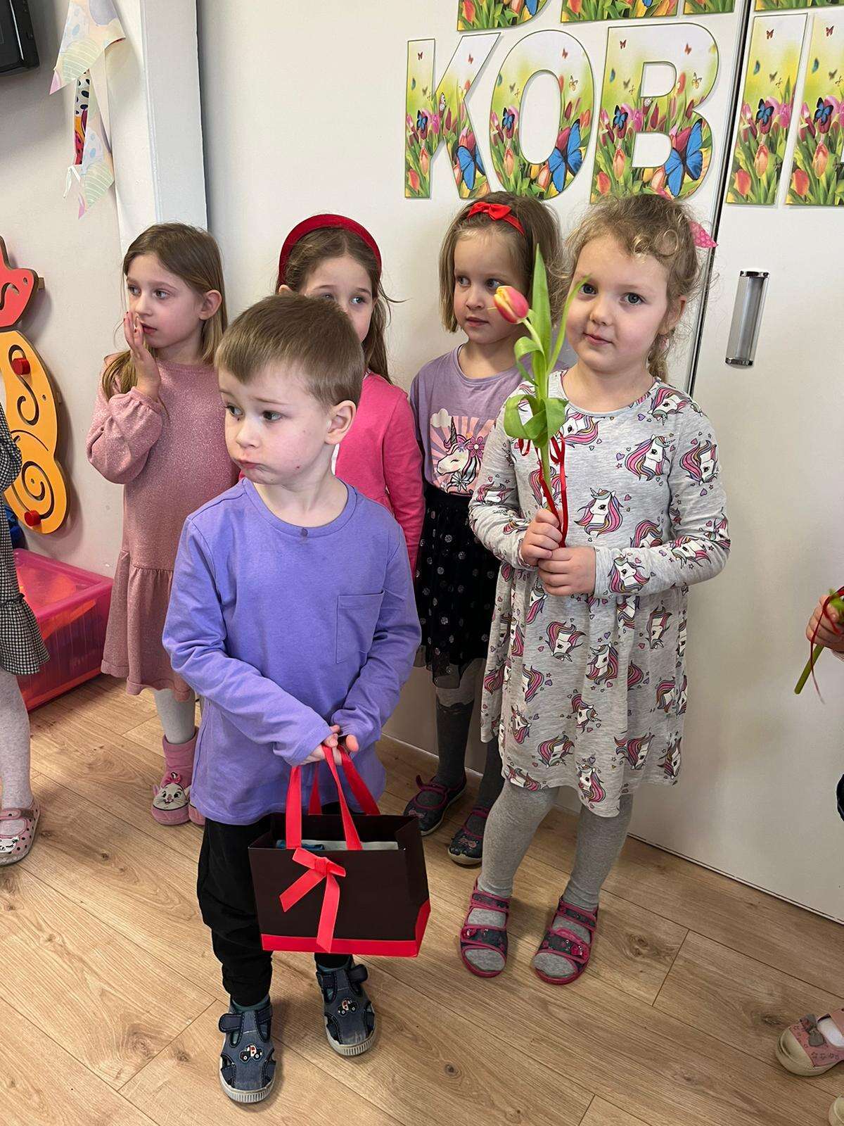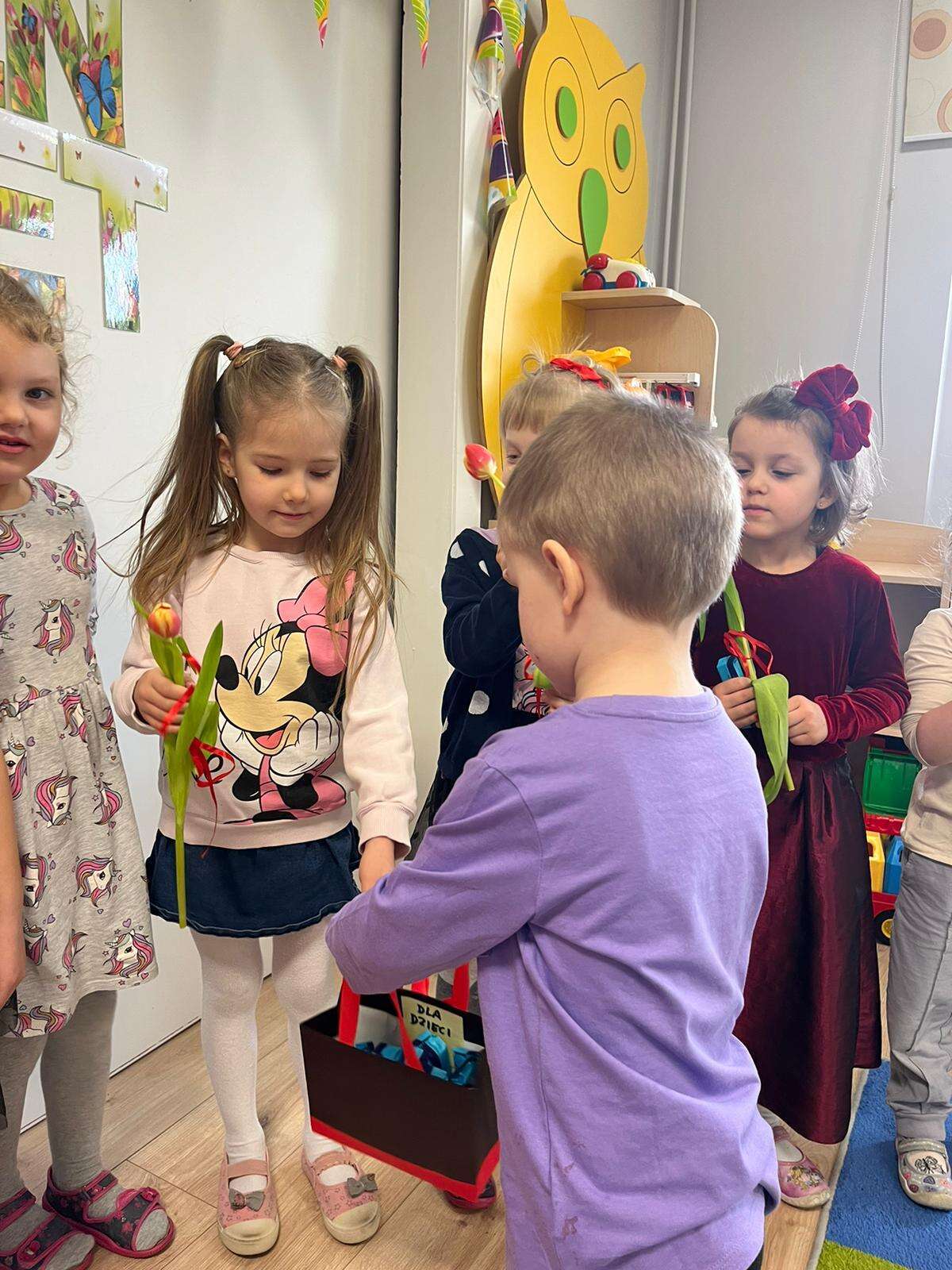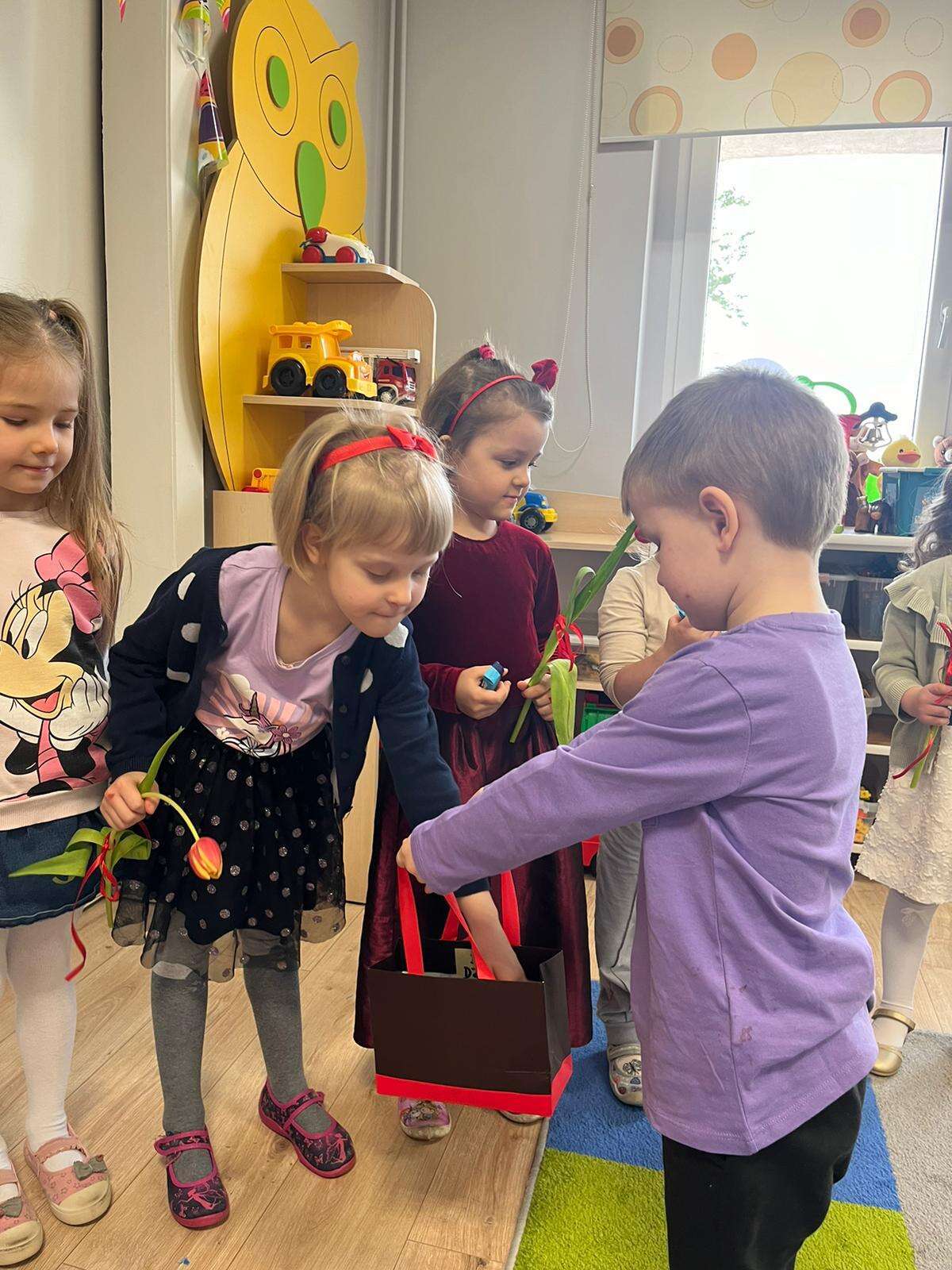 Chłopiec wręcza upominki