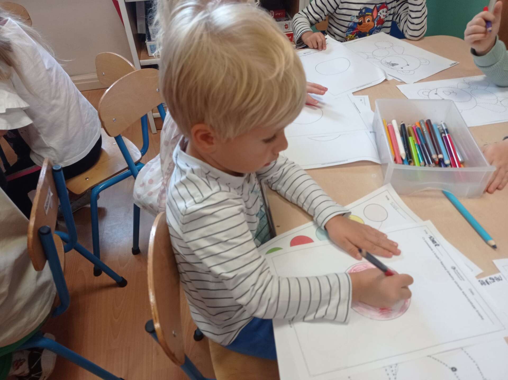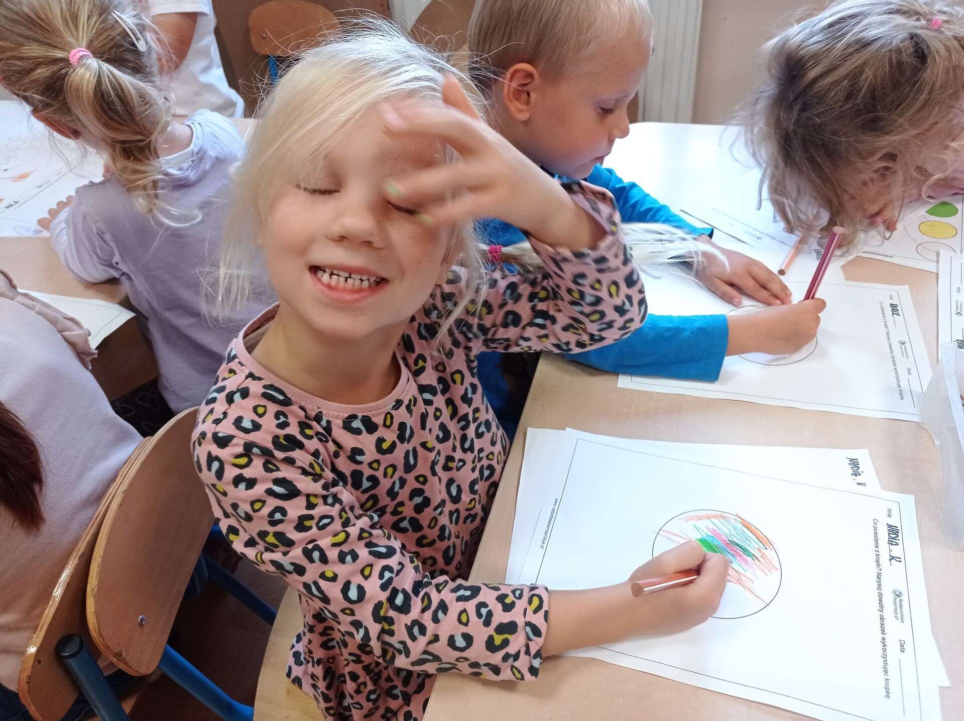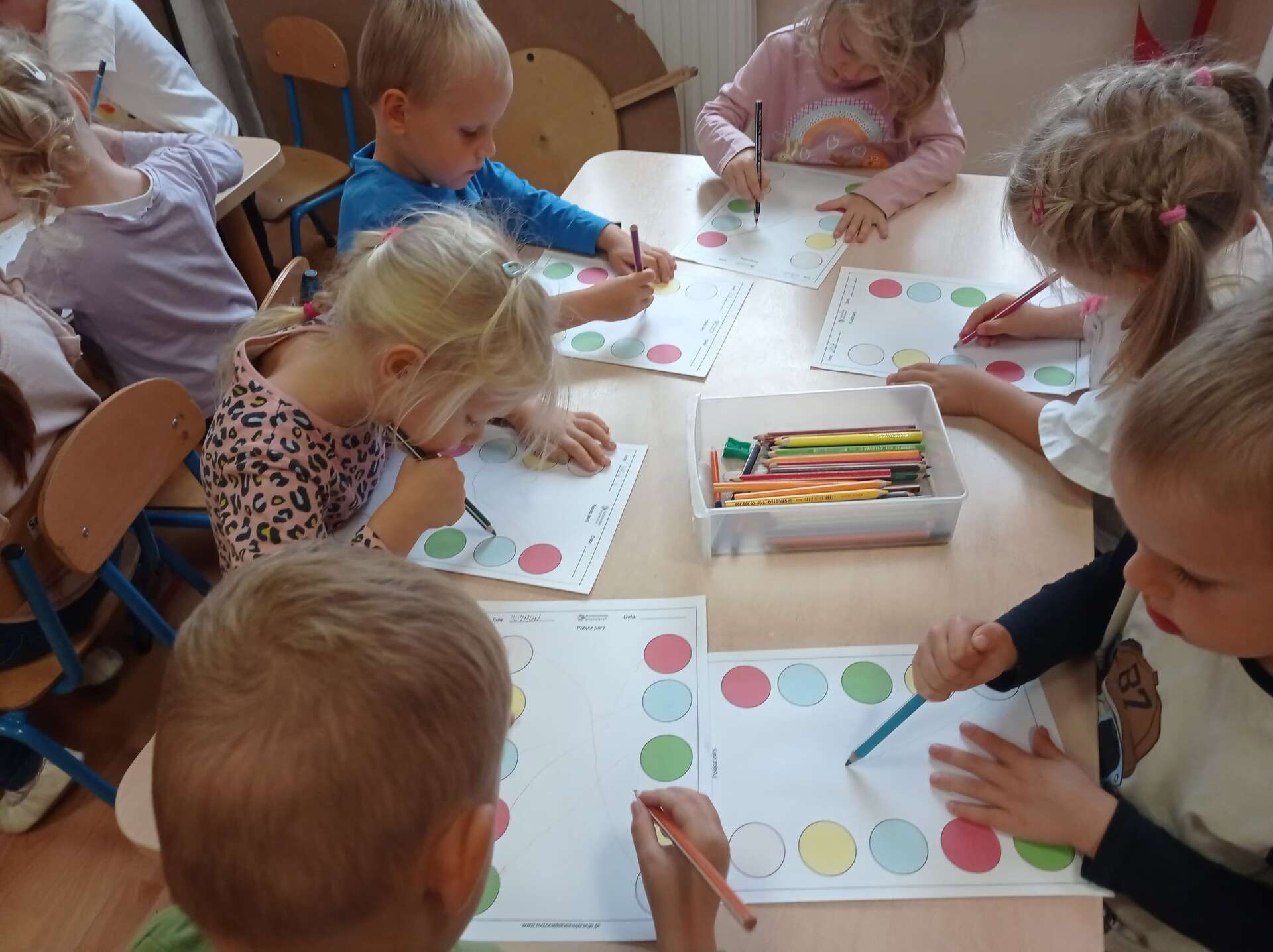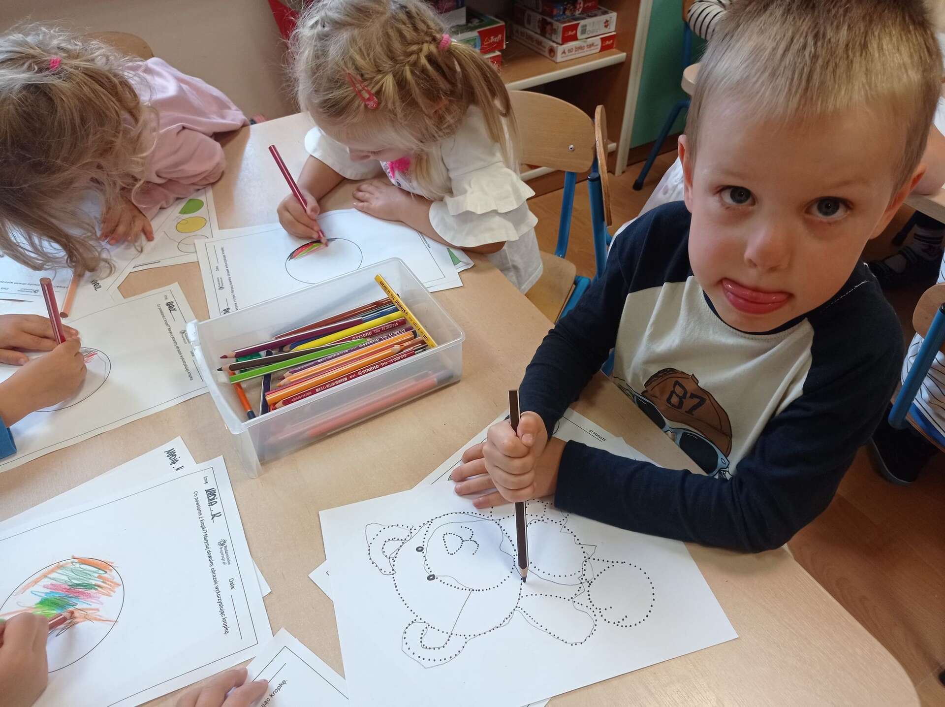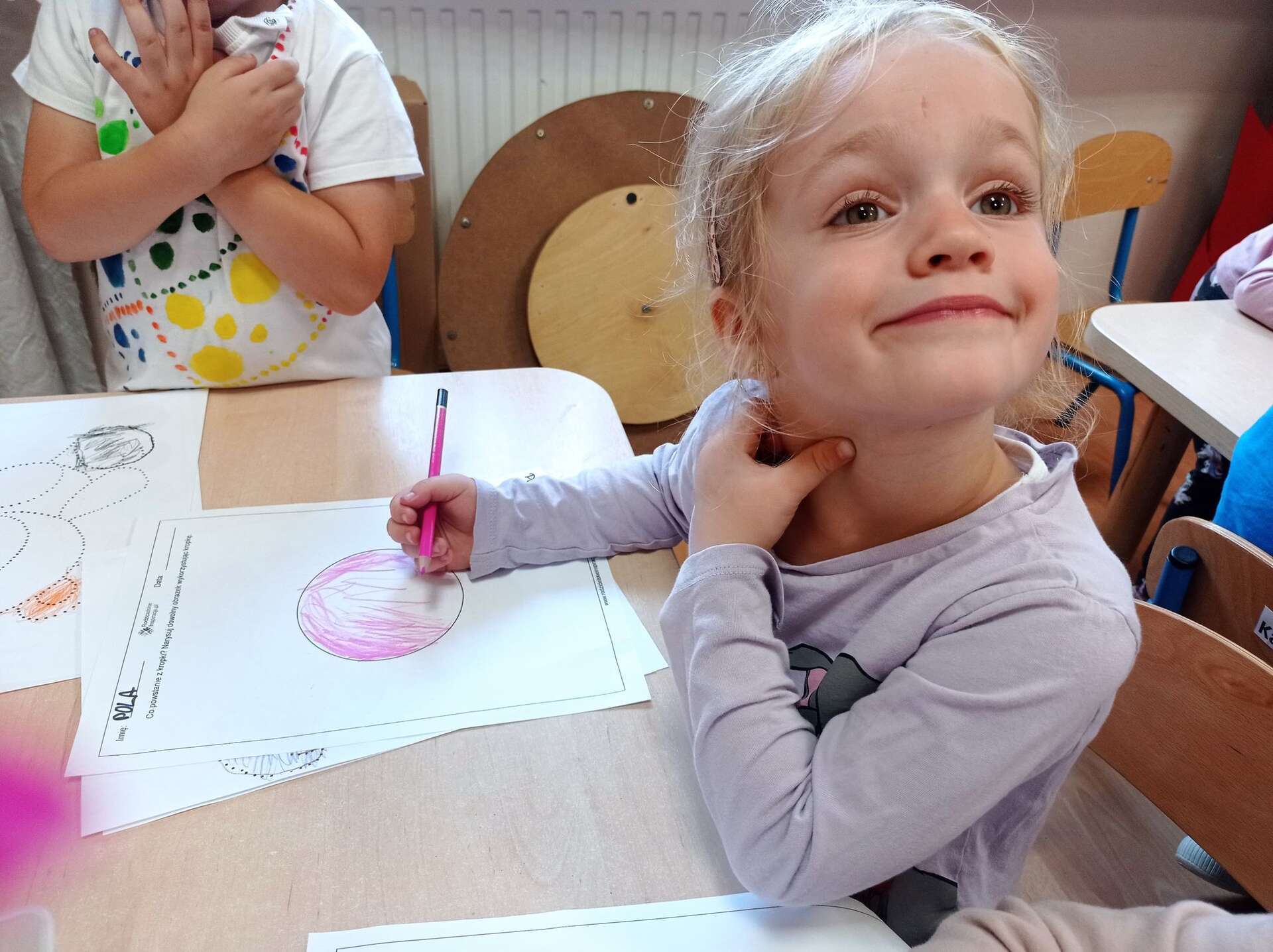 Na zajęciach poznaliśmy genezę tego święta. Dzieci uważnie wysłuchały opowiadania, jak to zwyczajna kropka zmieniła świat małej dziewczynki o imieniu Vashti. Historia ta uświadomiła przedszkolakom, że każdy z nas ma jakieś ukryte zdolności, TALENT.