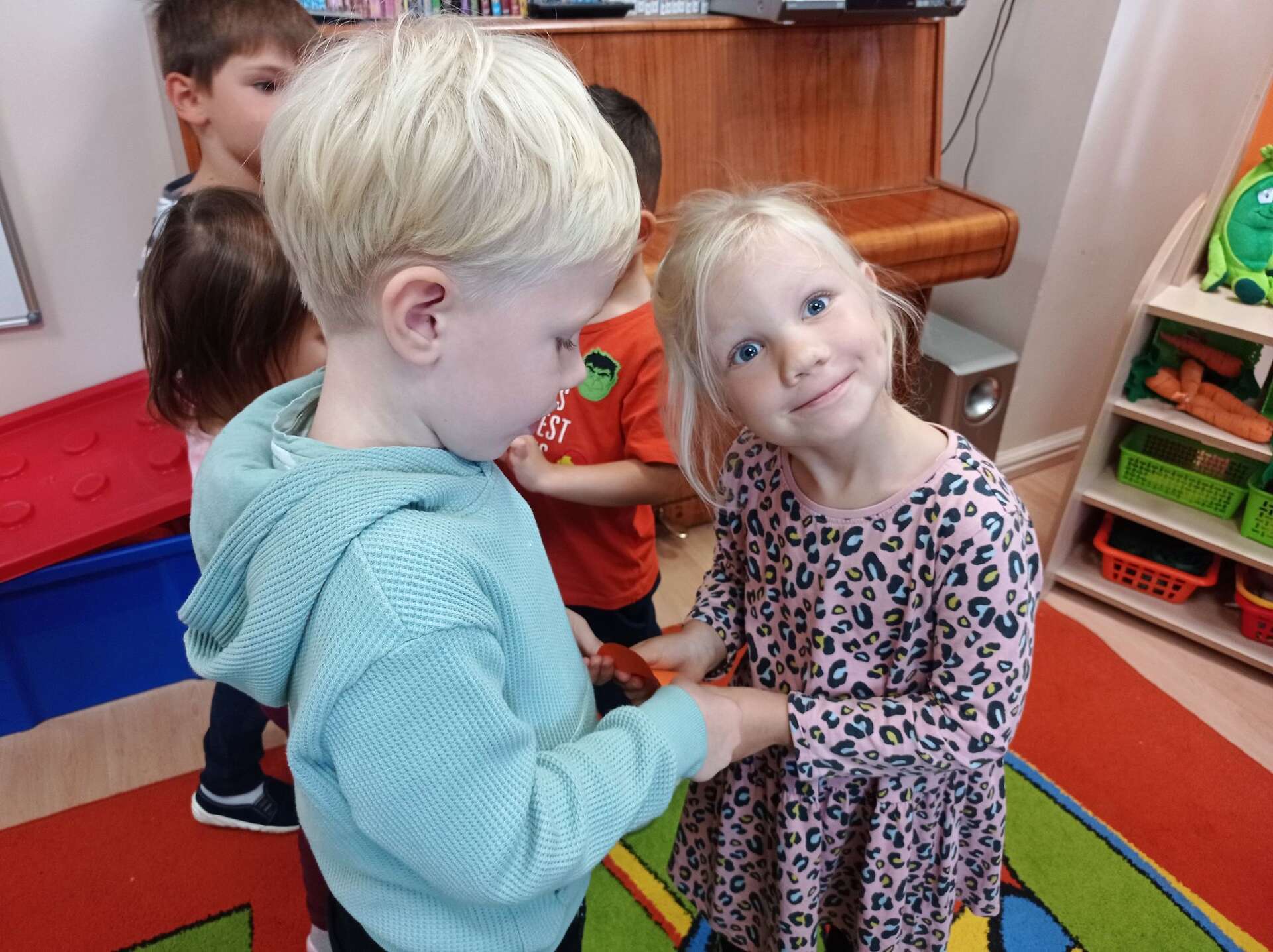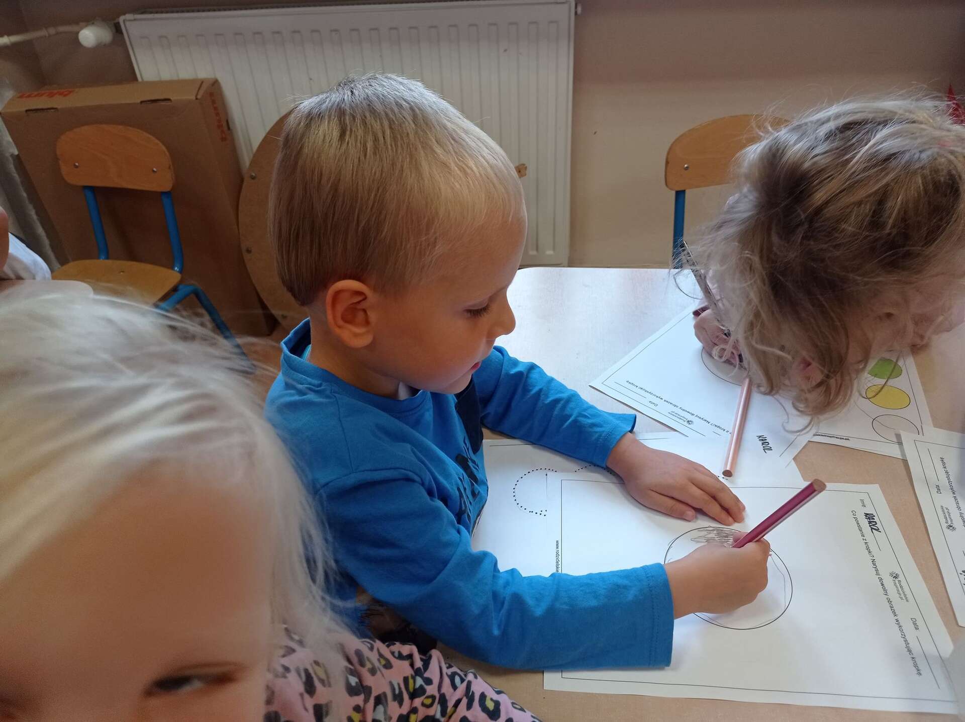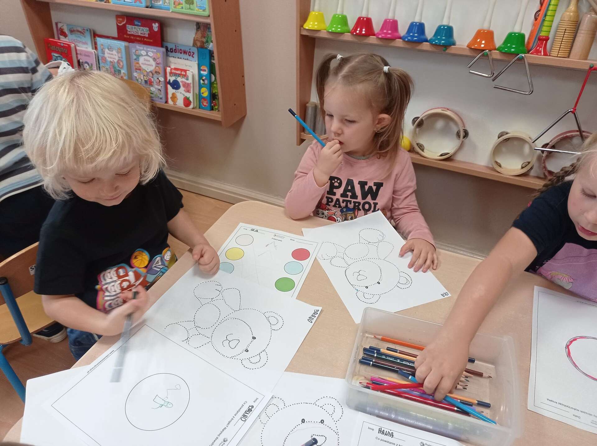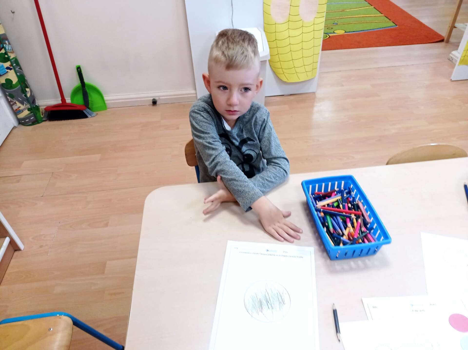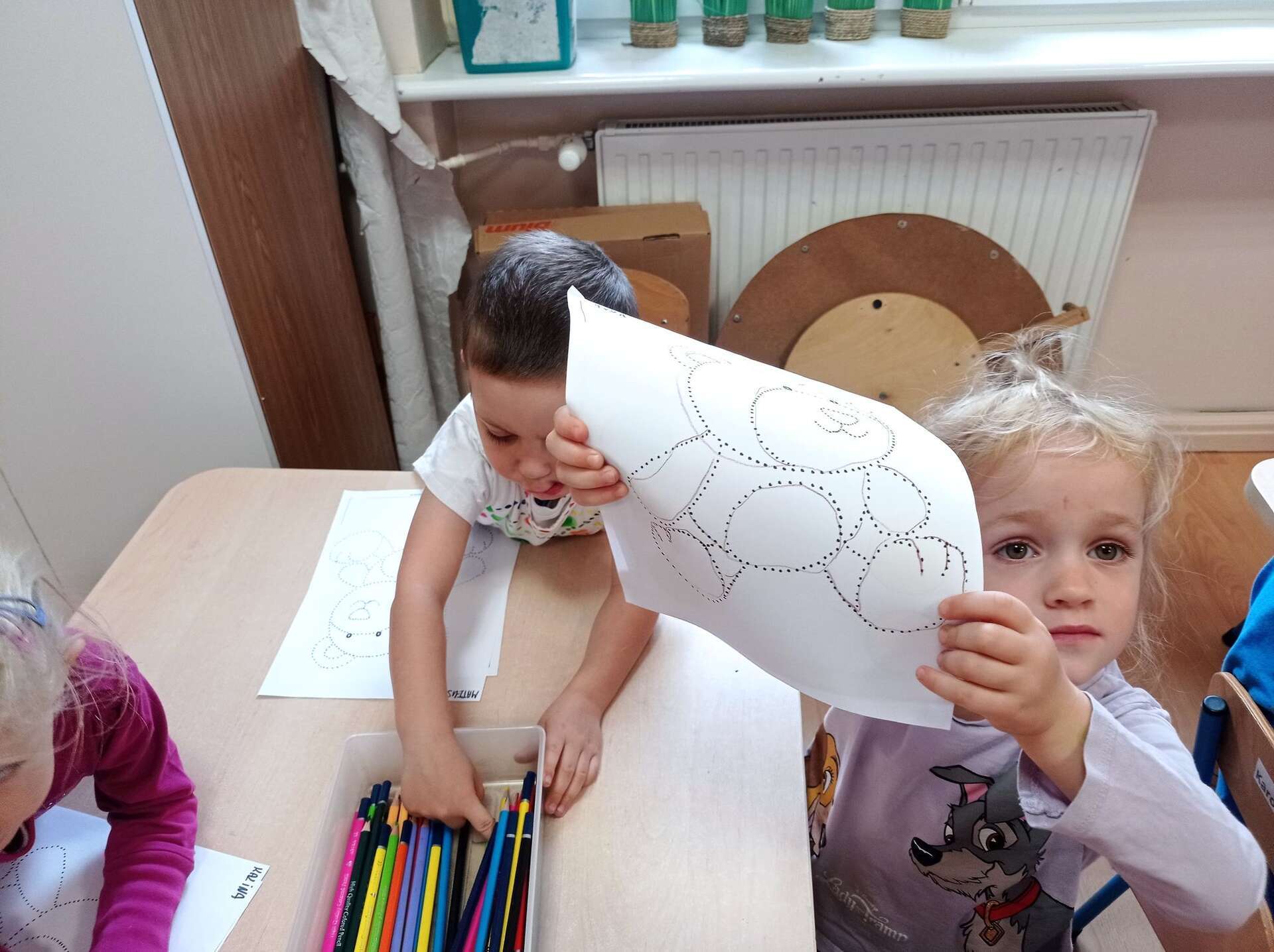 Na zajęciach poznaliśmy genezę tego święta. Dzieci uważnie wysłuchały opowiadania, jak to zwyczajna kropka zmieniła świat małej dziewczynki o imieniu Vashti. Historia ta uświadomiła przedszkolakom, że każdy z nas ma jakieś ukryte zdolności, TALENT.