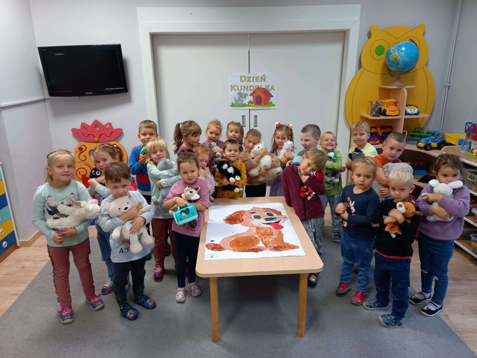 Grupa dzieci z maskotkami