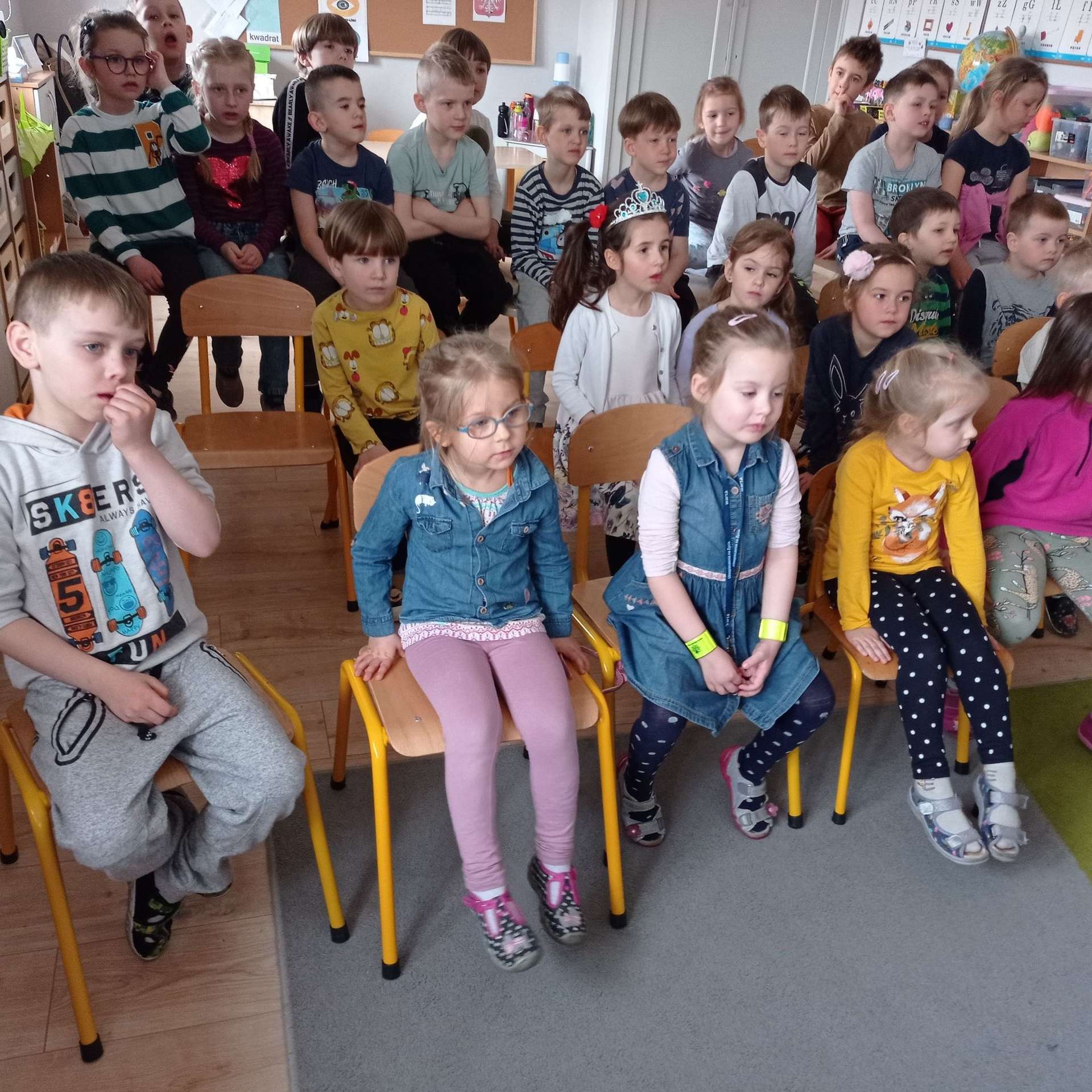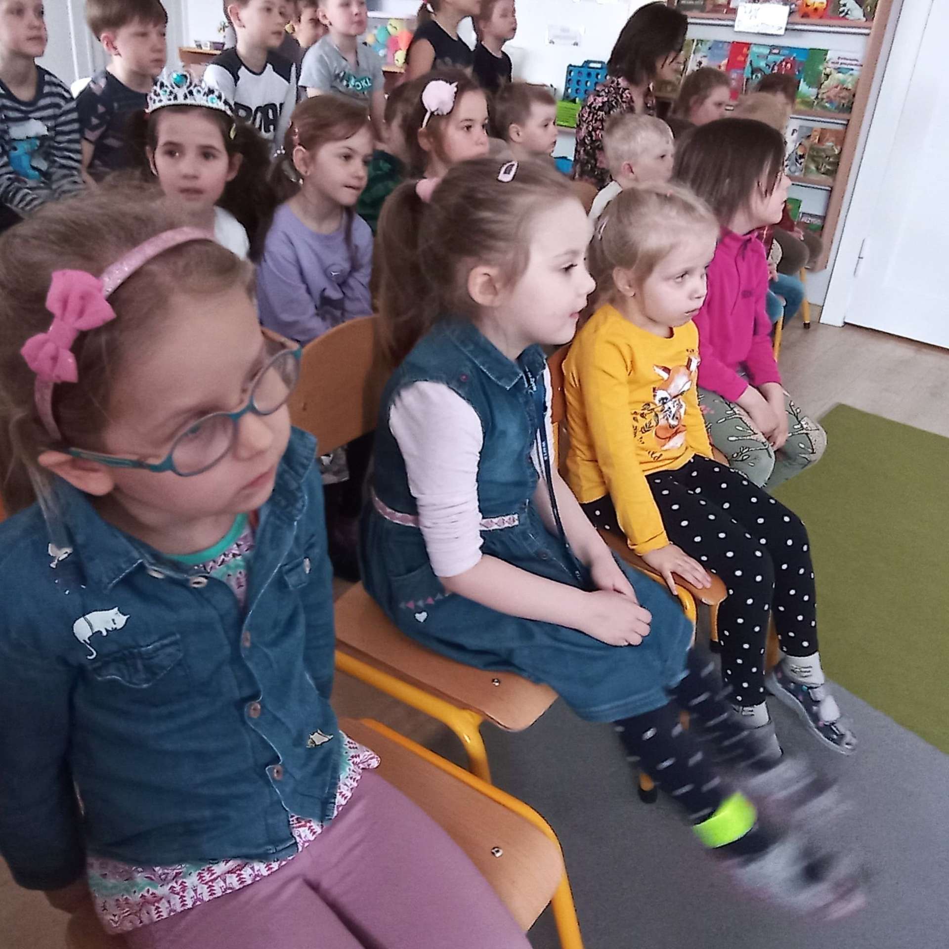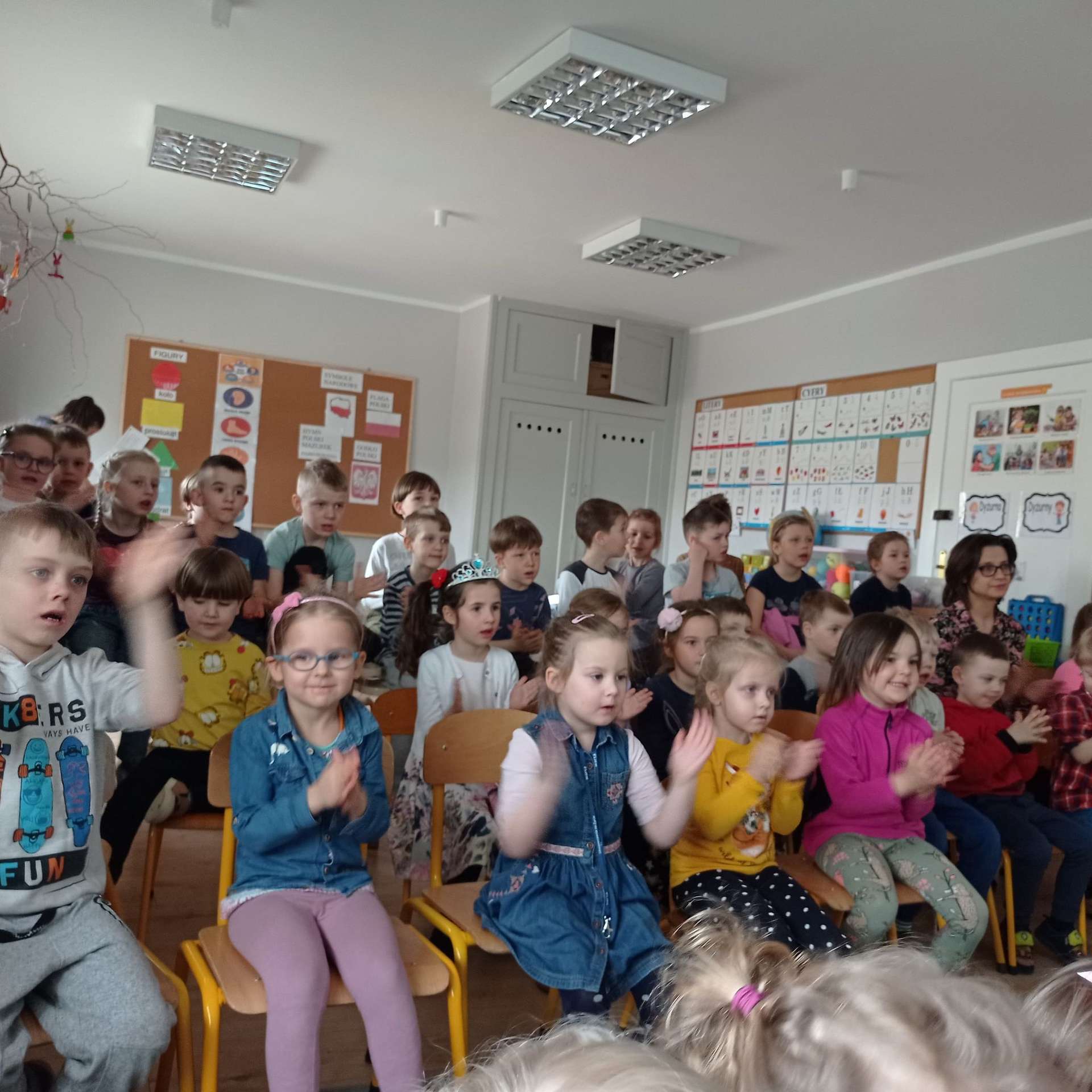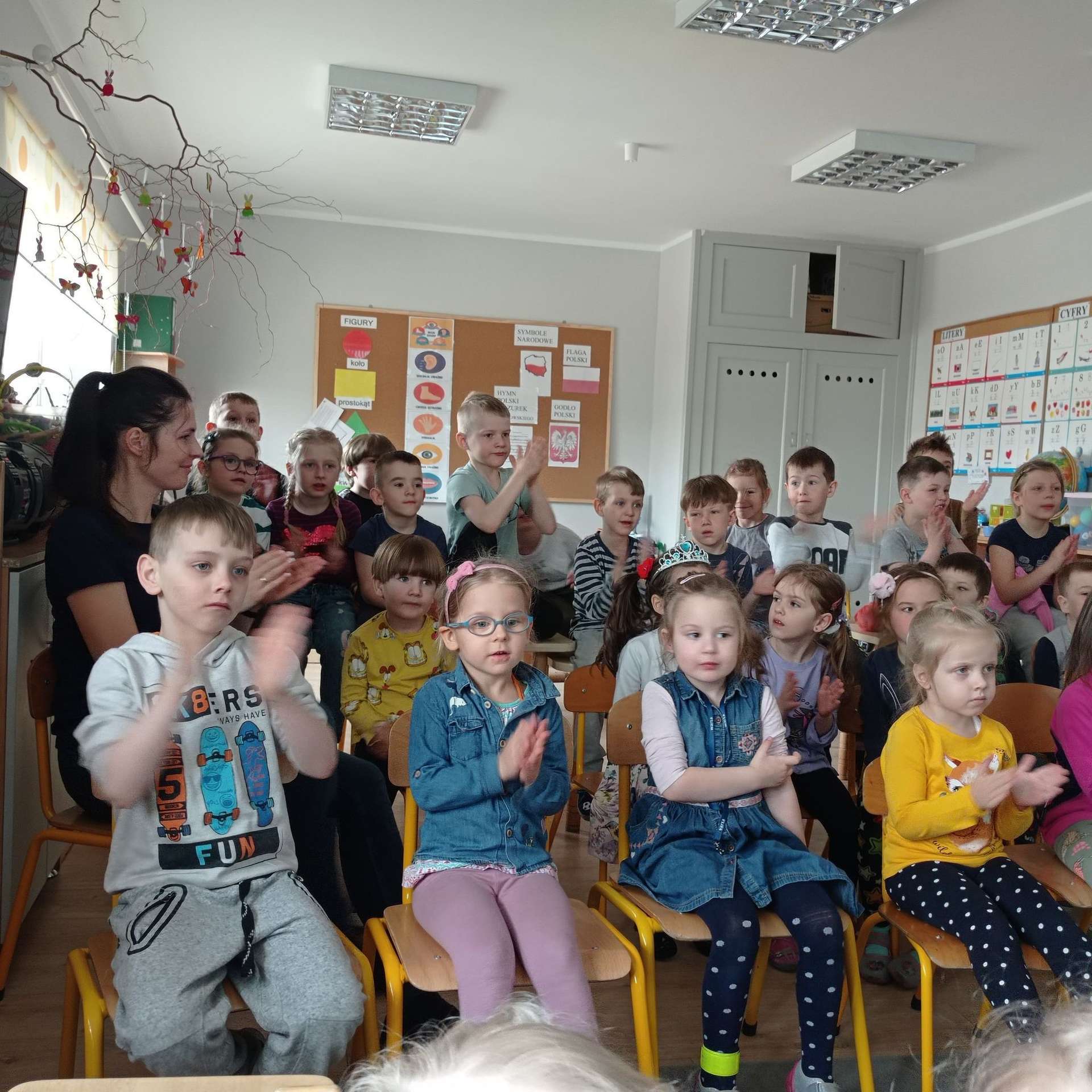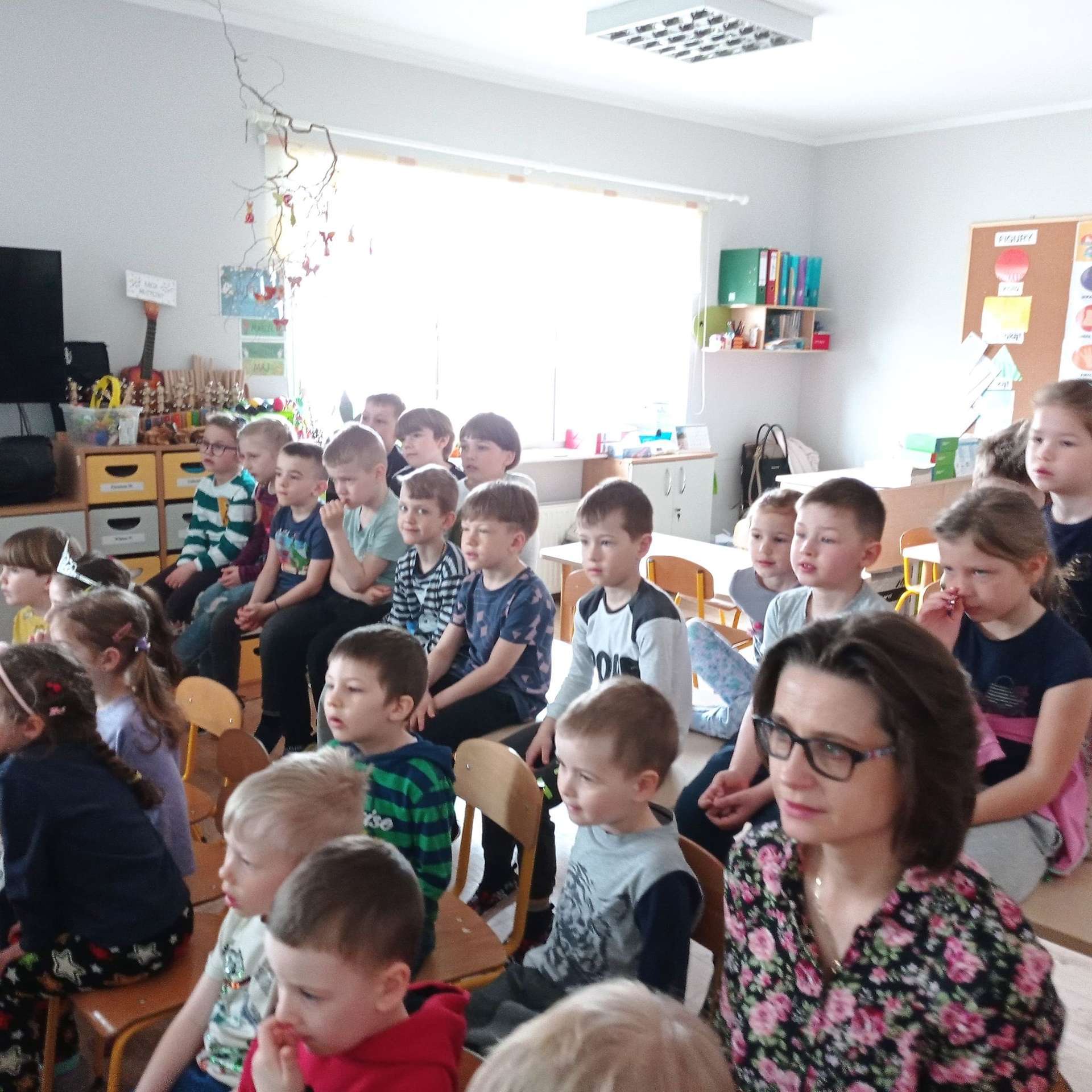 Przedszkolaki miały okazję wziąć udział w świątecznym koncercie online „Radosne Alleluja”, przygotowanym przez panią Patrycję Lipińską. Koncert wprowadził wszystkich w świąteczny nastrój, przypomniał o tradycjach i zwyczajach wielkanocnych. Dzieci wzięły aktywny udział w koncercie poprzez śpiew, pląsy i udzielanie odpowiedzi na pytania. Zapoznały się z budową gitary i poznały lutnistę, który zrobił gitary z ołówków, klocków Lego i cukierków.