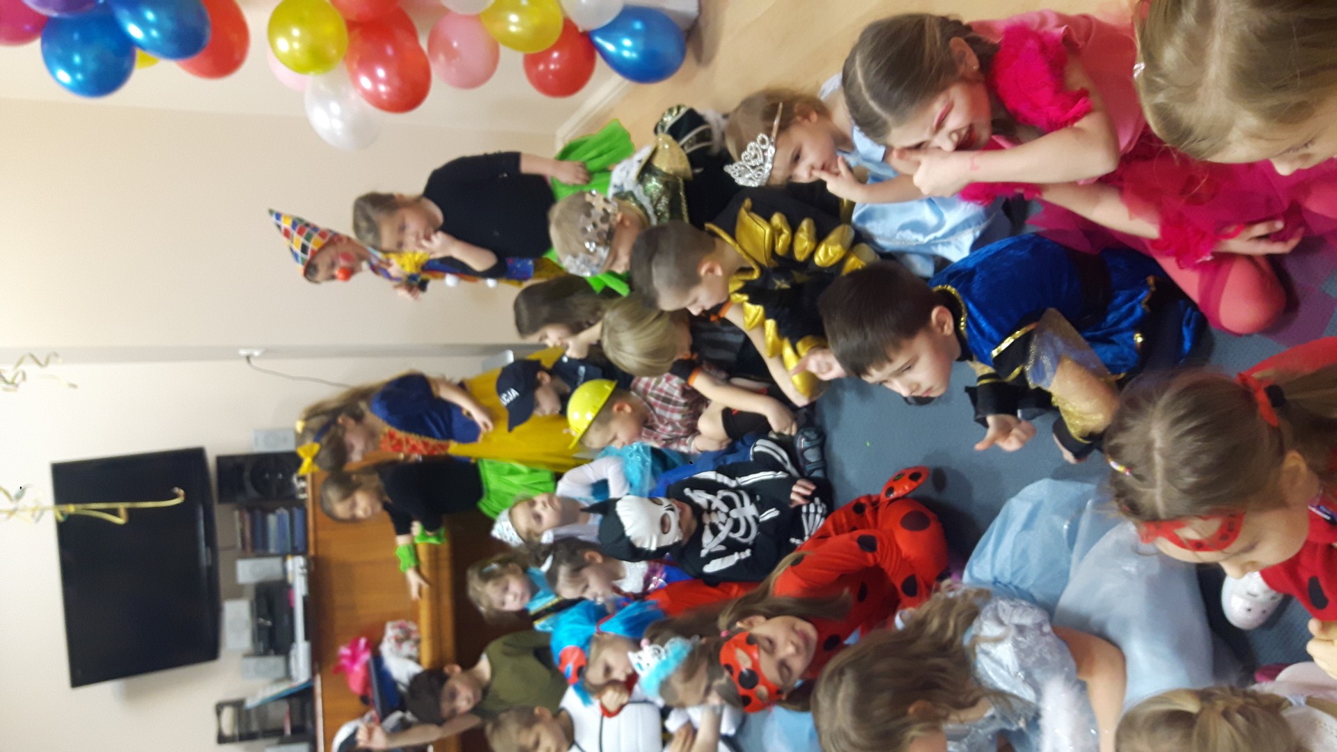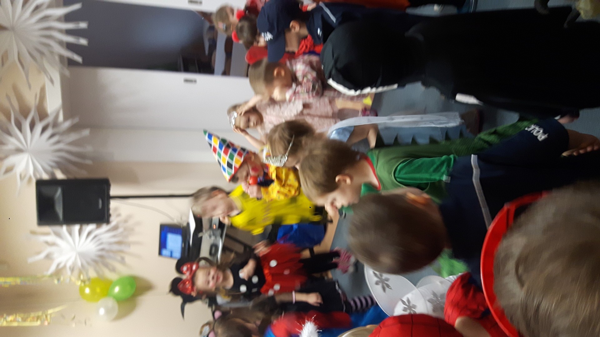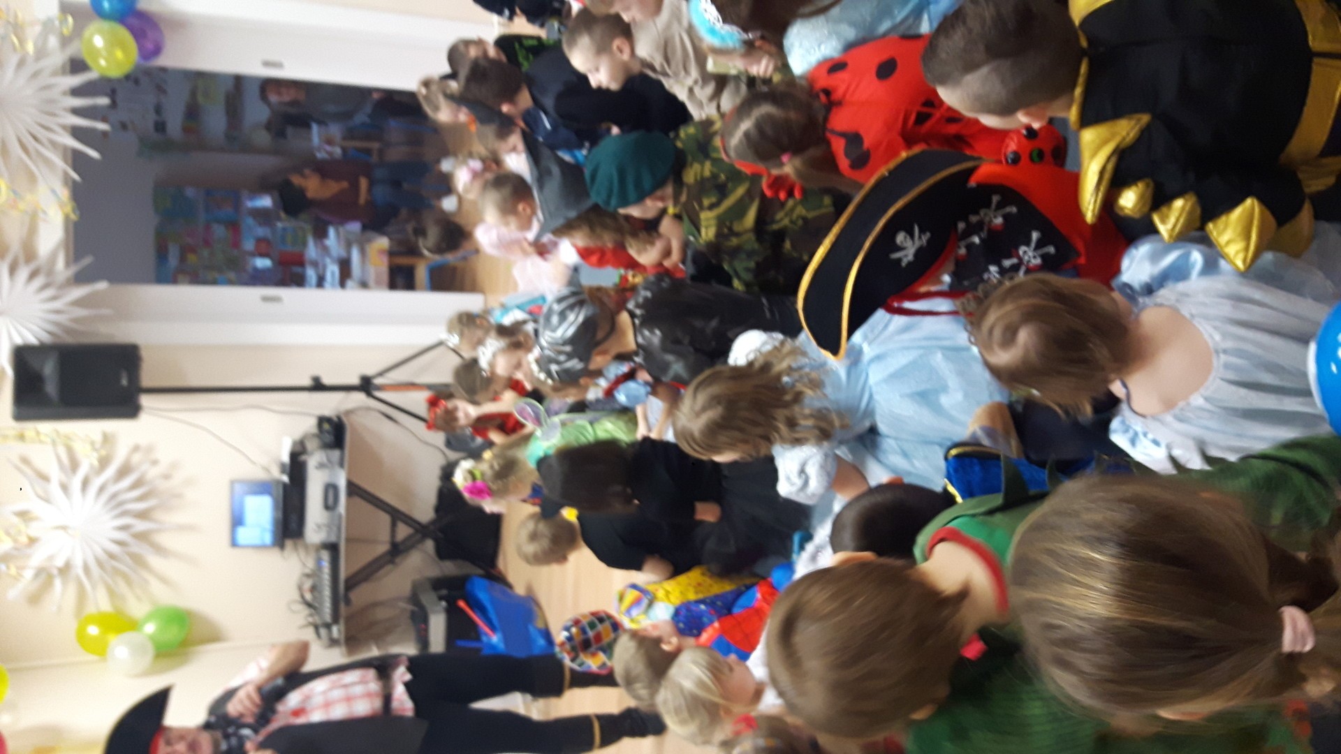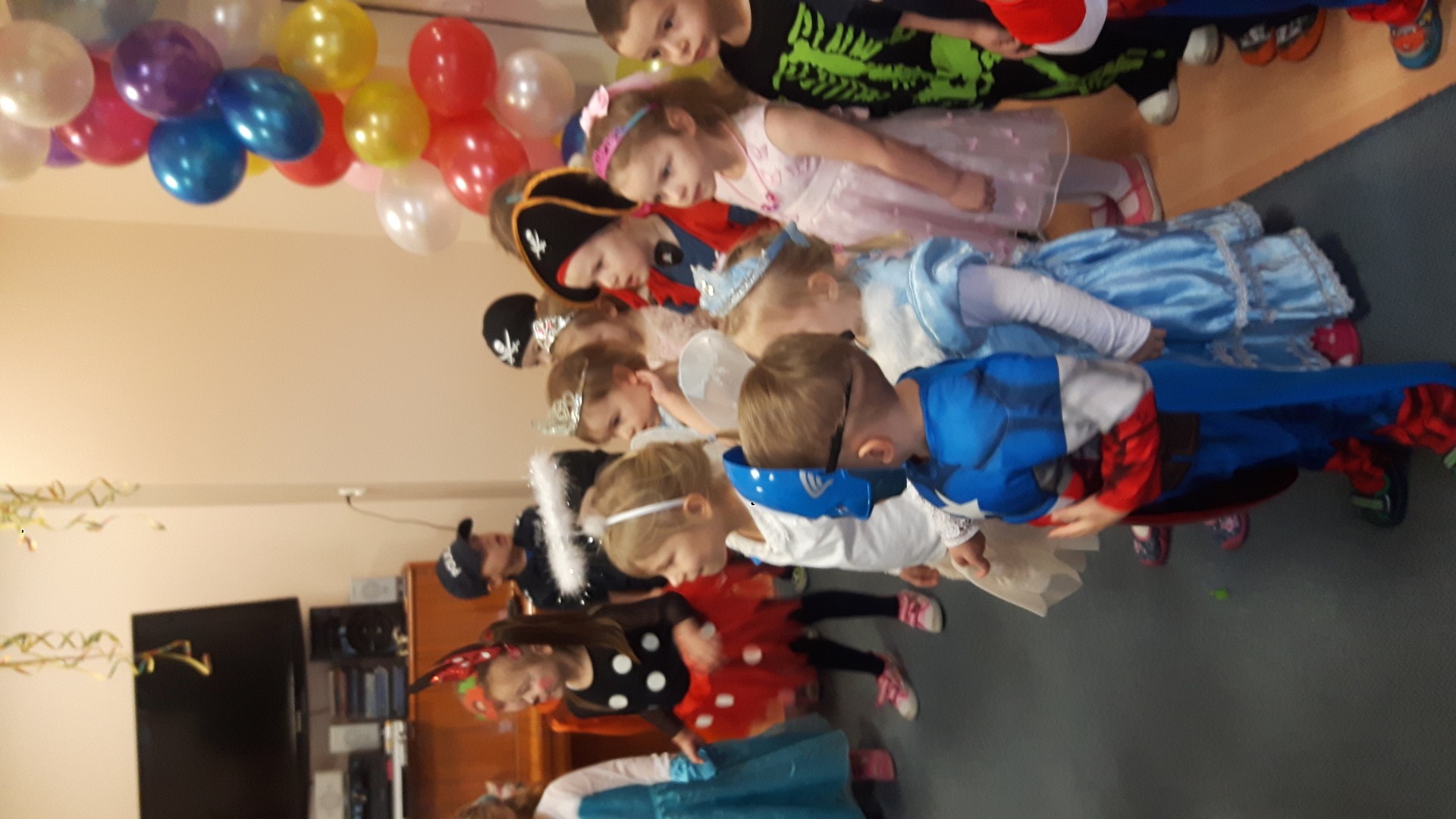 Karnawał to miła tradycja przepełniona muzyką i zabawą, gdzie ważnym elementem tego okresu są bale karnawałowe. Bal karnawałowy dla przedszkolaków to dzień niezwykły, często wyczekiwany przez wiele tygodni. Jest atrakcją bardzo lubianą przez dzieci, dostarczającą im wielu przeżyć i radości. Tak też było u nas. W dniu 05.02.2019r. w naszym Przedszkolu odbył się Bal Karnawałowy. Tego dnia już od rana w Przedszkolu pojawiały się kolorowe postacie. Dzieci przebrane były za bohaterów znanych bajek, w salach przedszkolnych można było spotkać wróżki, królewny, delikatne motylki, rycerzy, piratów, policjantów, Spider-Mana, Batmana, ...nie sposób zliczyć i wymienić tych wszystkich postaci.Rozpoznać dzieci było bardzo trudno. W pierwszej kolejności dzieci miały możliwość pozowania do zdjęcia grupowego oraz zdjęć indywidualnych. Następnie wszyscy uczestnicy balu przeszli do sali balowej. Wystrój sali wprowadził w radosny nastrój oraz zachęcał wszystkich do wesołej zabawy. Na tą wyjątkową okazję zaprosiliśmy do prowadzenia balu wodzireja, który zachęcał wszystkich do tańca przygotowaną muzyką. Dzieci świetnie się bawiły uczestnicząc wspólnie ze swoimi paniami w zabawach. Na sali podczas pląsów robiło się kolorowo, wszyscy bawili się wesoło, uśmiech nie znikał z twarzy mimo chwilowego zmęczenia. Po kilku chwilach wypoczynku muzyka znowu porwała wszystkich do tańca w rytm samby, walczyka, Kaczuch. Kiedy czas zabawy dobiegł końca dzieci z żalem opuszczały salę balową. Bal umożliwił dzieciom i wychowawcom spędzenie czasu w miłej atmosferze. Wspólna zabawa przyniosła wiele radości naszym wychowankom.