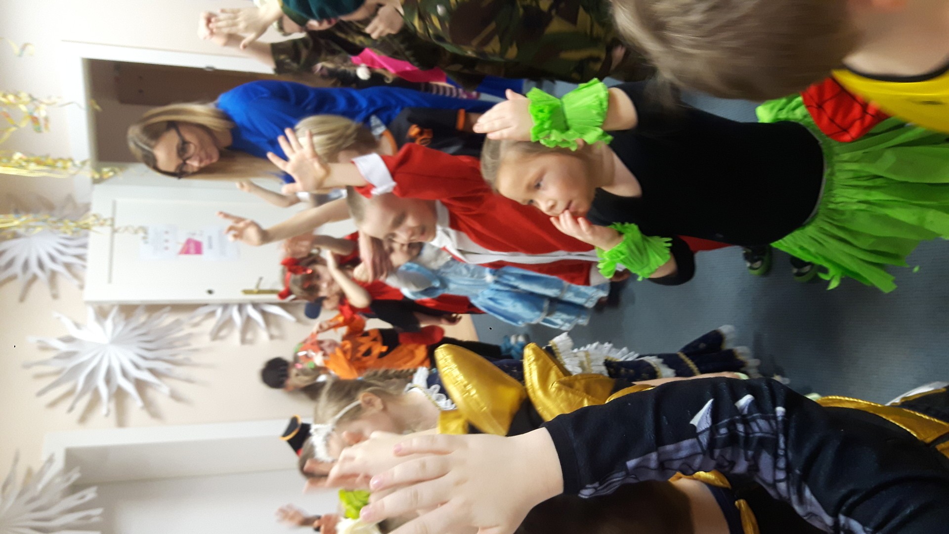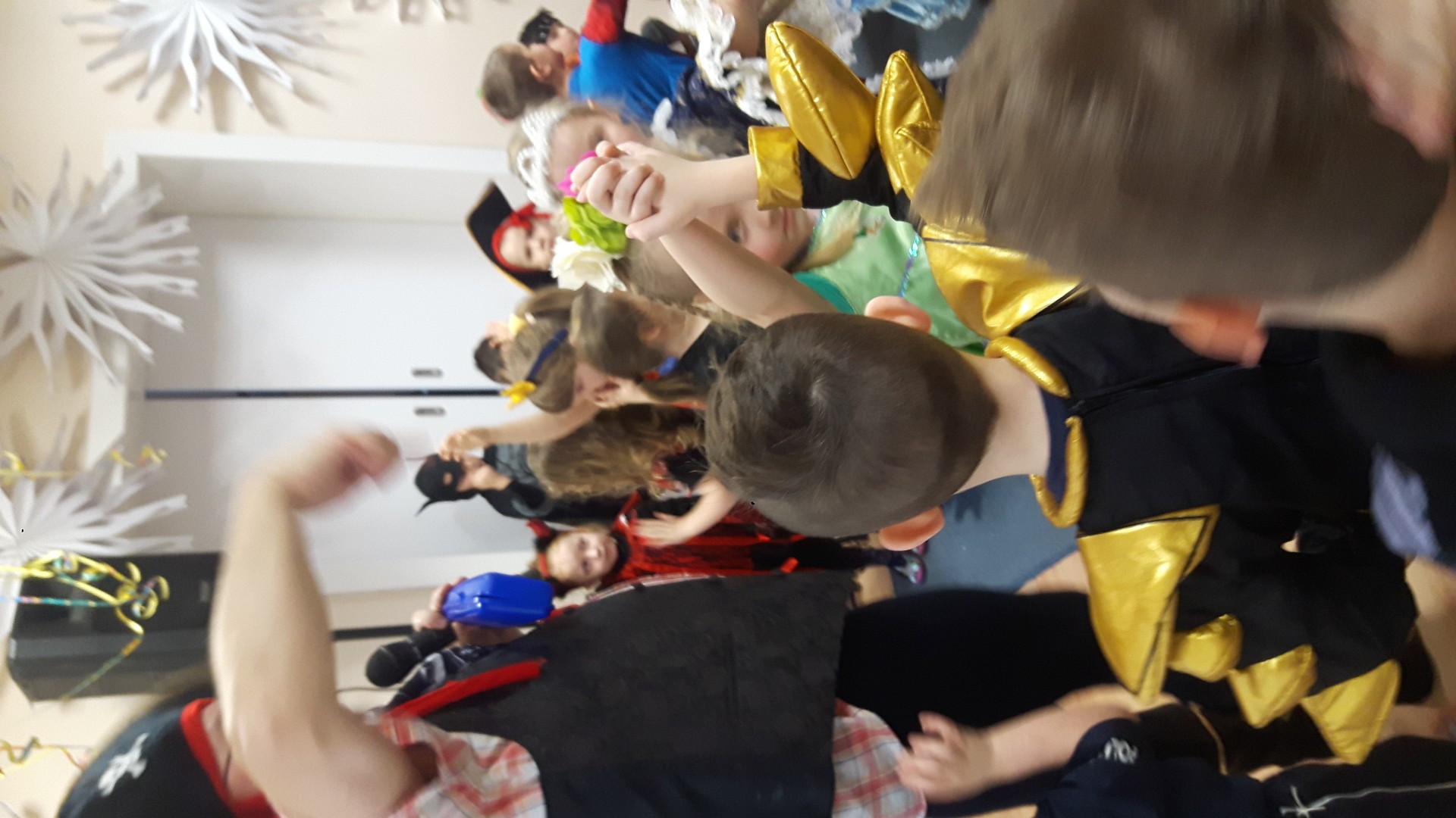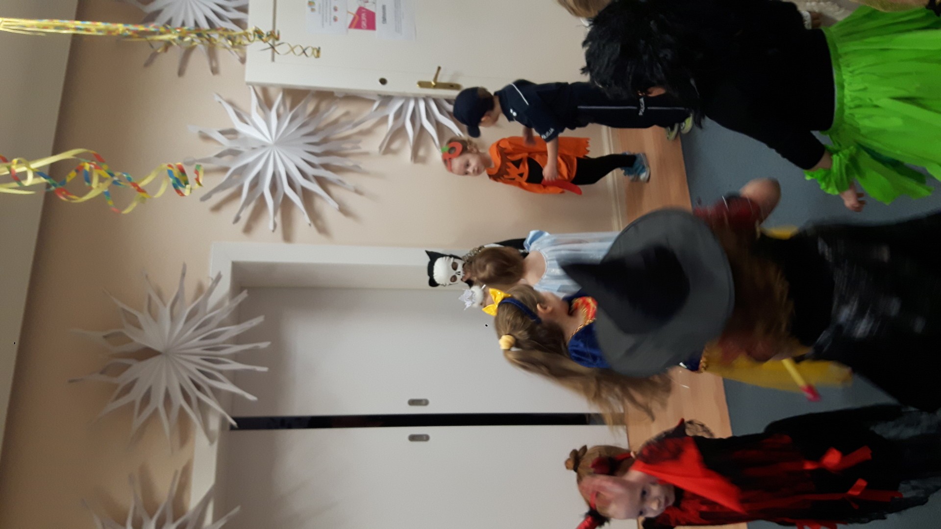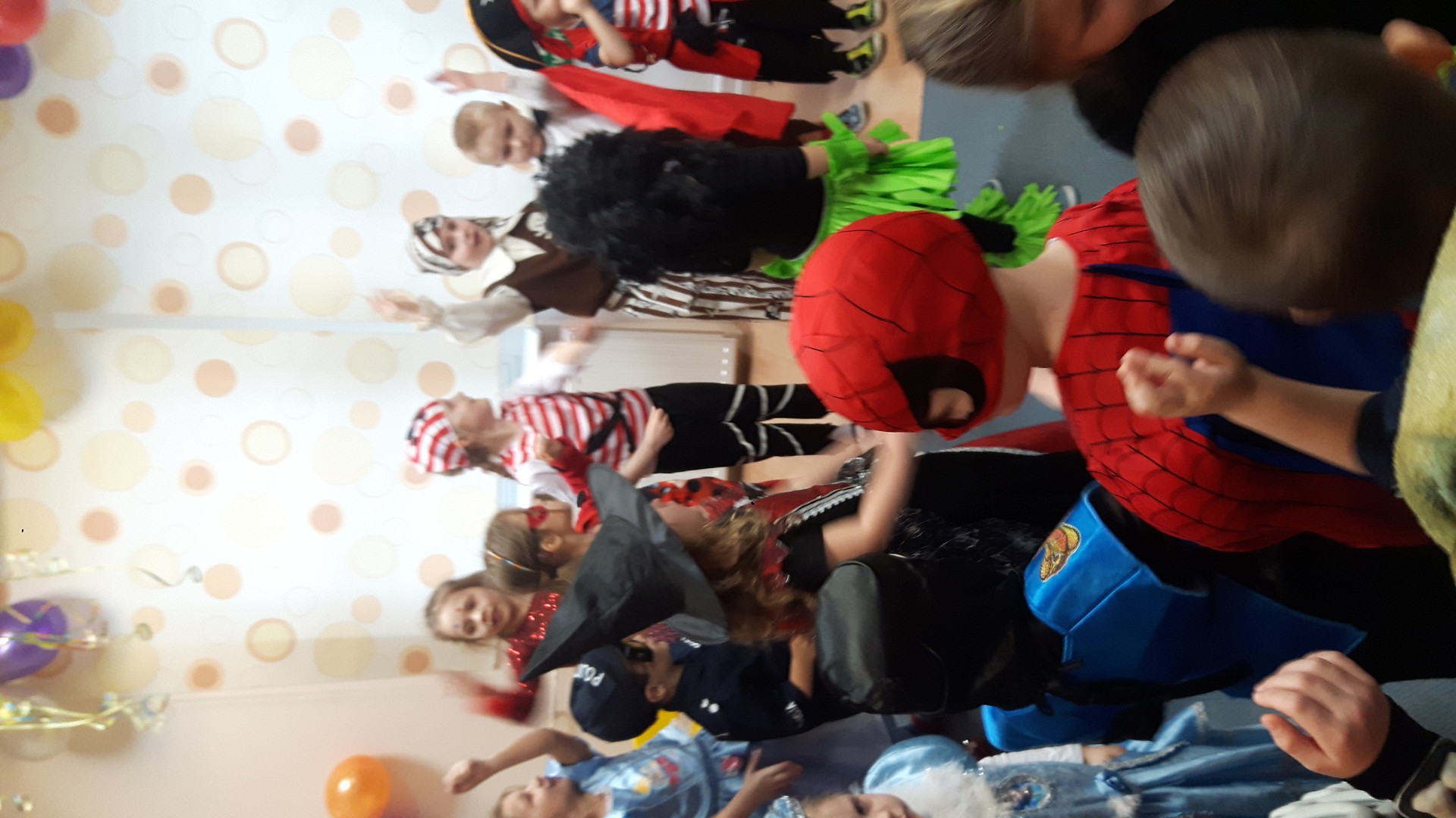 Karnawał to miła tradycja przepełniona muzyką i zabawą, gdzie ważnym elementem tego okresu są bale karnawałowe. Bal karnawałowy dla przedszkolaków to dzień niezwykły, często wyczekiwany przez wiele tygodni. Jest atrakcją bardzo lubianą przez dzieci, dostarczającą im wielu przeżyć i radości. Tak też było u nas. W dniu 05.02.2019r. w naszym Przedszkolu odbył się Bal Karnawałowy. Tego dnia już od rana w Przedszkolu pojawiały się kolorowe postacie. Dzieci przebrane były za bohaterów znanych bajek, w salach przedszkolnych można było spotkać wróżki, królewny, delikatne motylki, rycerzy, piratów, policjantów, Spider-Mana, Batmana, ...nie sposób zliczyć i wymienić tych wszystkich postaci.Rozpoznać dzieci było bardzo trudno. W pierwszej kolejności dzieci miały możliwość pozowania do zdjęcia grupowego oraz zdjęć indywidualnych. Następnie wszyscy uczestnicy balu przeszli do sali balowej. Wystrój sali wprowadził w radosny nastrój oraz zachęcał wszystkich do wesołej zabawy. Na tą wyjątkową okazję zaprosiliśmy do prowadzenia balu wodzireja, który zachęcał wszystkich do tańca przygotowaną muzyką. Dzieci świetnie się bawiły uczestnicząc wspólnie ze swoimi paniami w zabawach. Na sali podczas pląsów robiło się kolorowo, wszyscy bawili się wesoło, uśmiech nie znikał z twarzy mimo chwilowego zmęczenia. Po kilku chwilach wypoczynku muzyka znowu porwała wszystkich do tańca w rytm samby, walczyka, Kaczuch. Kiedy czas zabawy dobiegł końca dzieci z żalem opuszczały salę balową. Bal umożliwił dzieciom i wychowawcom spędzenie czasu w miłej atmosferze. Wspólna zabawa przyniosła wiele radości naszym wychowankom.