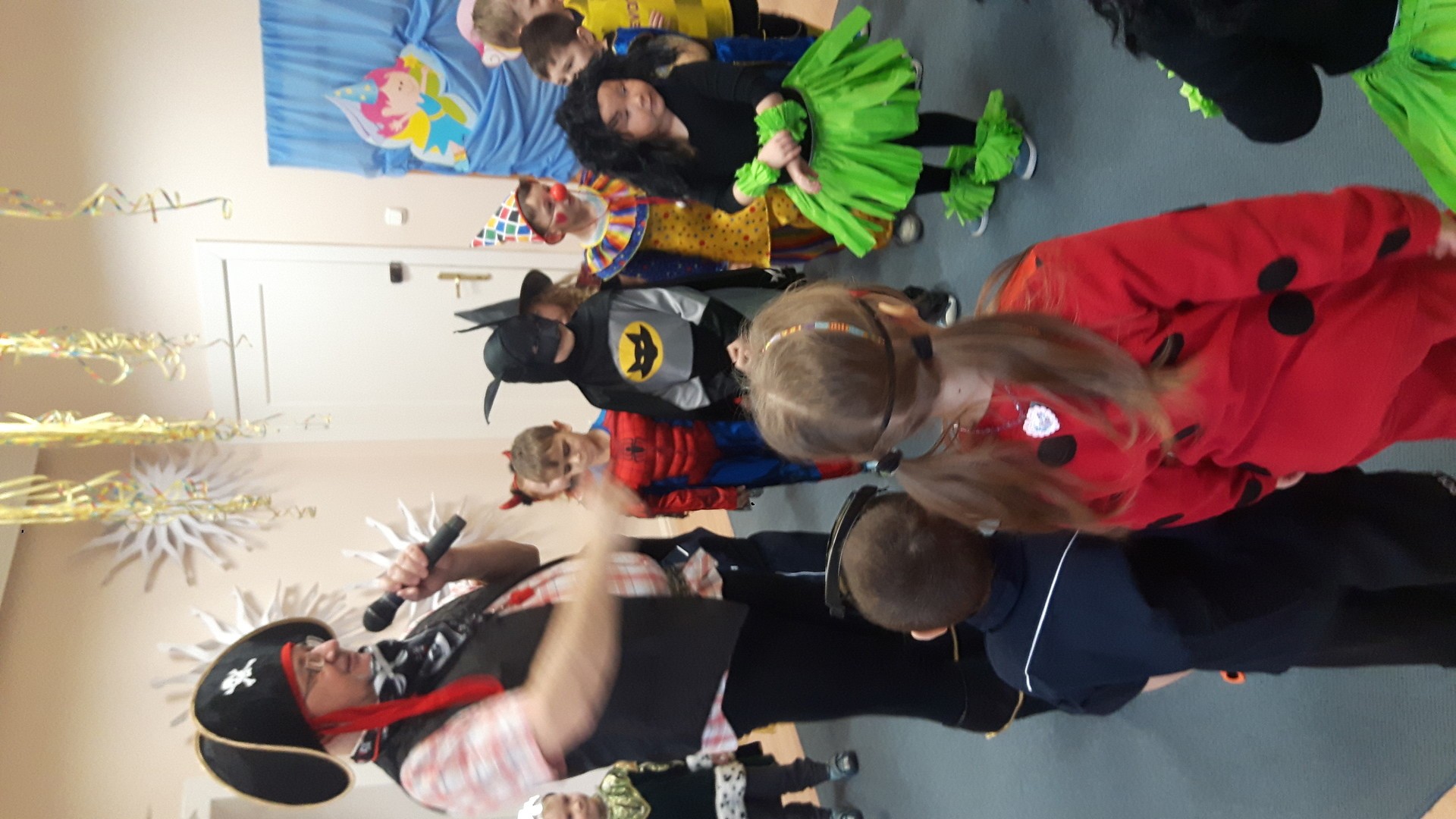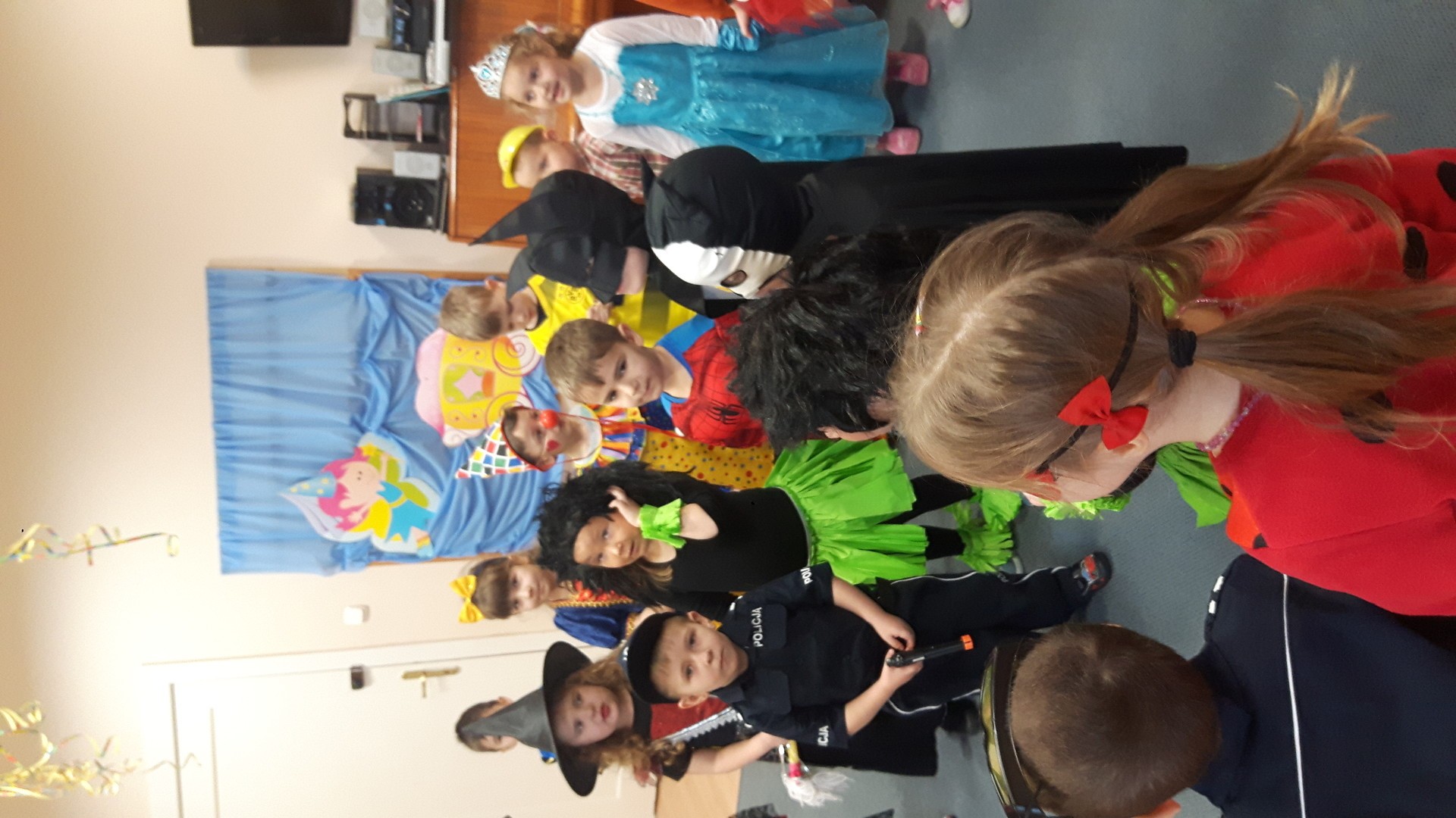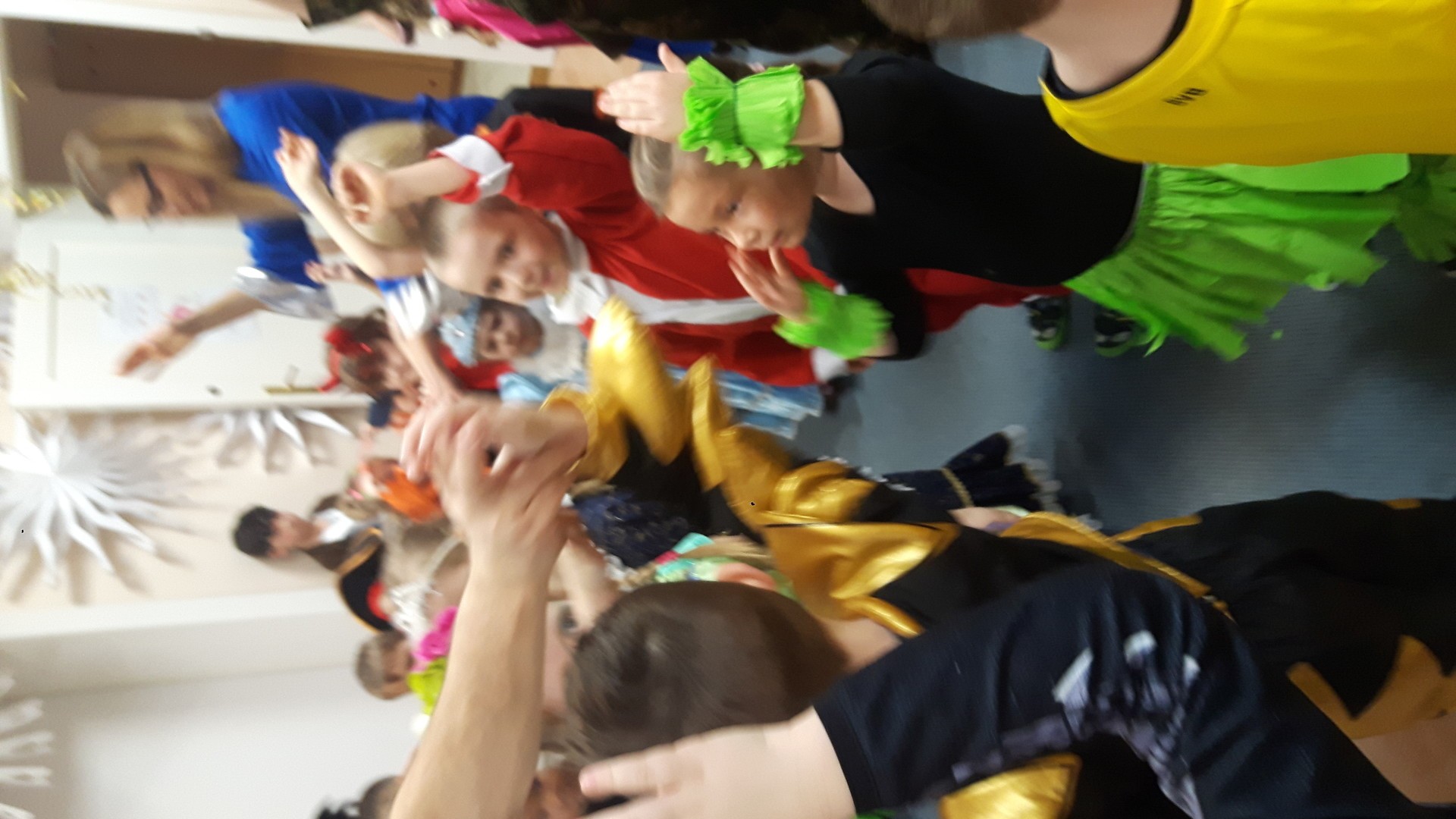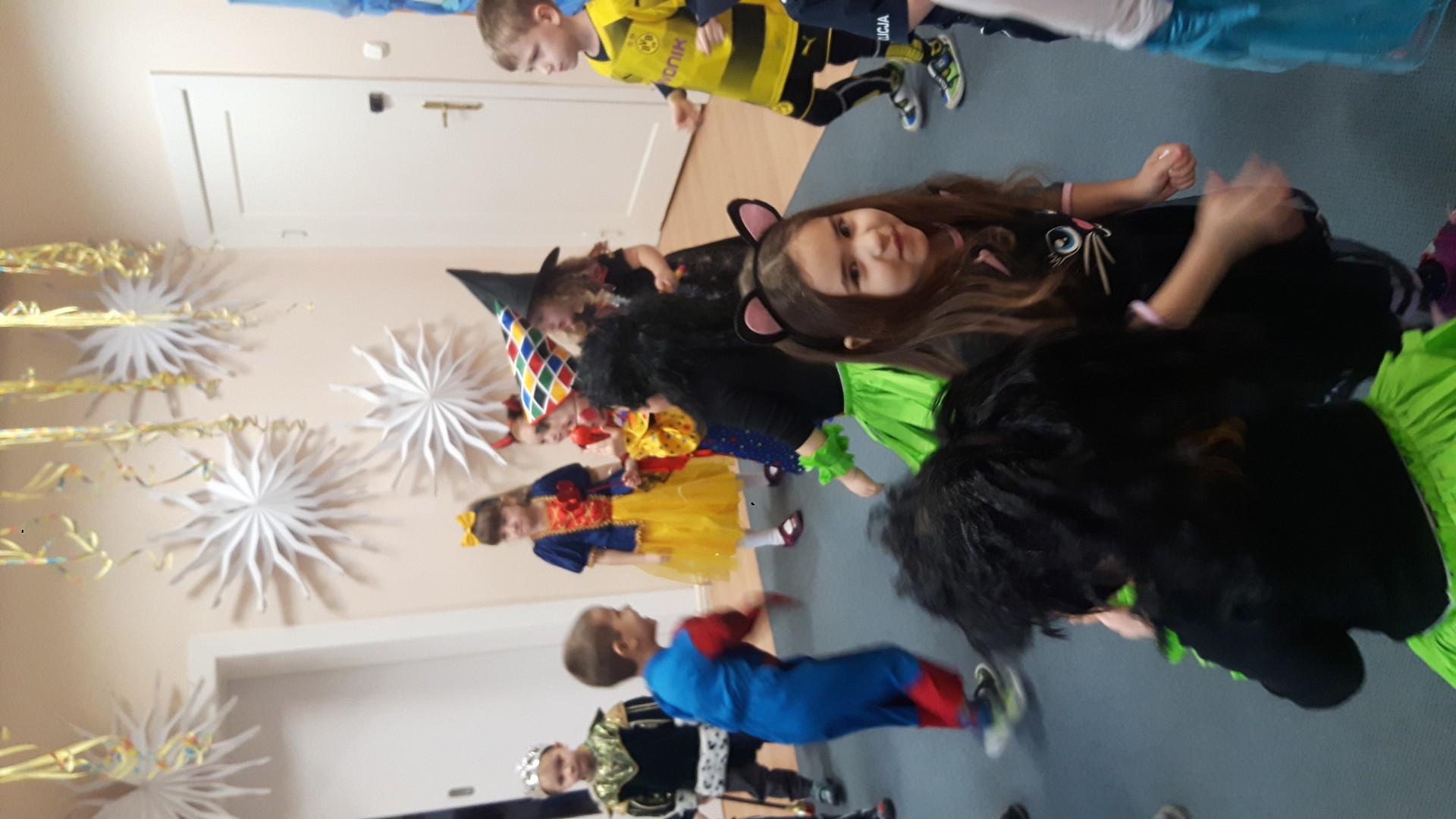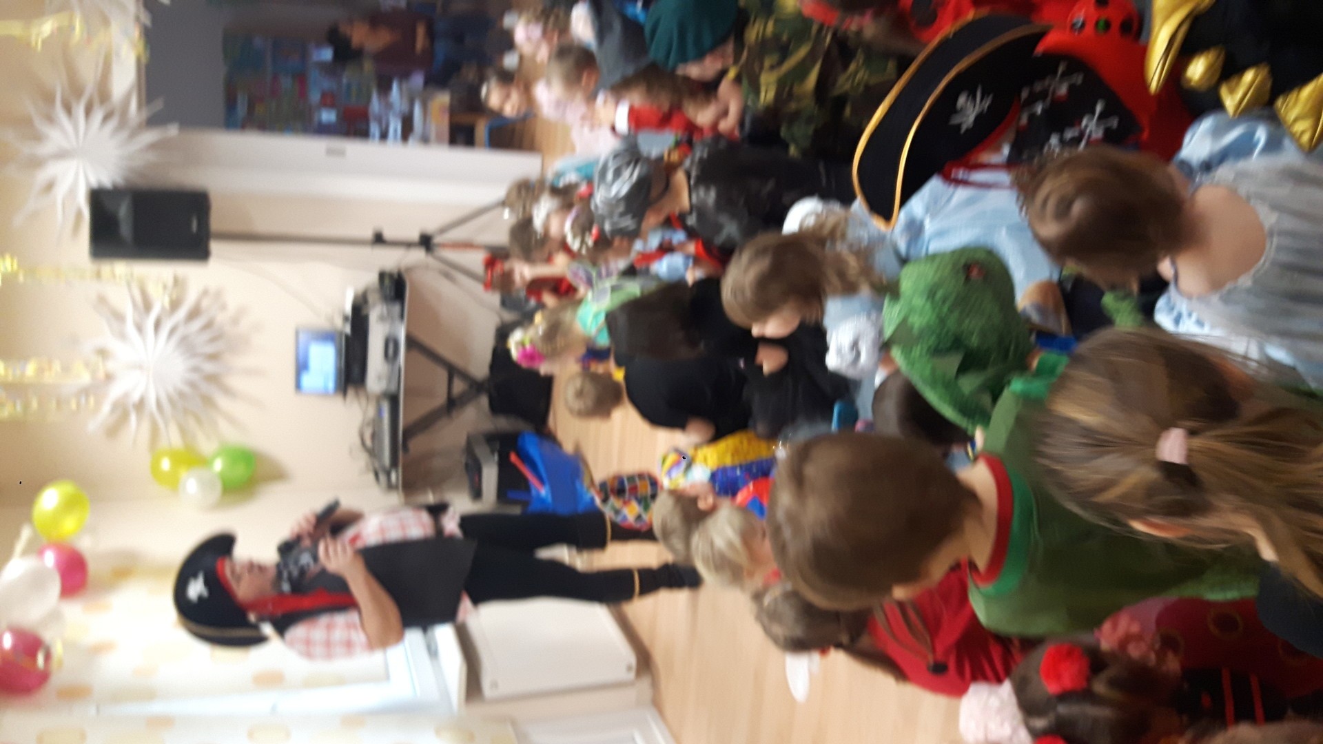 Karnawał to miła tradycja przepełniona muzyką i zabawą, gdzie ważnym elementem tego okresu są bale karnawałowe. Bal karnawałowy dla przedszkolaków to dzień niezwykły, często wyczekiwany przez wiele tygodni. Jest atrakcją bardzo lubianą przez dzieci, dostarczającą im wielu przeżyć i radości. Tak też było u nas. W dniu 05.02.2019r. w naszym Przedszkolu odbył się Bal Karnawałowy. Tego dnia już od rana w Przedszkolu pojawiały się kolorowe postacie. Dzieci przebrane były za bohaterów znanych bajek, w salach przedszkolnych można było spotkać wróżki, królewny, delikatne motylki, rycerzy, piratów, policjantów, Spider-Mana, Batmana, ...nie sposób zliczyć i wymienić tych wszystkich postaci.Rozpoznać dzieci było bardzo trudno. W pierwszej kolejności dzieci miały możliwość pozowania do zdjęcia grupowego oraz zdjęć indywidualnych. Następnie wszyscy uczestnicy balu przeszli do sali balowej. Wystrój sali wprowadził w radosny nastrój oraz zachęcał wszystkich do wesołej zabawy. Na tą wyjątkową okazję zaprosiliśmy do prowadzenia balu wodzireja, który zachęcał wszystkich do tańca przygotowaną muzyką. Dzieci świetnie się bawiły uczestnicząc wspólnie ze swoimi paniami w zabawach. Na sali podczas pląsów robiło się kolorowo, wszyscy bawili się wesoło, uśmiech nie znikał z twarzy mimo chwilowego zmęczenia. Po kilku chwilach wypoczynku muzyka znowu porwała wszystkich do tańca w rytm samby, walczyka, Kaczuch. Kiedy czas zabawy dobiegł końca dzieci z żalem opuszczały salę balową. Bal umożliwił dzieciom i wychowawcom spędzenie czasu w miłej atmosferze. Wspólna zabawa przyniosła wiele radości naszym wychowankom.