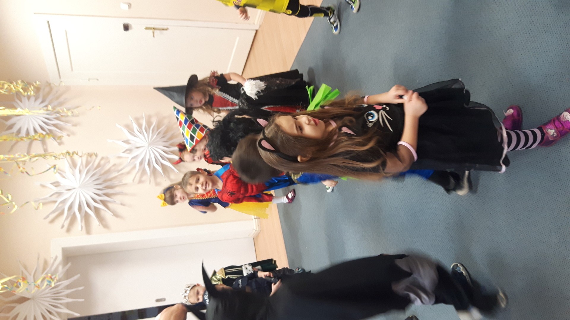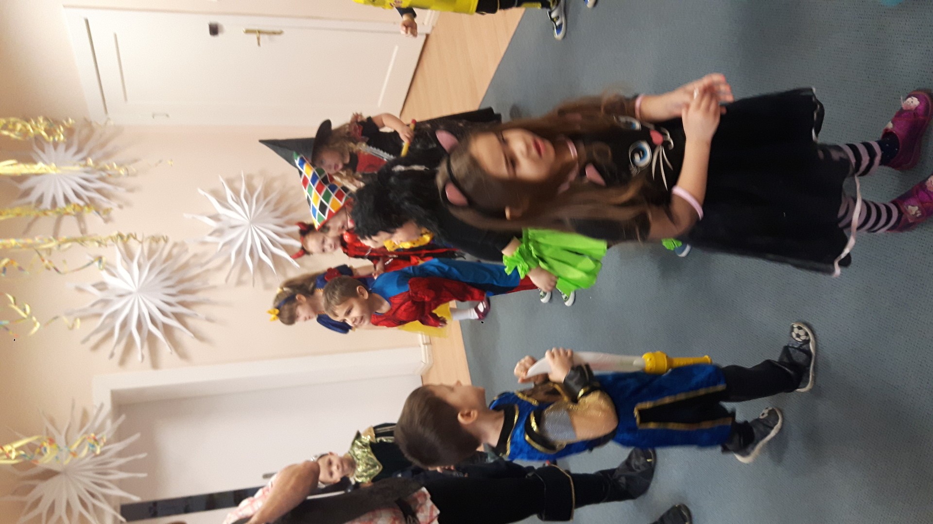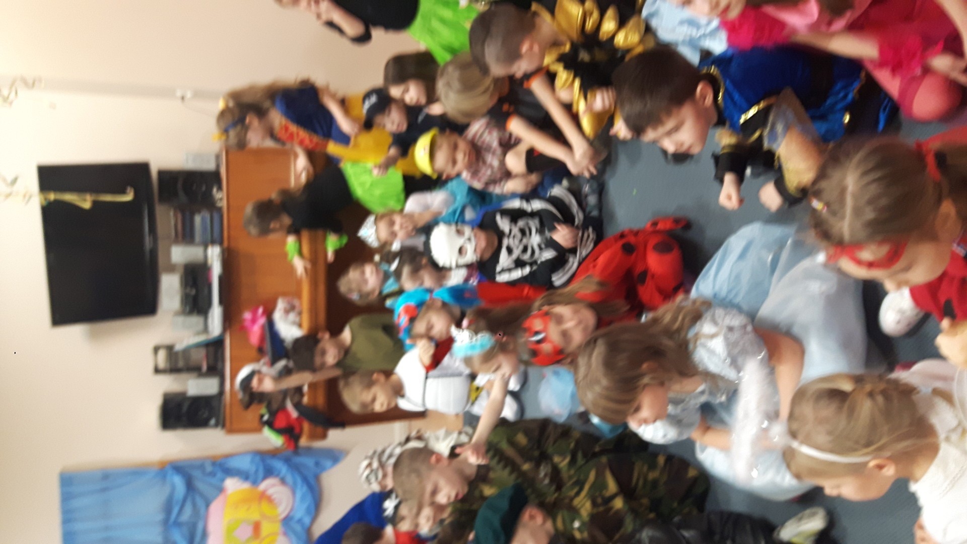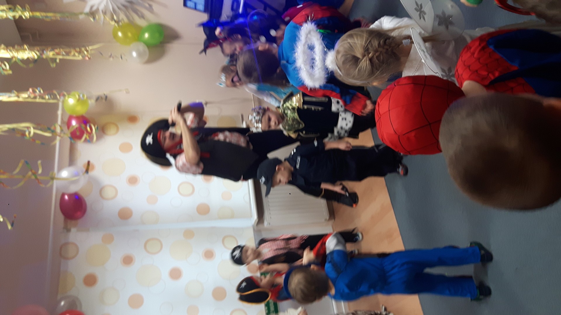 Karnawał to miła tradycja przepełniona muzyką i zabawą, gdzie ważnym elementem tego okresu są bale karnawałowe. Bal karnawałowy dla przedszkolaków to dzień niezwykły, często wyczekiwany przez wiele tygodni. Jest atrakcją bardzo lubianą przez dzieci, dostarczającą im wielu przeżyć i radości. Tak też było u nas. W dniu 05.02.2019r. w naszym Przedszkolu odbył się Bal Karnawałowy. Tego dnia już od rana w Przedszkolu pojawiały się kolorowe postacie. Dzieci przebrane były za bohaterów znanych bajek, w salach przedszkolnych można było spotkać wróżki, królewny, delikatne motylki, rycerzy, piratów, policjantów, Spider-Mana, Batmana, ...nie sposób zliczyć i wymienić tych wszystkich postaci.Rozpoznać dzieci było bardzo trudno. W pierwszej kolejności dzieci miały możliwość pozowania do zdjęcia grupowego oraz zdjęć indywidualnych. Następnie wszyscy uczestnicy balu przeszli do sali balowej. Wystrój sali wprowadził w radosny nastrój oraz zachęcał wszystkich do wesołej zabawy. Na tą wyjątkową okazję zaprosiliśmy do prowadzenia balu wodzireja, który zachęcał wszystkich do tańca przygotowaną muzyką. Dzieci świetnie się bawiły uczestnicząc wspólnie ze swoimi paniami w zabawach. Na sali podczas pląsów robiło się kolorowo, wszyscy bawili się wesoło, uśmiech nie znikał z twarzy mimo chwilowego zmęczenia. Po kilku chwilach wypoczynku muzyka znowu porwała wszystkich do tańca w rytm samby, walczyka, Kaczuch. Kiedy czas zabawy dobiegł końca dzieci z żalem opuszczały salę balową. Bal umożliwił dzieciom i wychowawcom spędzenie czasu w miłej atmosferze. Wspólna zabawa przyniosła wiele radości naszym wychowankom.