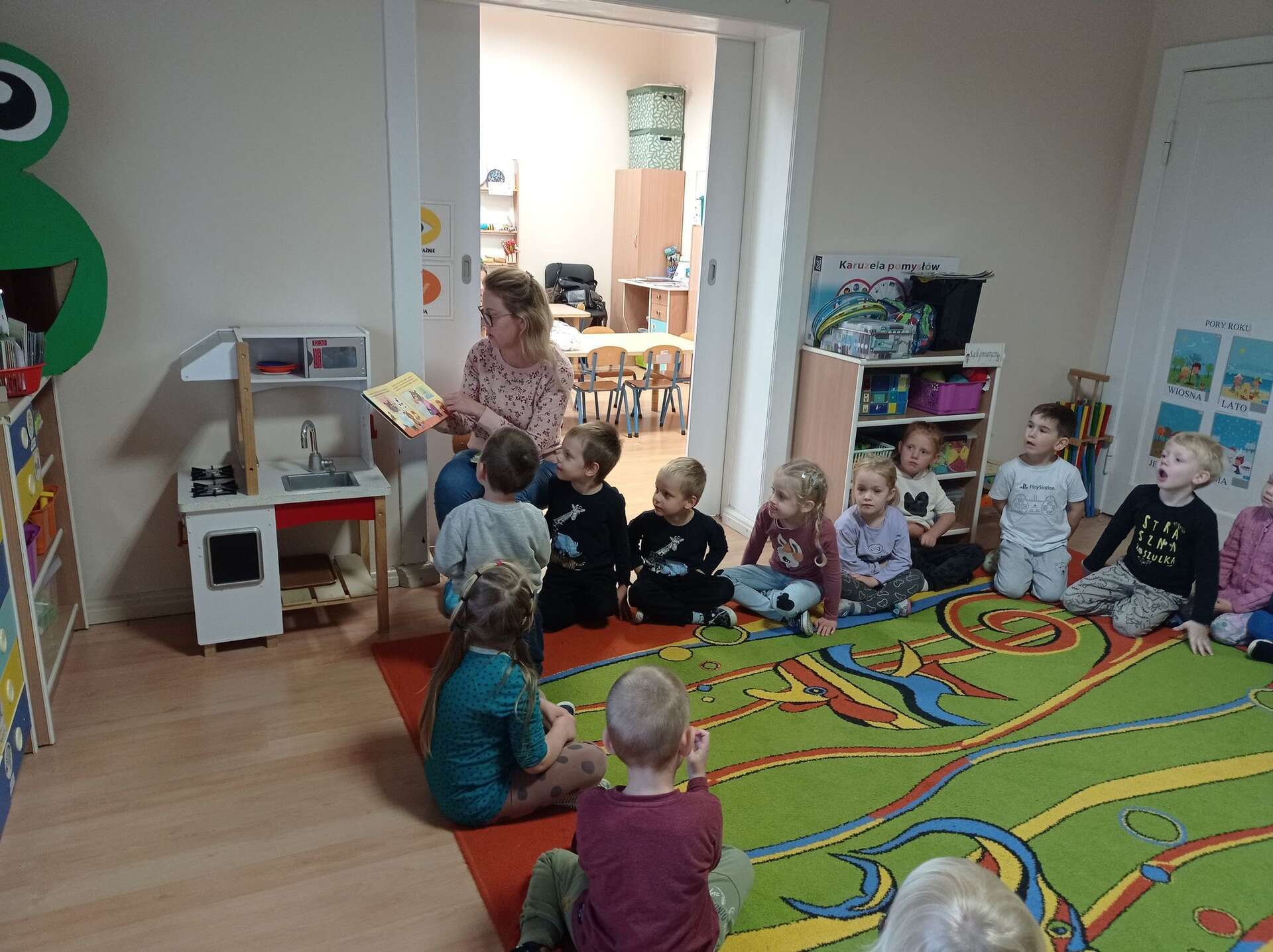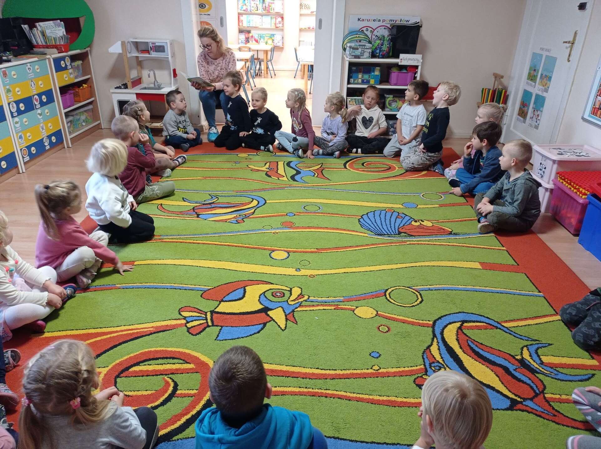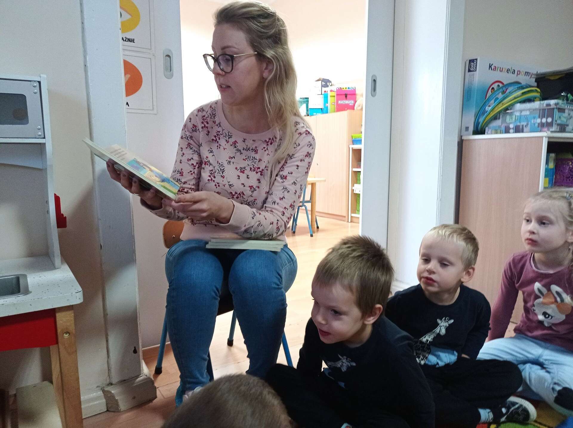 Dzisiaj gościliśmy w Przedszkolu Panią Karolinę, mamę Adasia i Karolka która przeczytała dzieciom bajki z cyklu "Mały Miś".