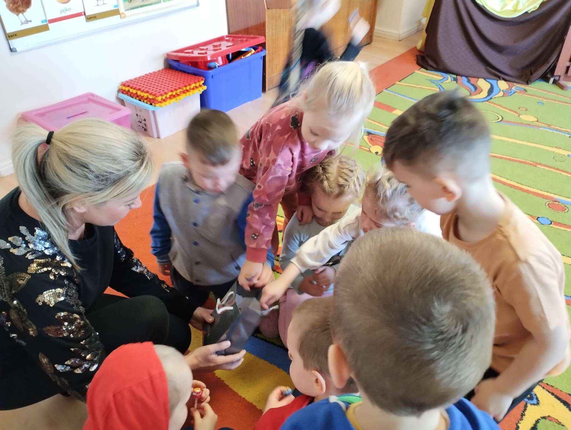 Mama Kalinki rozdaje dzieciom lizaki