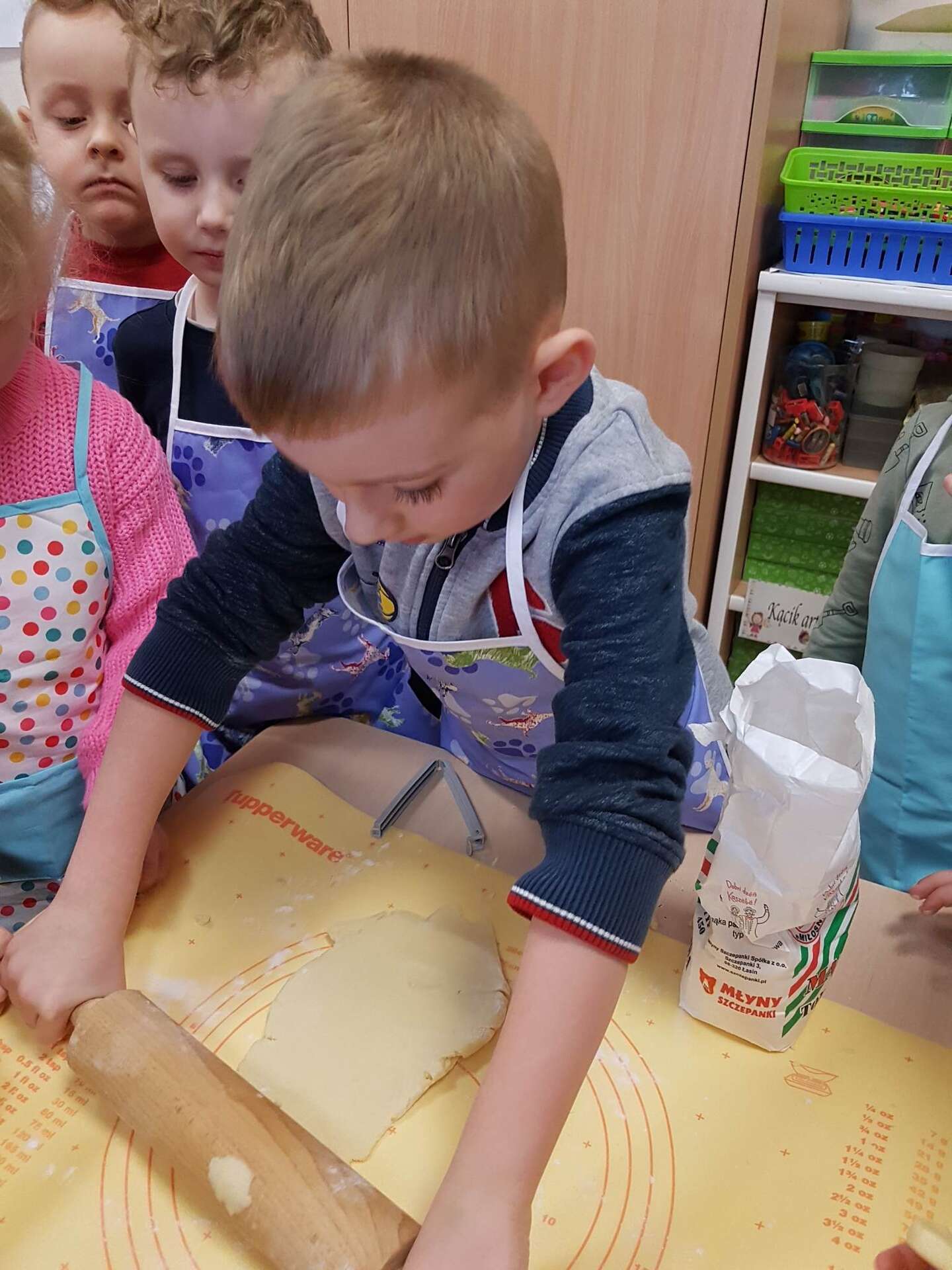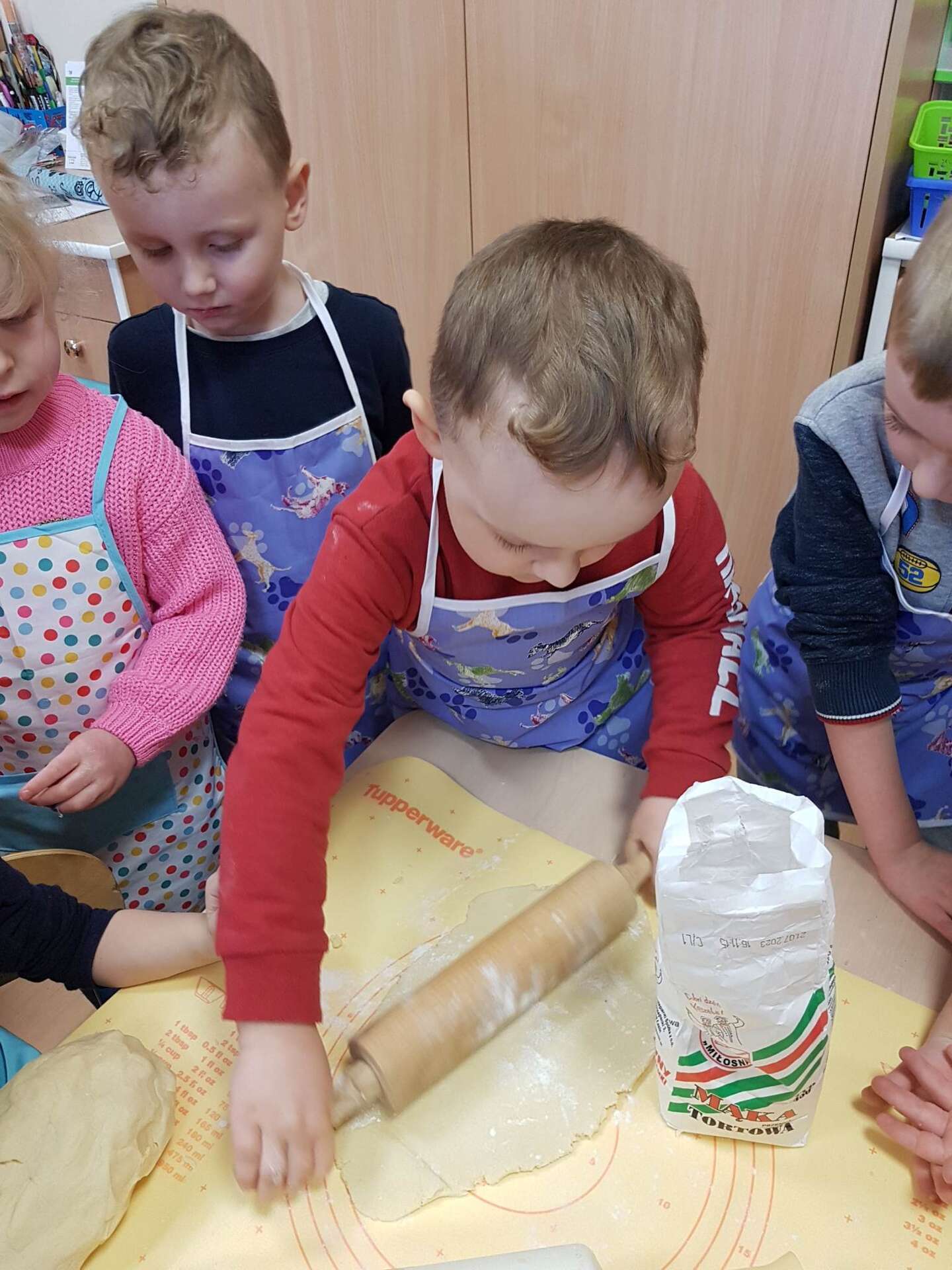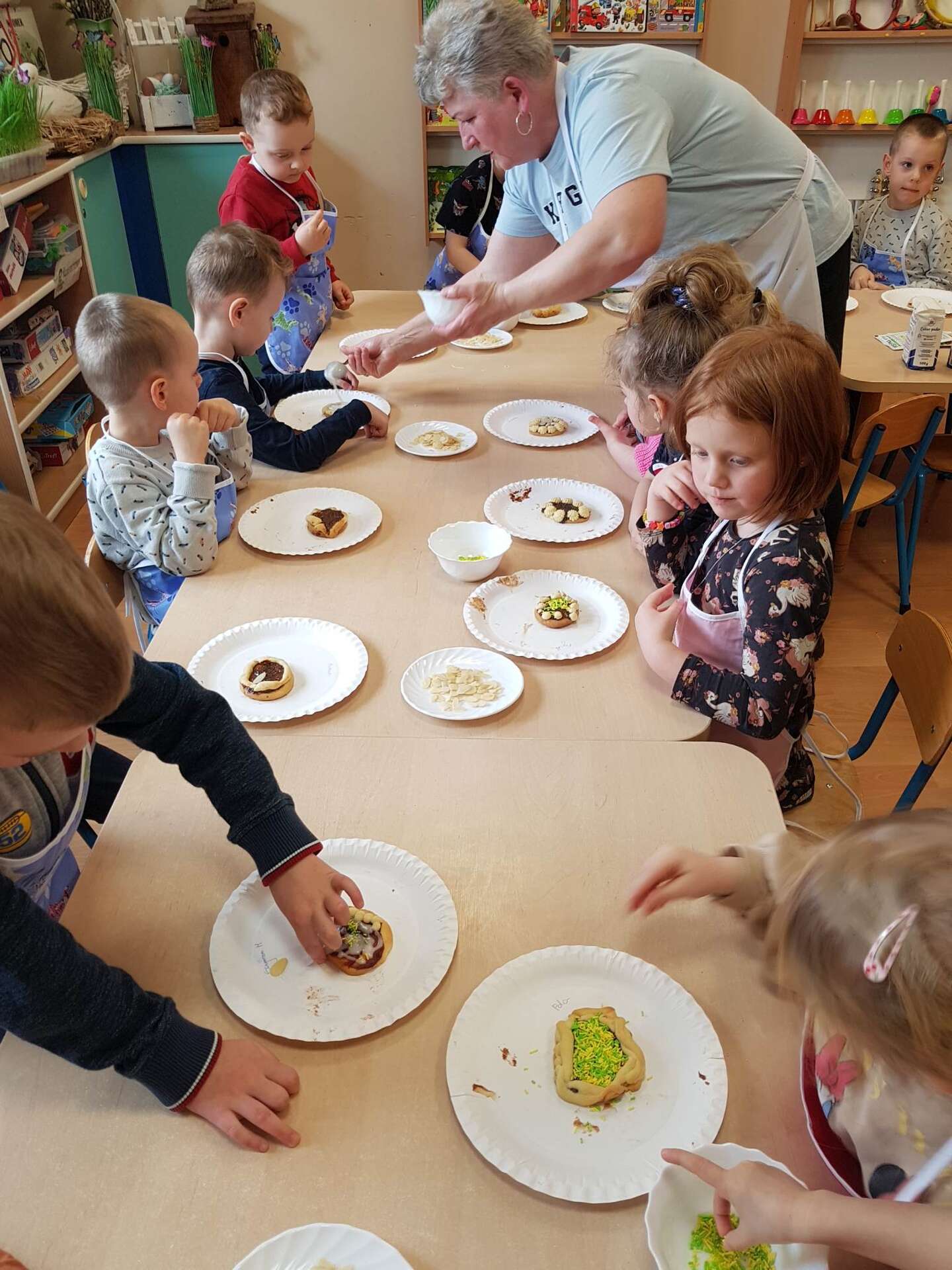 To był naprawdę słodki i pełen wrażeń dzień. Dzieci pod okiem p. Ludwiki Darżnik - babci Zuzi, a zarazem doświadczonego cukiernika, wykonały piękne i pyszne mazurki wielkanocne. Pani Ludwika podzieliła się z dziećmi swoimi umiejętnościami i przekazała wiele cennych rad odnośnie wytwarzania produktów cukierniczych.